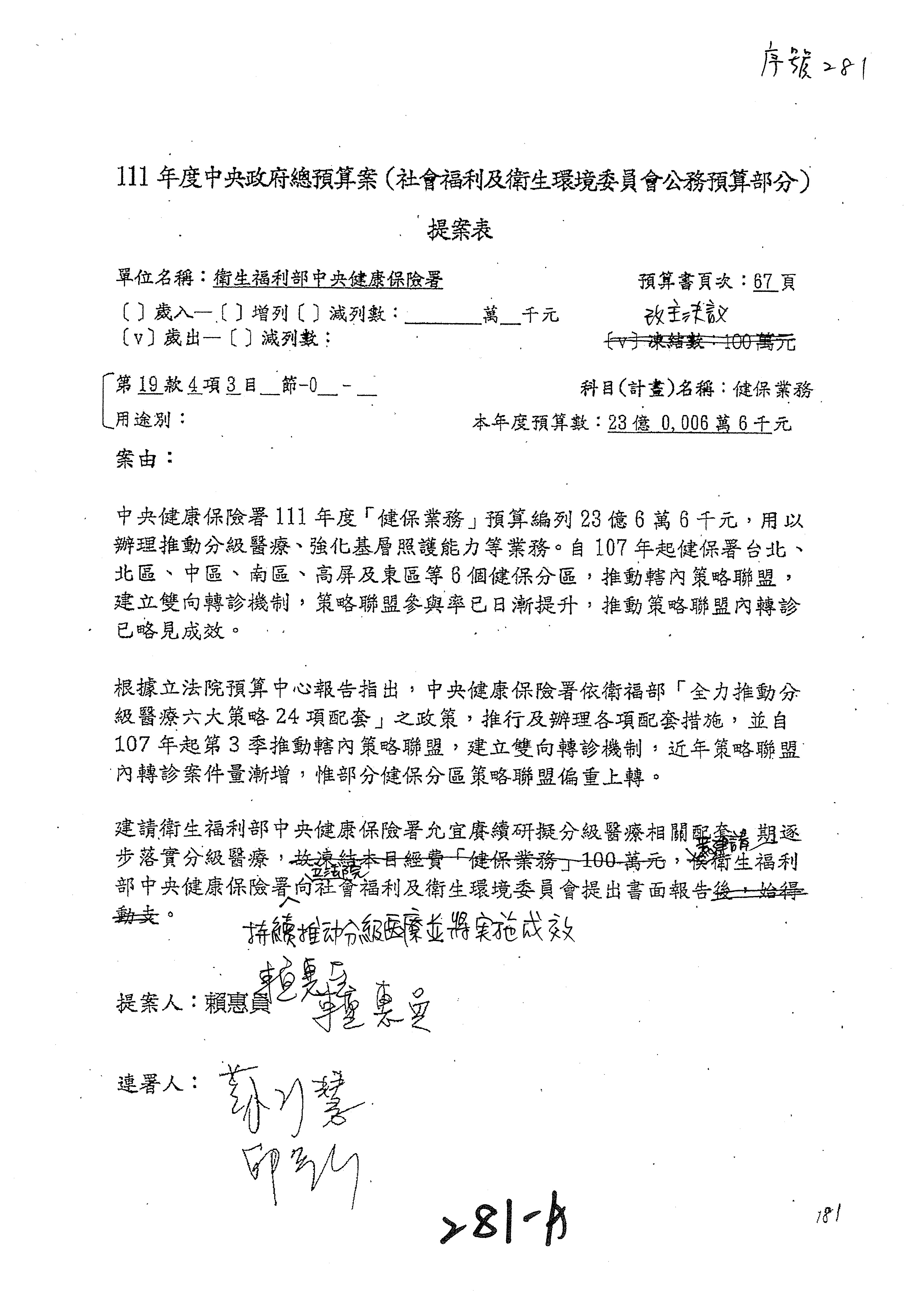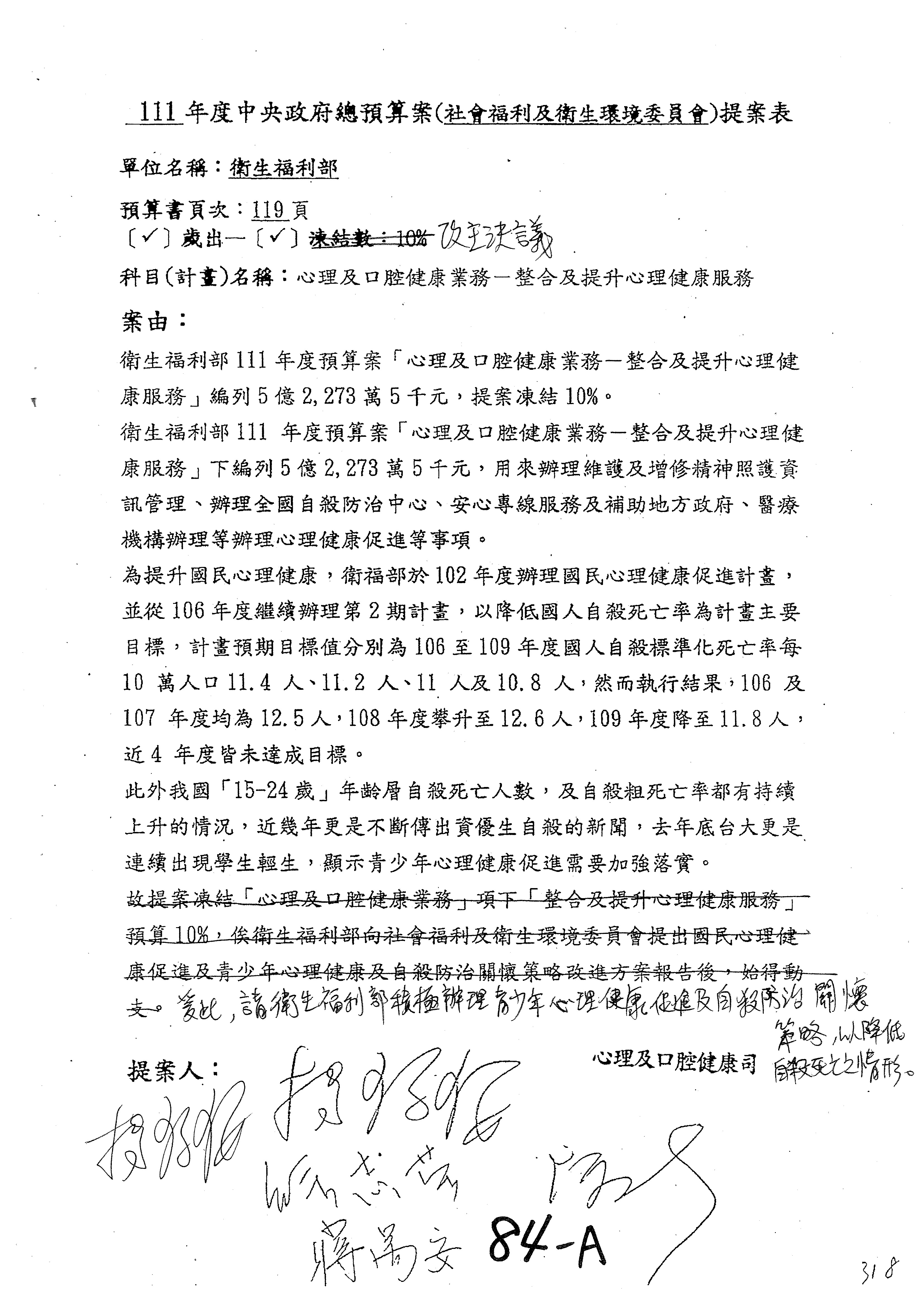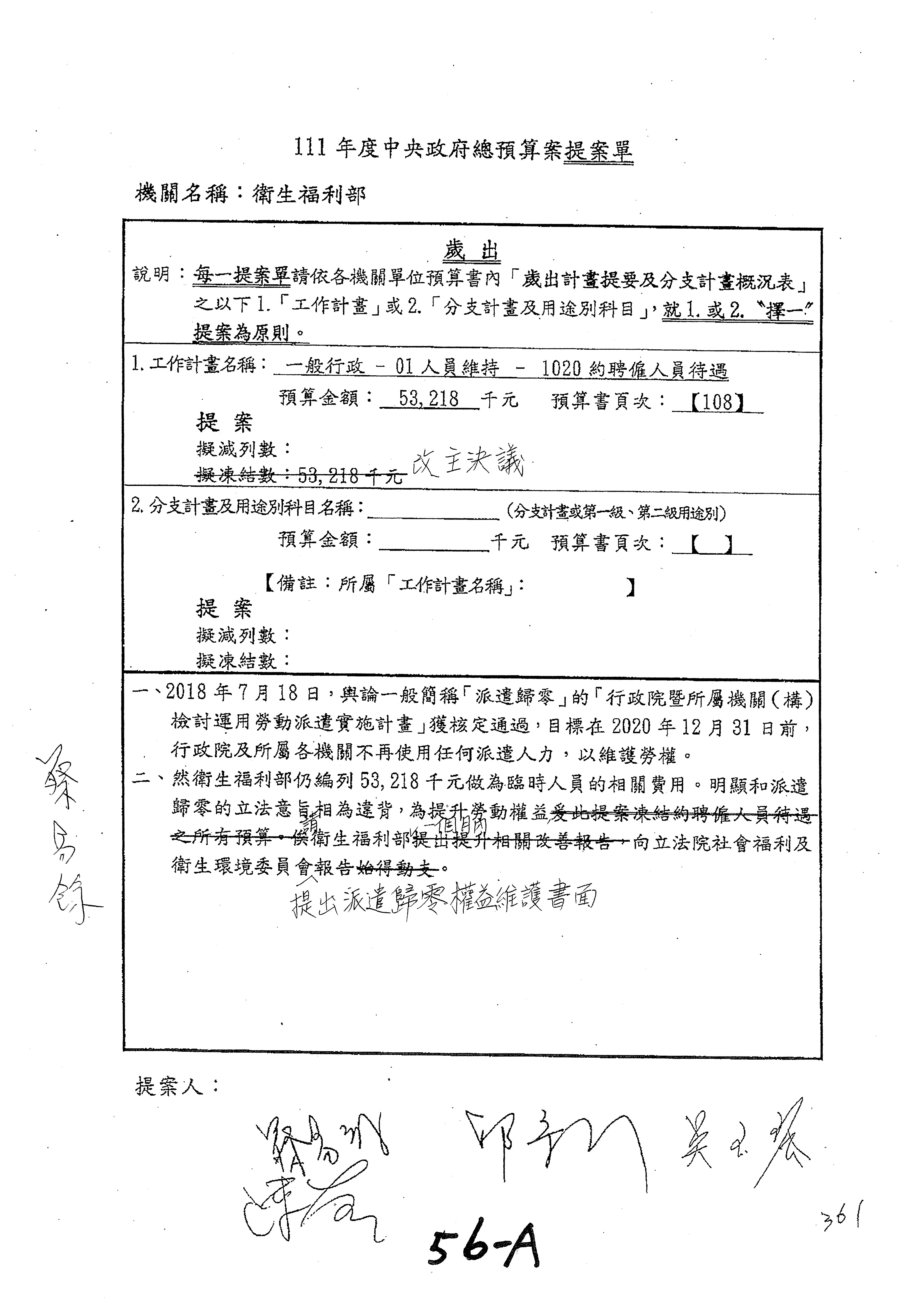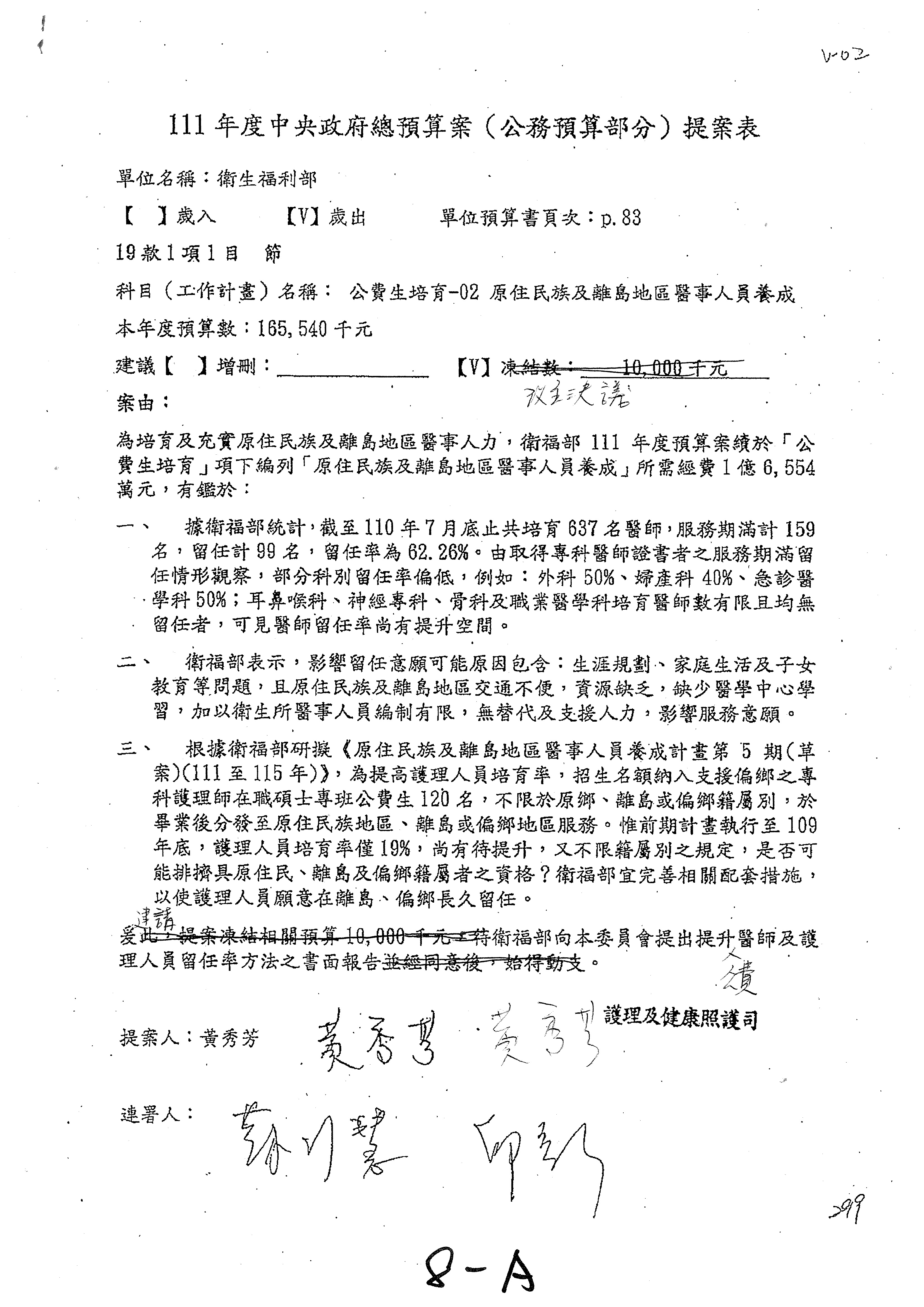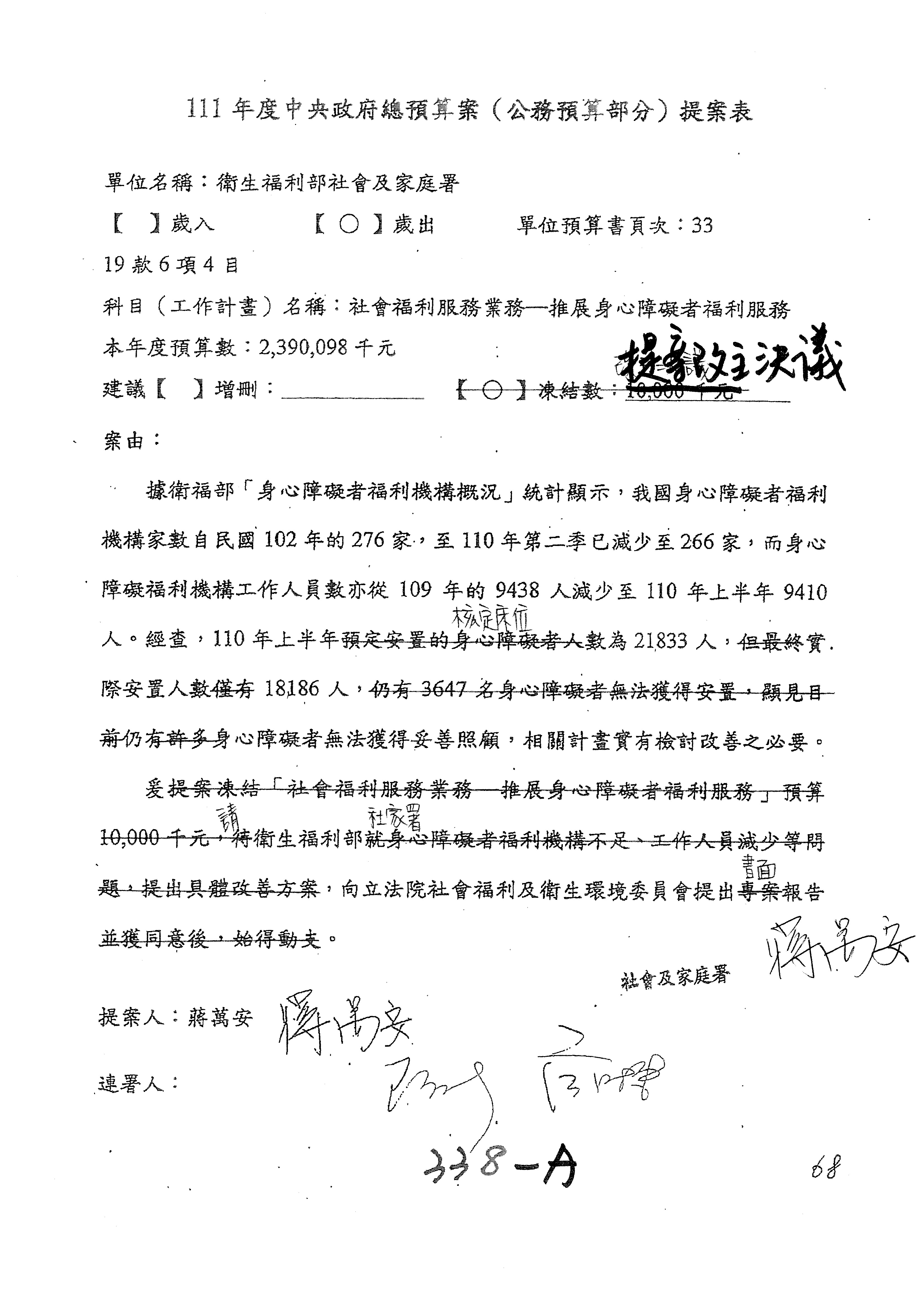 祝司長健芳:剛才吳委員提到第61案和第62案都是針對重症兒,包括喘息的機制建立及整個照服員的訓練,這個部分我們也都遵照委員剛剛的指示,另外再凍100萬元。