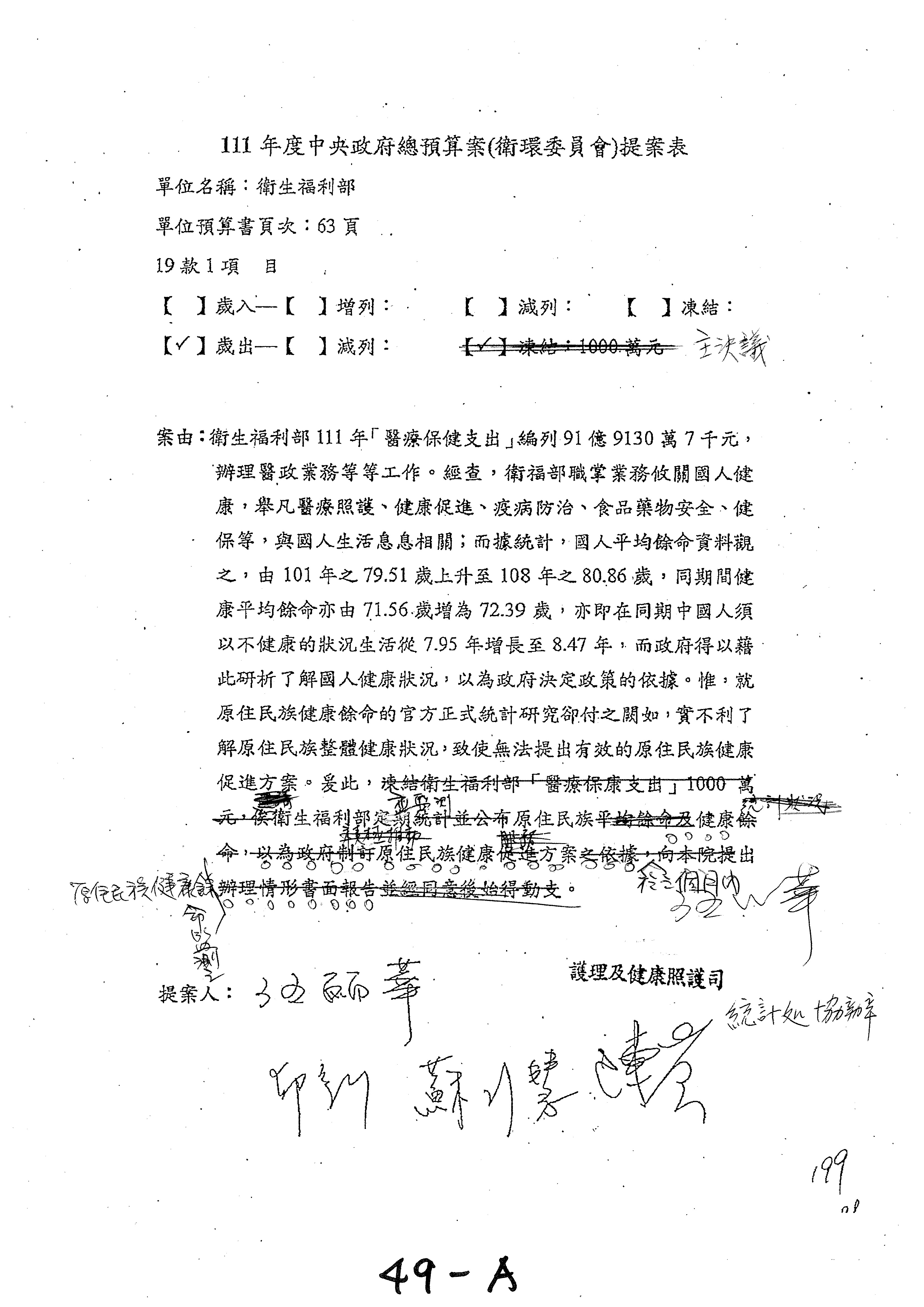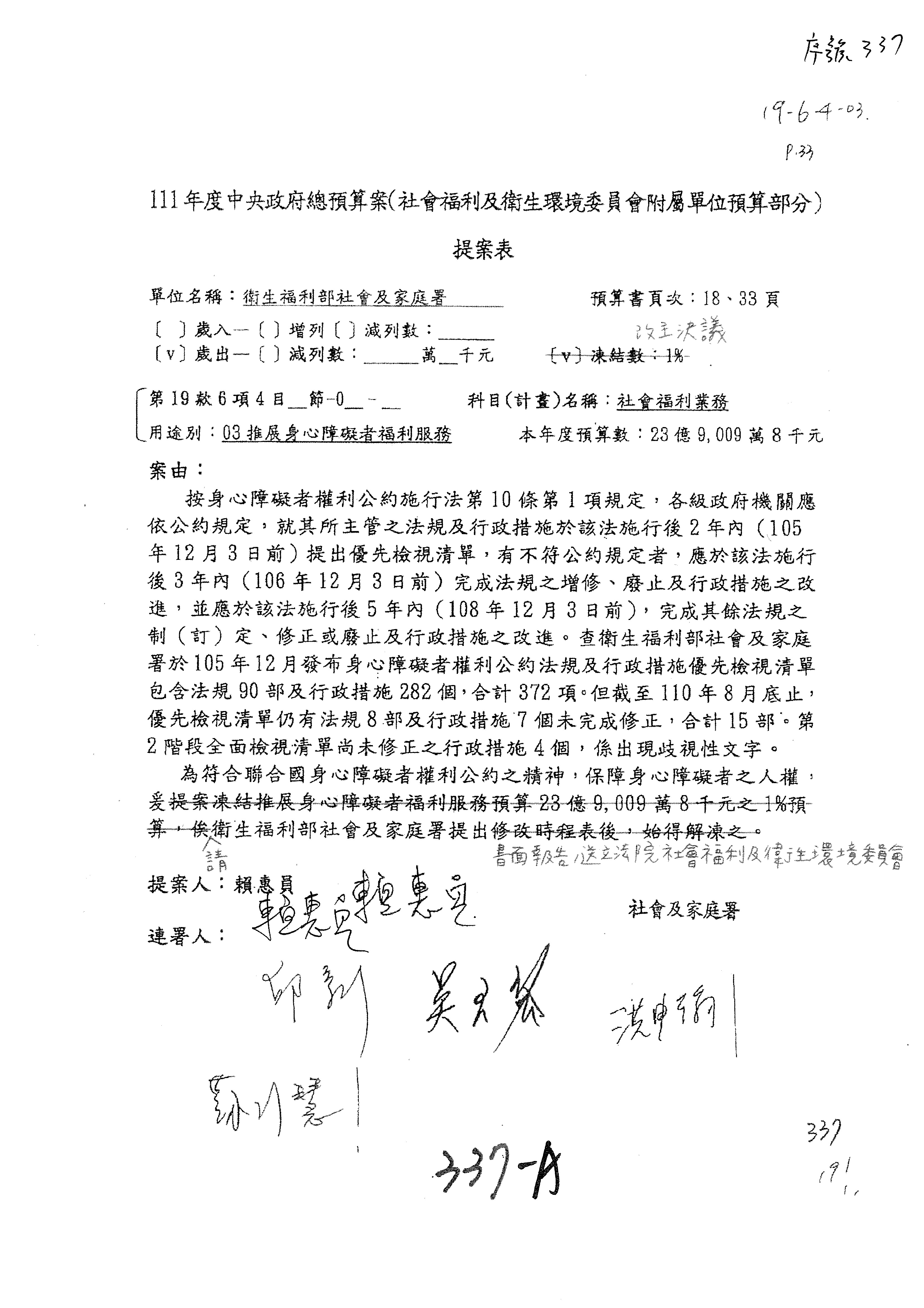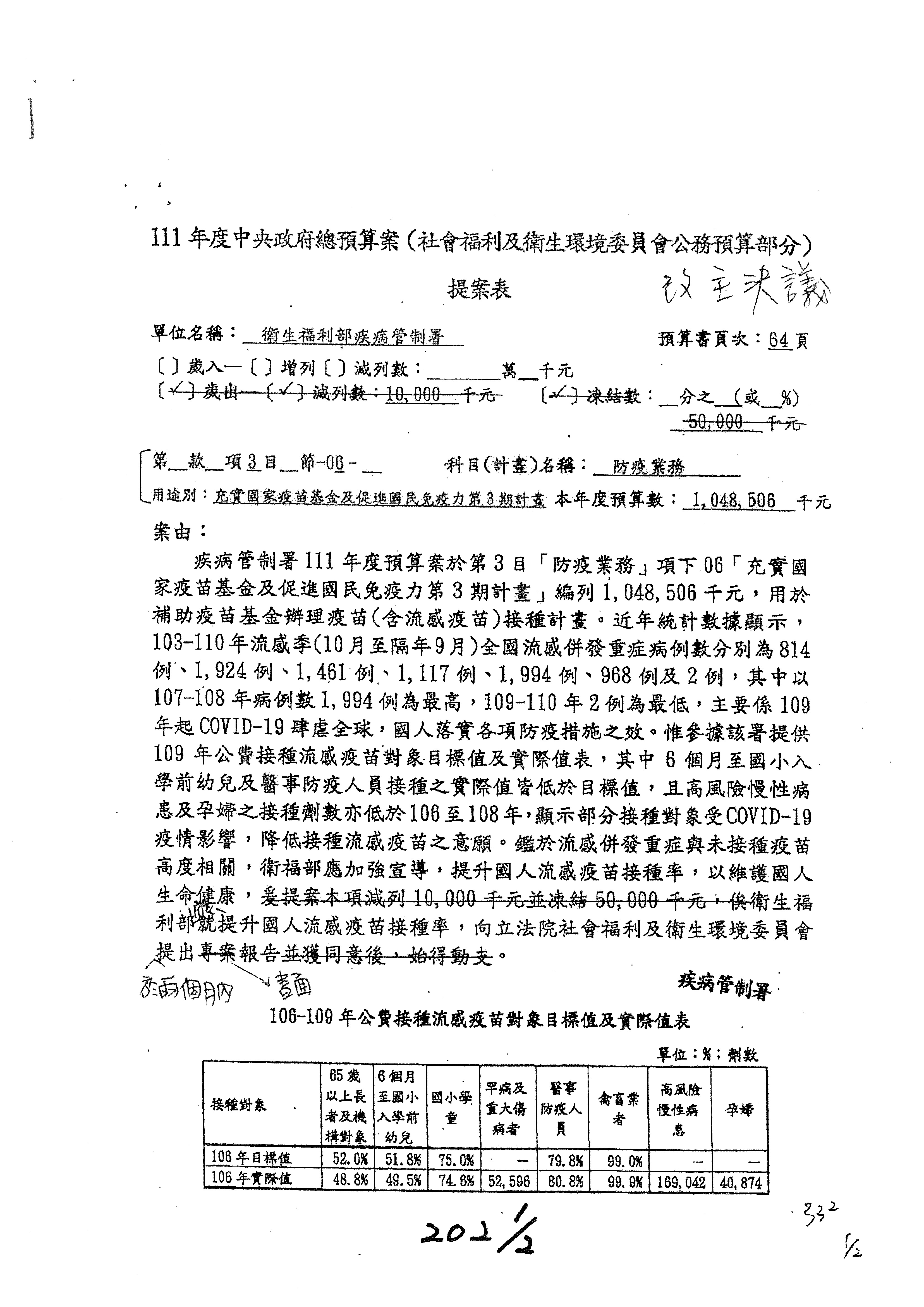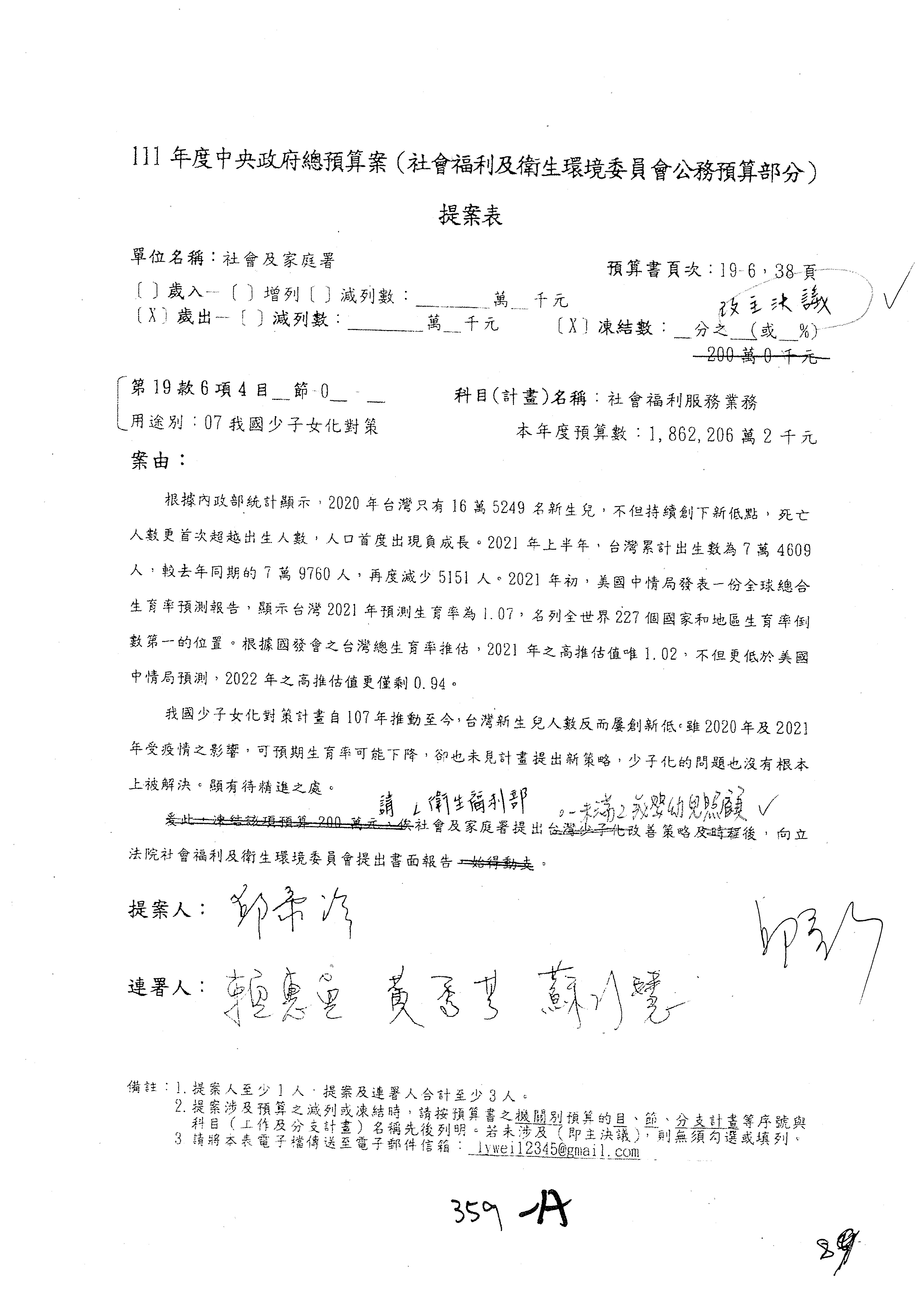 祝司長健芳:剛才吳委員提到第61案和第62案都是針對重症兒,包括喘息的機制建立及整個照服員的訓練,這個部分我們也都遵照委員剛剛的指示,另外再凍100萬元。