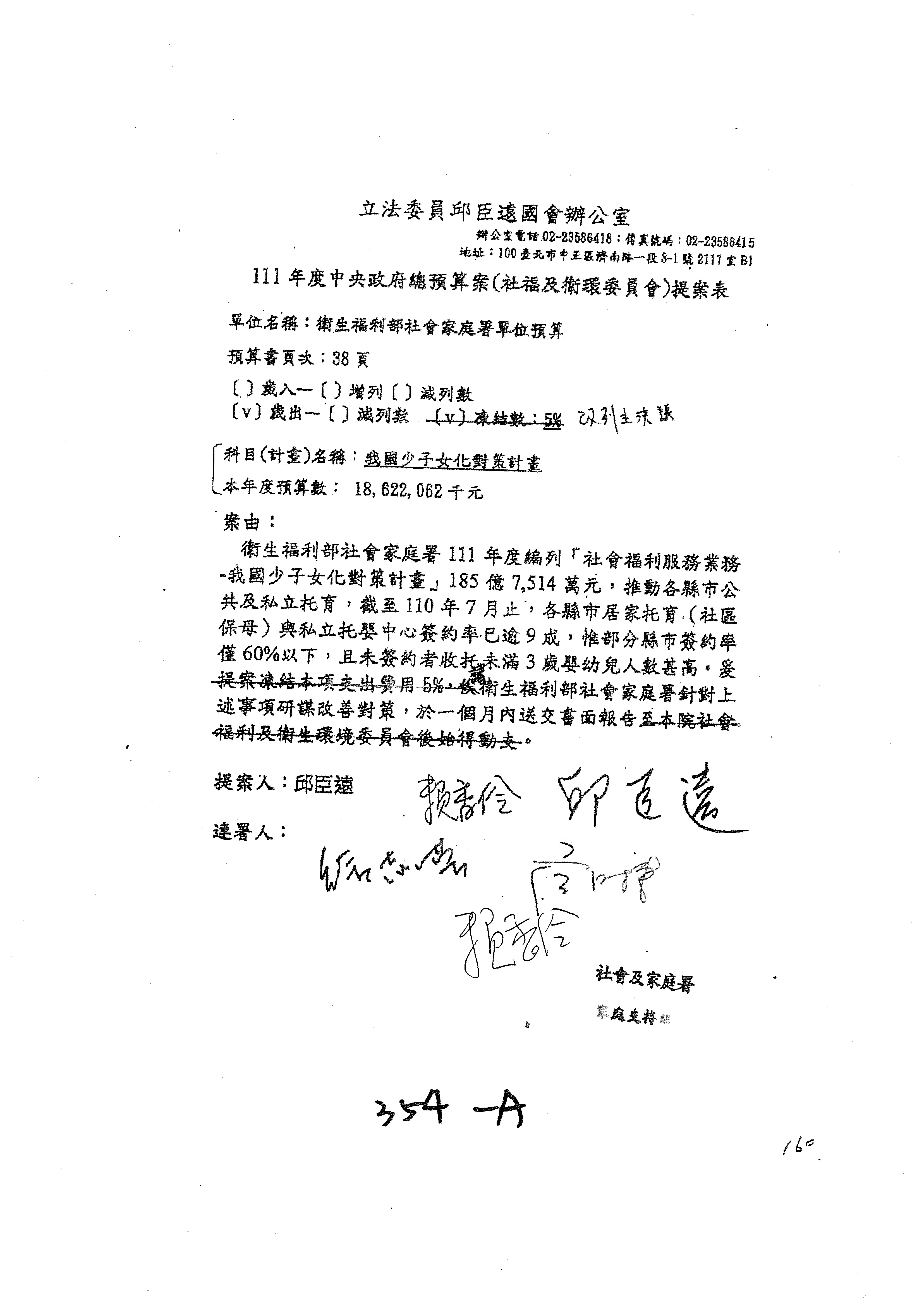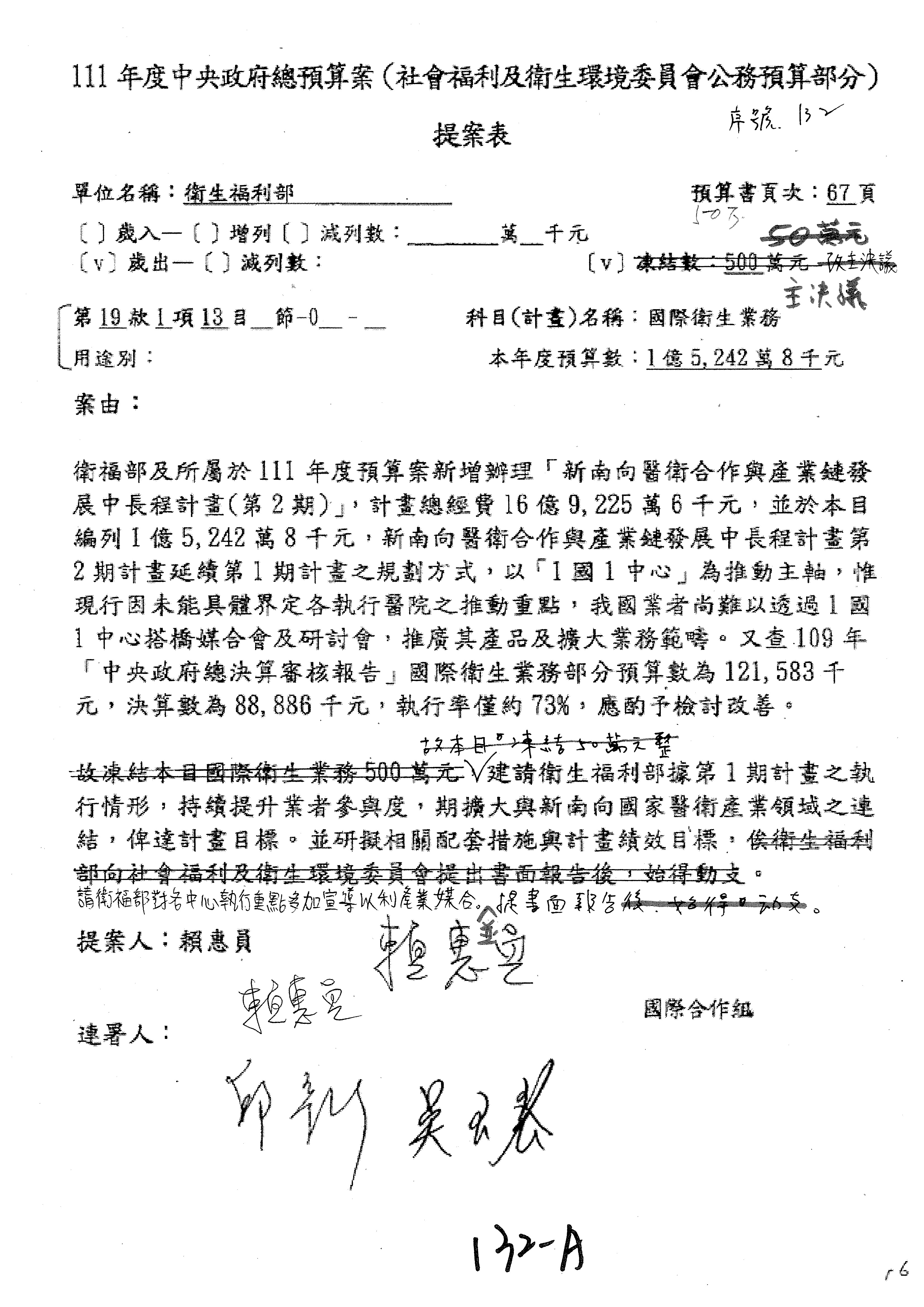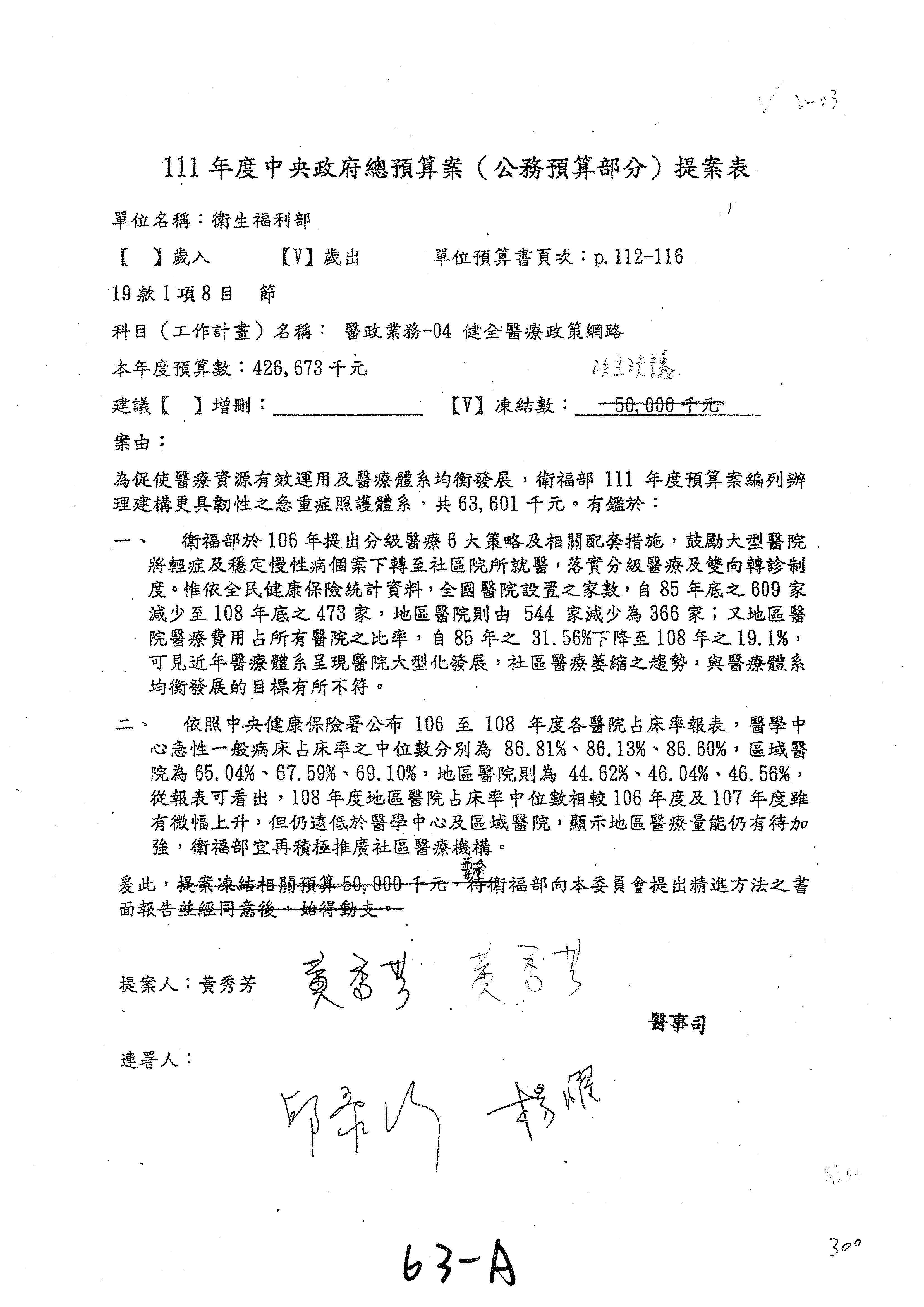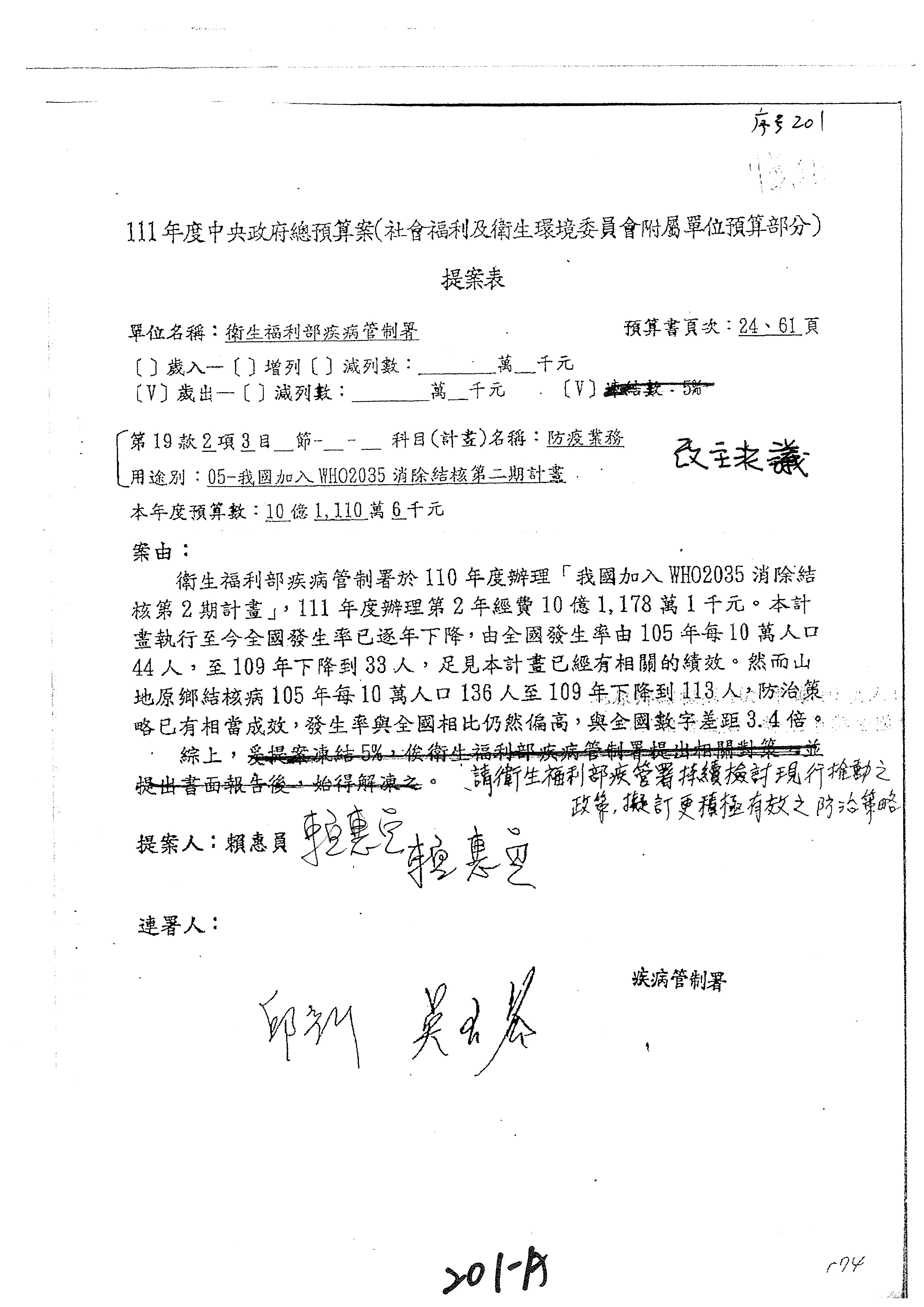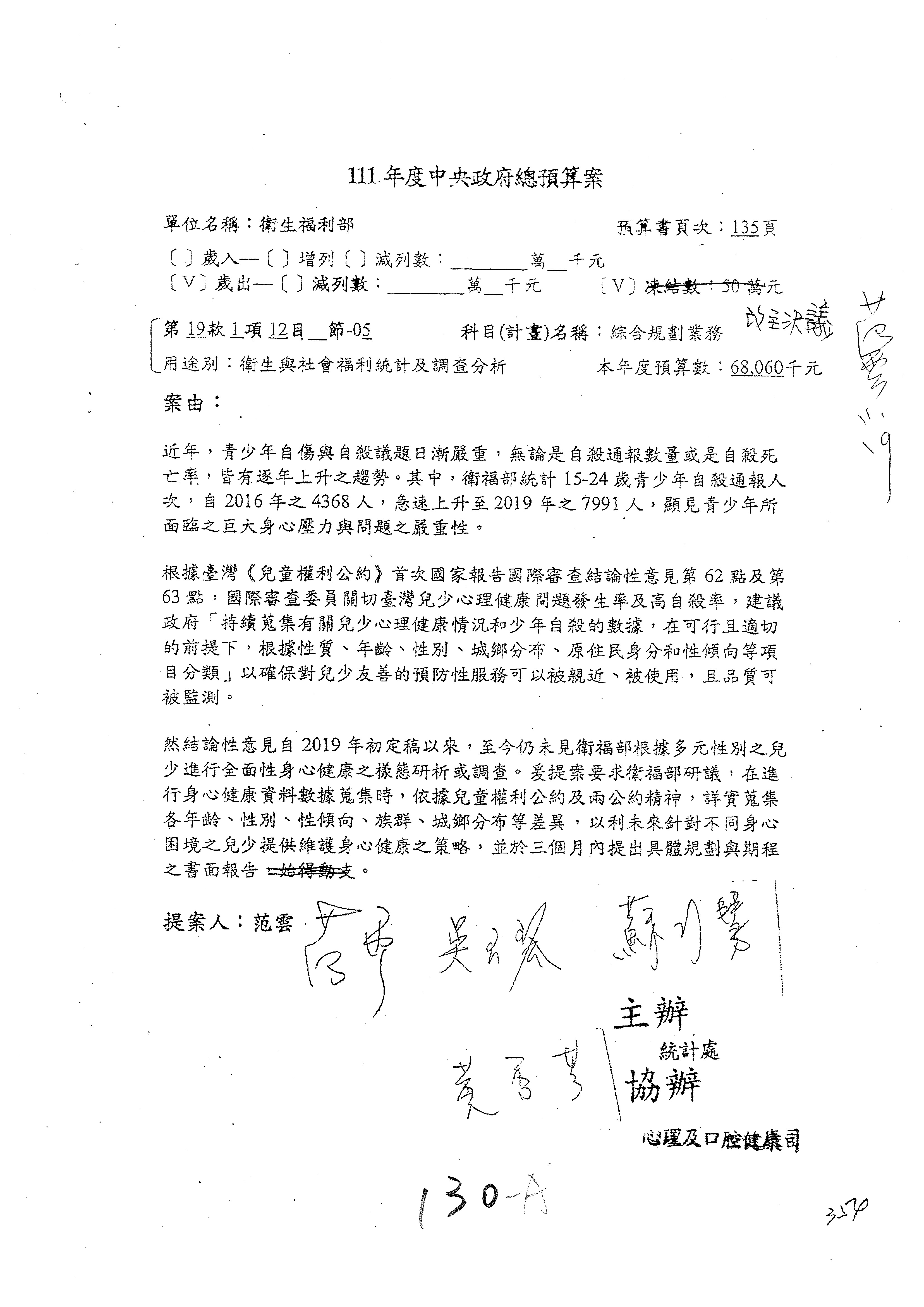 祝司長健芳:剛才吳委員提到第61案和第62案都是針對重症兒,包括喘息的機制建立及整個照服員的訓練,這個部分我們也都遵照委員剛剛的指示,另外再凍100萬元。