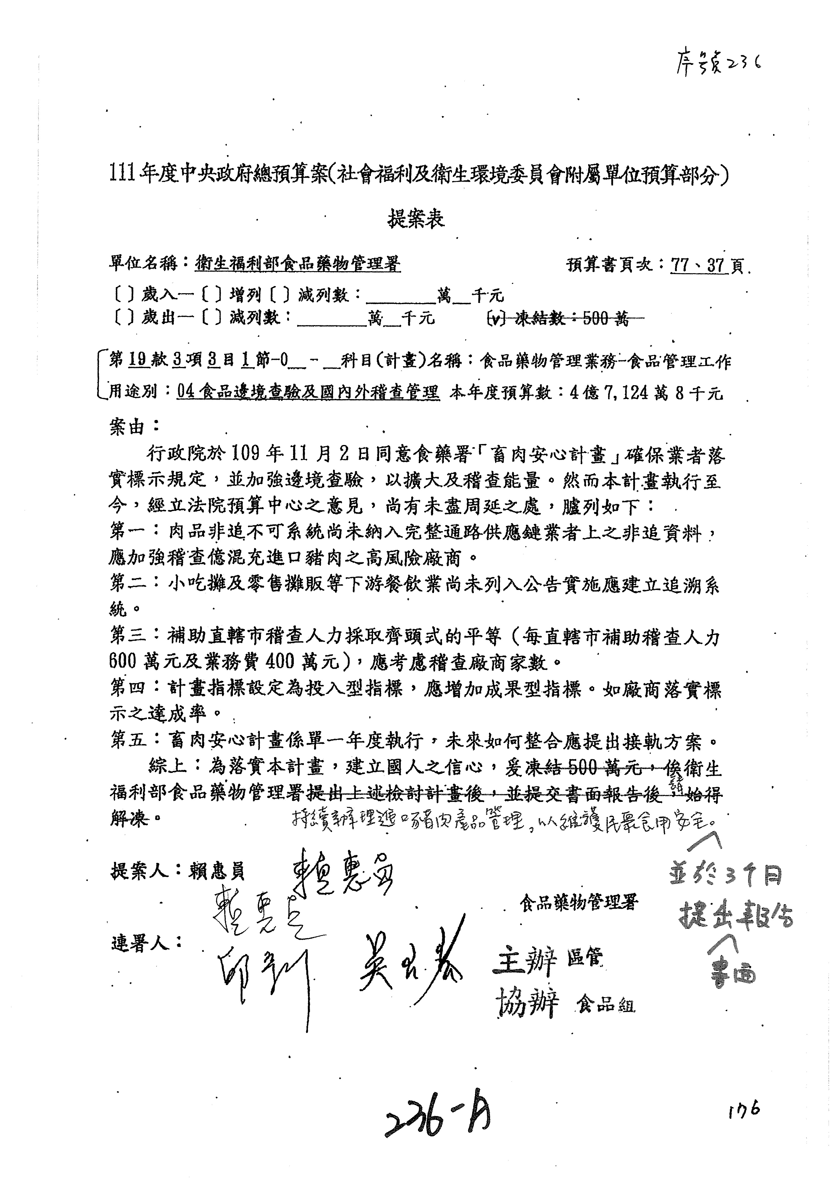 劉司長越萍:謝謝賴惠員委員同意修改文字後,我們遵照辦理,已經簽名。