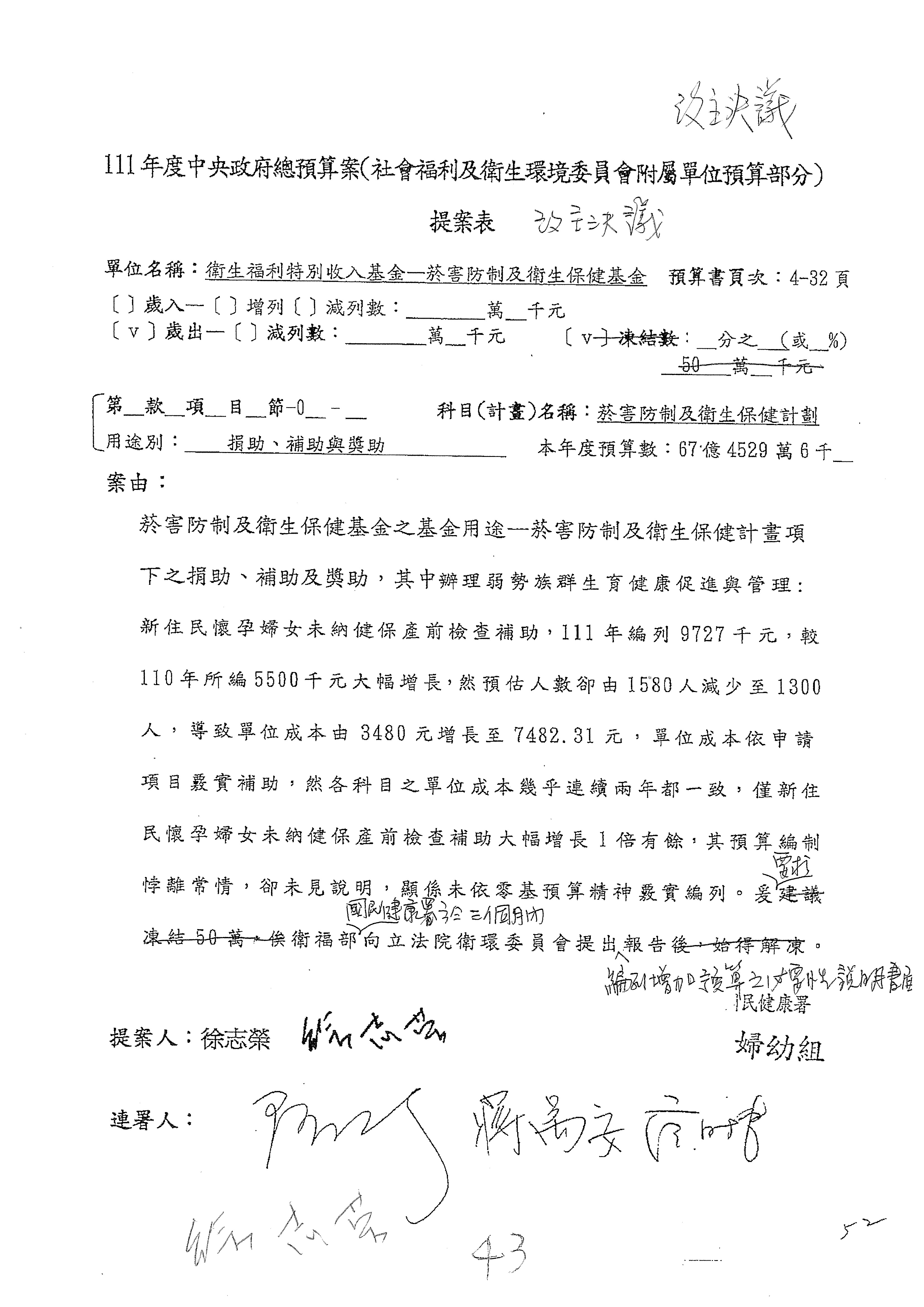 祝司長健芳:黃秀芳委員已經簽名同意改主決議。