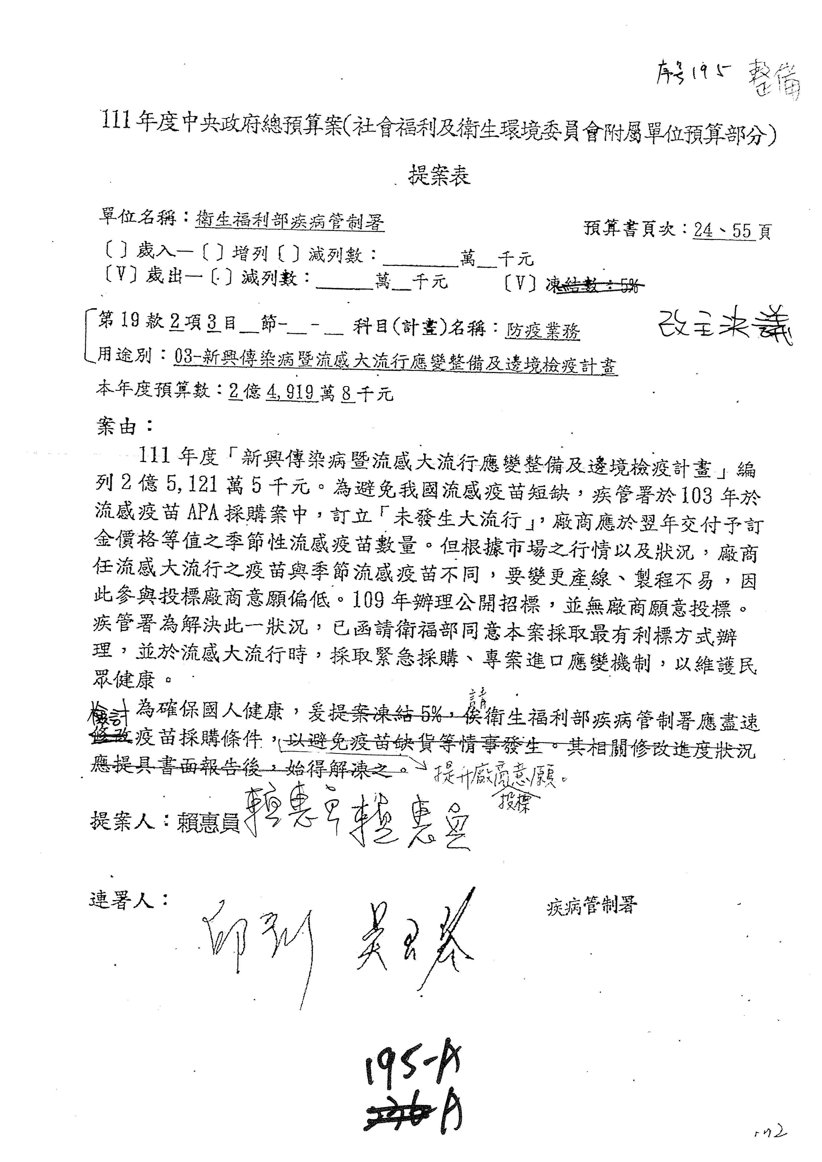 陳委員瑩:我的主決議寫得很清楚,主責就是政風處,再說疾管署要怎麼調查?疾管署的專長不在調查,這樣寫很奇怪!怎麼會一直抗拒,一直在卸責?行政調查本來就不是疾管署的業務,即便經費來自疾管署,也不該讓疾管署去做調查!舉例來說,如果台電發生弊案,經費來自台電業務單位,難道台電要自己調查嗎?這樣說不通的!調查完再自己送檢調?這樣不行吧?所以你們沒有修改?我剛剛接到的消息純屬誤會?
