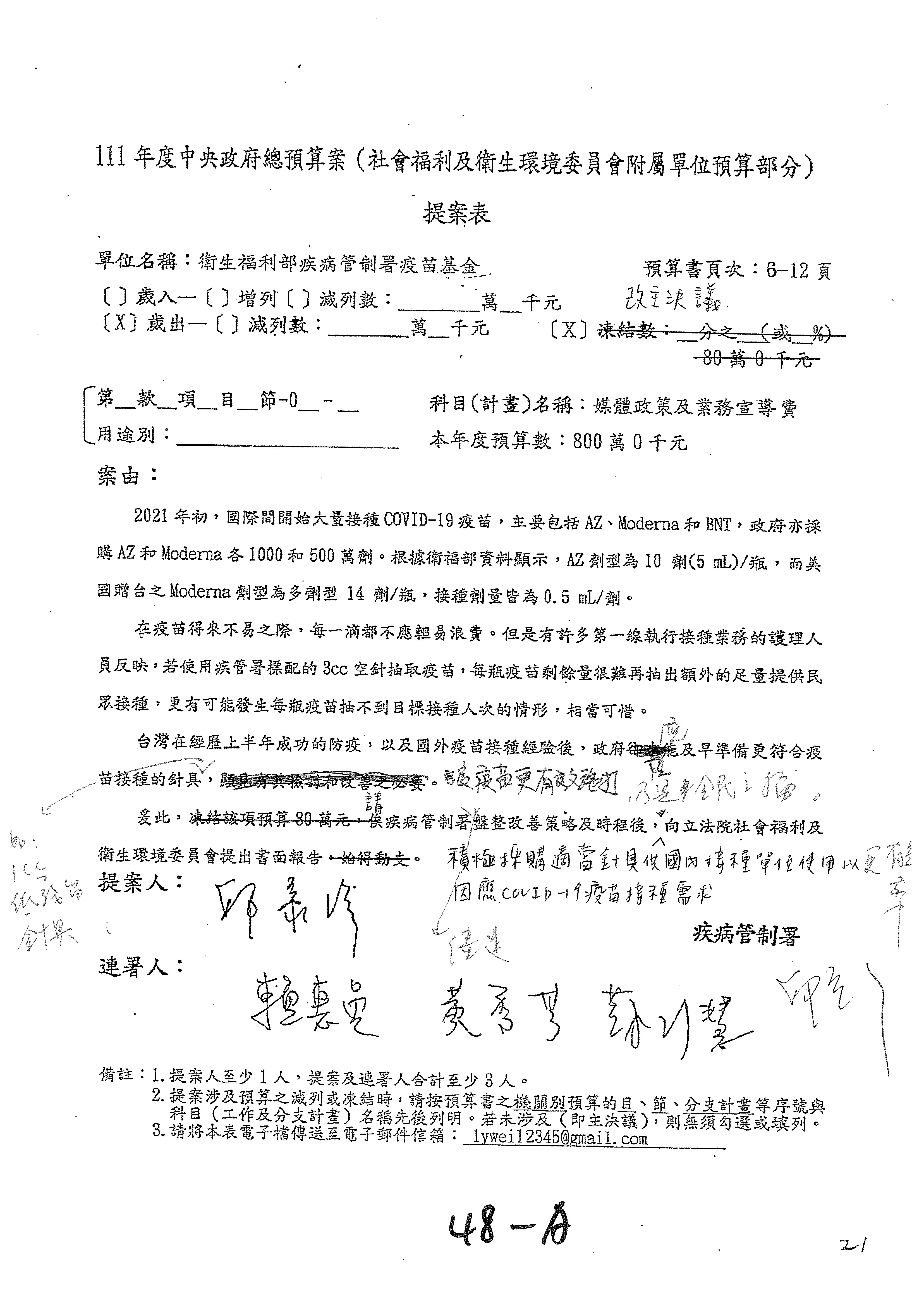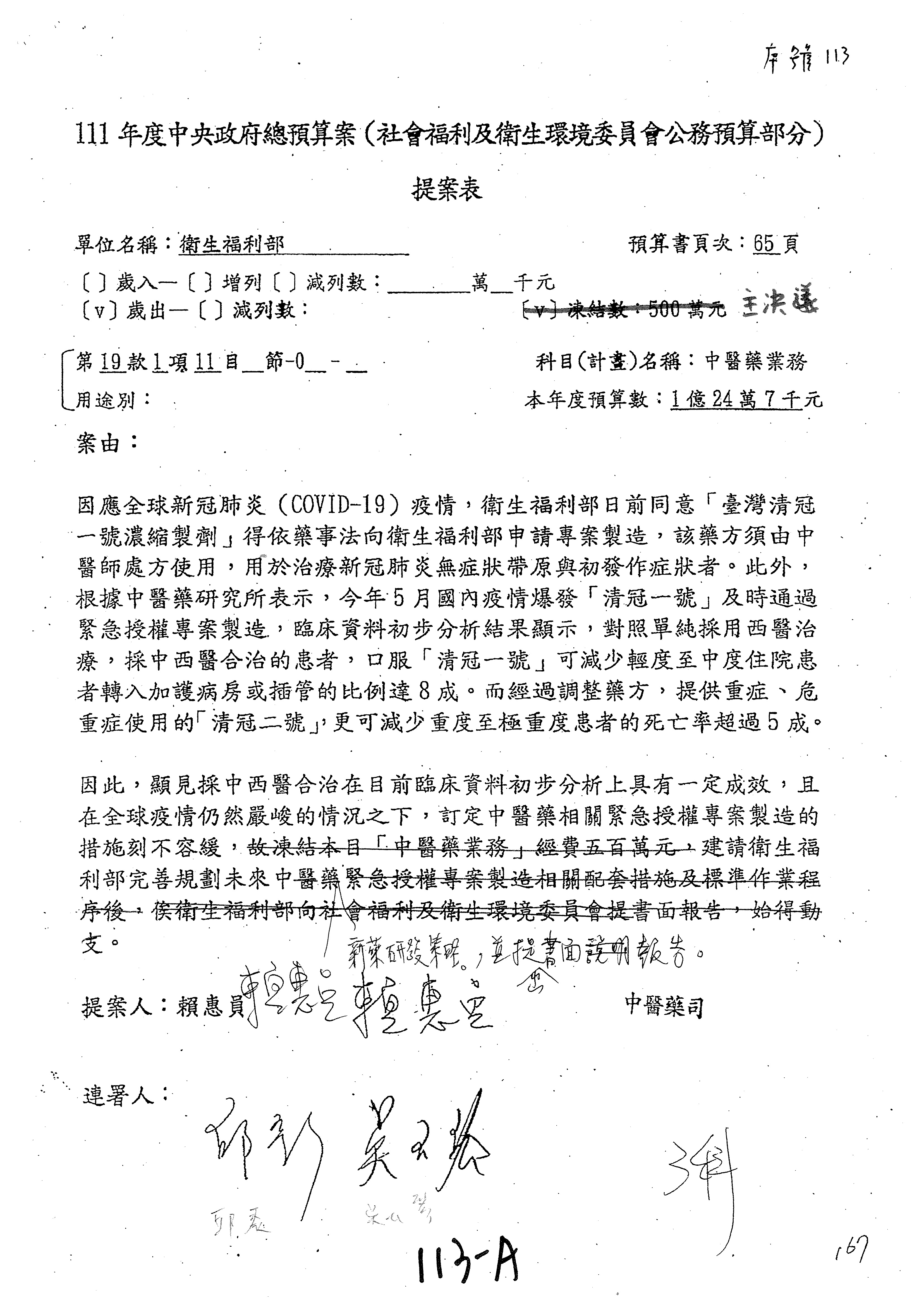 周署長志浩:謝謝陳委員瑩。建議本案酌修文字,改為主決議。倒數第五行文字建議修正為:「為保障民眾權益」……「要求疾管署在清冠一號仍屬處方用藥時」……「由政府置特別預算,提供公費清冠一號給符合藥物使用之民眾」。