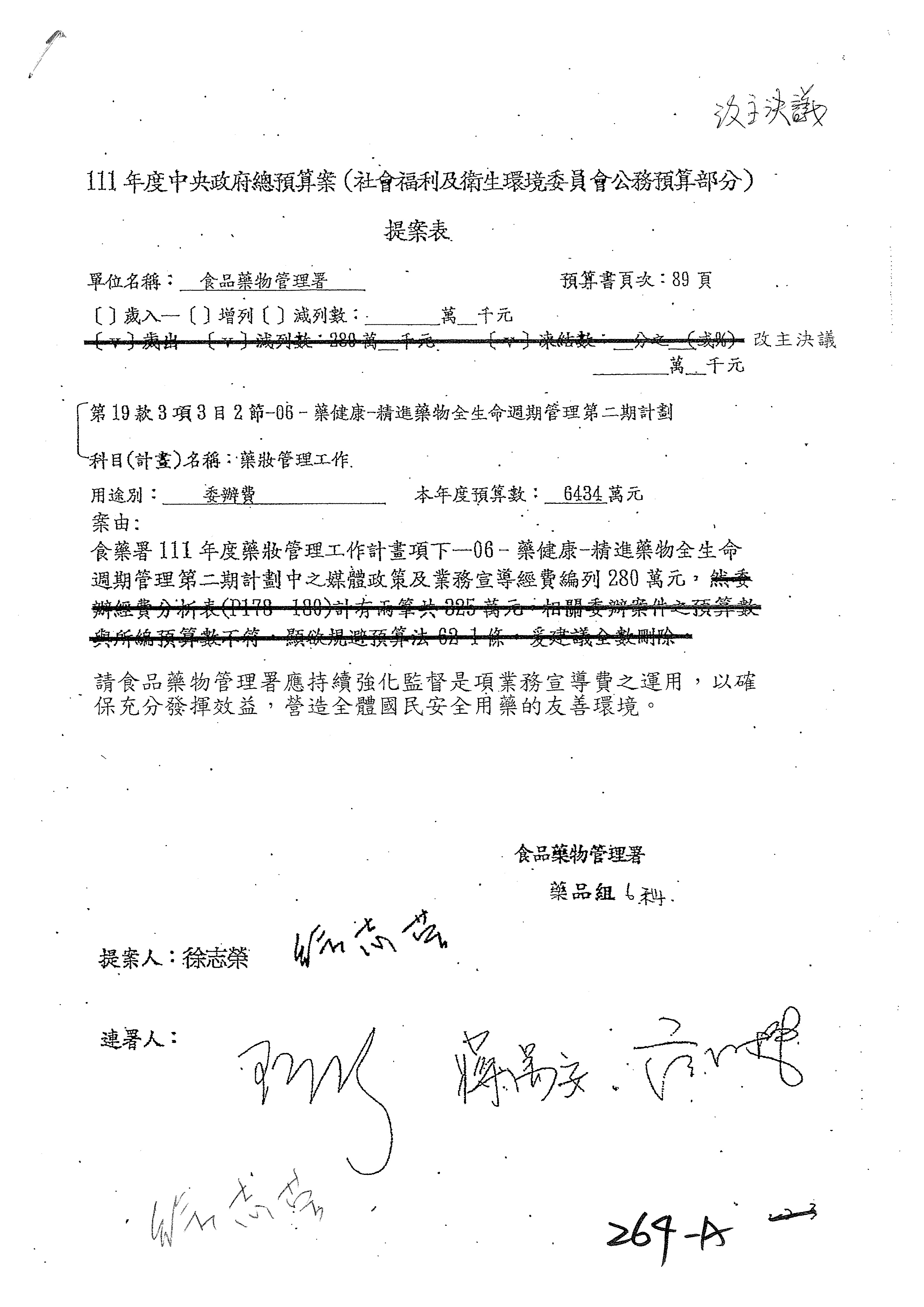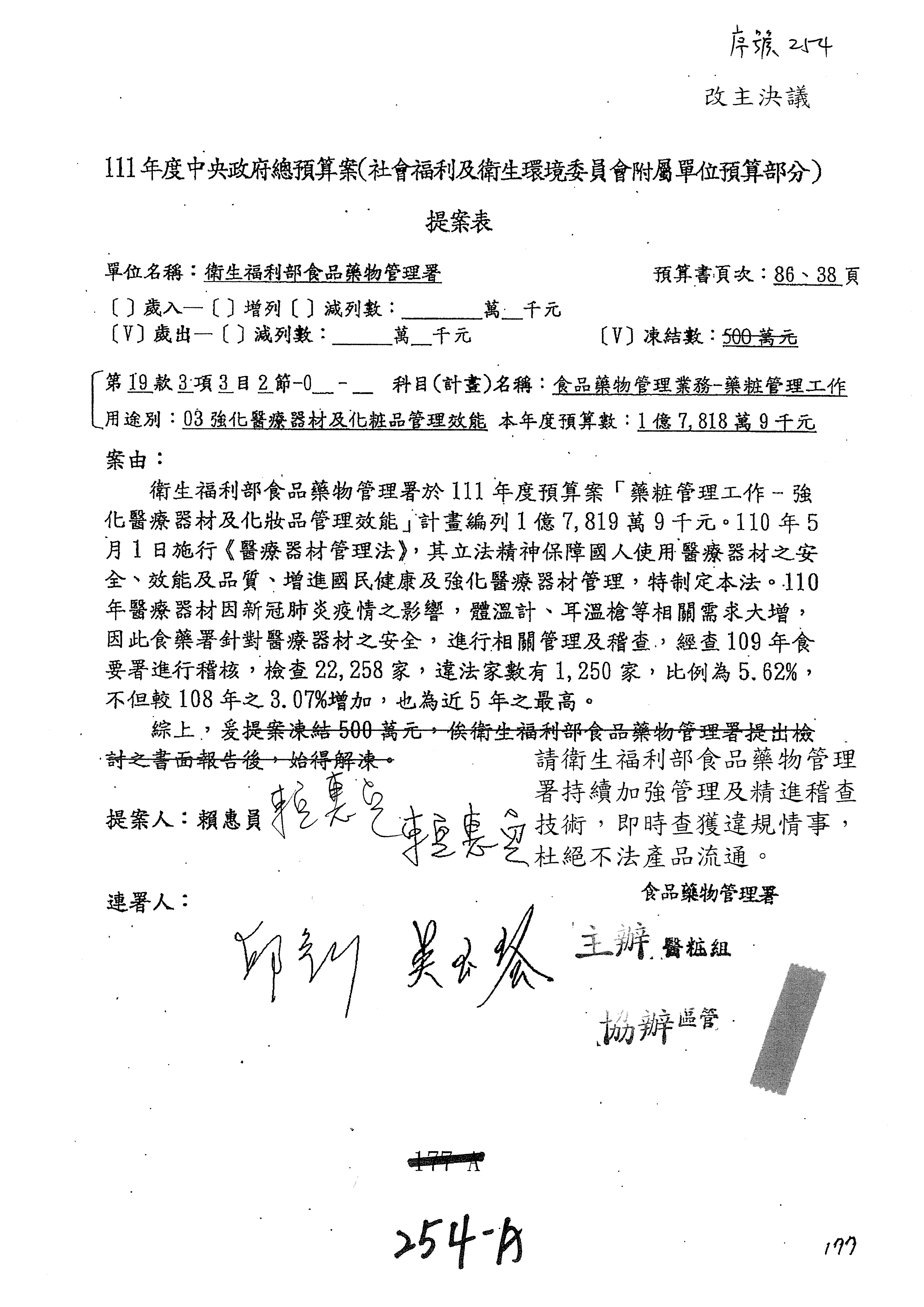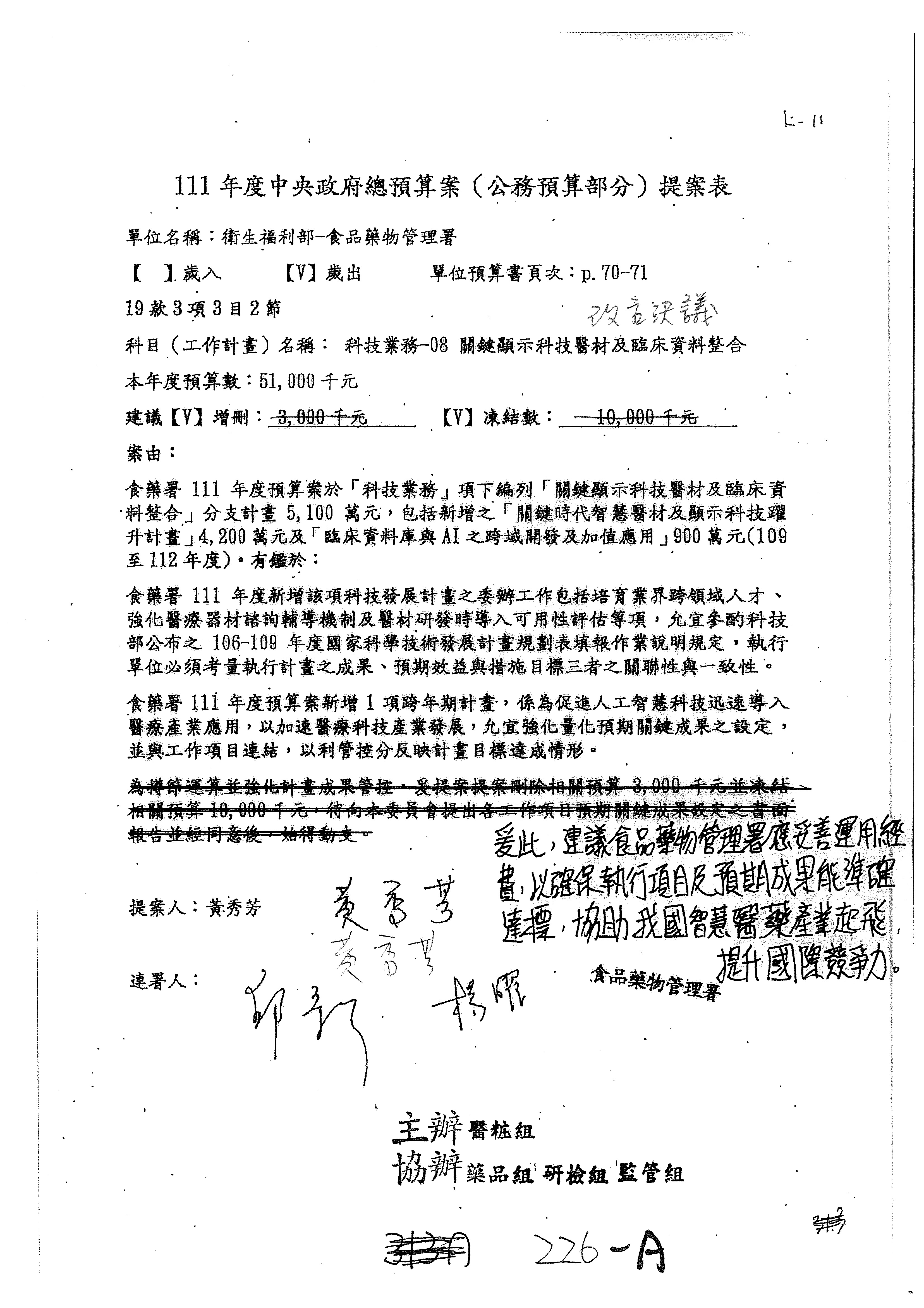 劉司長越萍:黃秀芳委員已經簽名同意改主決議。