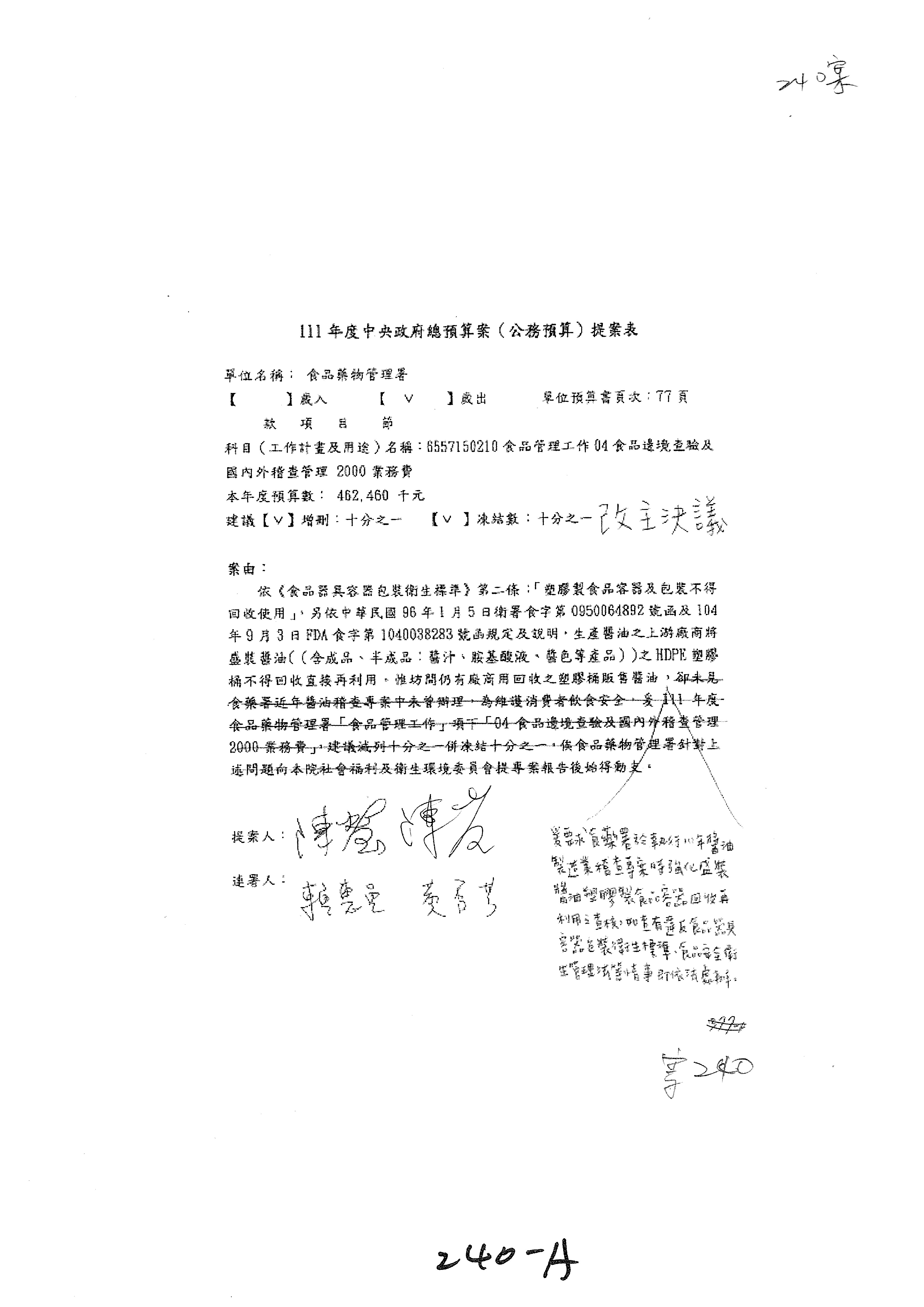 劉司長越萍:蘇委員不在場,我們溝通的版本她有看,但還沒簽名。