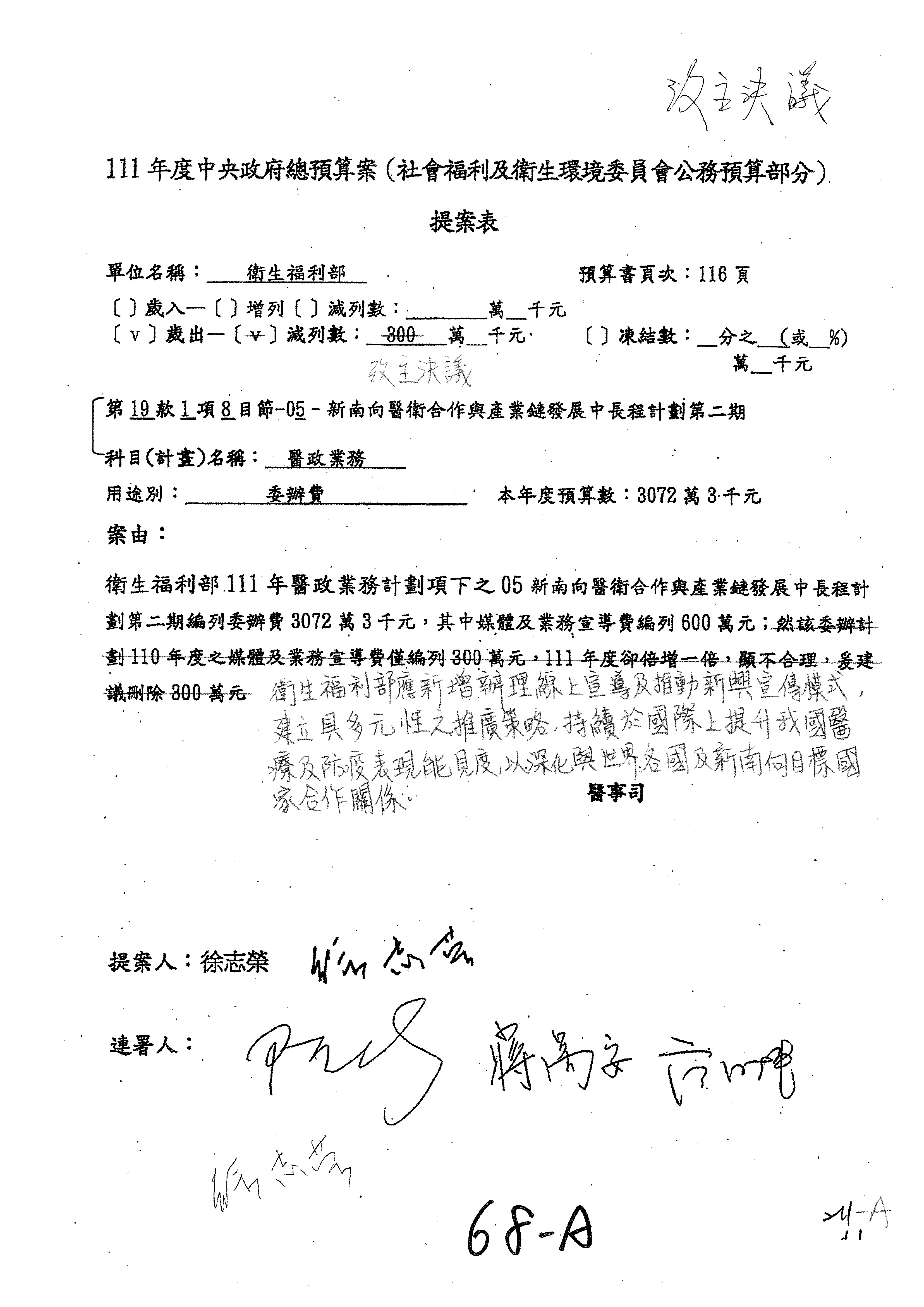 諶司長立中:劉建國委員已經簽字同意改為主決議。
