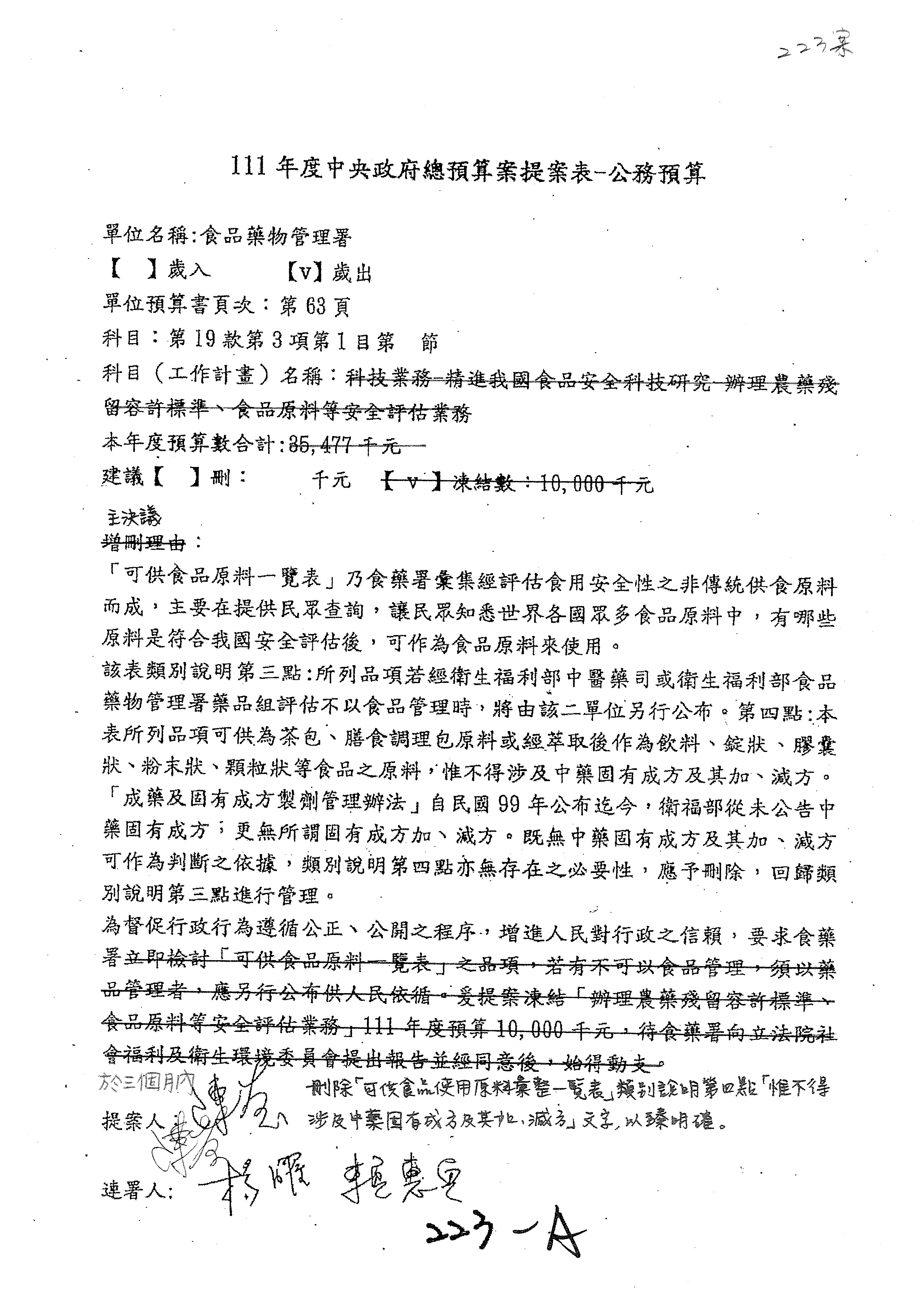 主席:如果主決議裡面有凍結或刪除,授權本委員會議事人員把凍結或刪除的項目劃掉。現在休息。