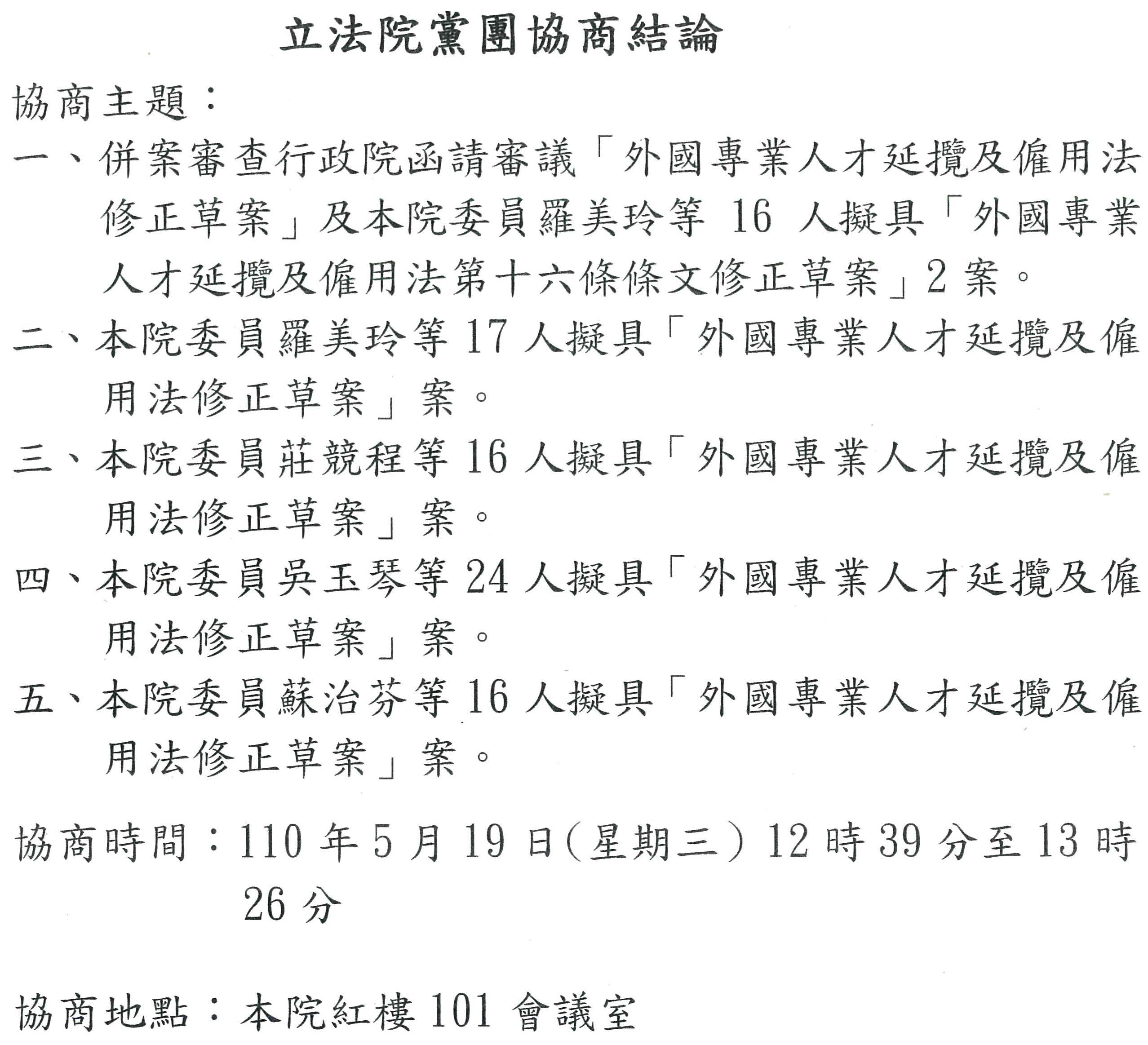 立法院黨團協商結論