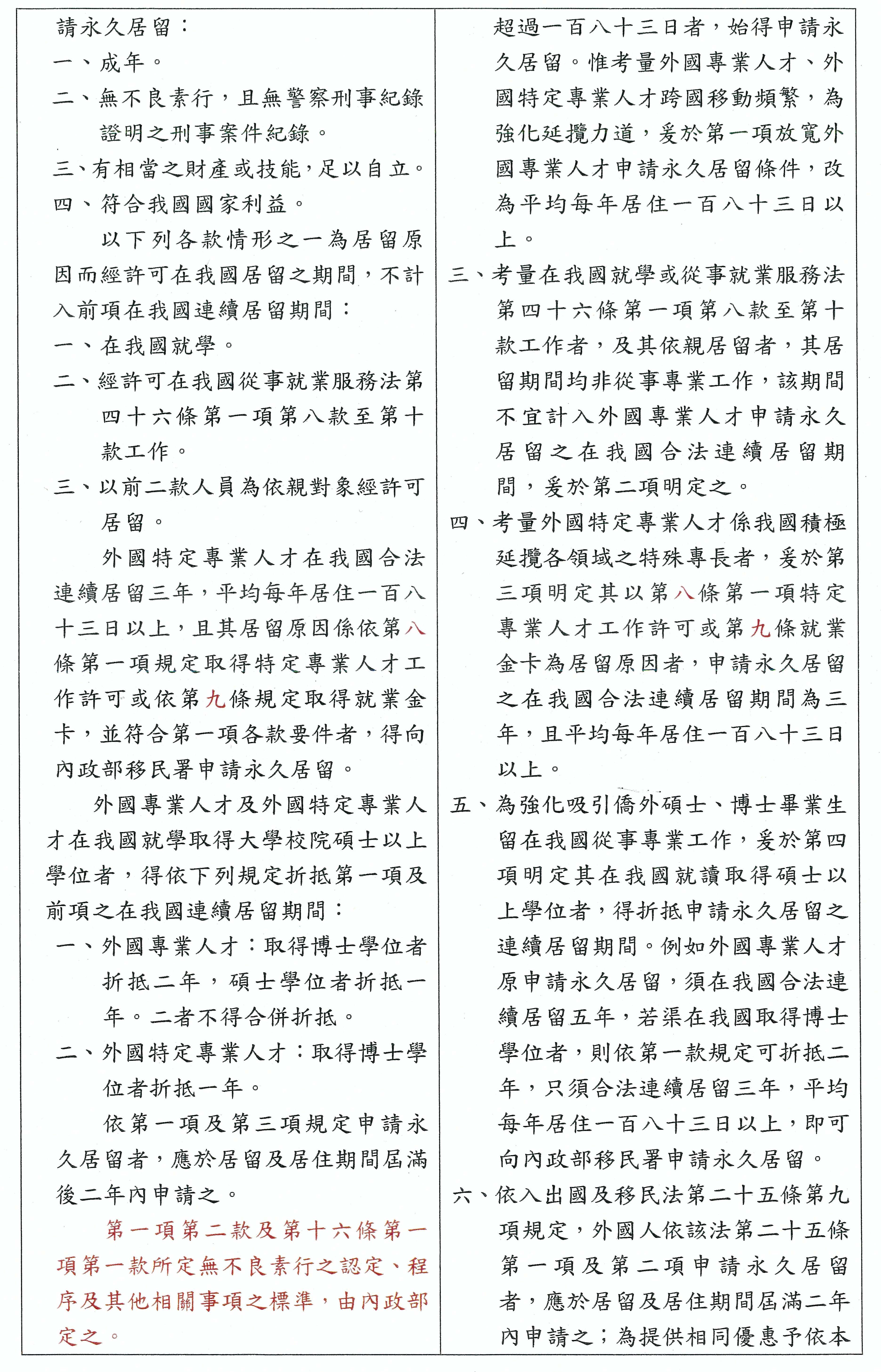 外國專業人才經許可在我國從事前項專業工作者,其停留、居留及永久居留,除本法另有規定外,依入出國及移民法之規定辦理。