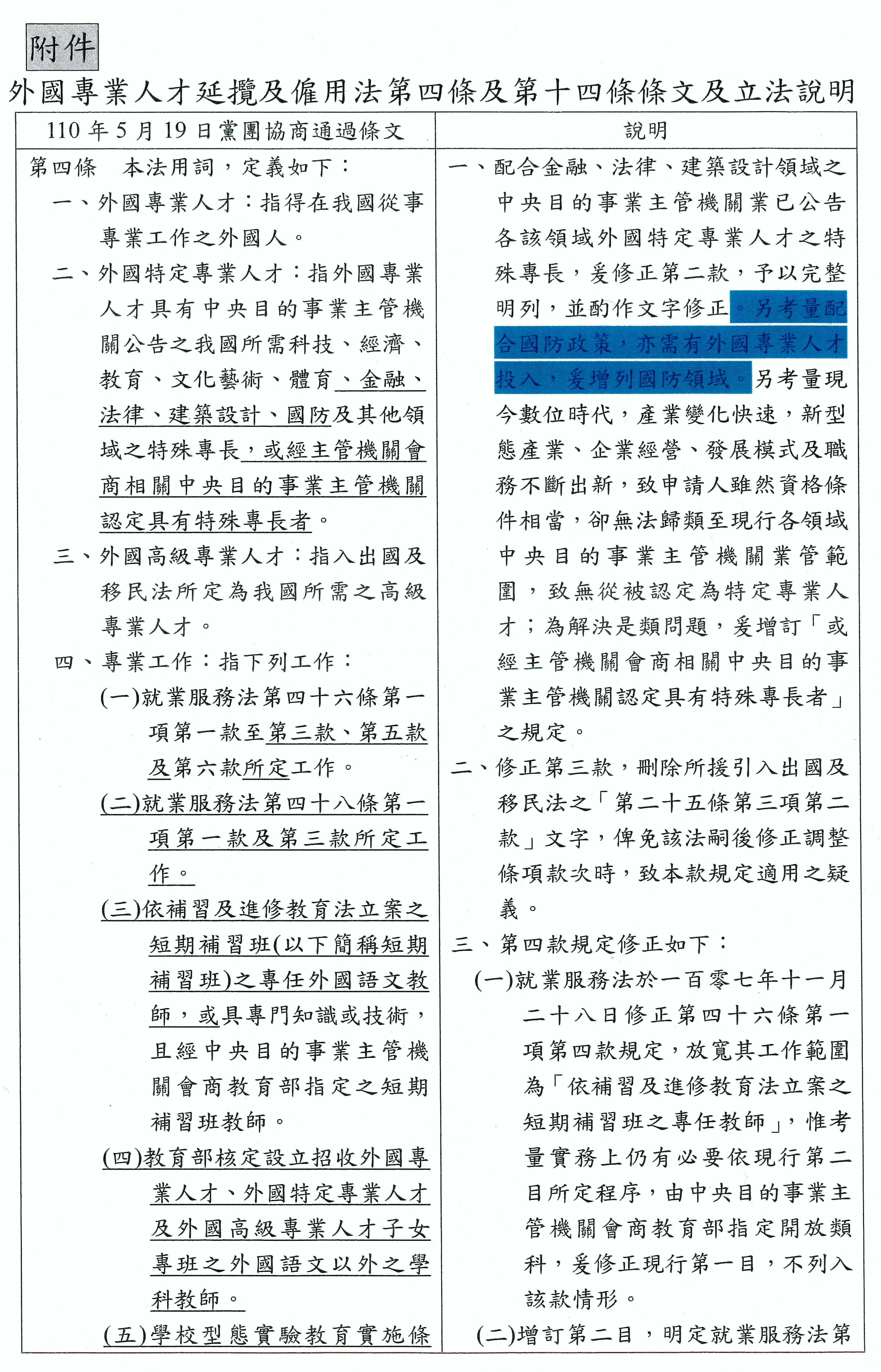 本案決議:外國專業人才延攬及僱用法修正通過。