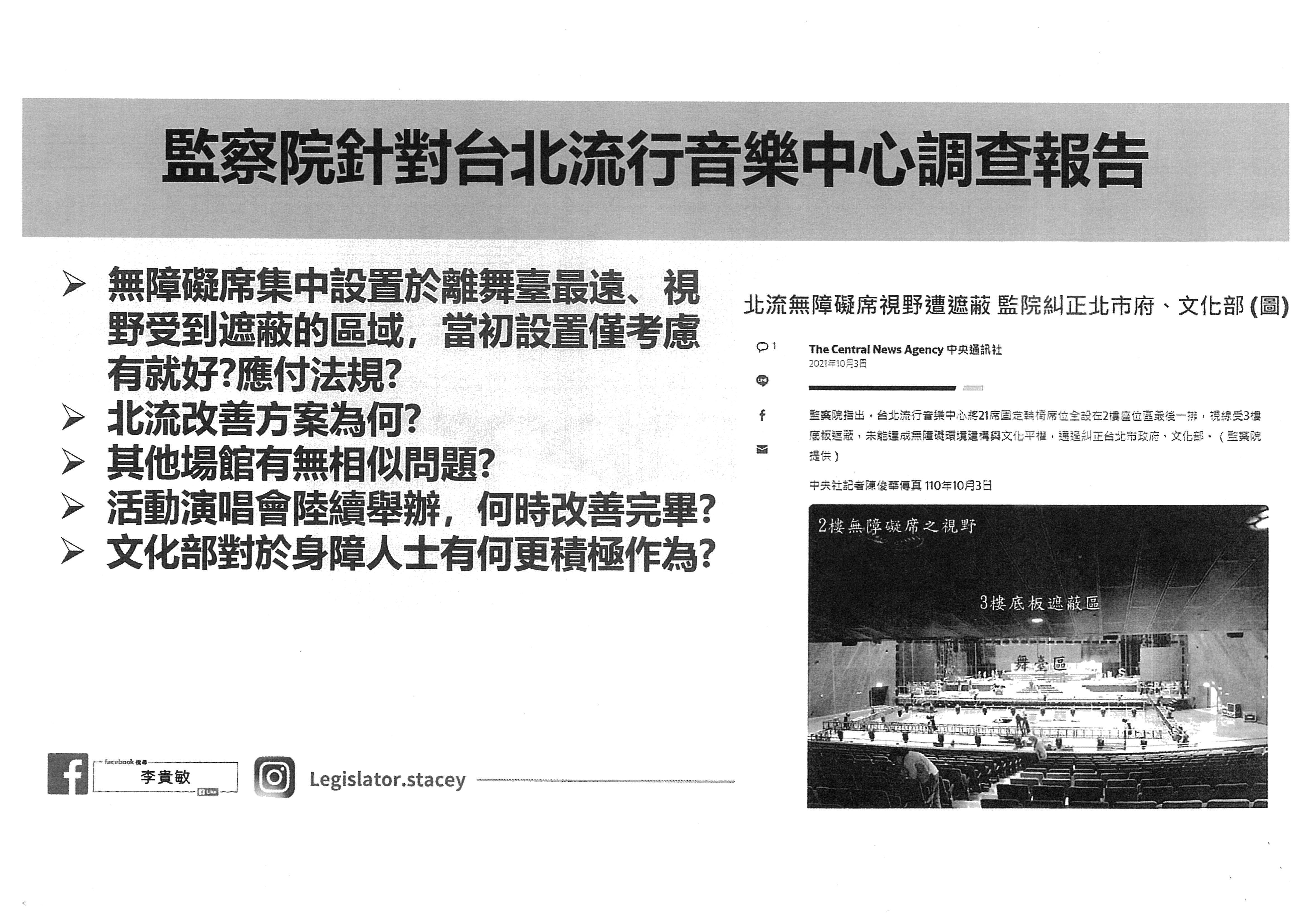 在防疫期間我們也同步在努力,打造良好的藝文發展環境。像是修訂「文化藝術事業減免營業稅及娛樂稅辦法」,推動圖書出版品銷售收入免徵營業稅政策;修正「文化藝術獎助及促進條例」,健全藝文環境生態系;通過國立臺灣歷史博物館及國立臺灣文學館組織法,將該二館由四級機關升格為三級機關。以上,我要再次感謝所有委員的支持。而目前「文化創意產業發展法」及「公共電視法」正研議修正中,期待健全文創產業及公共媒體發展的法制環境。