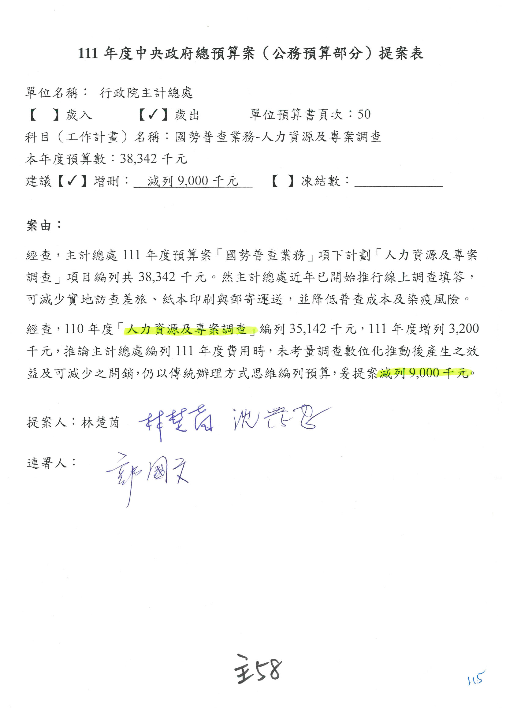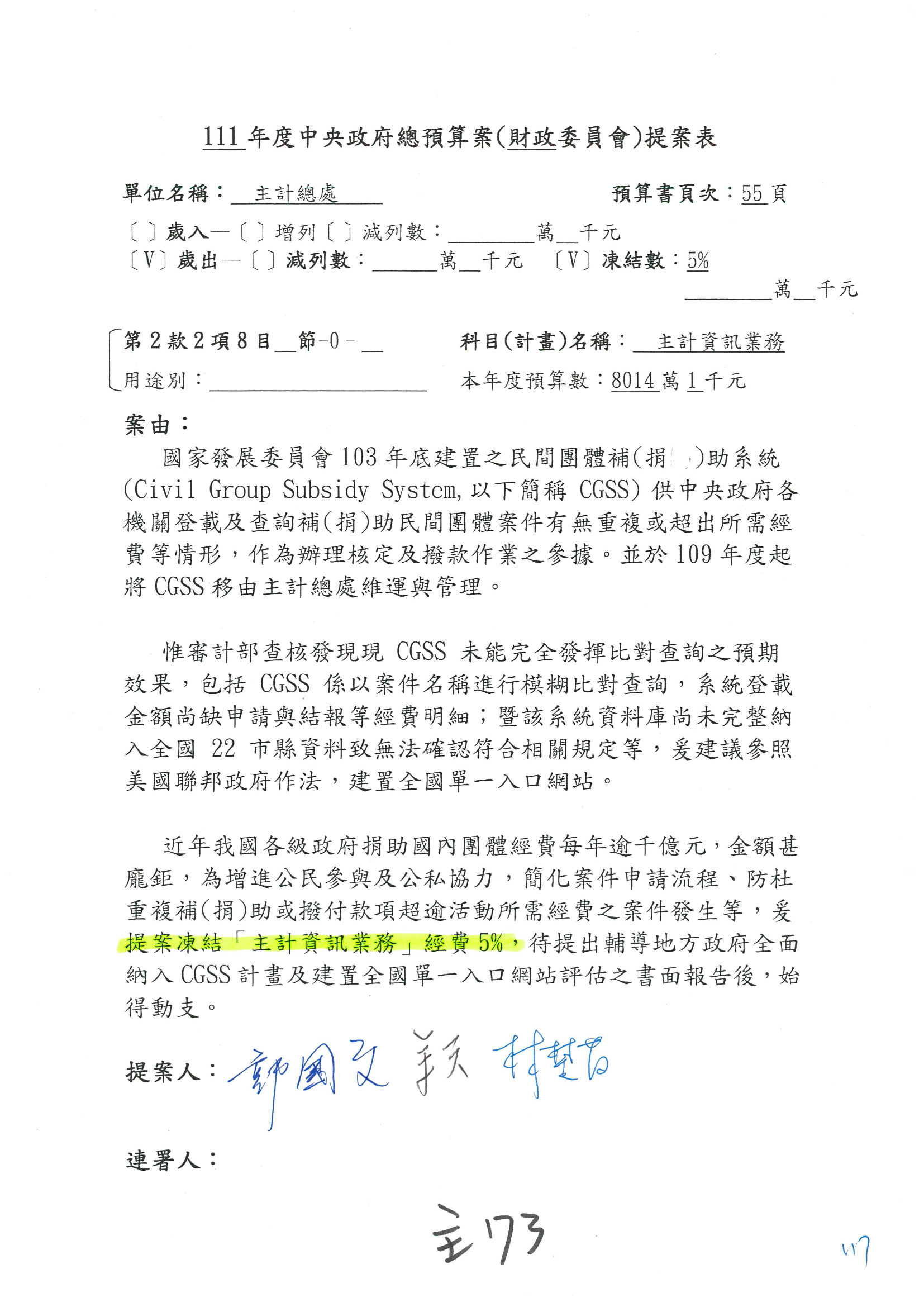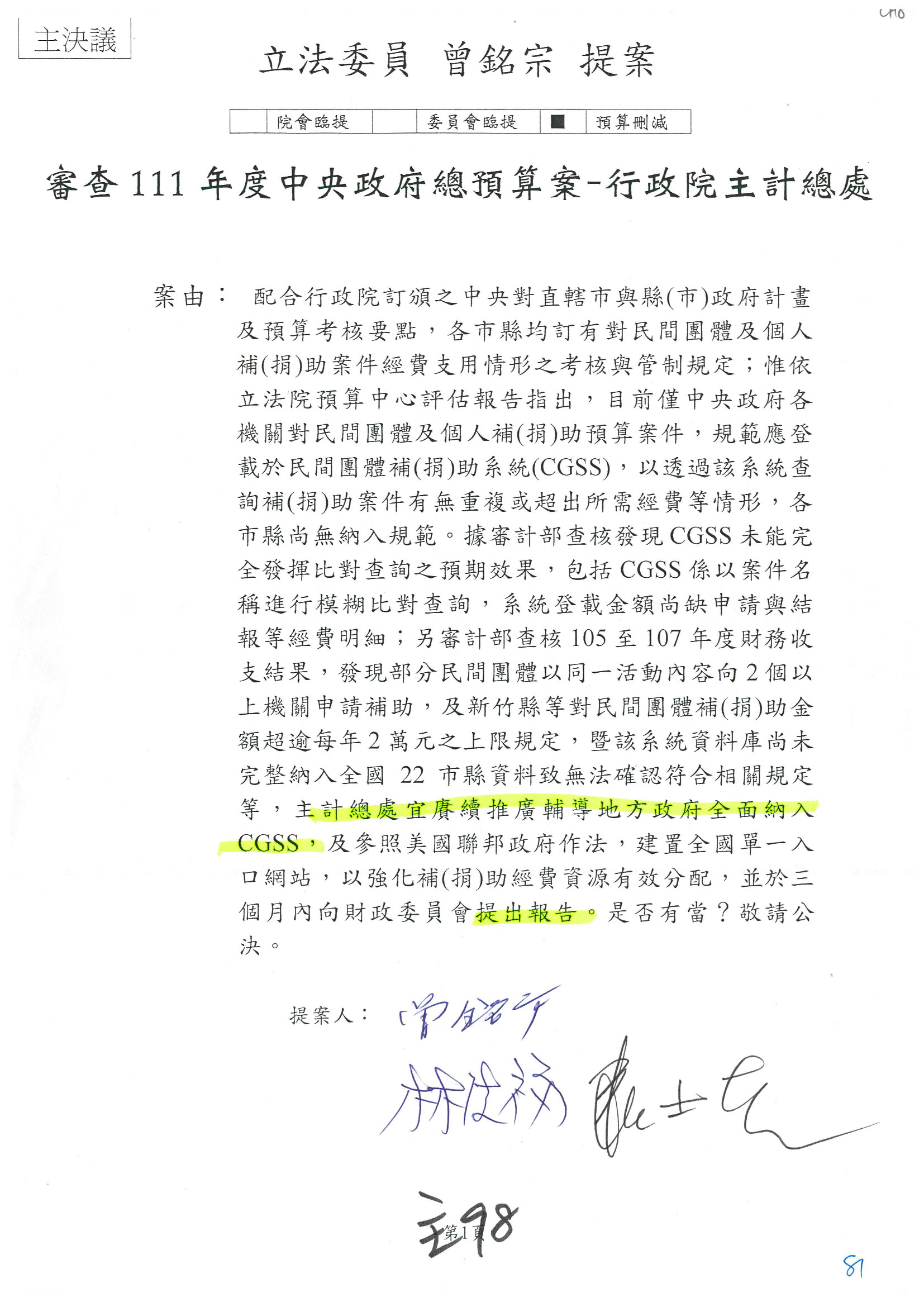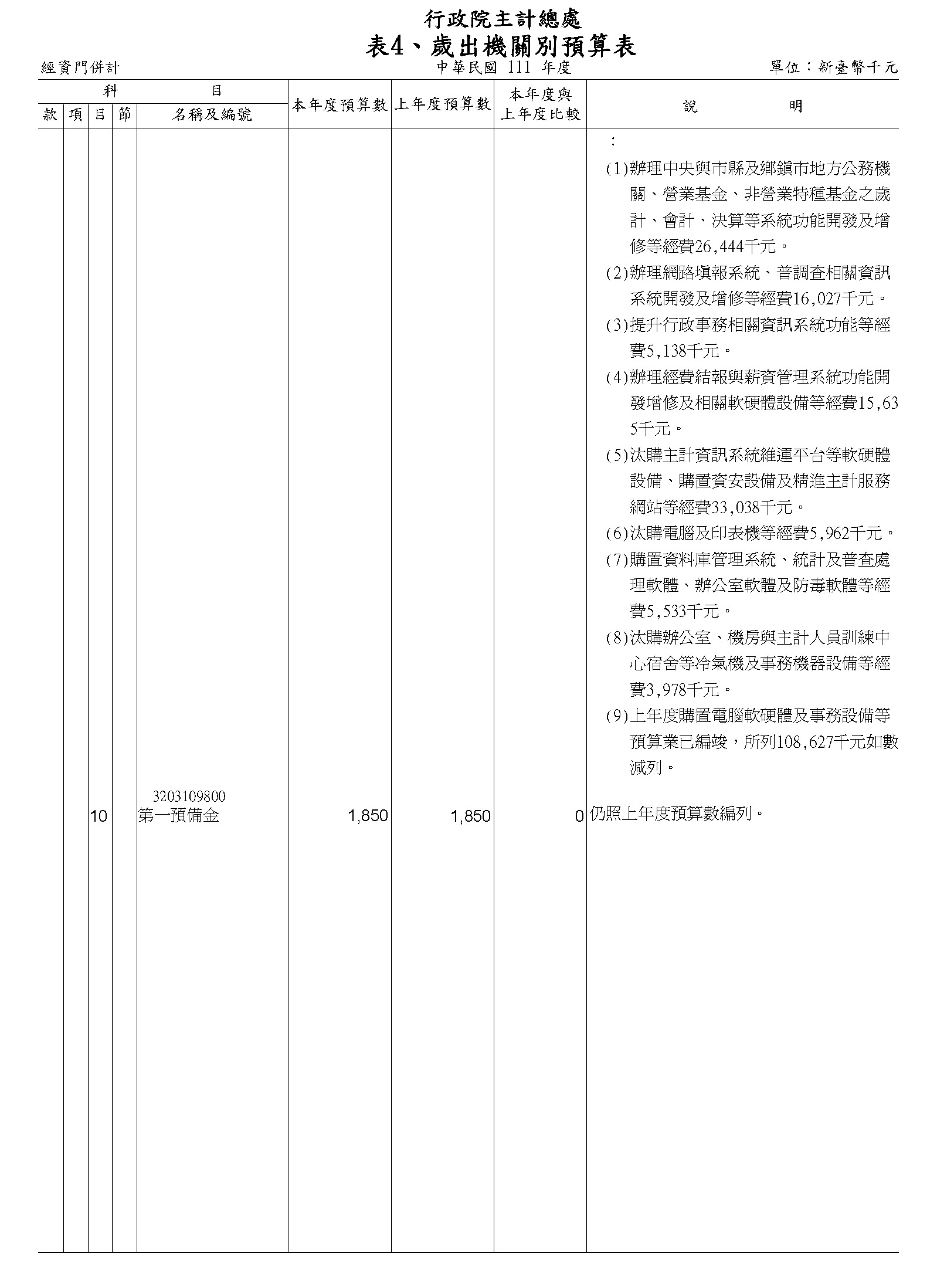 主席:賴委員,剛剛主計總處有一個提案也是一樣的,相同的提案提了2個啦!兩邊都有提,現在是以主計為主,審計為輔。