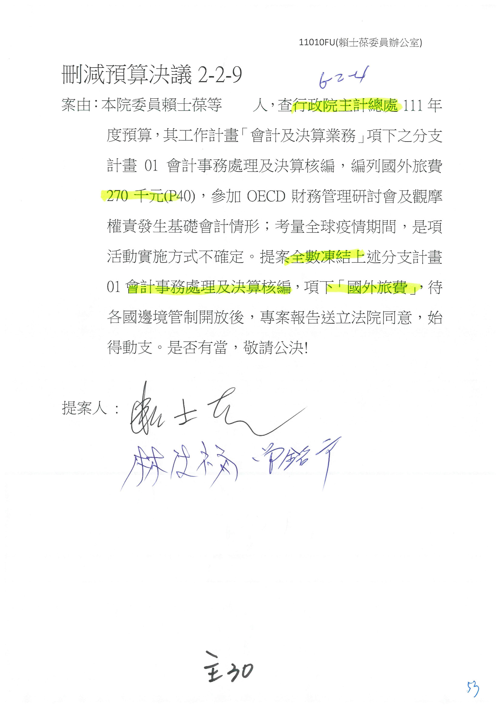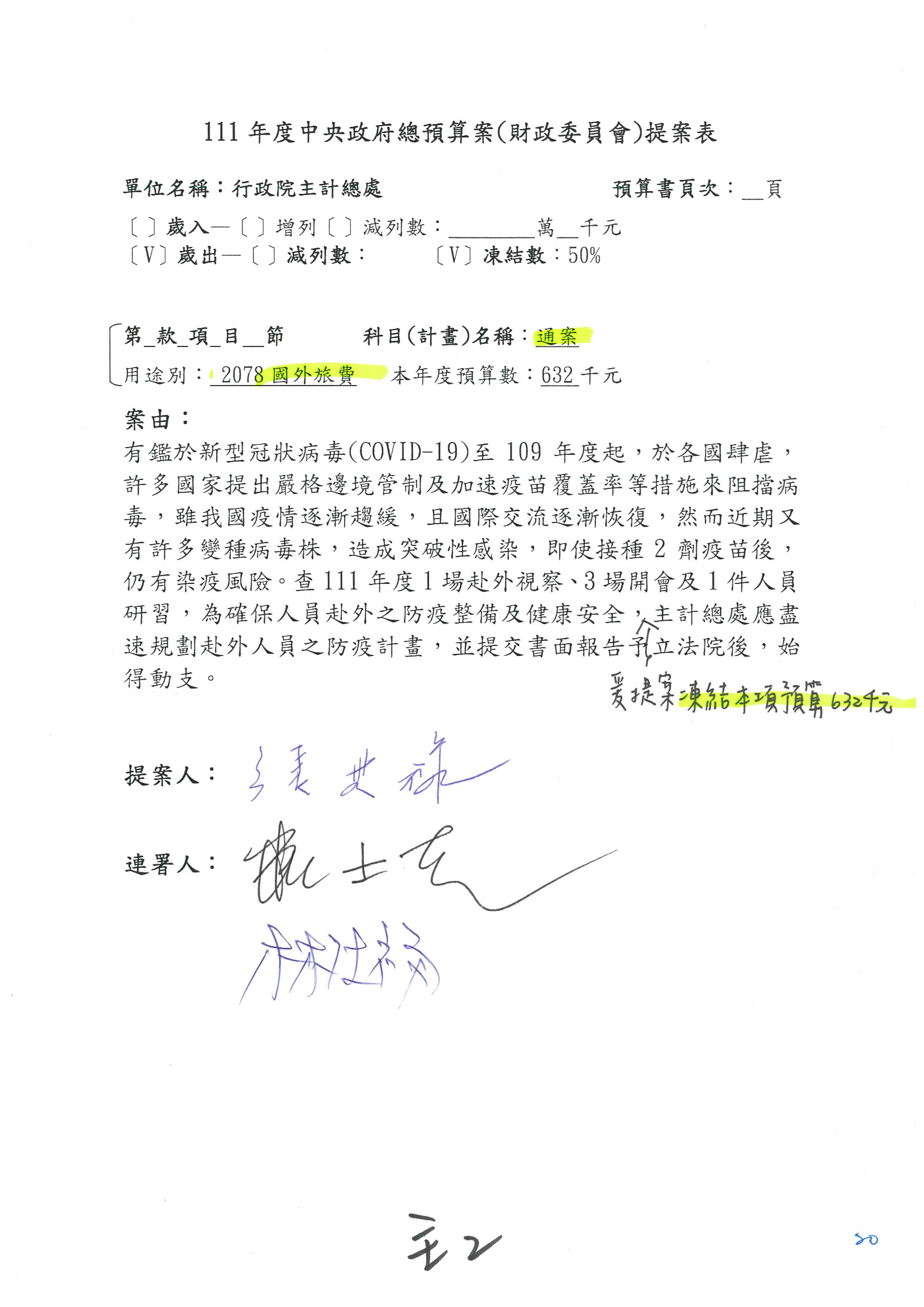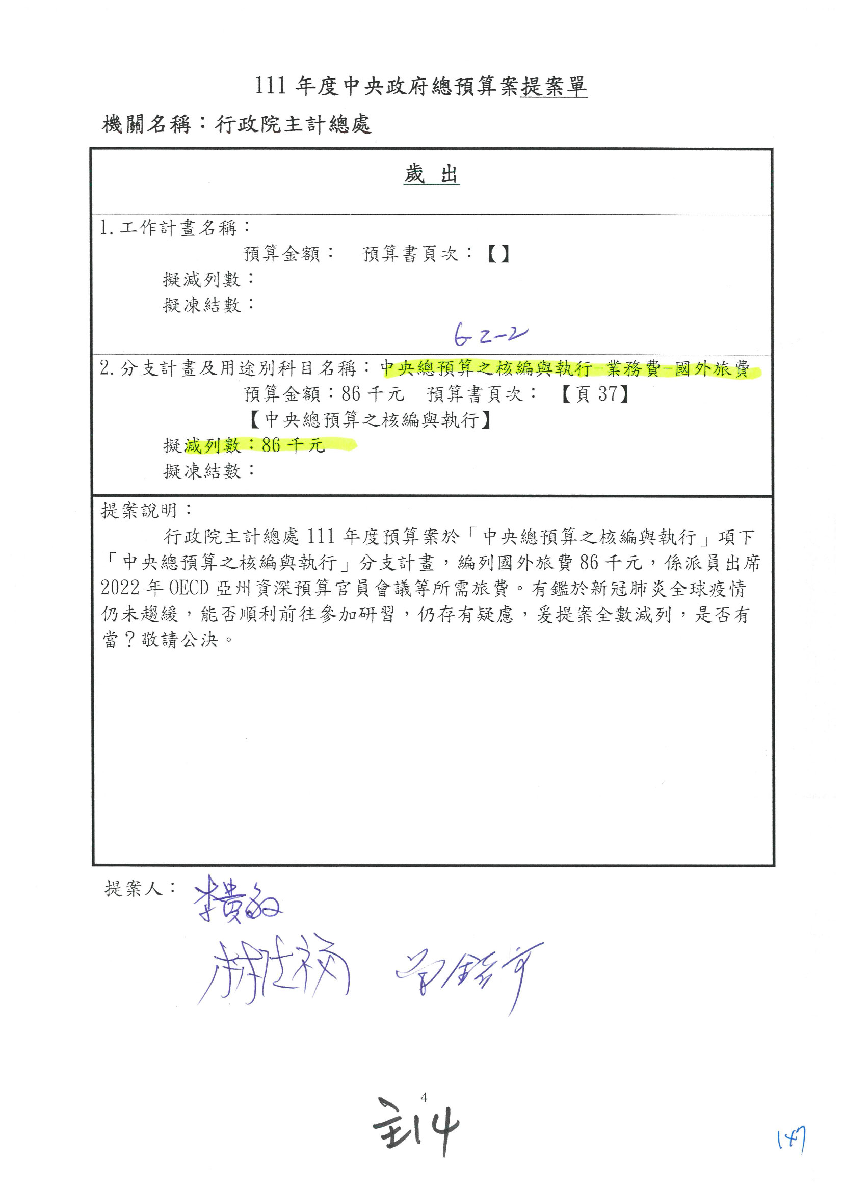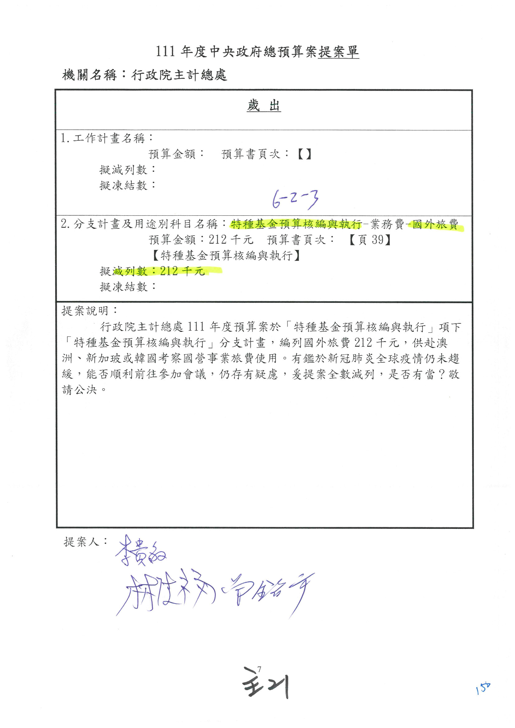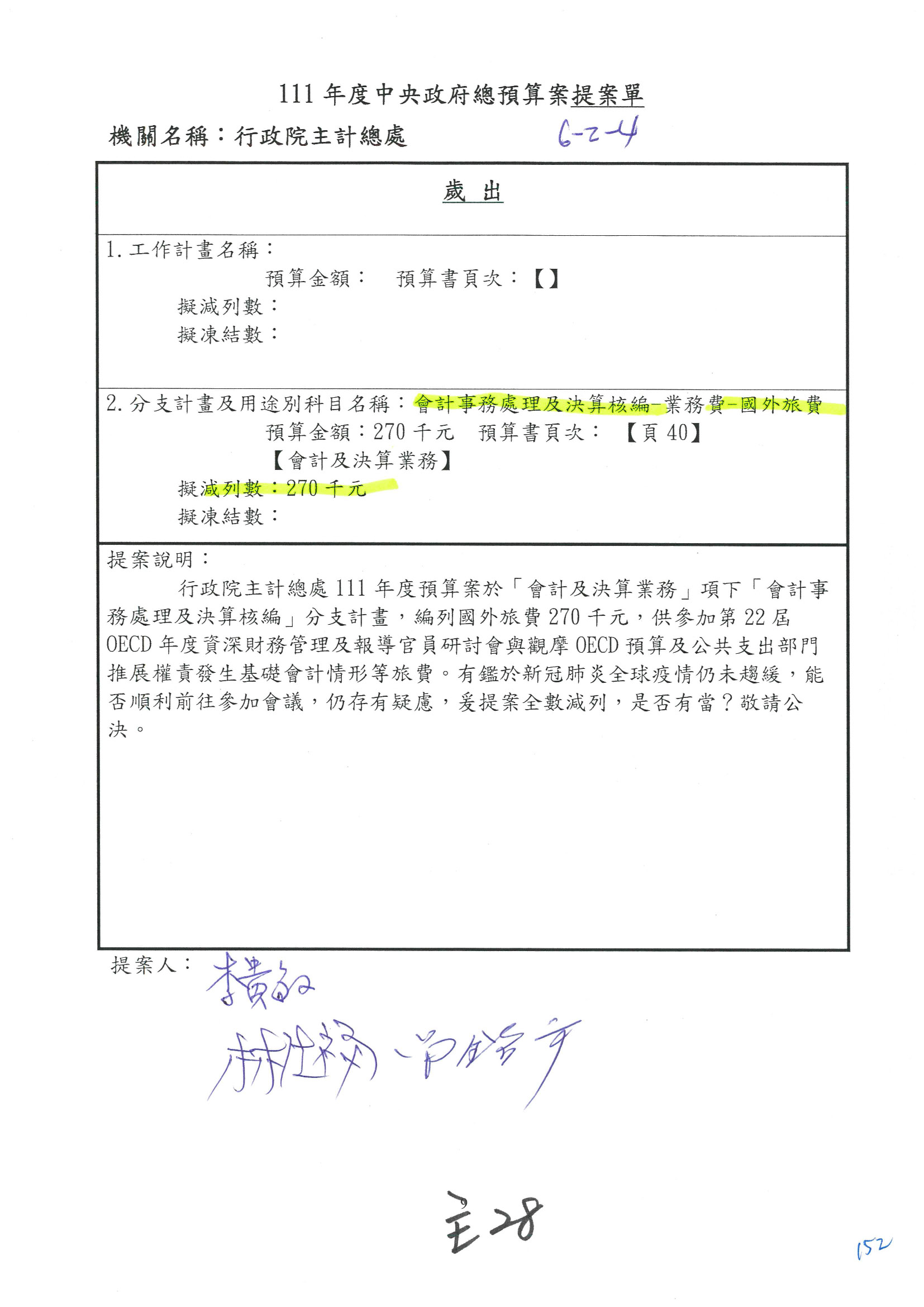 主席:你的案子放最後,我先確定這個部分,國內旅費的部分送院會通案處理,可以嗎?