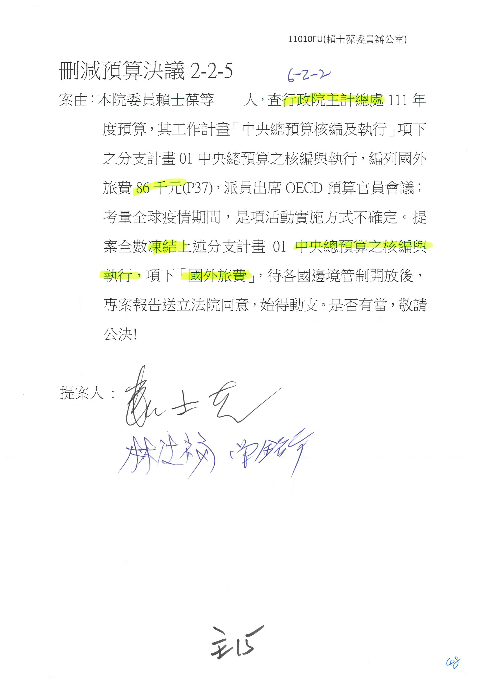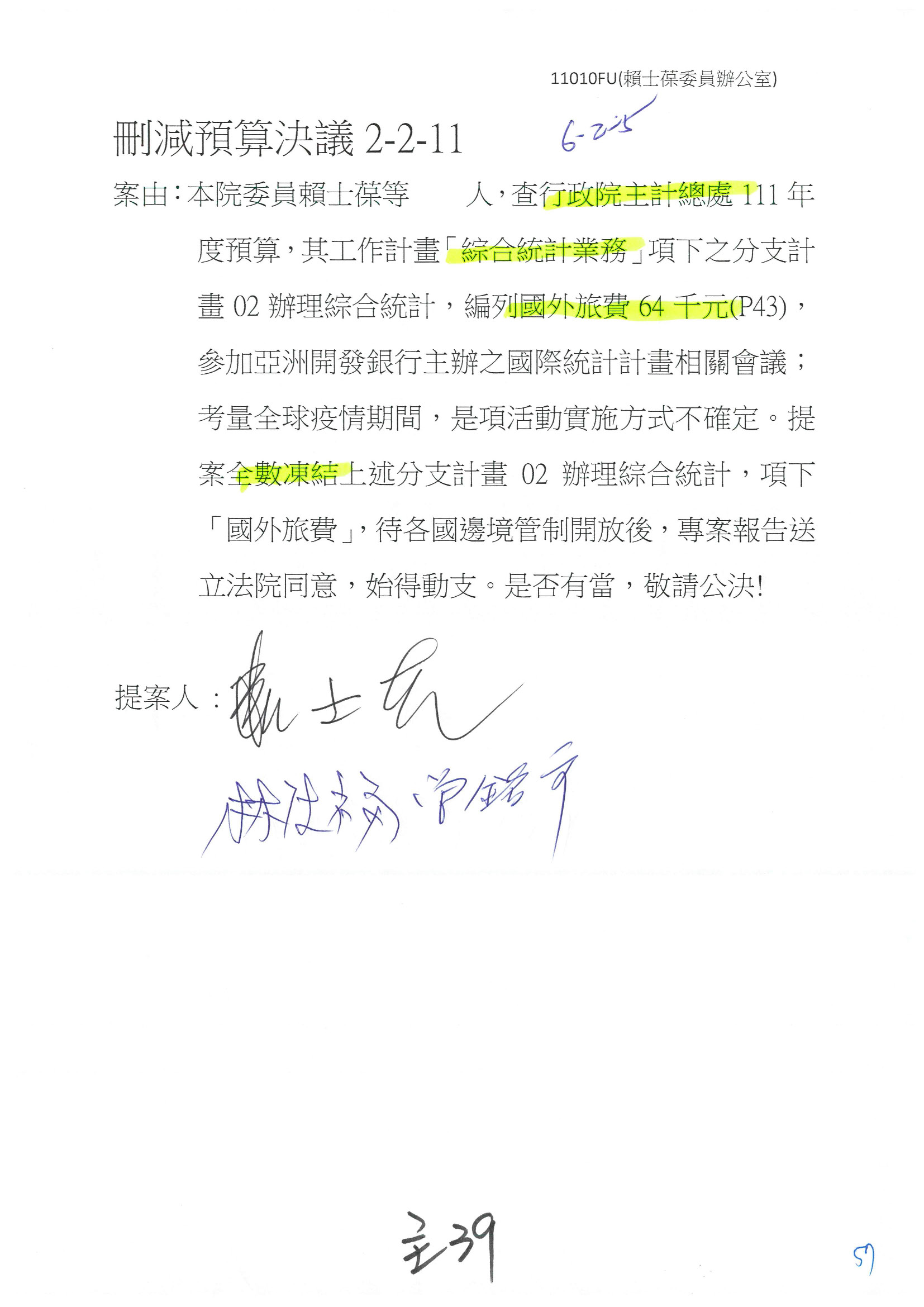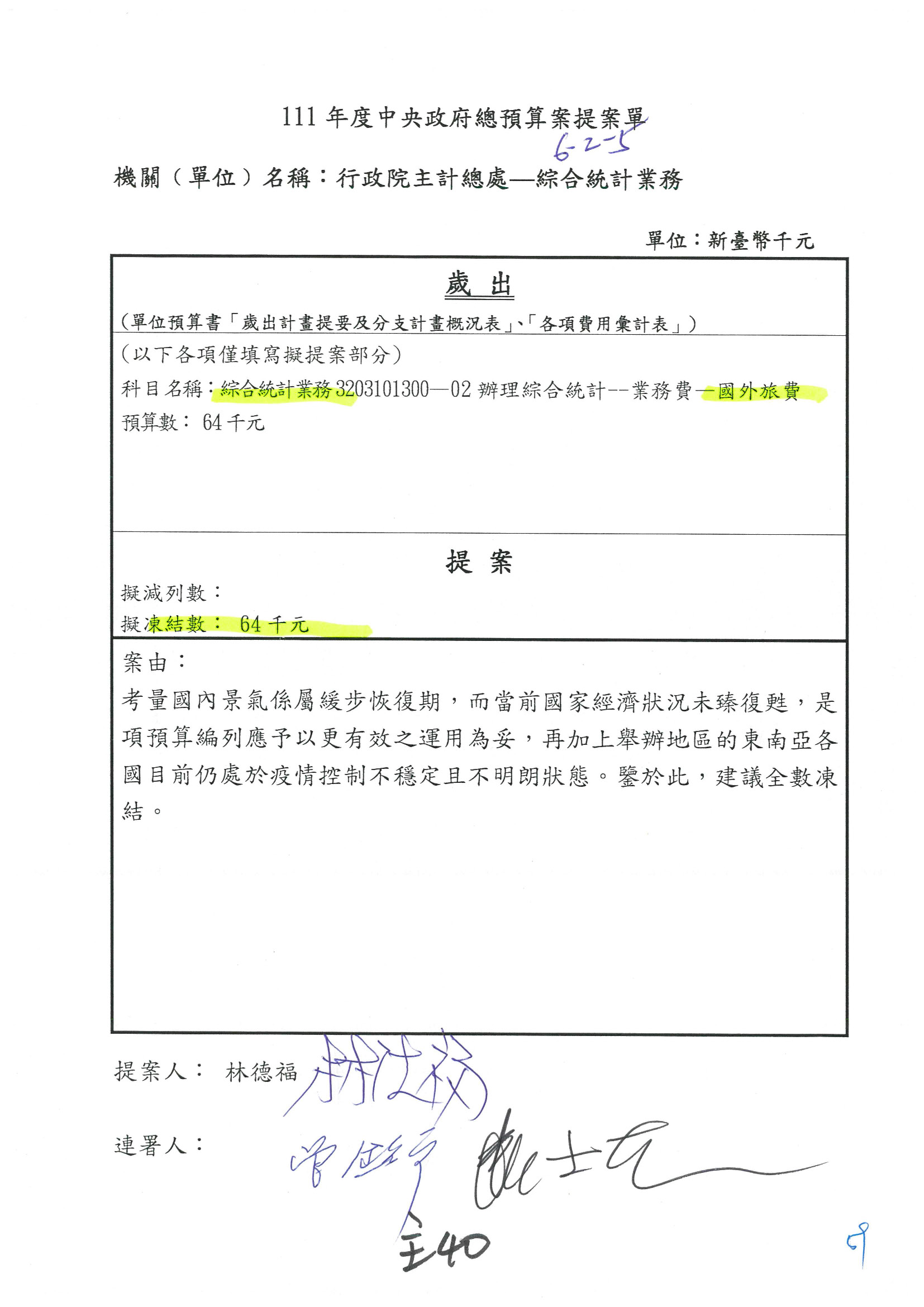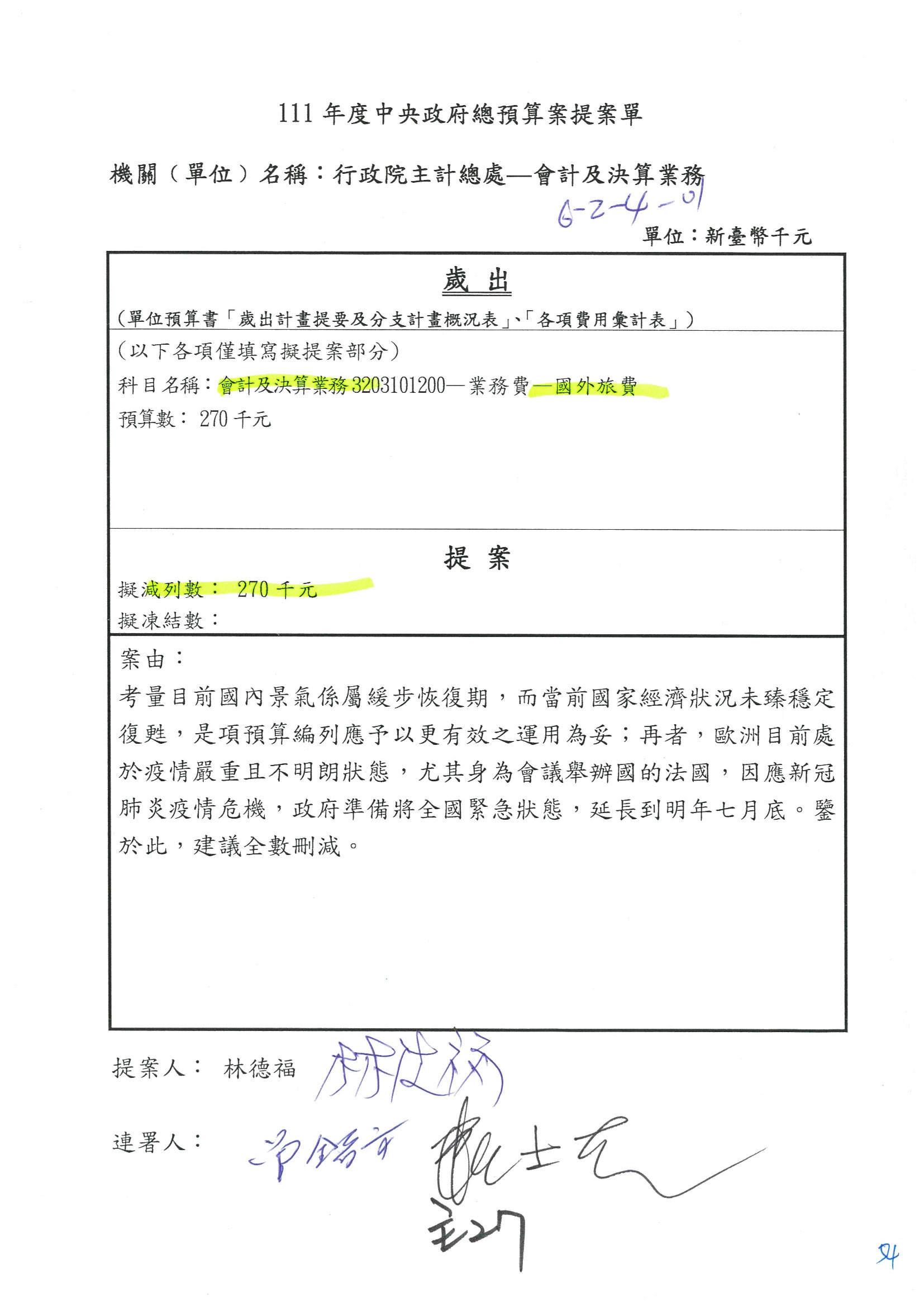 主席:你的案子放最後,我先確定這個部分,國內旅費的部分送院會通案處理,可以嗎?