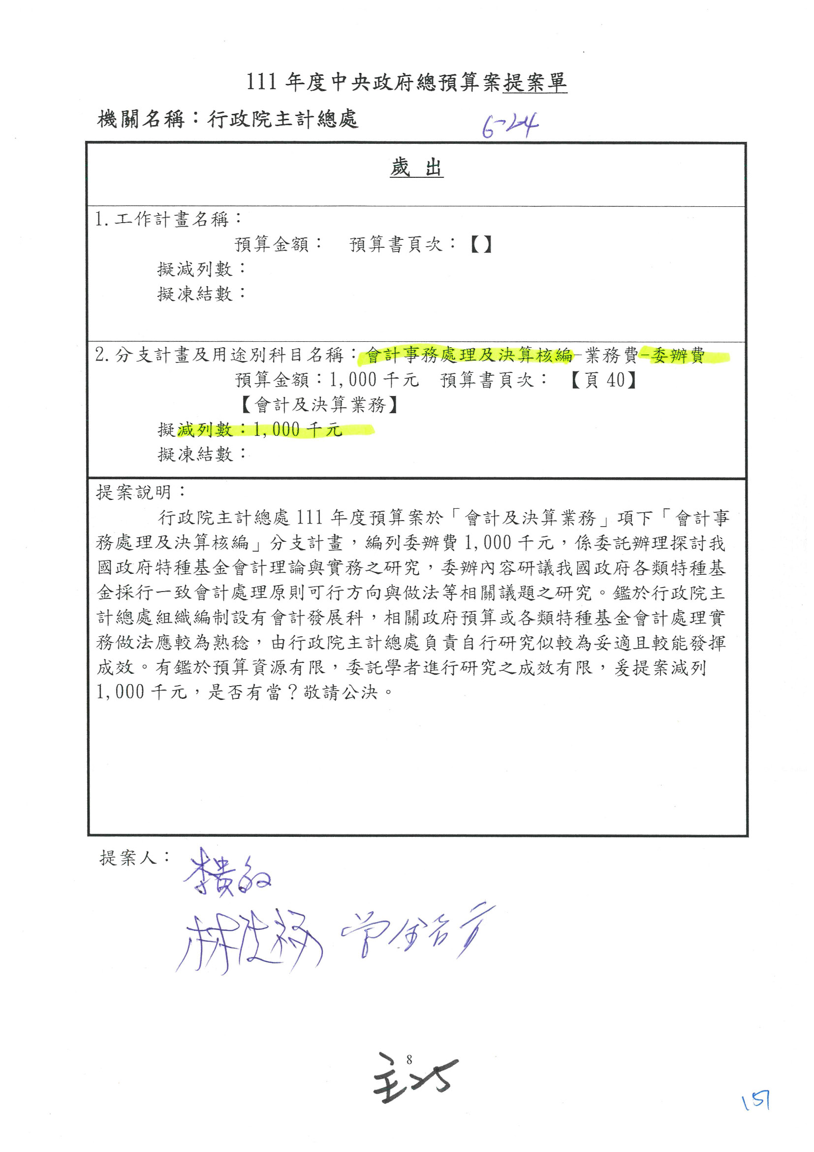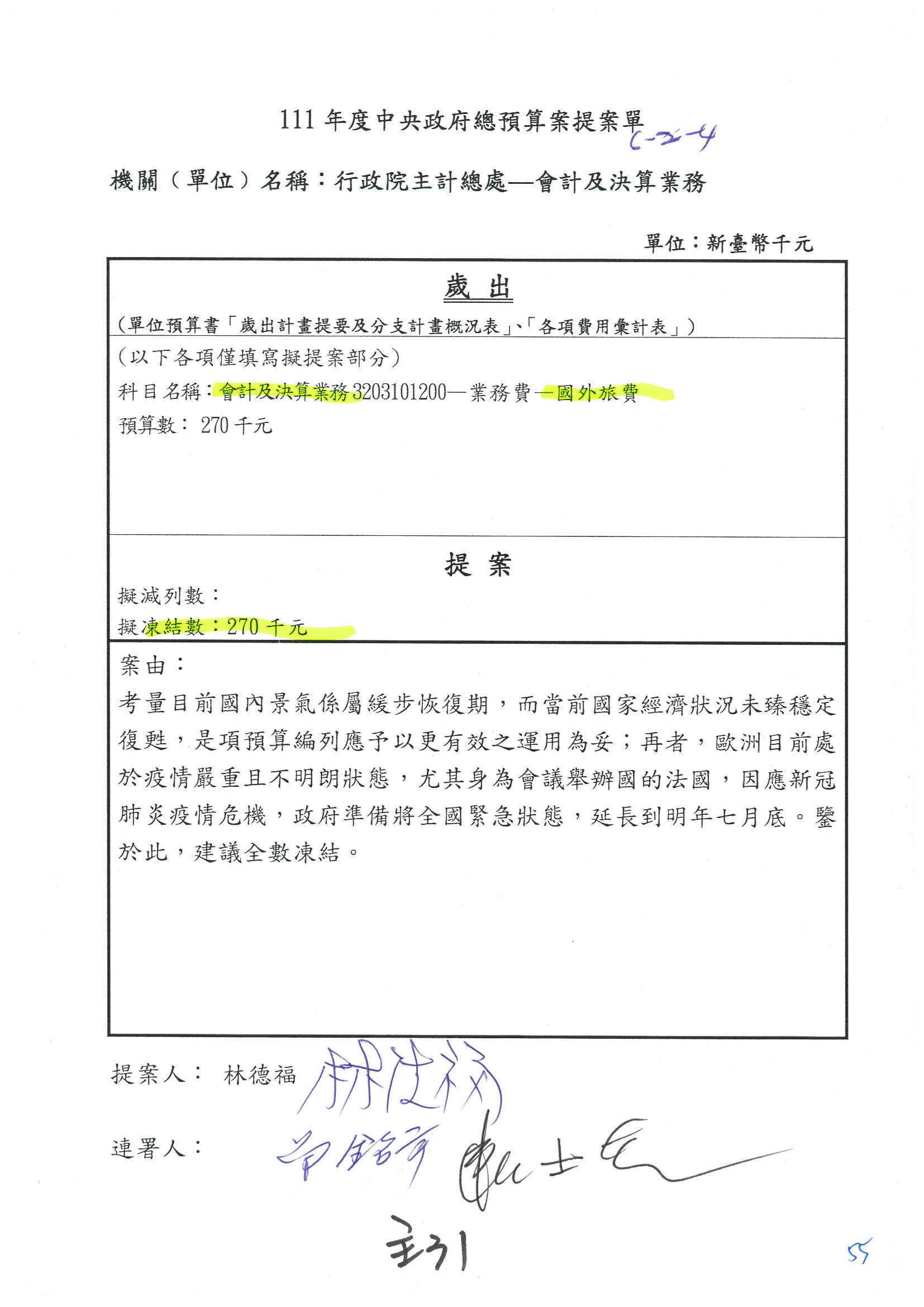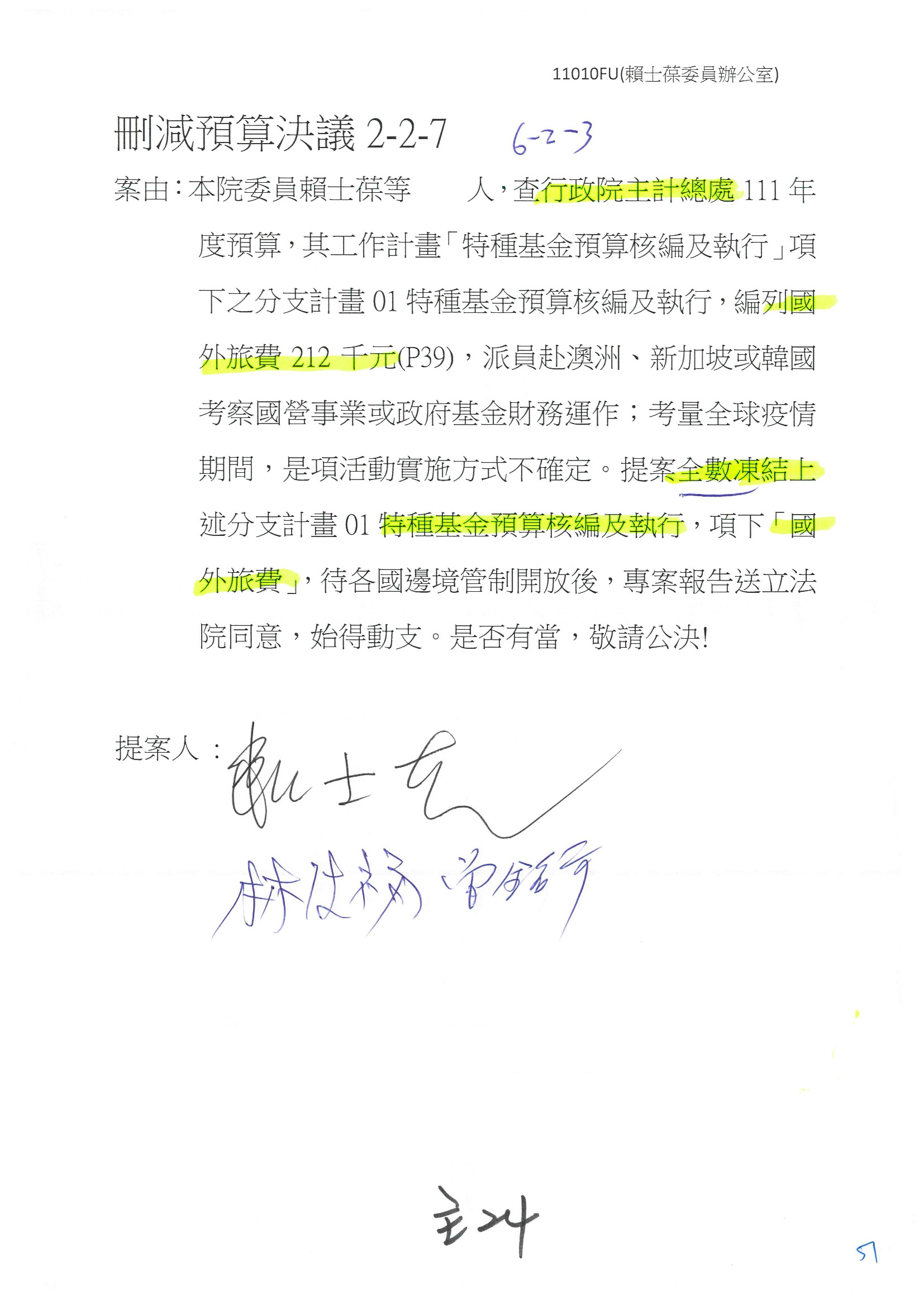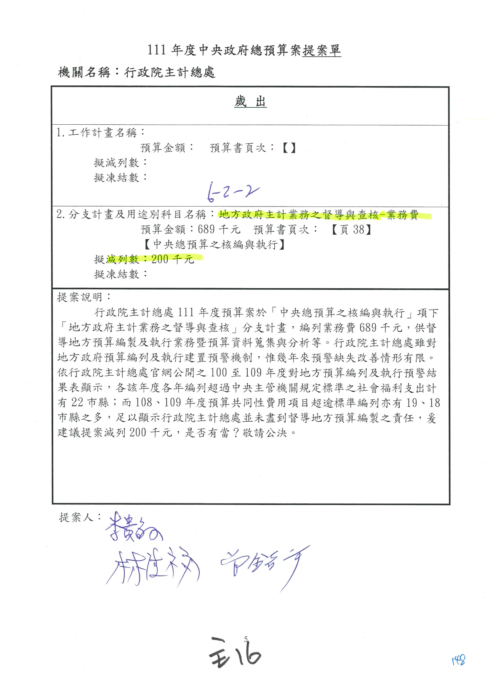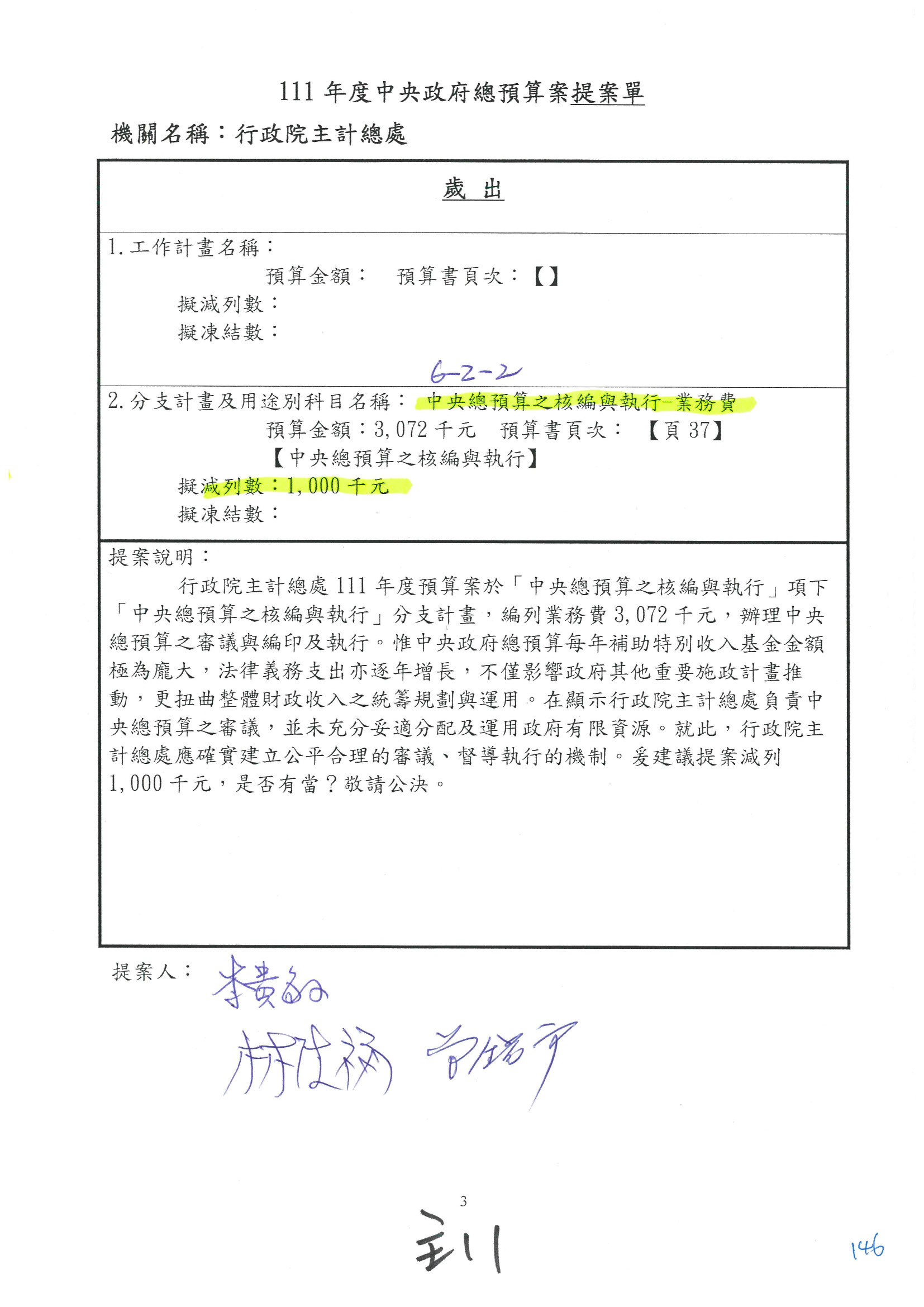 主席:你的案子放最後,我先確定這個部分,國內旅費的部分送院會通案處理,可以嗎?