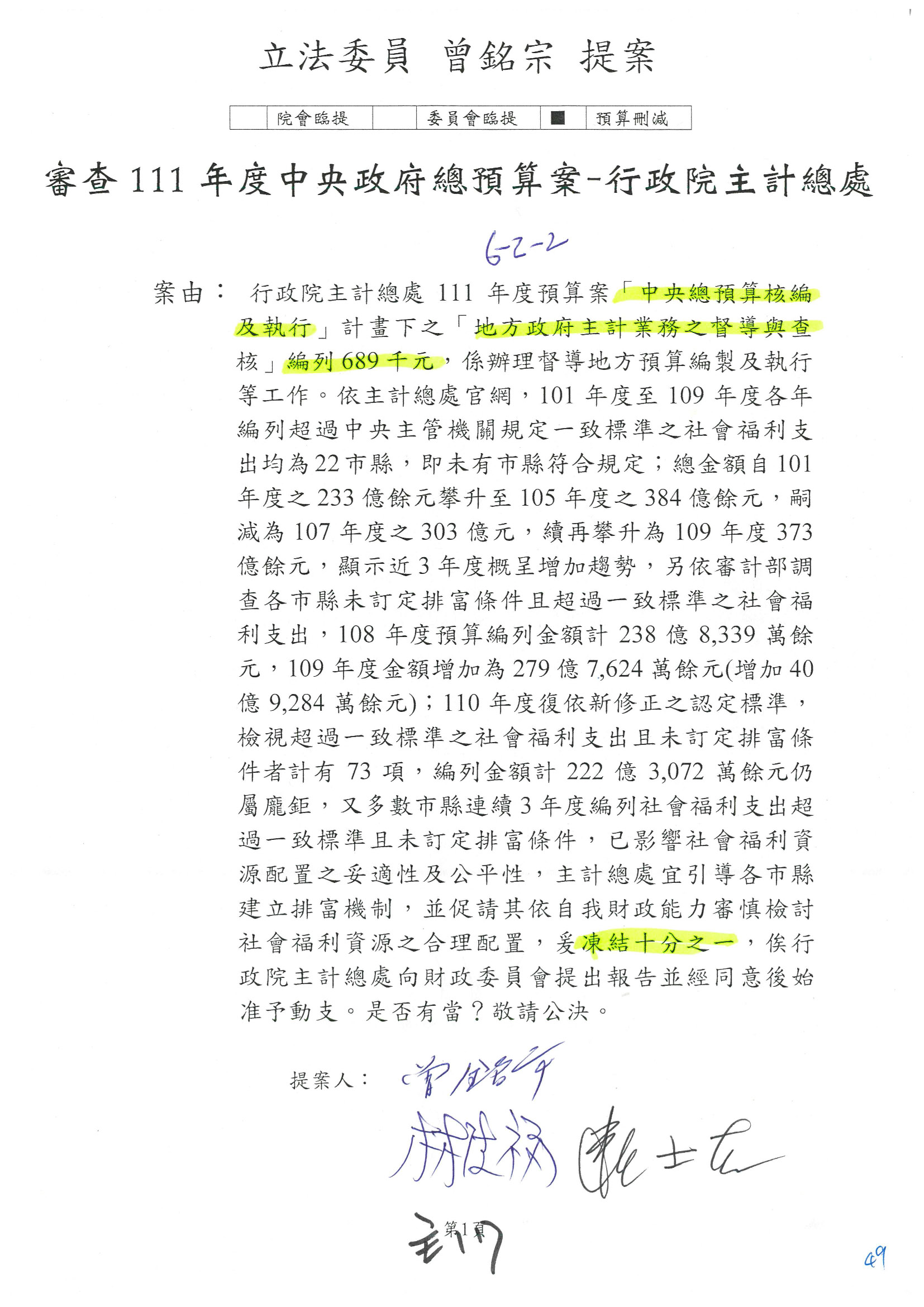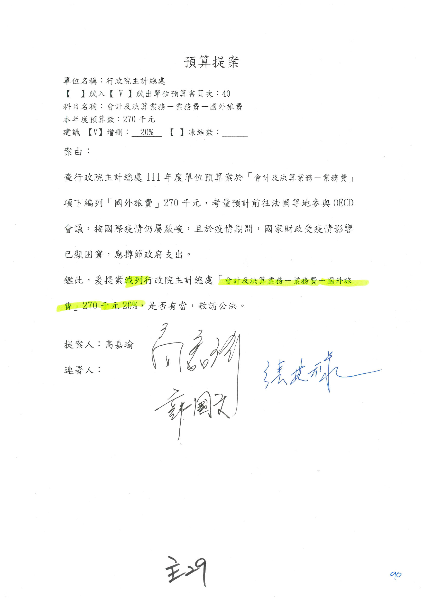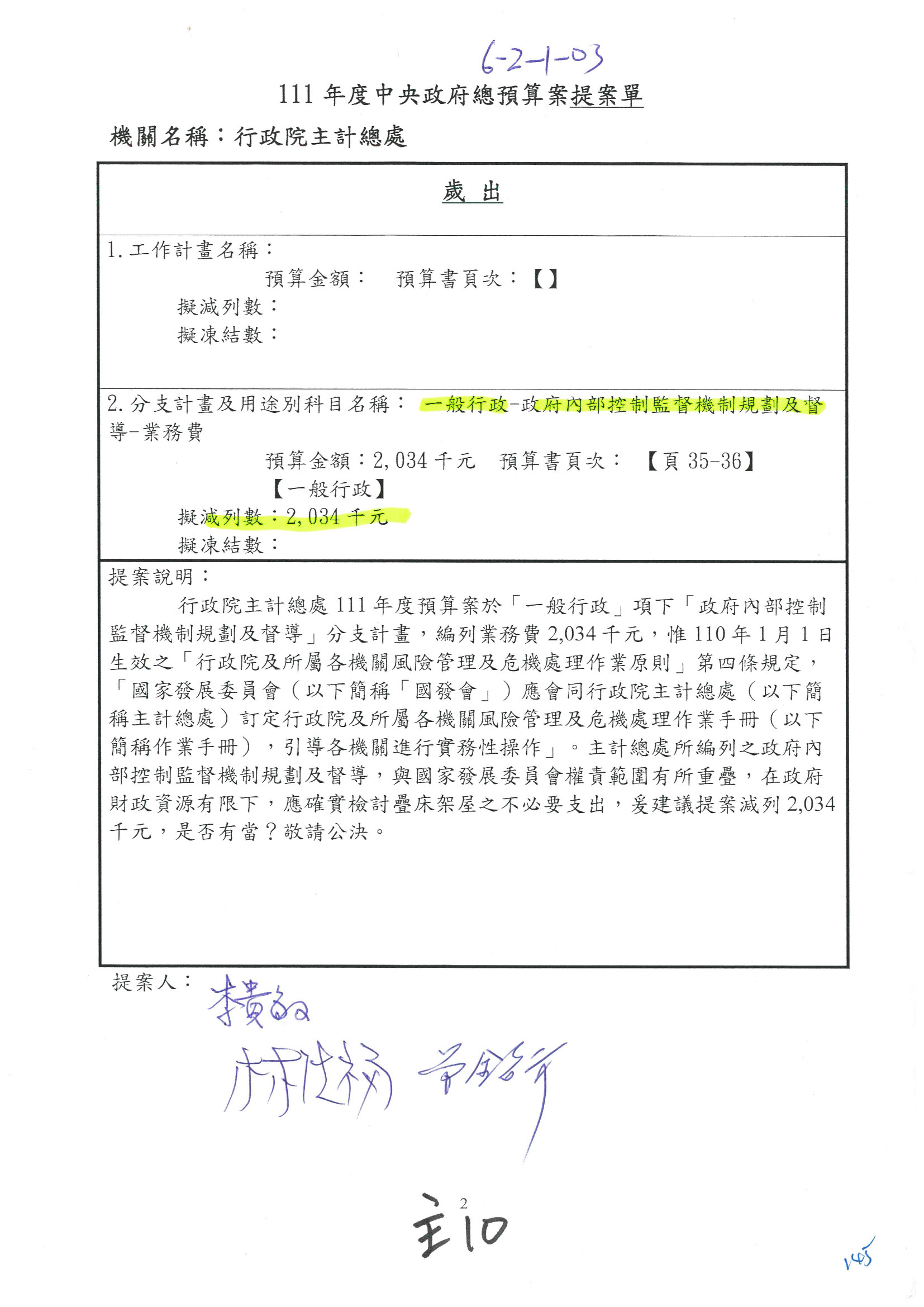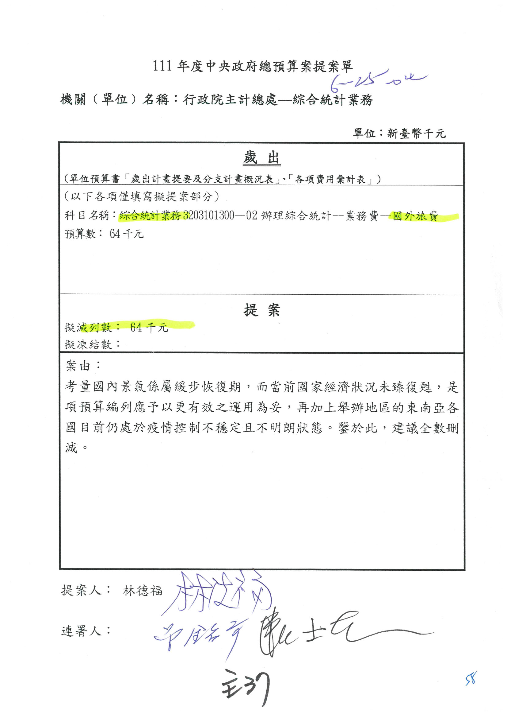 主席:你的案子放最後,我先確定這個部分,國內旅費的部分送院會通案處理,可以嗎?