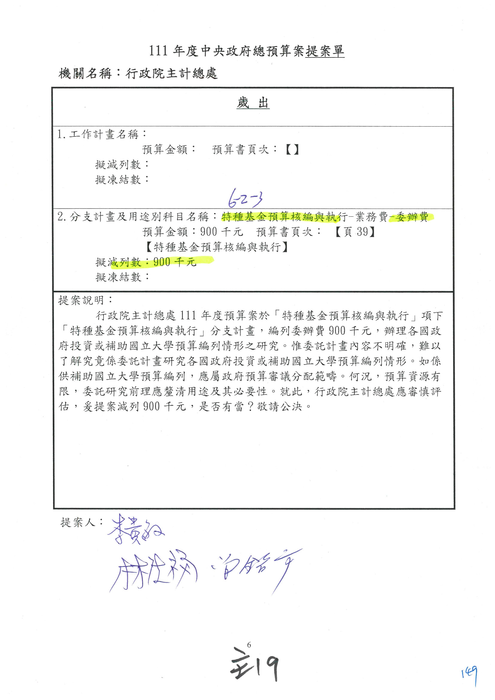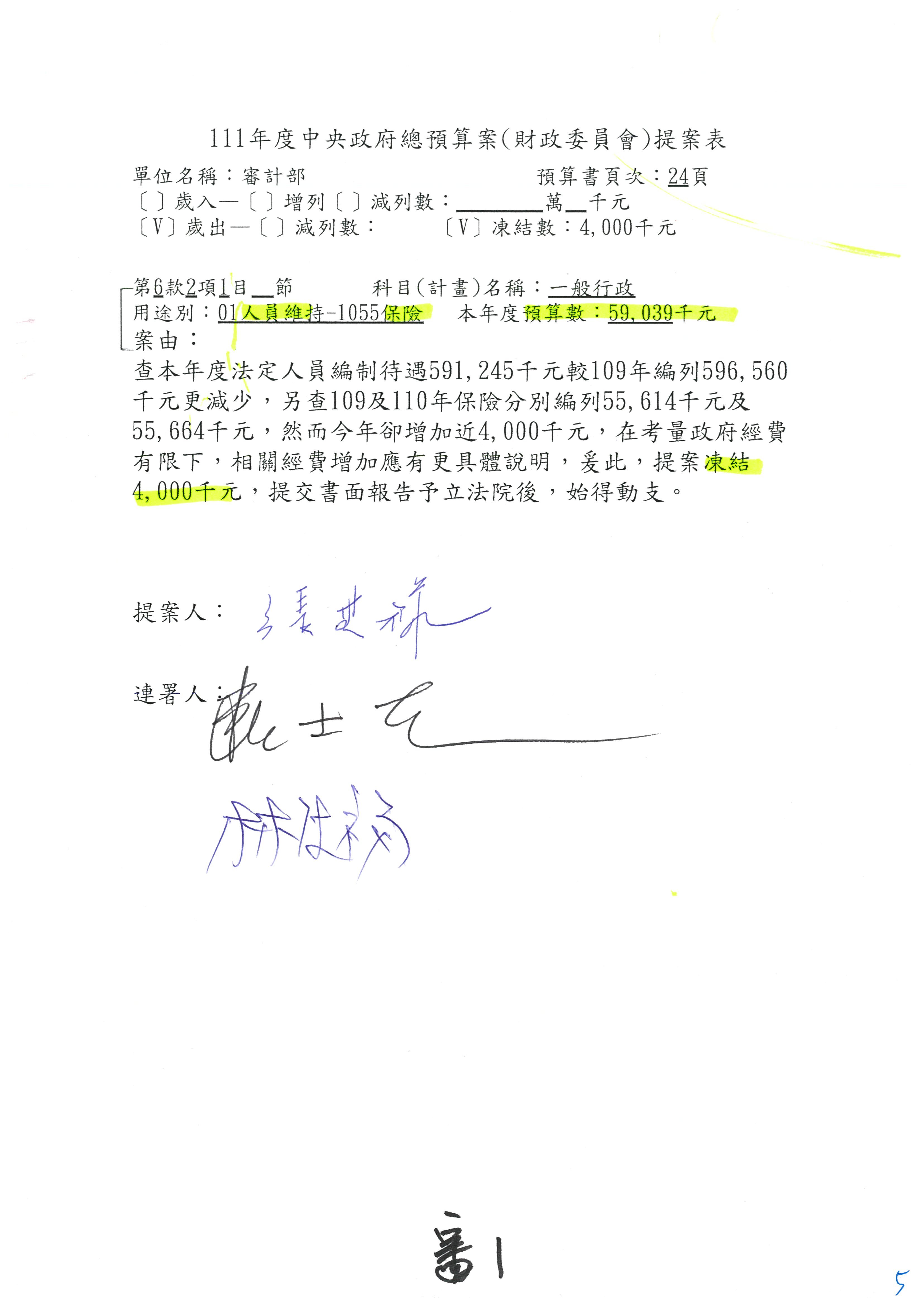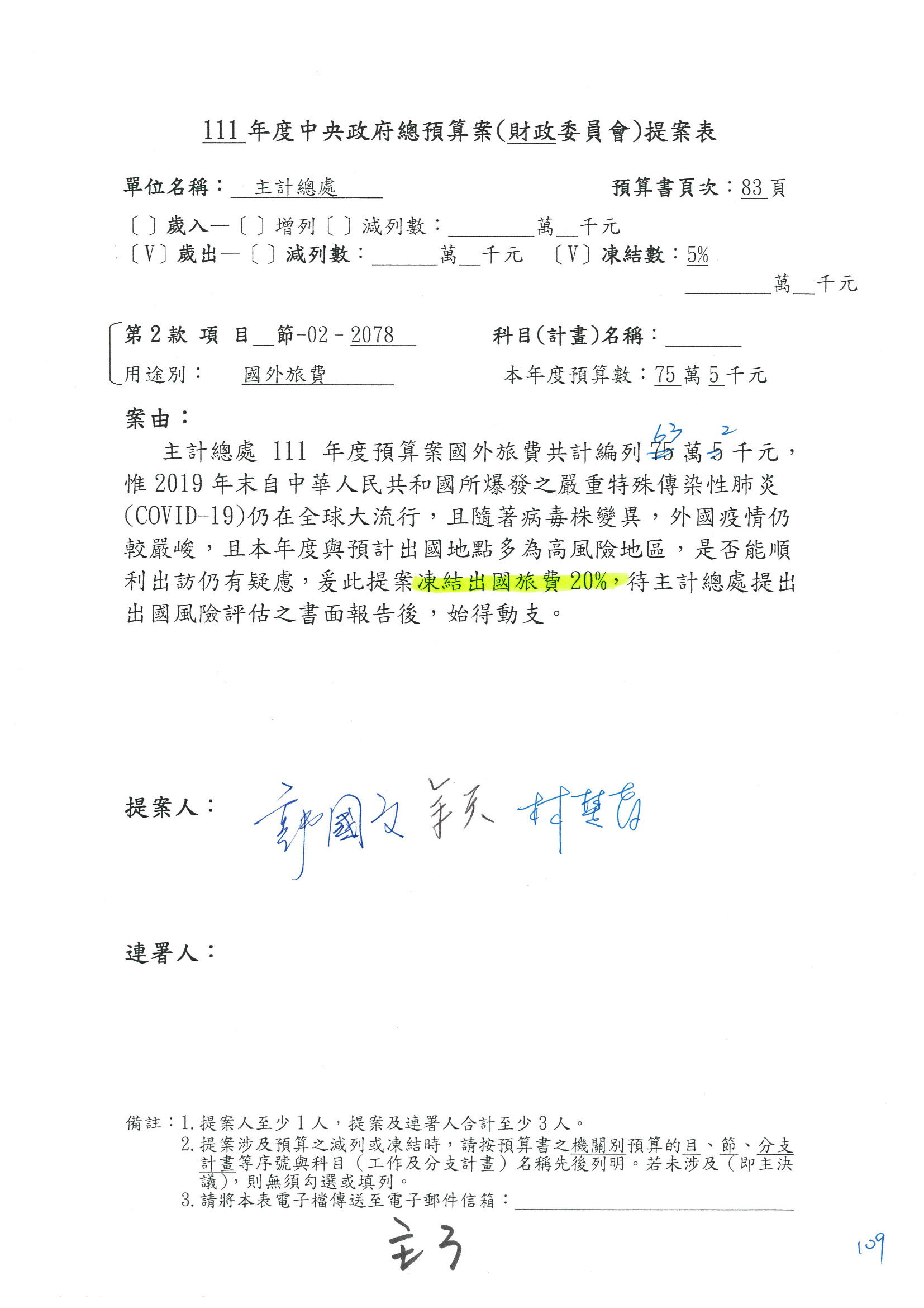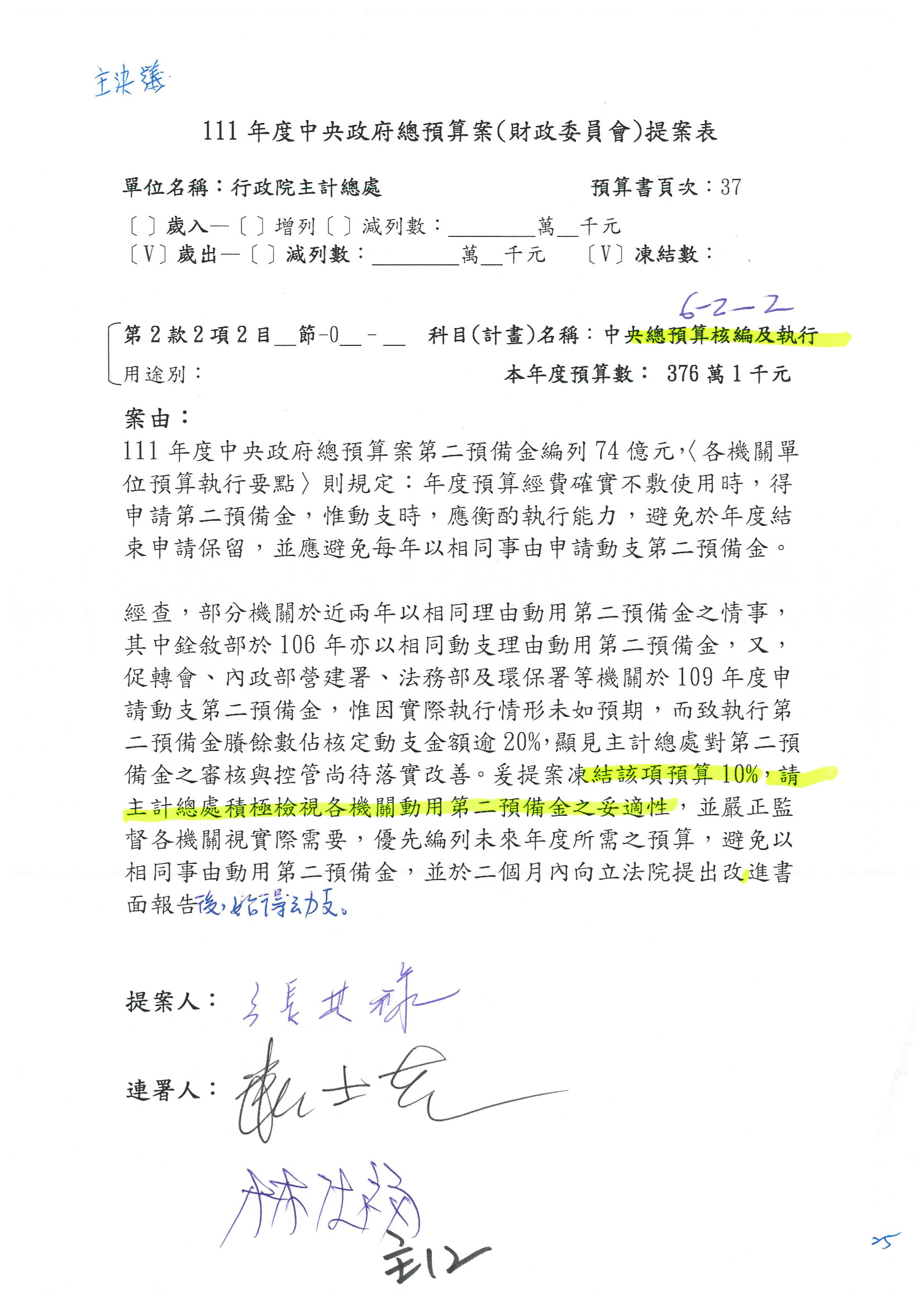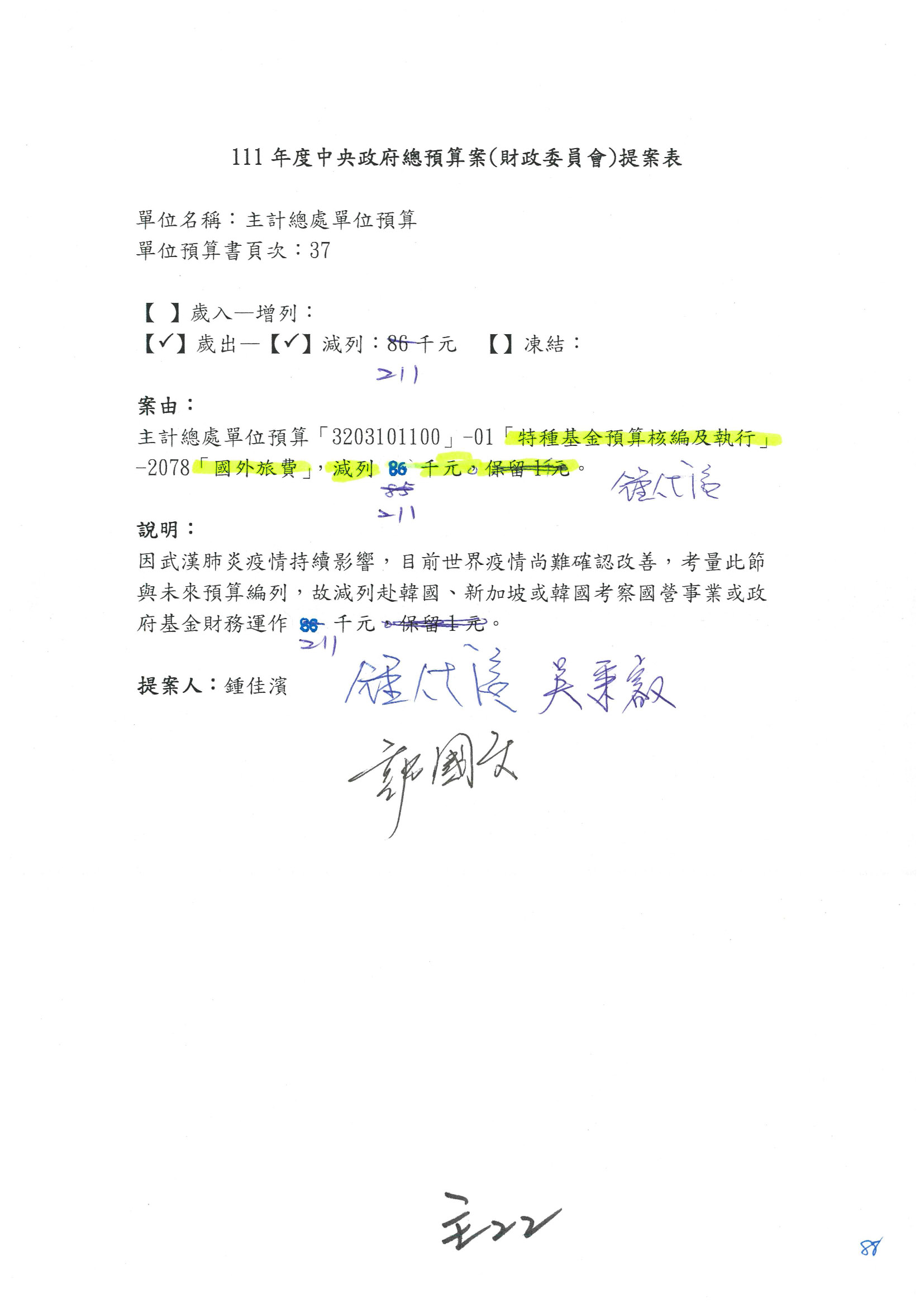 主席:你的案子放最後,我先確定這個部分,國內旅費的部分送院會通案處理,可以嗎?