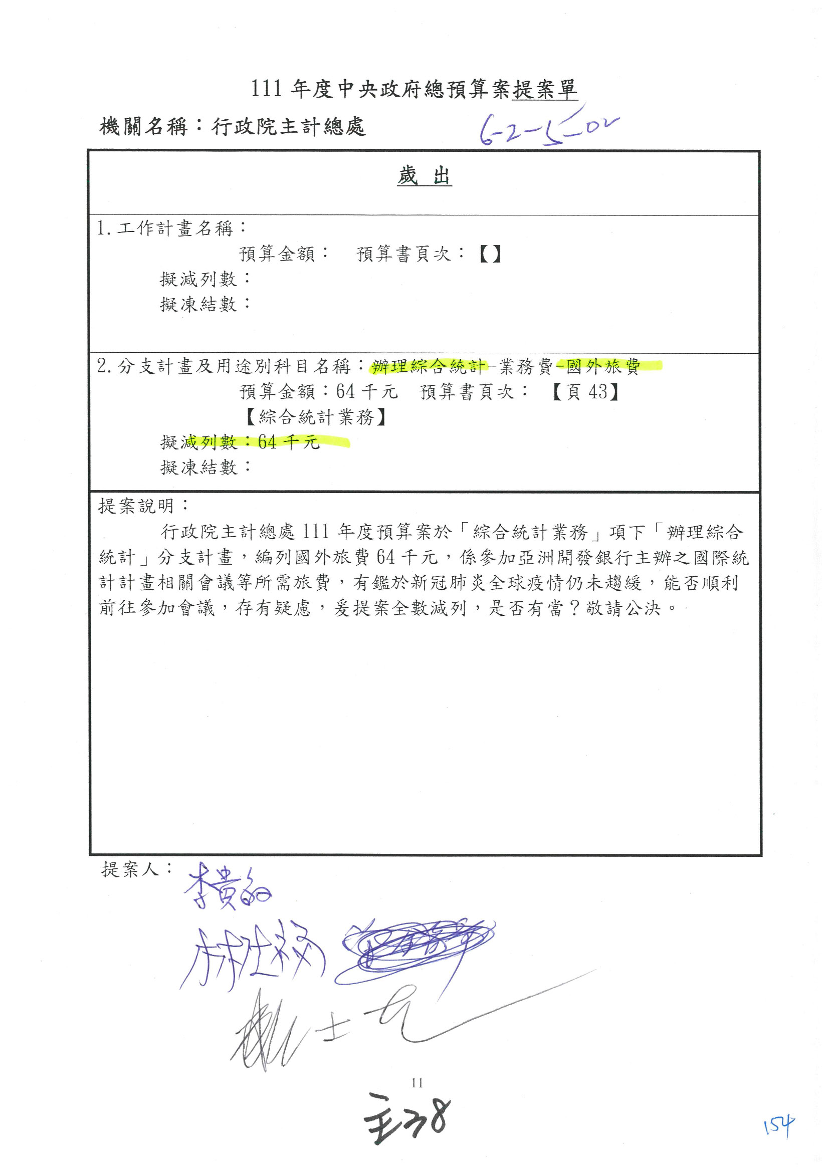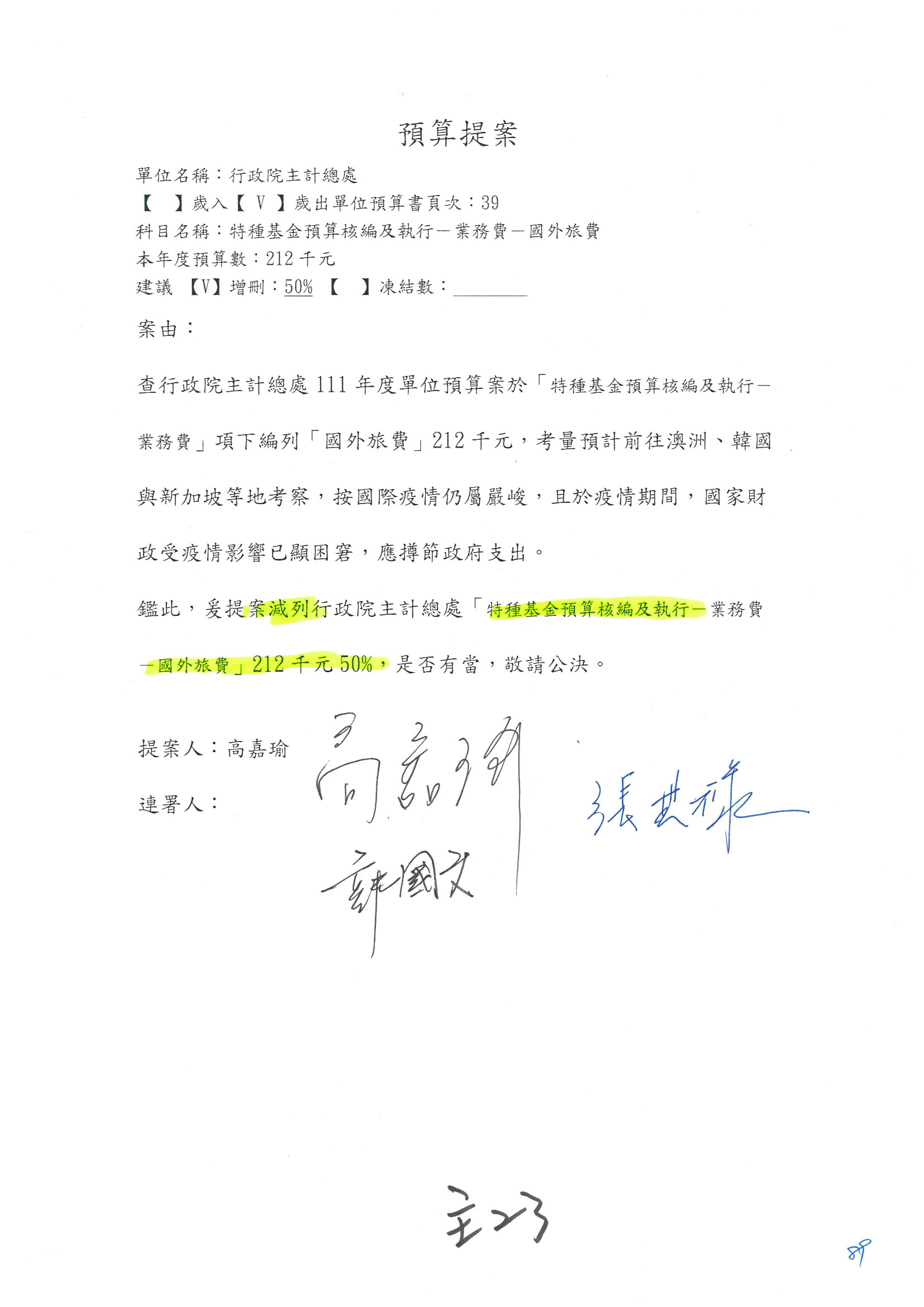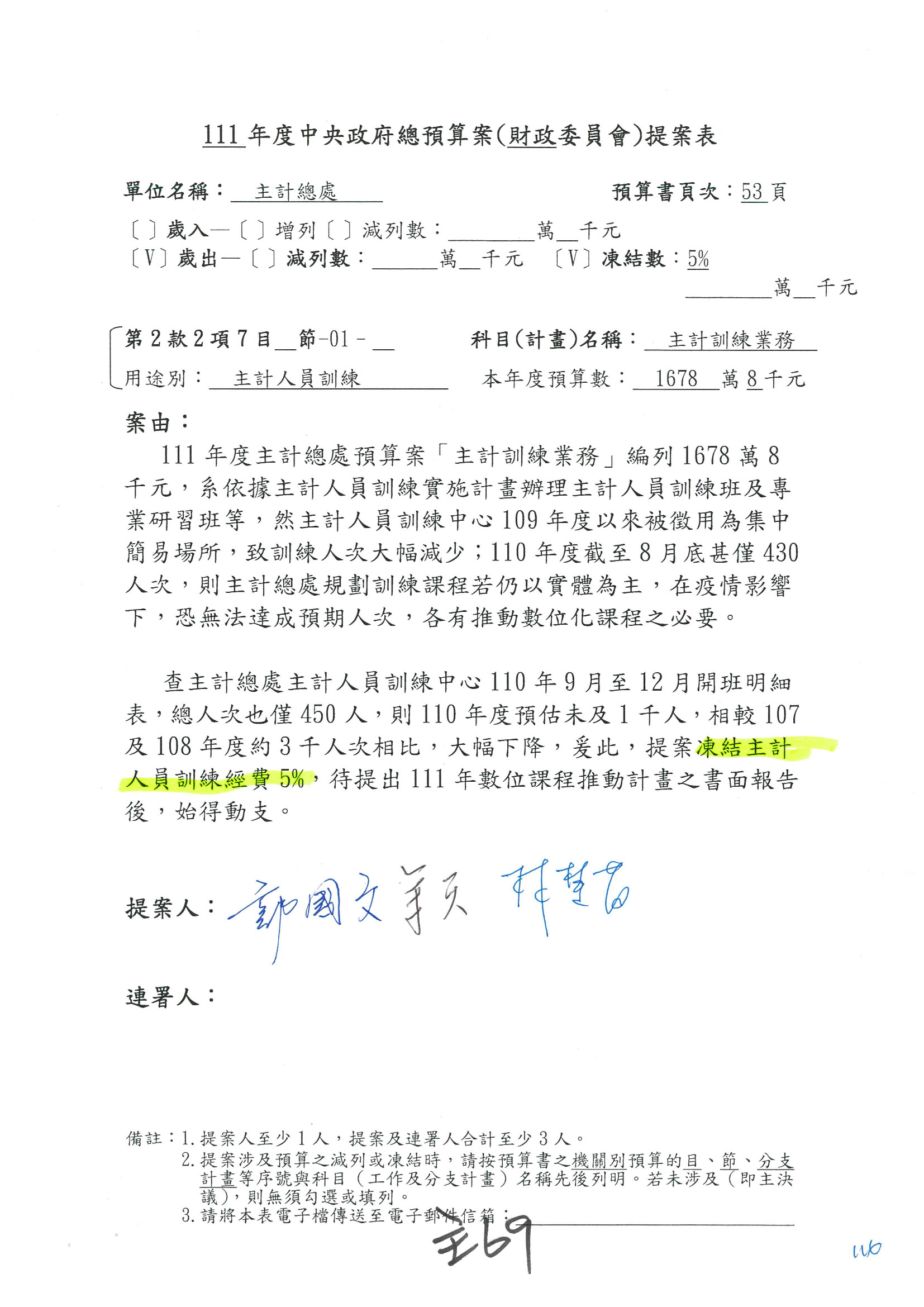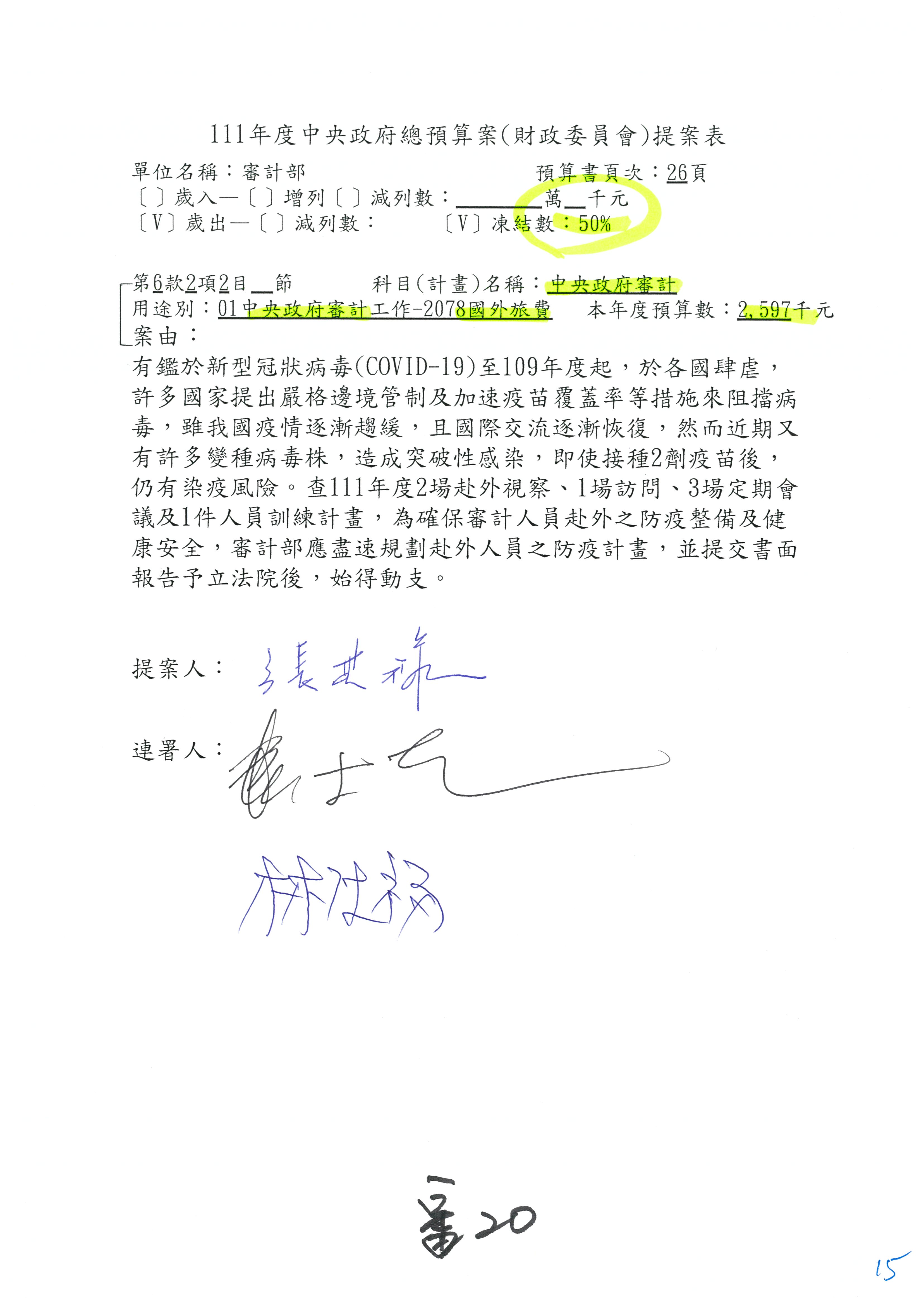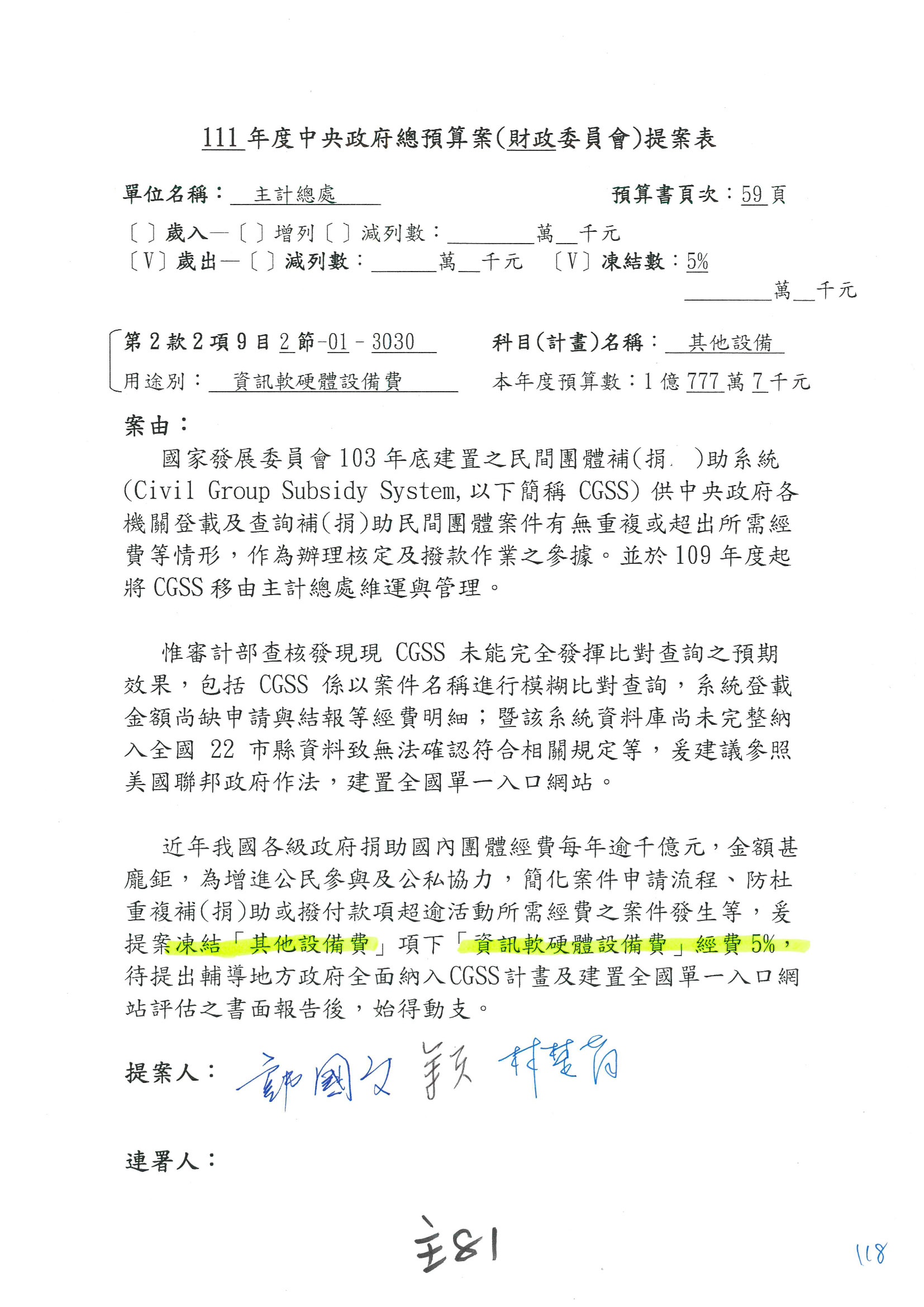 主席:你的案子放最後,我先確定這個部分,國內旅費的部分送院會通案處理,可以嗎?