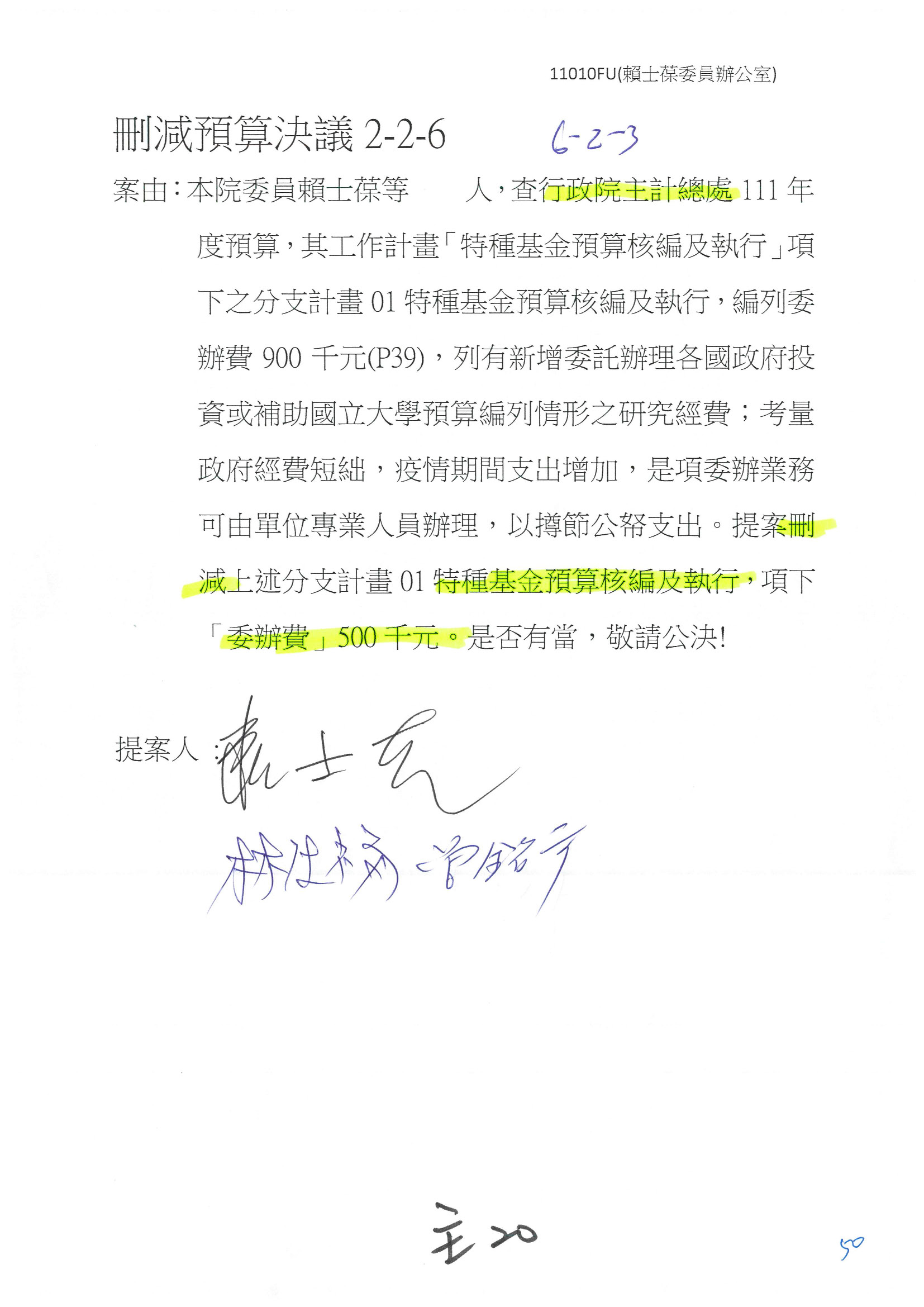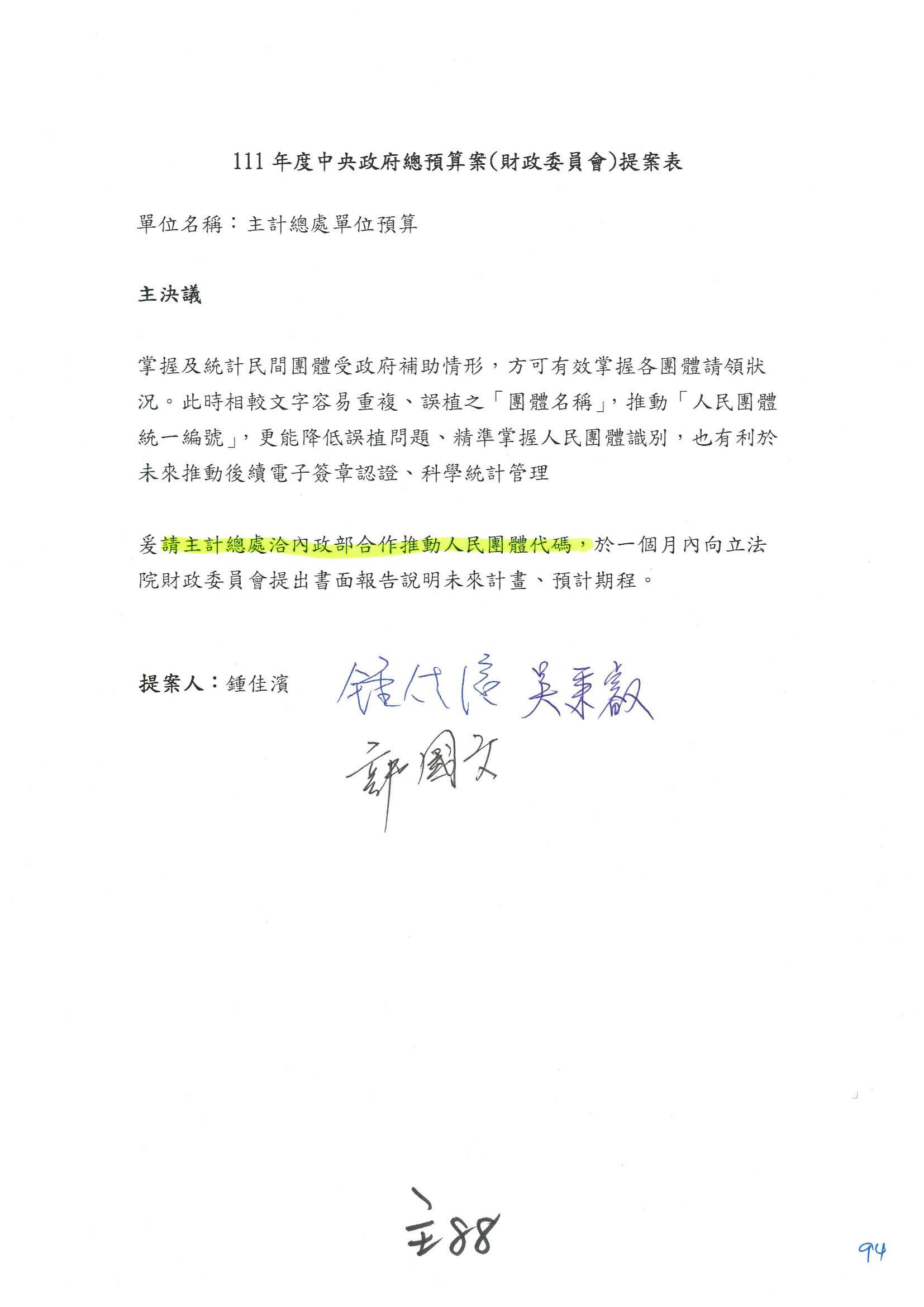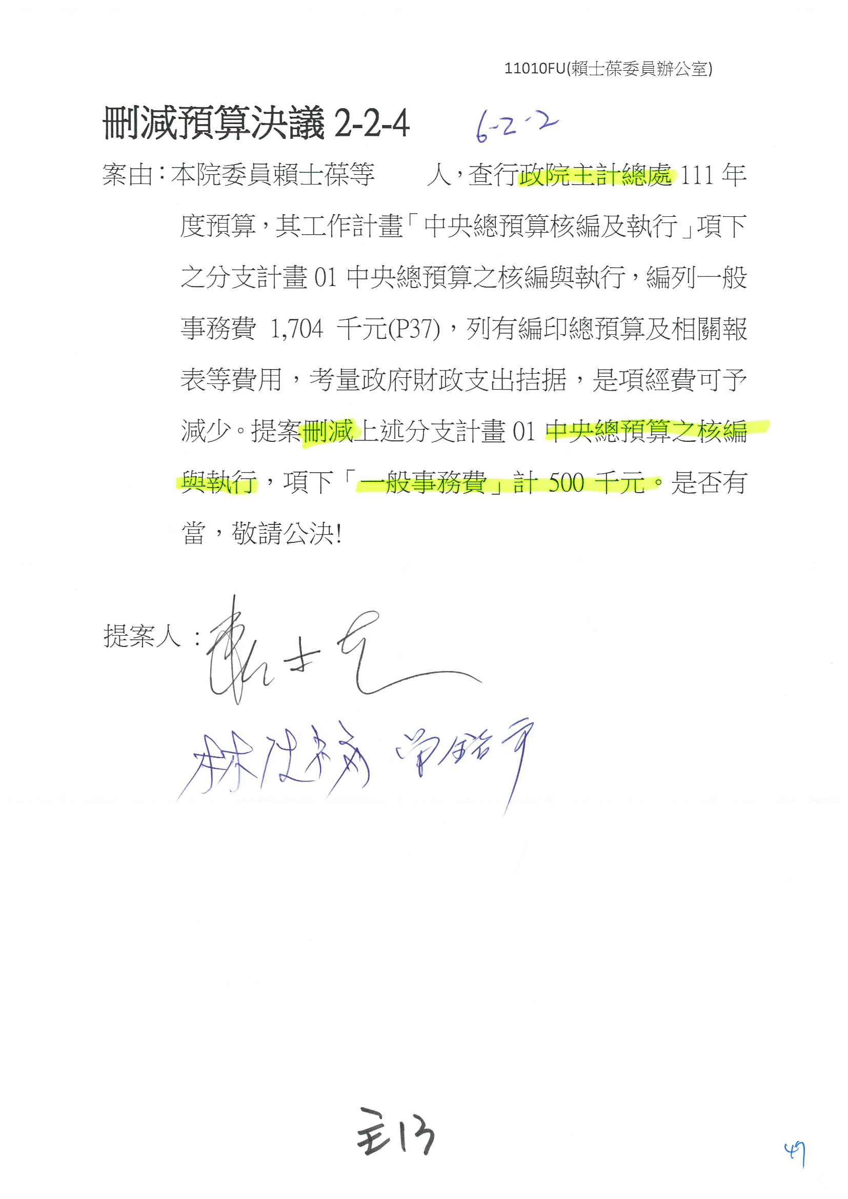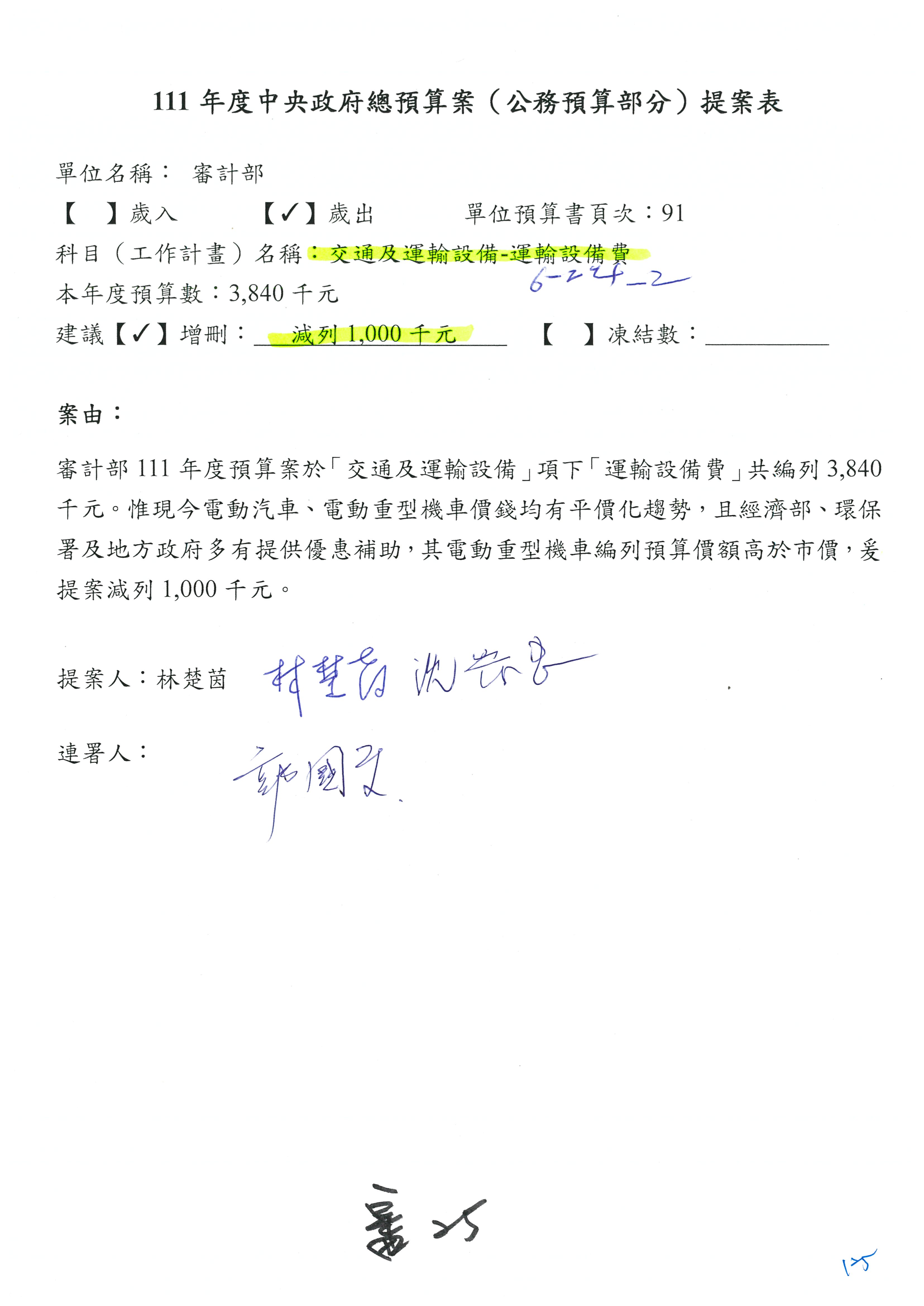 主席:你的案子放最後,我先確定這個部分,國內旅費的部分送院會通案處理,可以嗎?