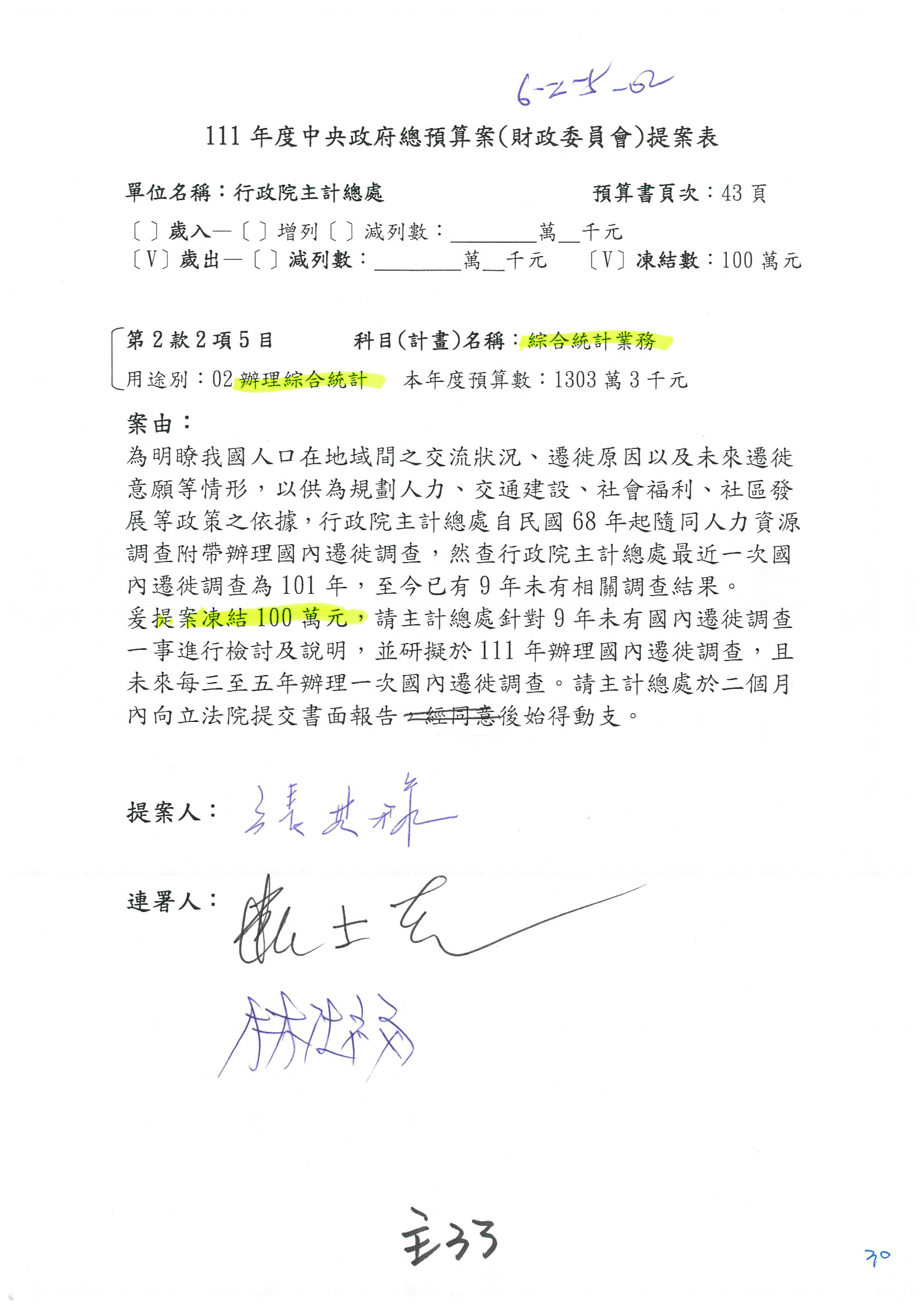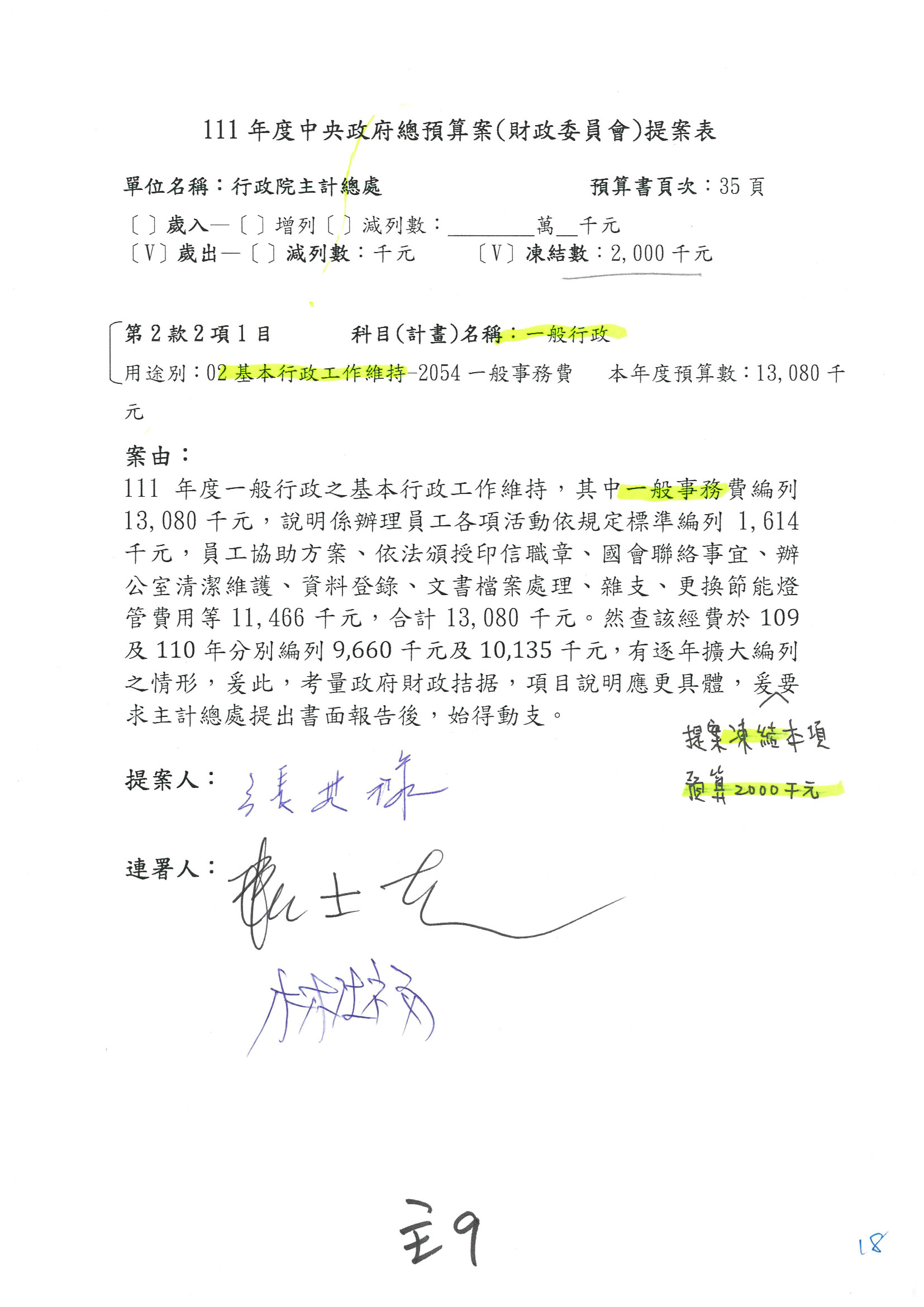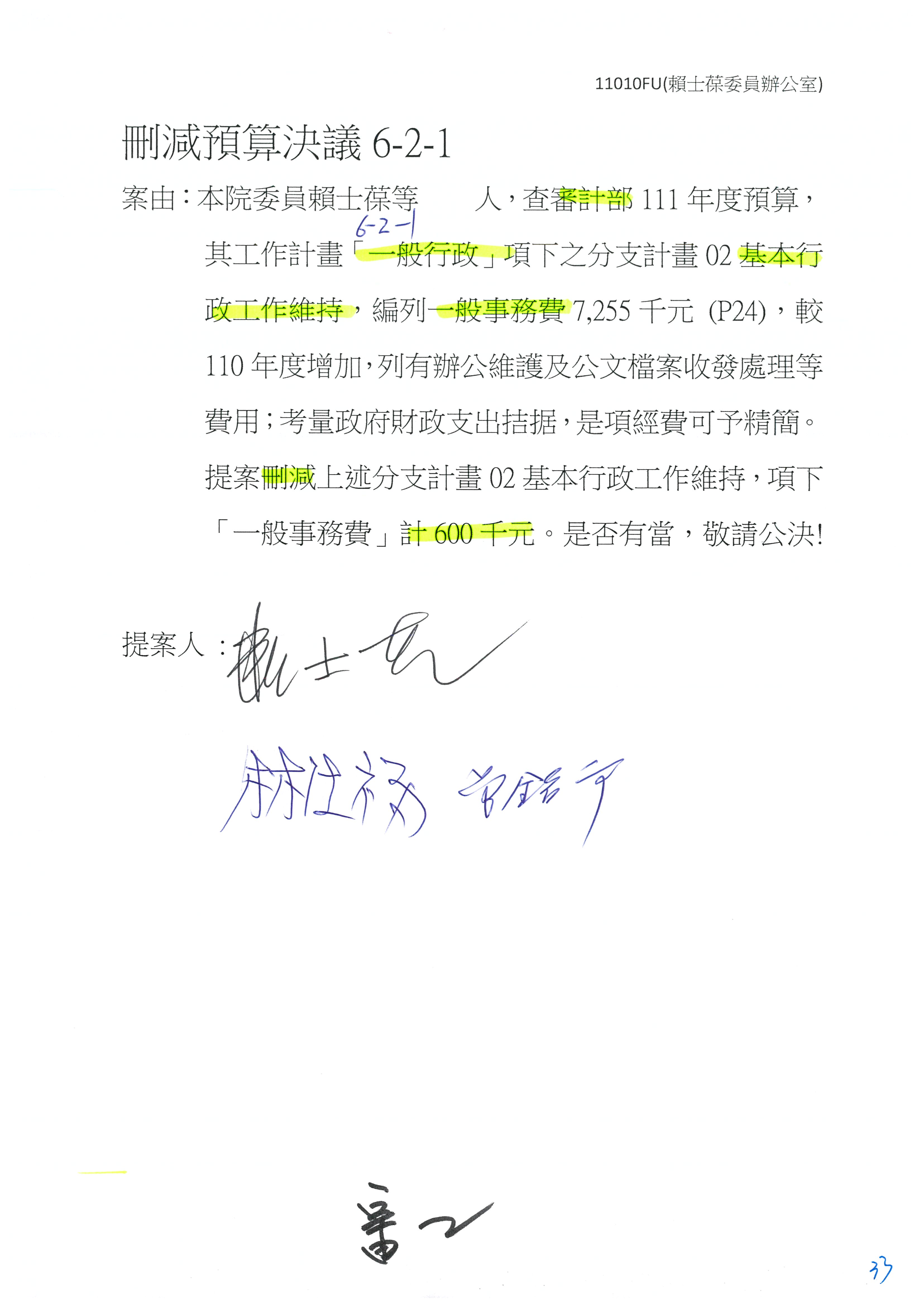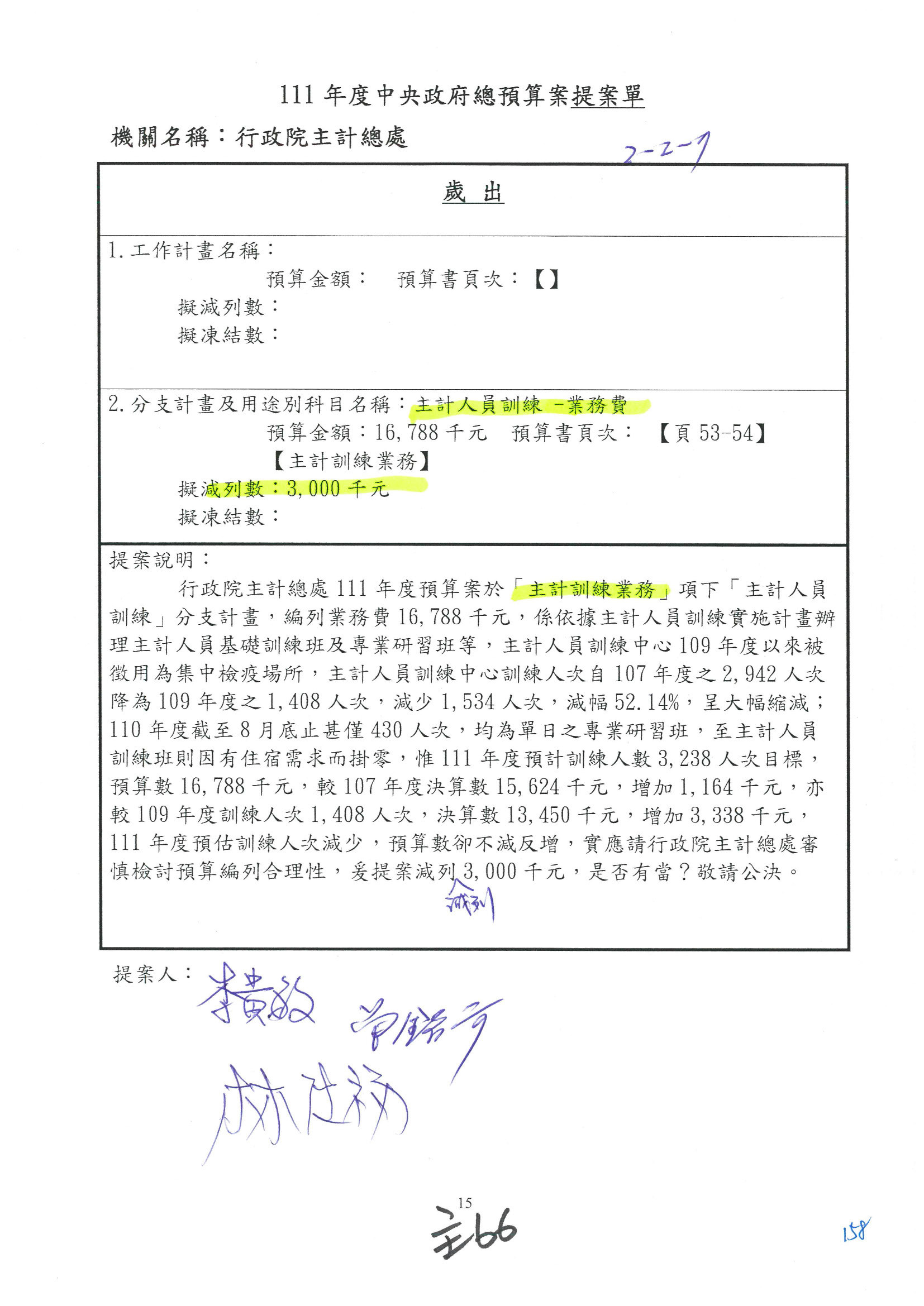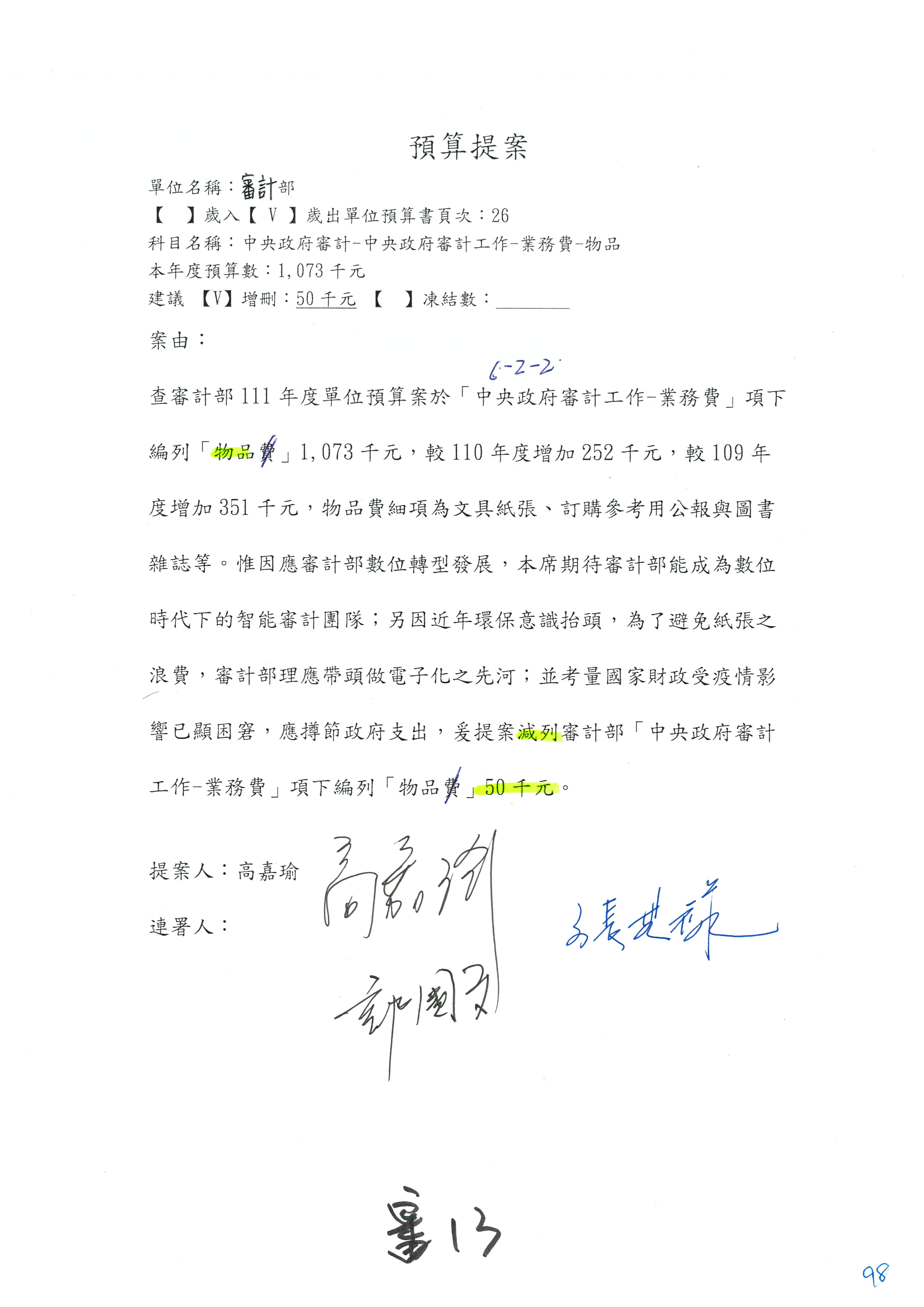 主席:你的案子放最後,我先確定這個部分,國內旅費的部分送院會通案處理,可以嗎?
