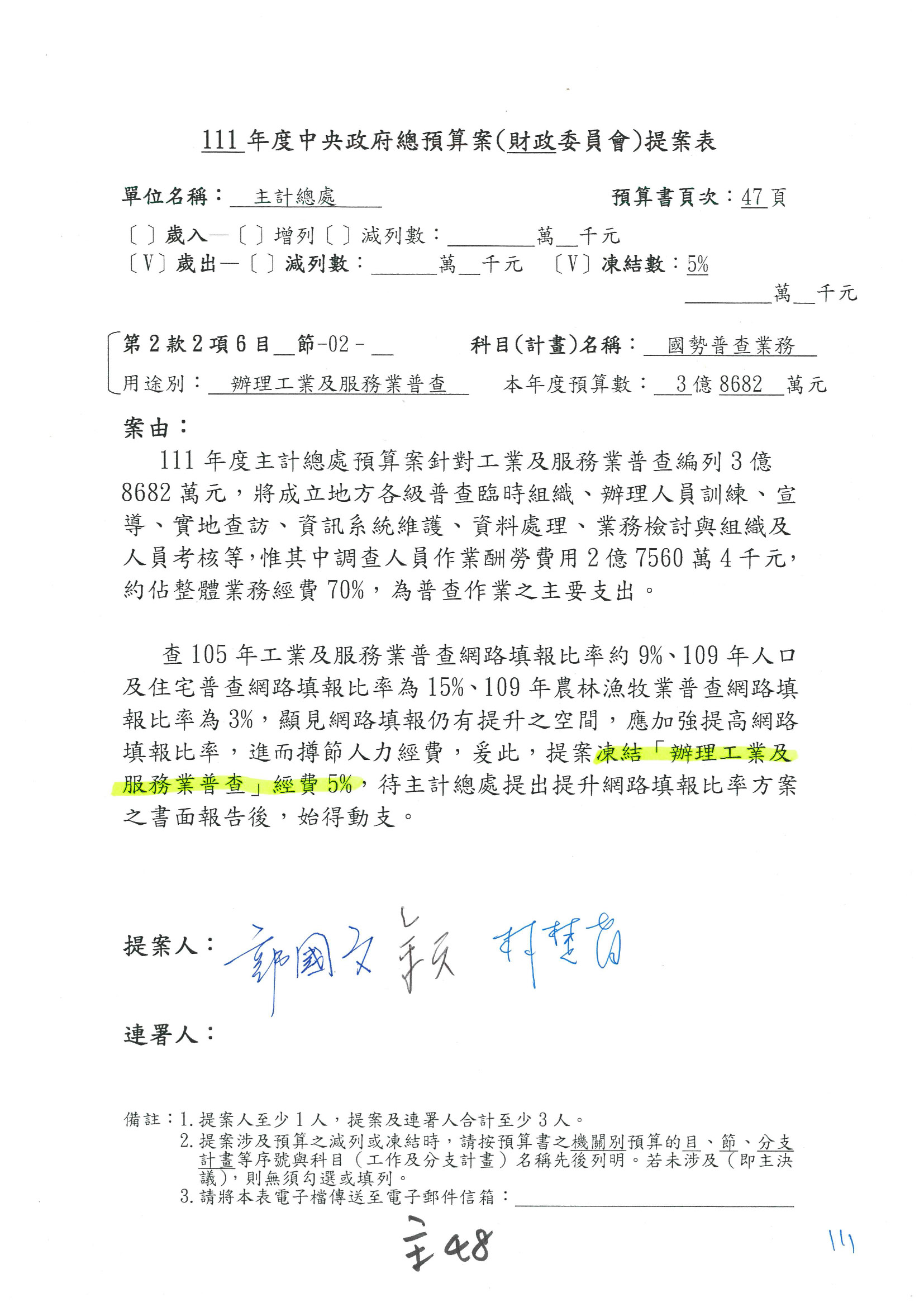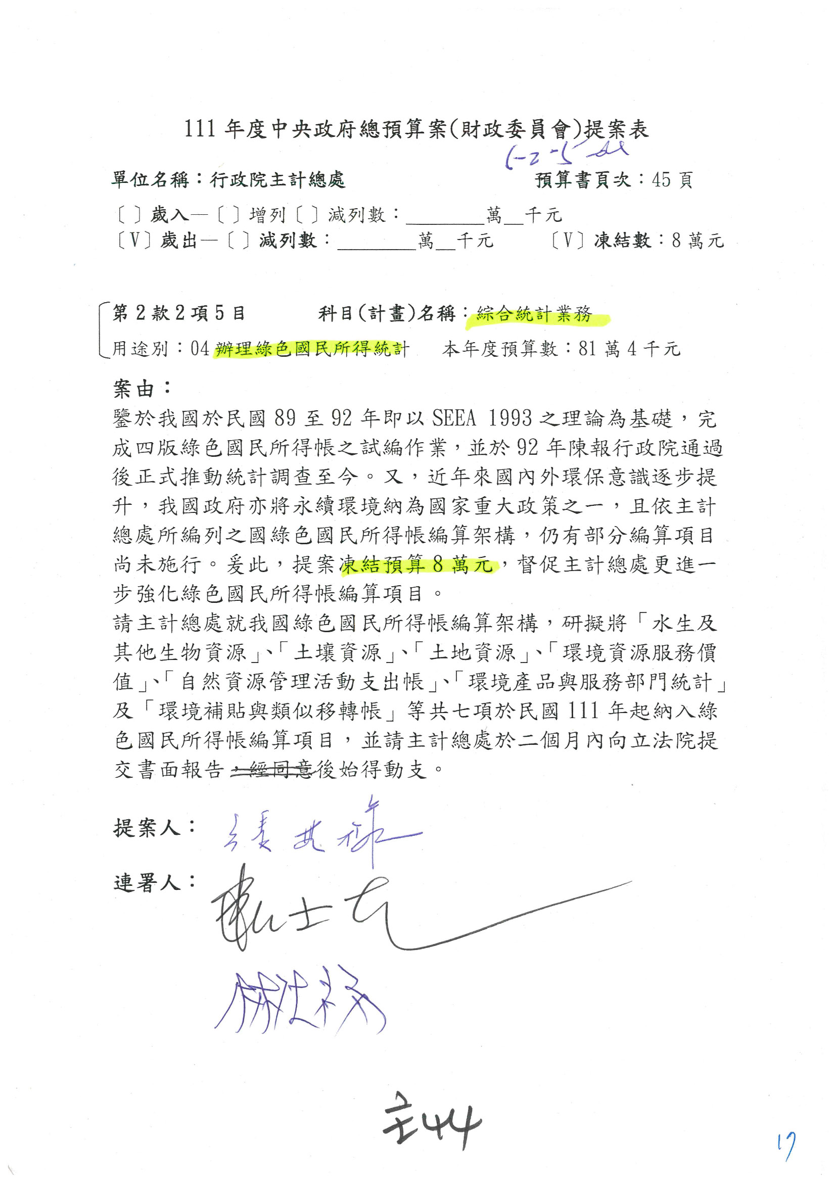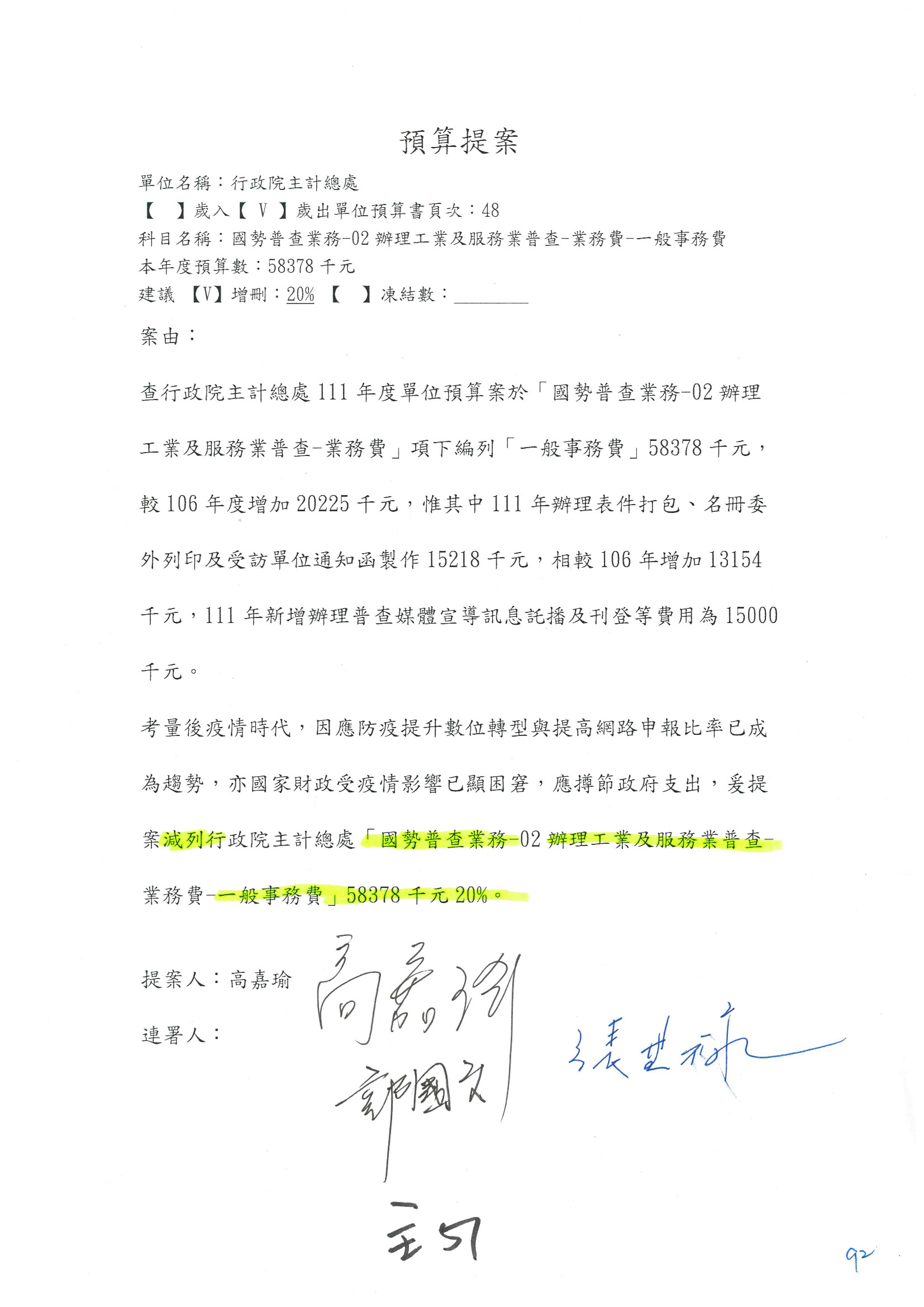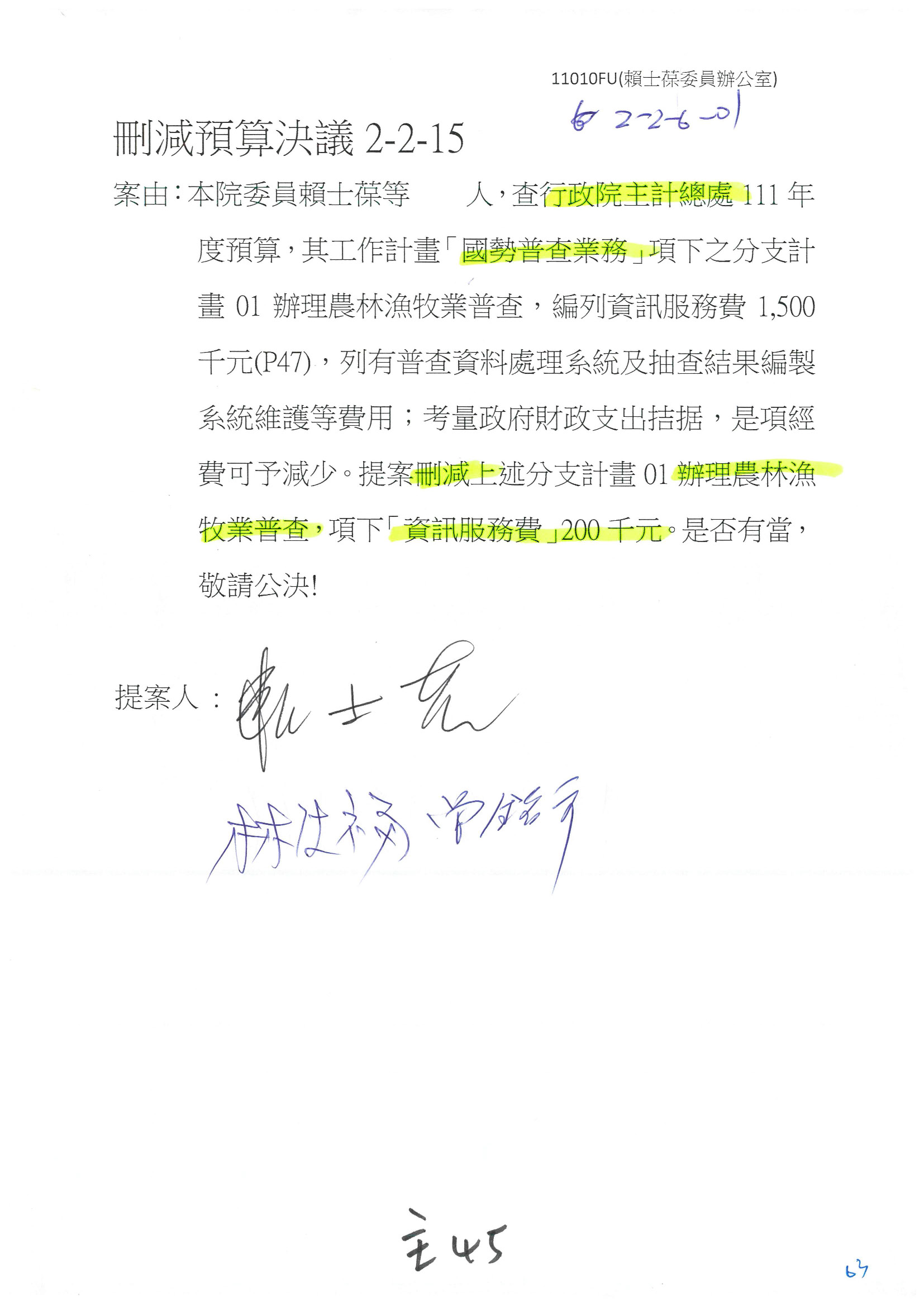 主席:賴士葆委員,第45案是資訊服務費,科目自行調整,在國勢普查業務項下。