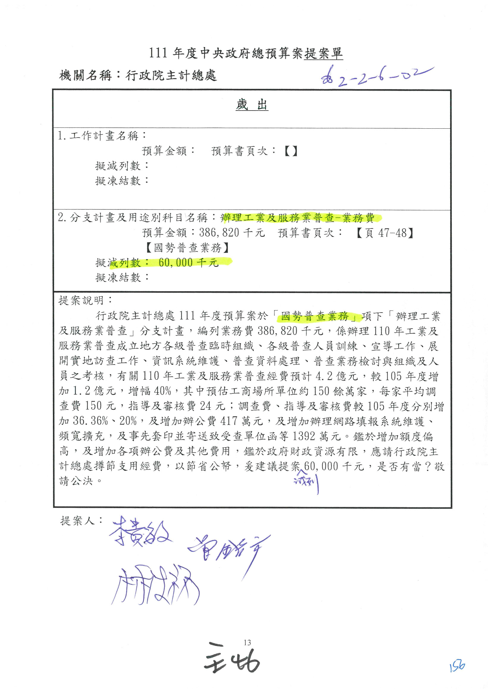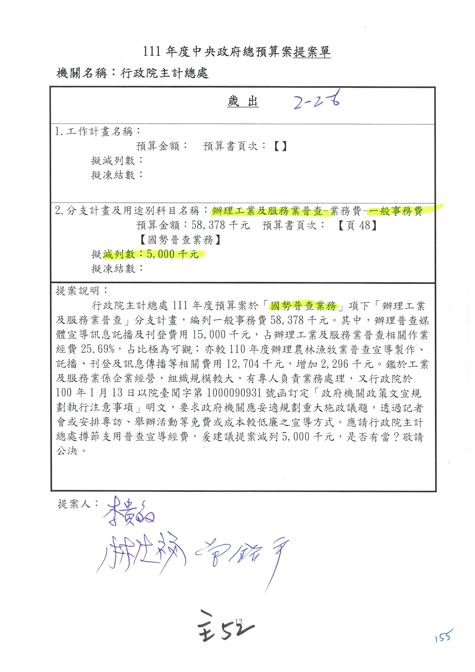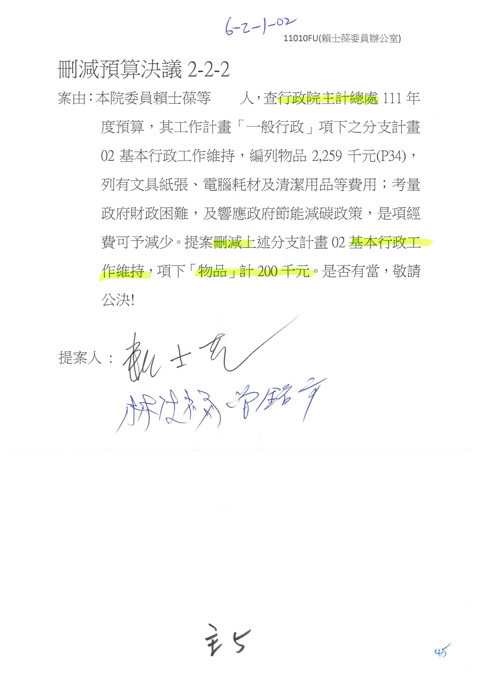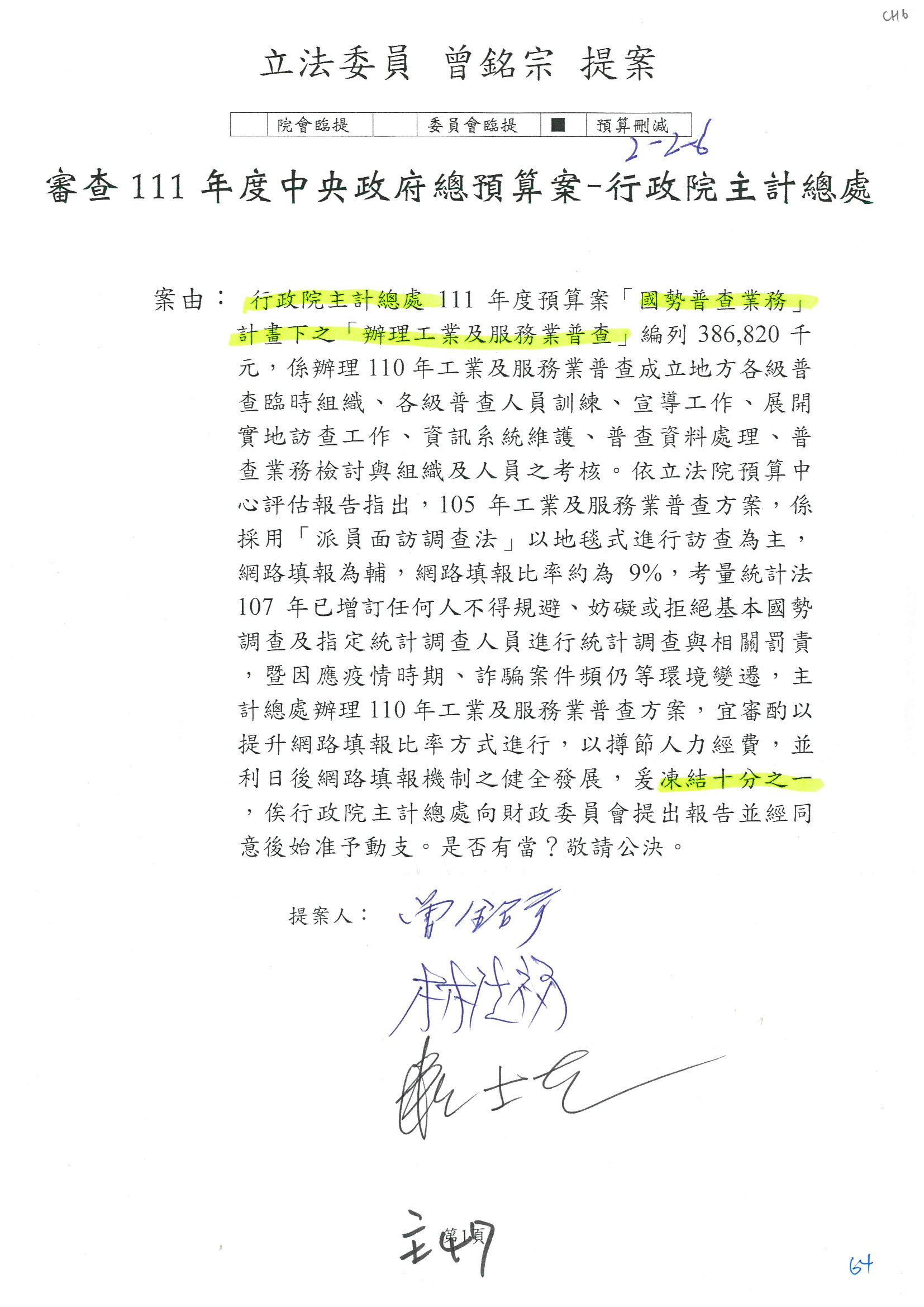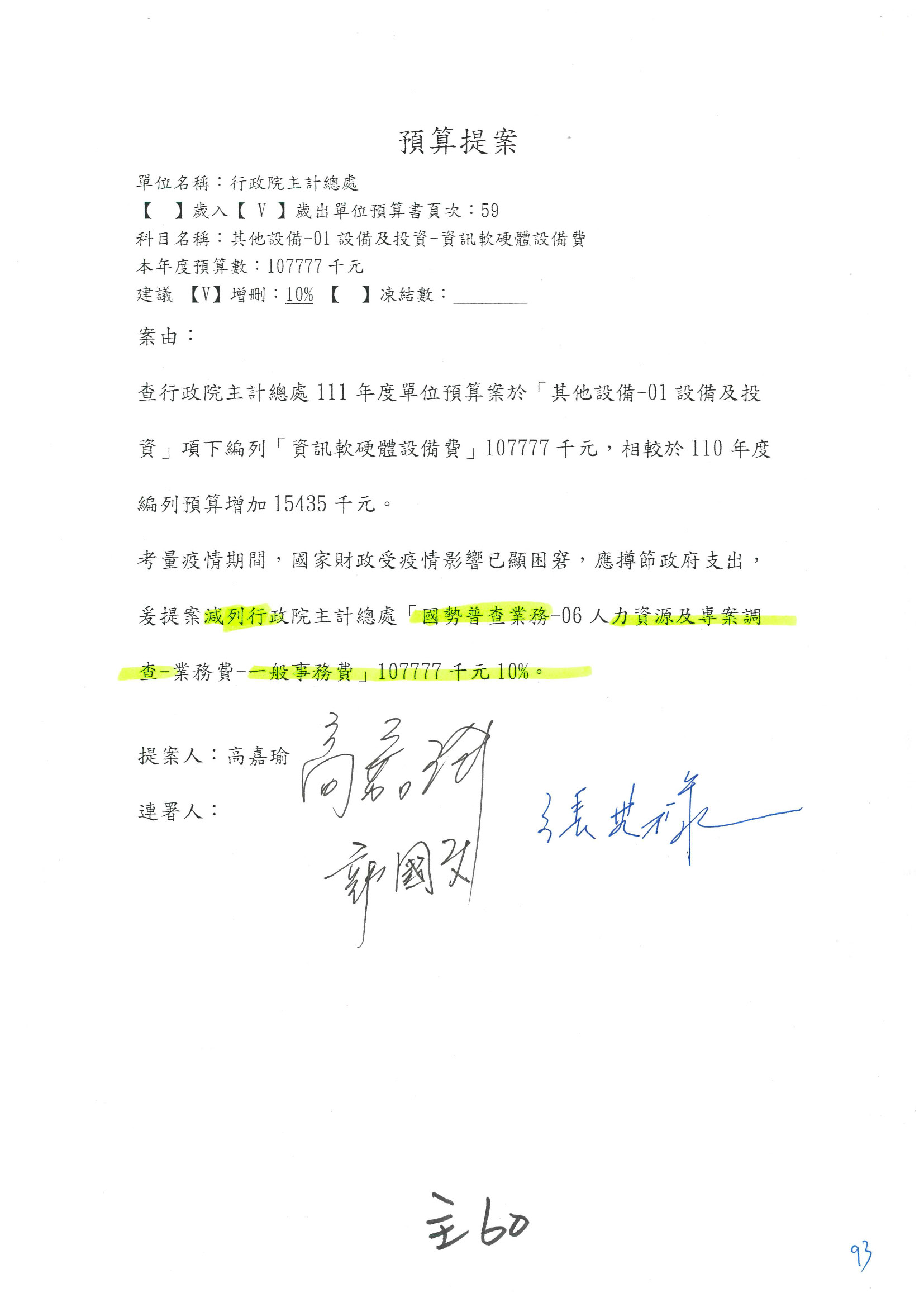 主席:賴士葆委員,第45案是資訊服務費,科目自行調整,在國勢普查業務項下。