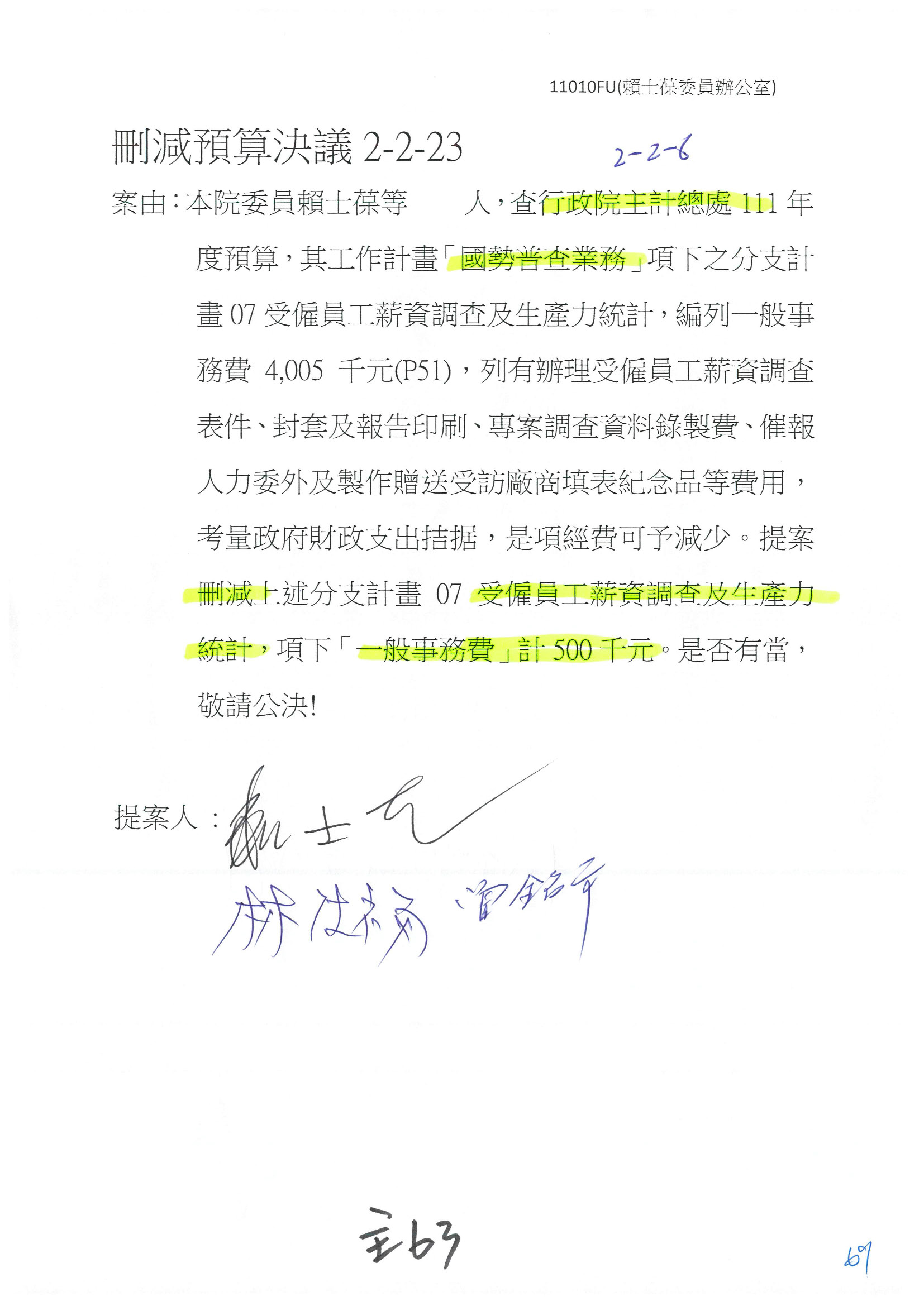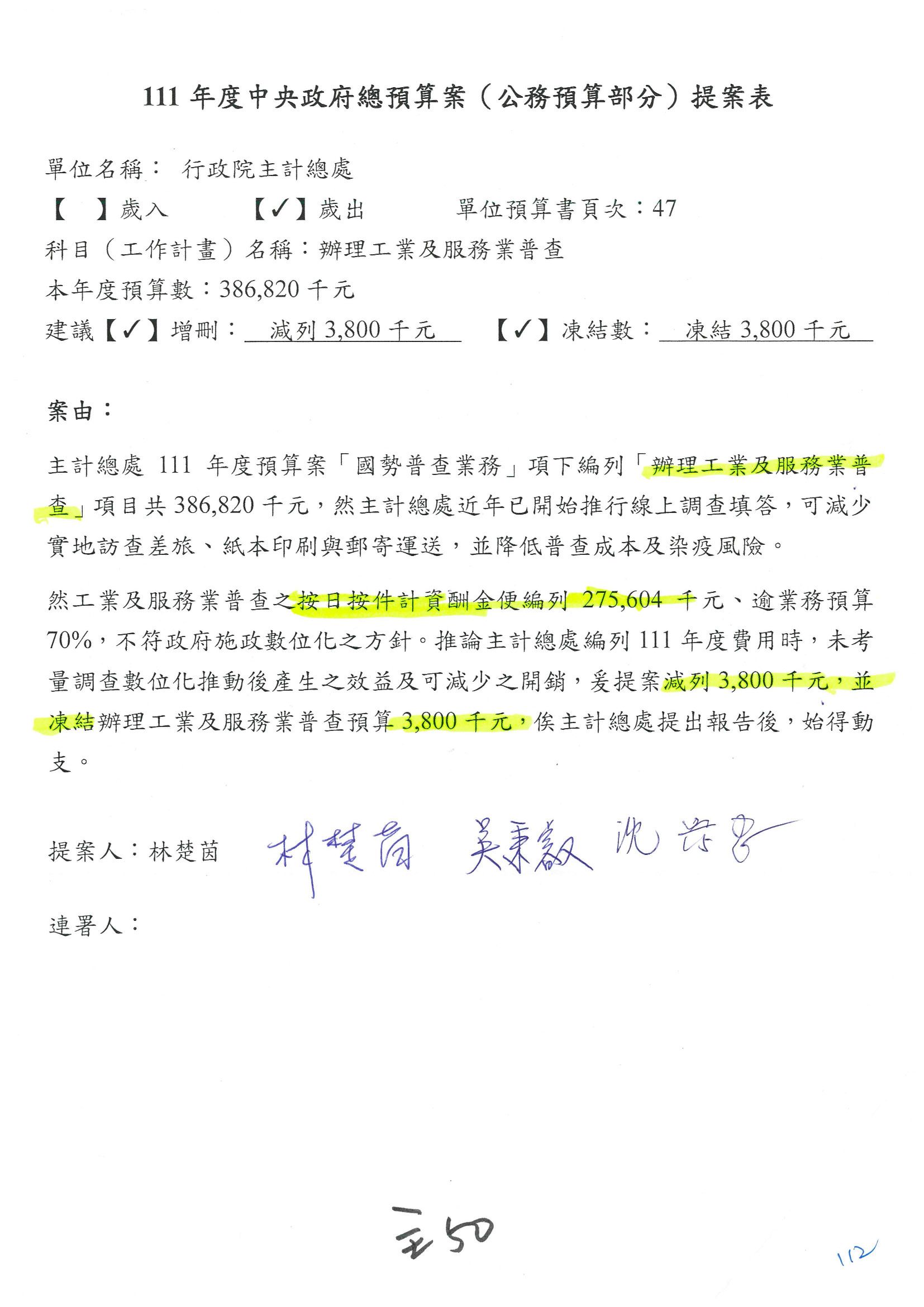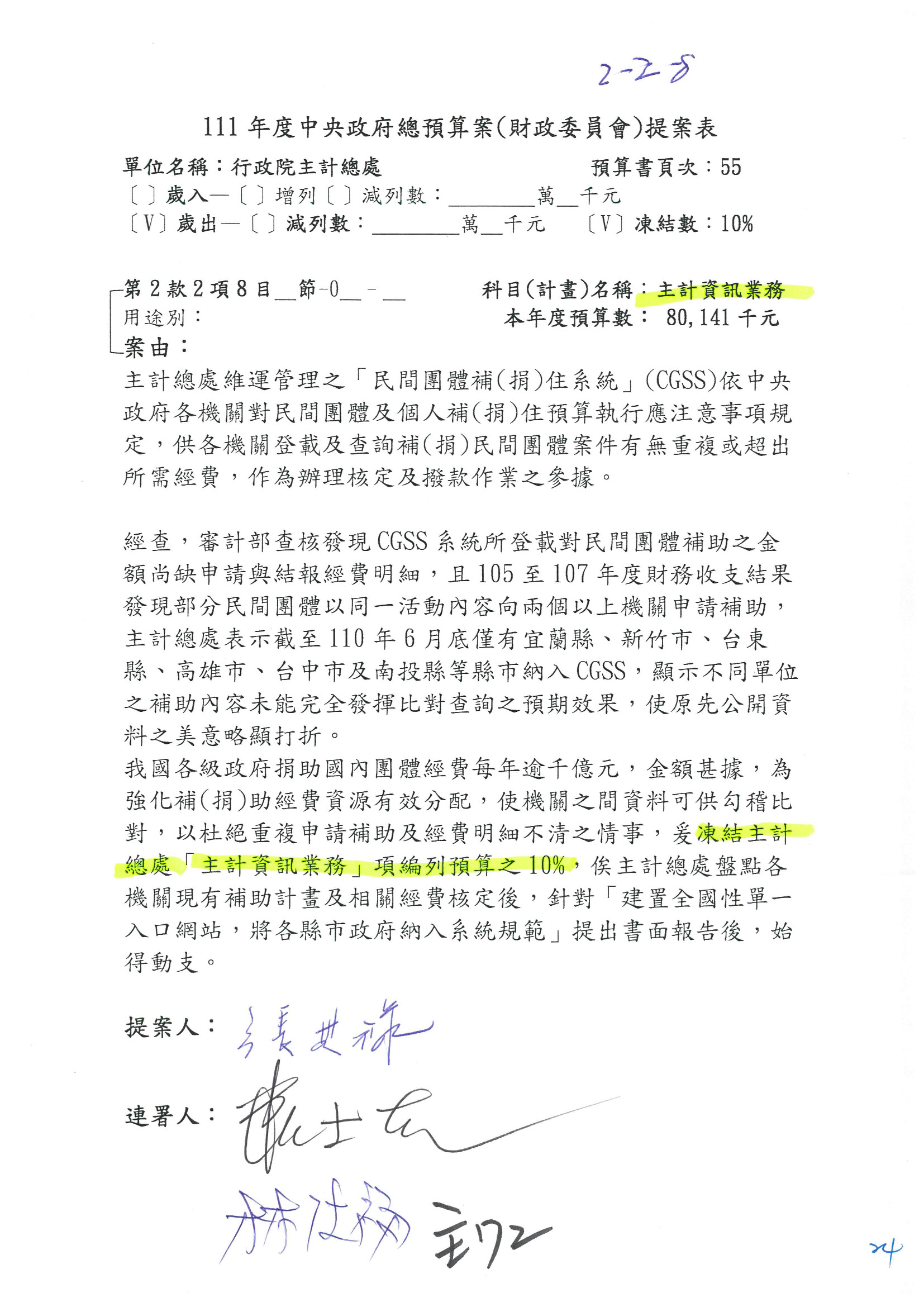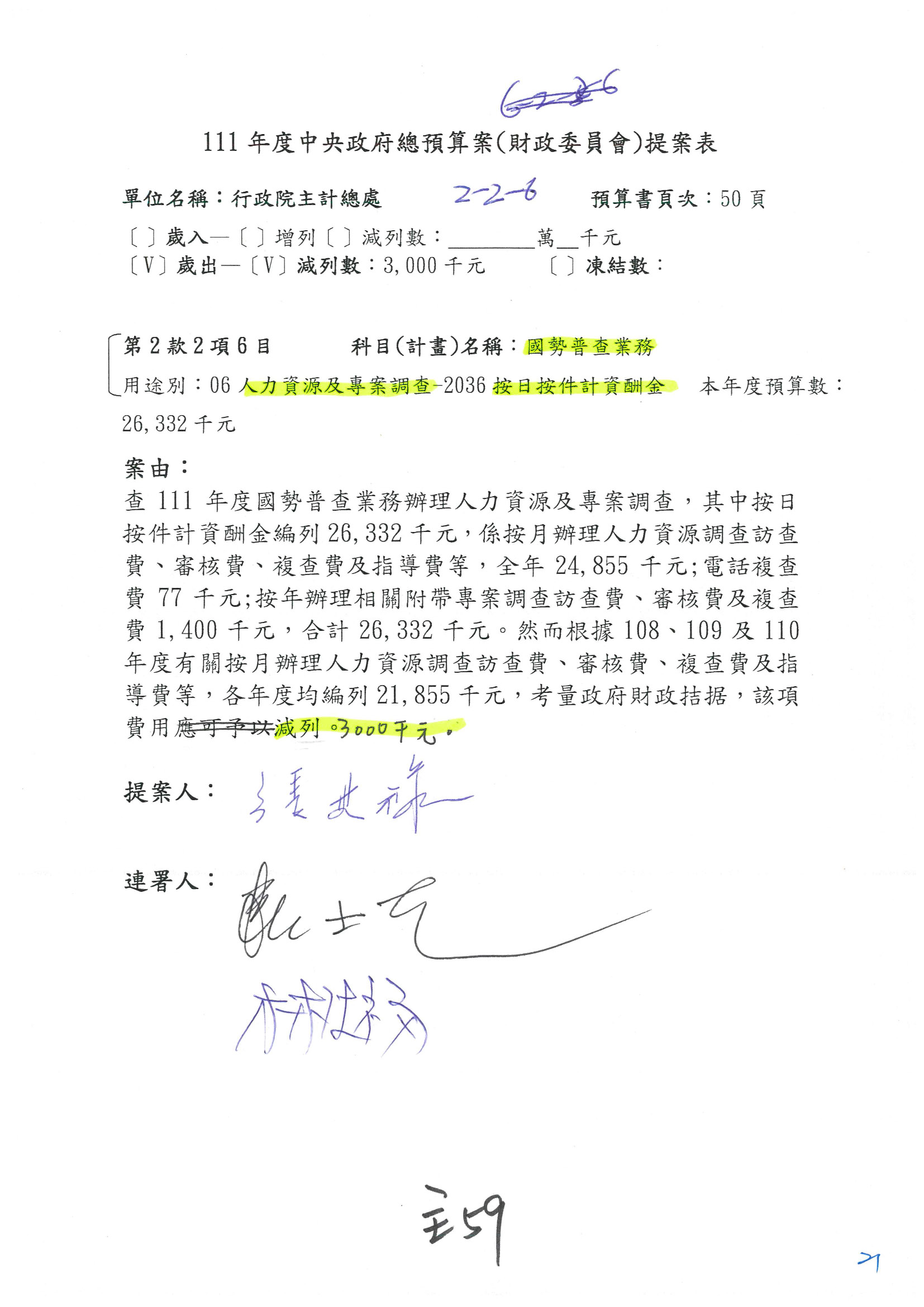 主席:賴士葆委員,第45案是資訊服務費,科目自行調整,在國勢普查業務項下。