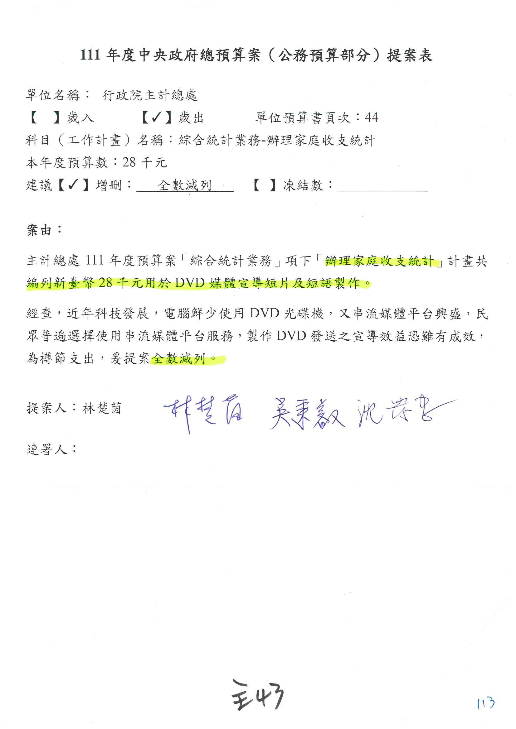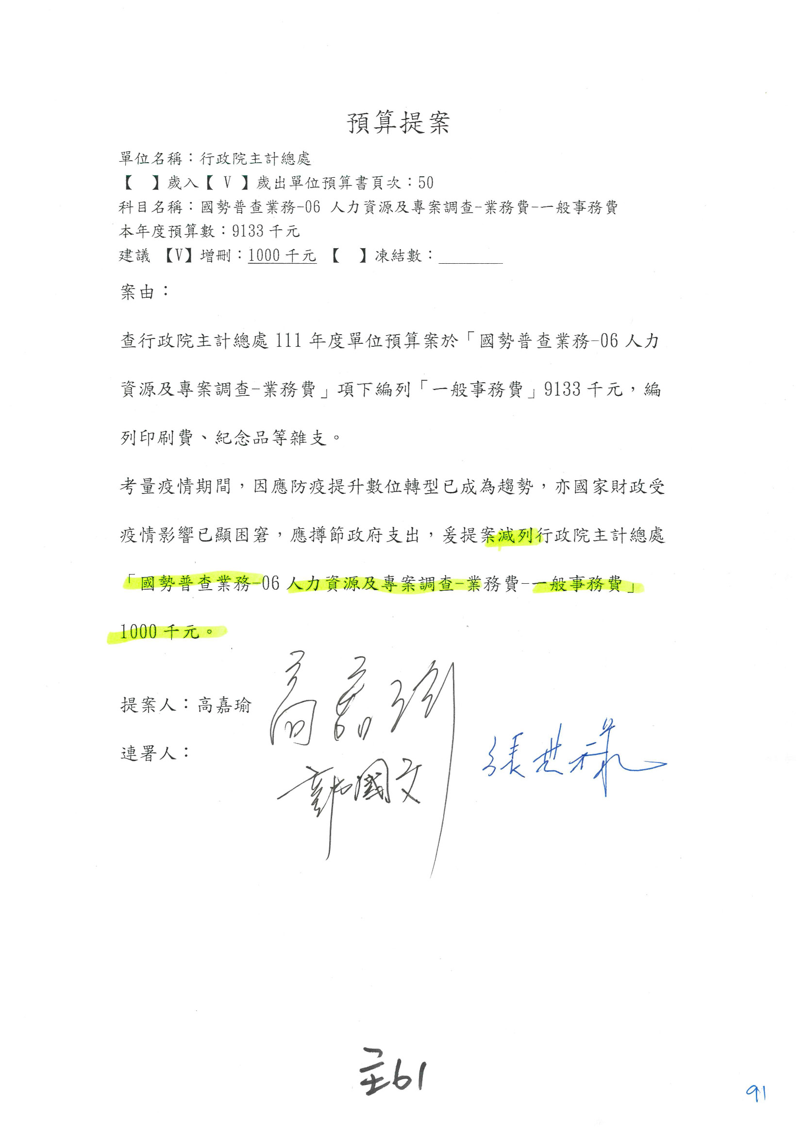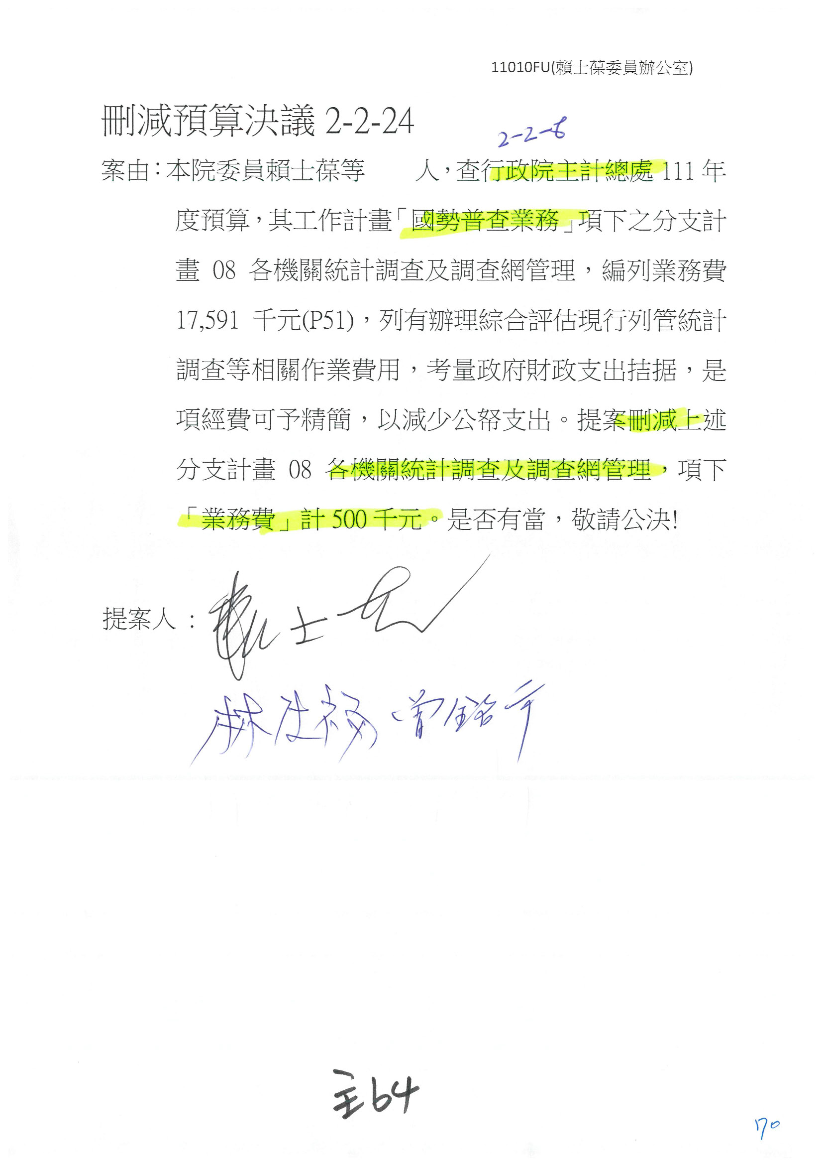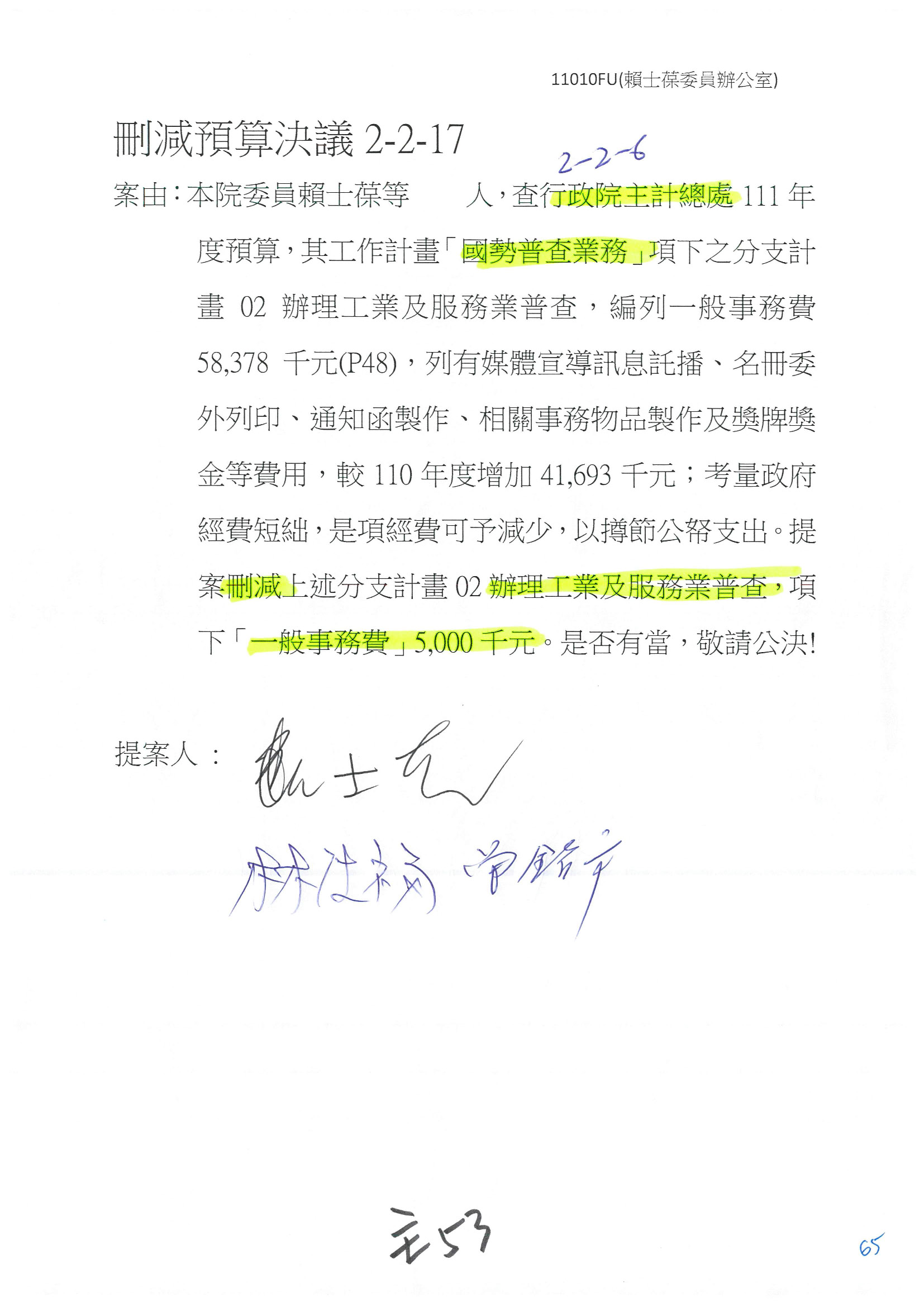 主席:賴士葆委員,第45案是資訊服務費,科目自行調整,在國勢普查業務項下。