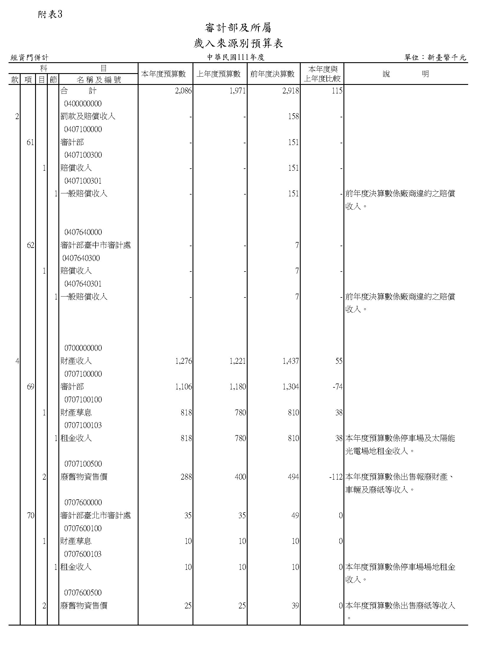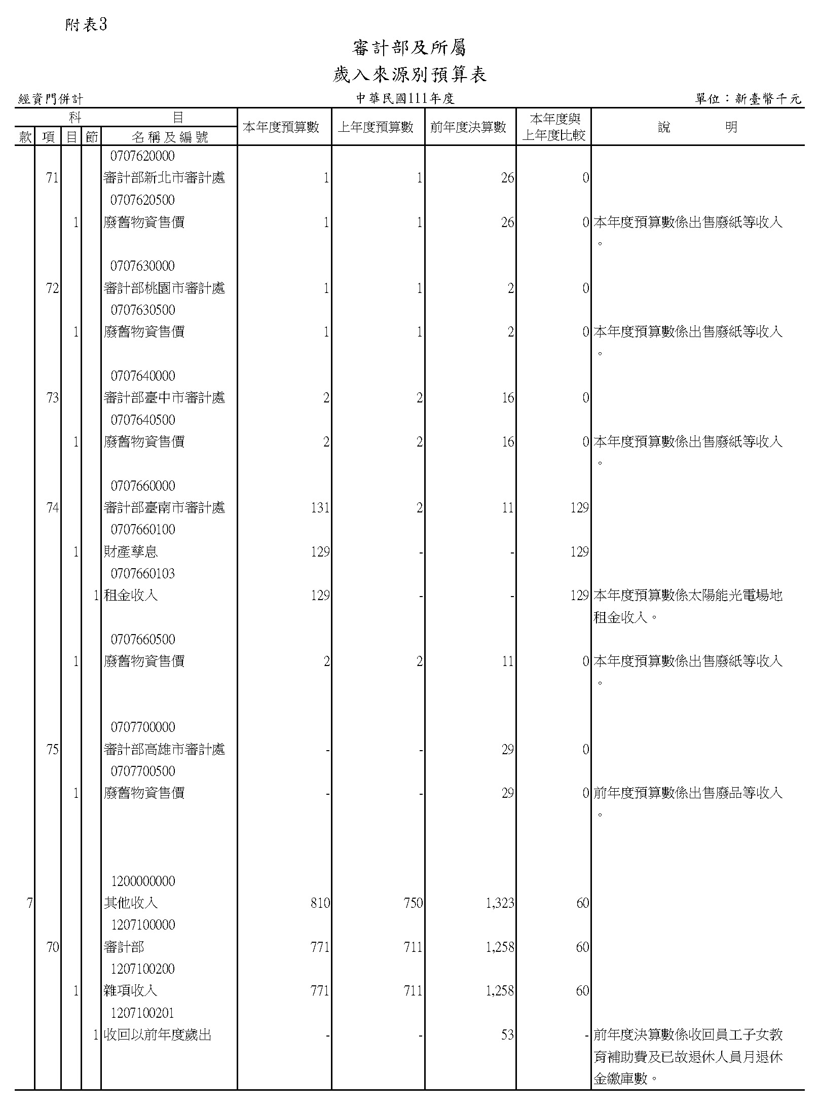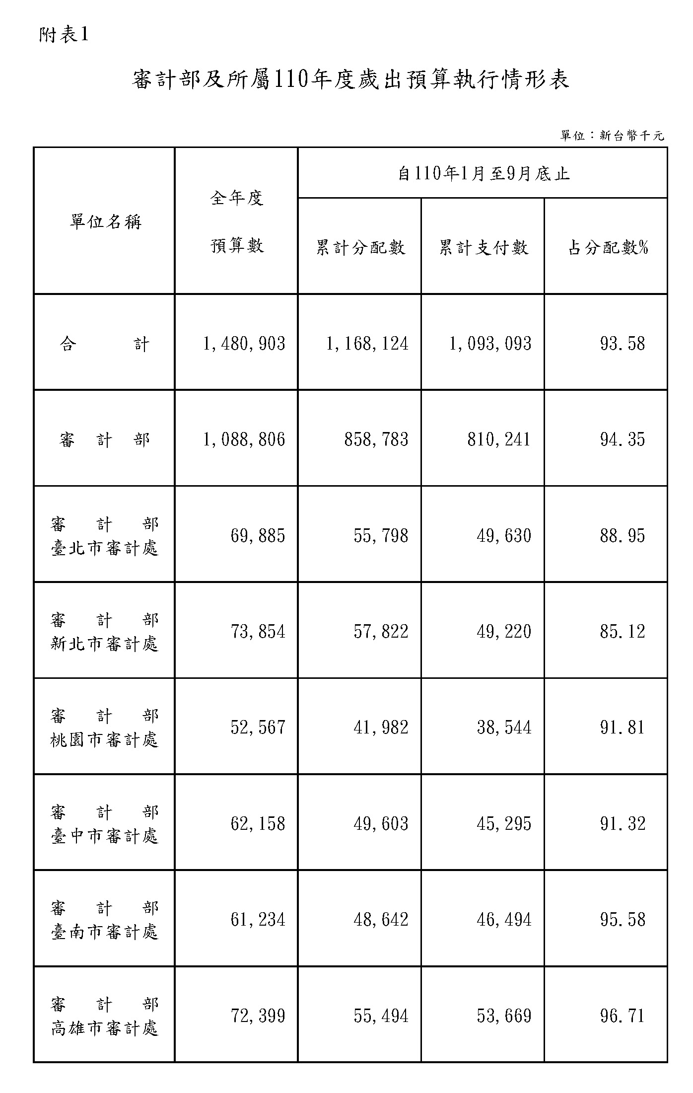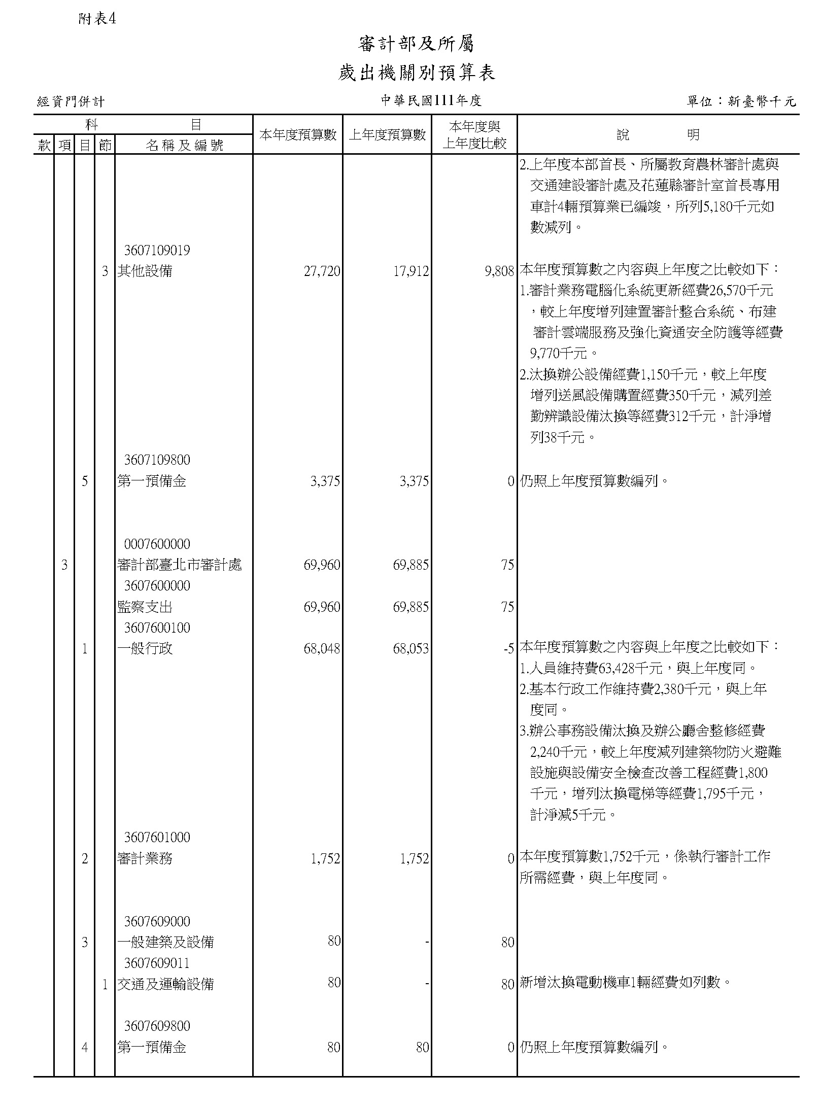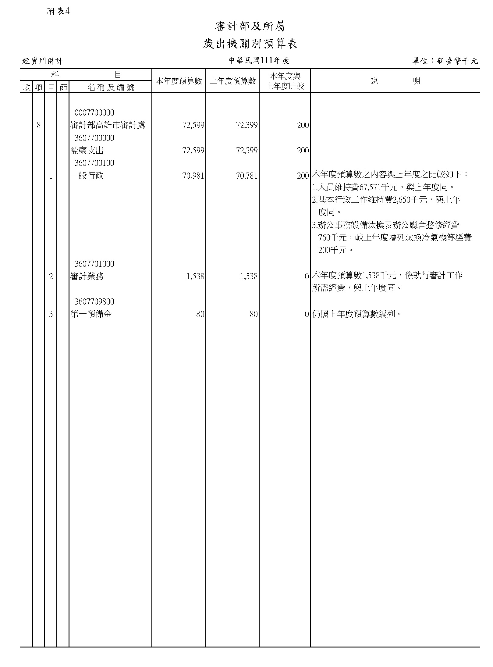 陳審計長瑞敏:這幾個單位的審計業務經費,它要審的是一個縣市政府,像臺北市政府、新北市政府、桃園市政府,它的審計業務經費才一百多萬元,刪20萬元、刪30萬元已經刪掉它……