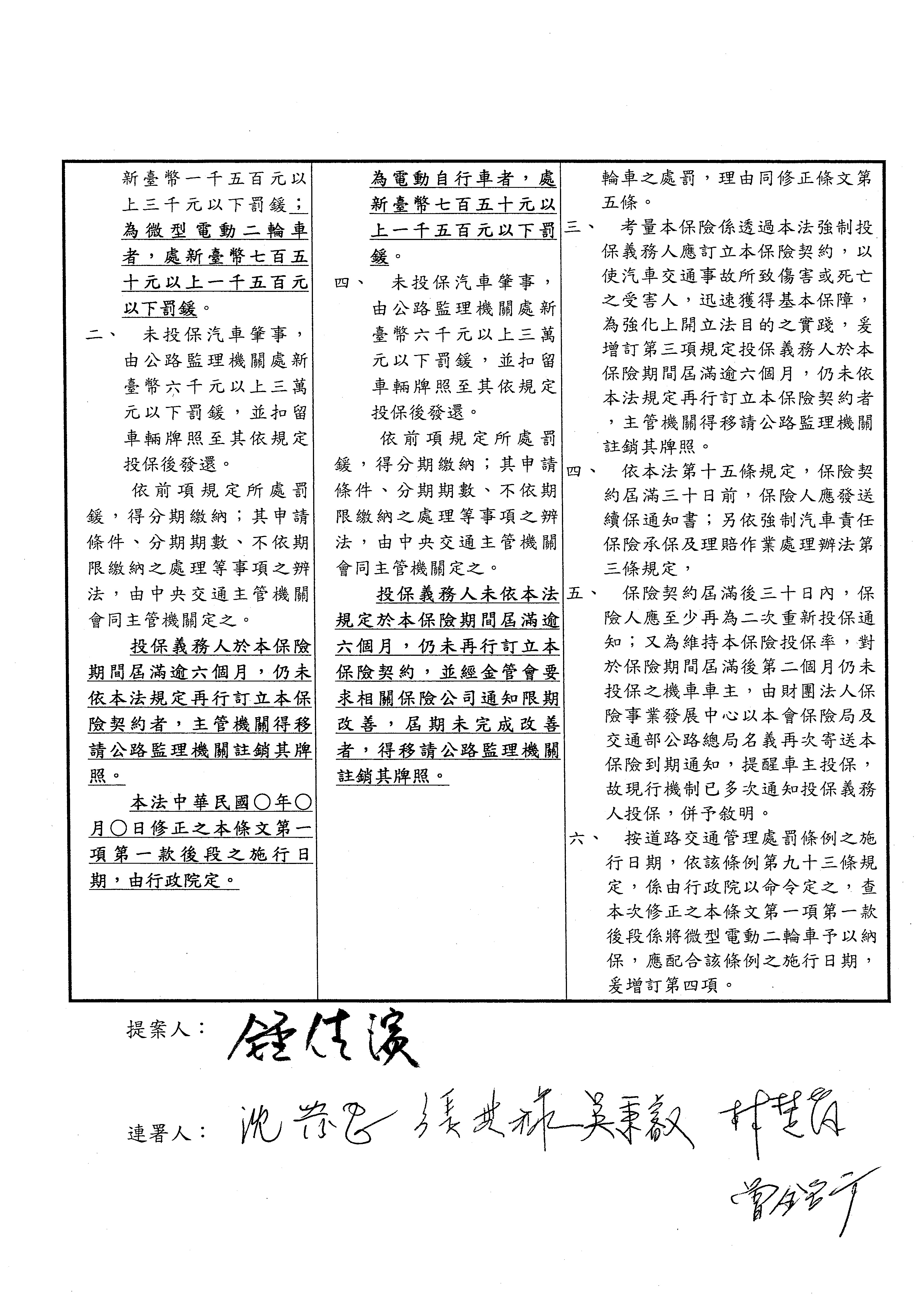 強制汽車責任保險法修正草案2案,全案審查完竣,併案擬具審查報告,提報院會討論,院會討論前須交由黨團協商,院會討論時由本席補充說明。