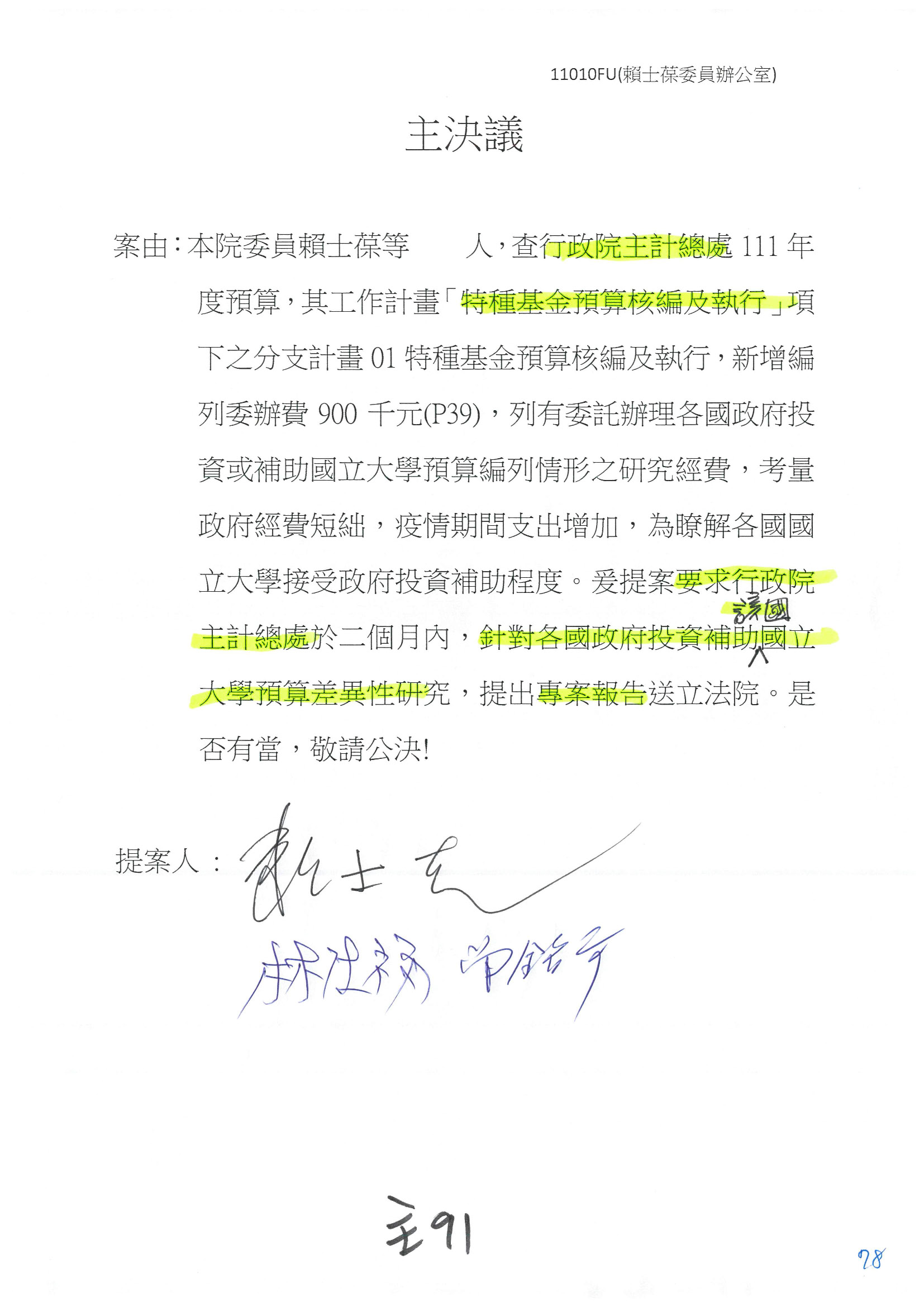 賴委員士葆:主席,然你們講好了,我建議這個影本copy一份交給朱澤民,叫他照辦。