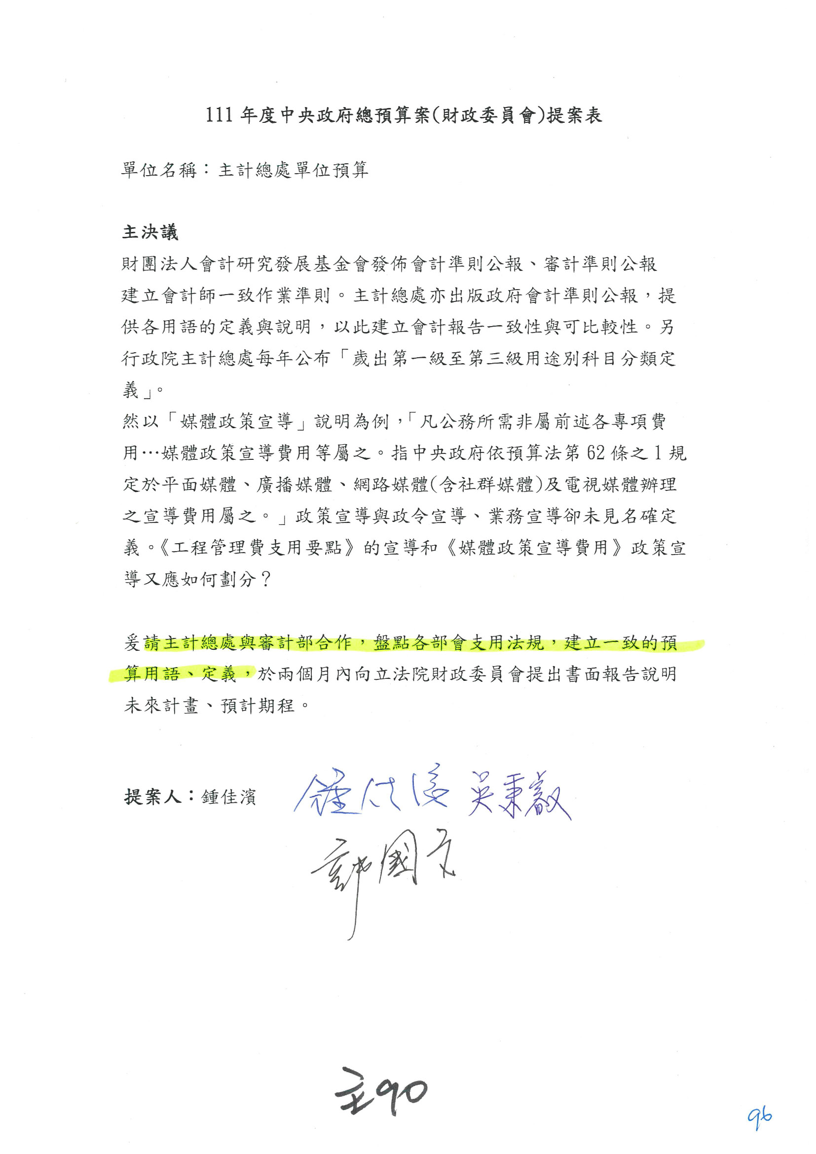 主席:好,文字部分就依剛剛的修正,配合主計總處,建立一致的用語、定義。