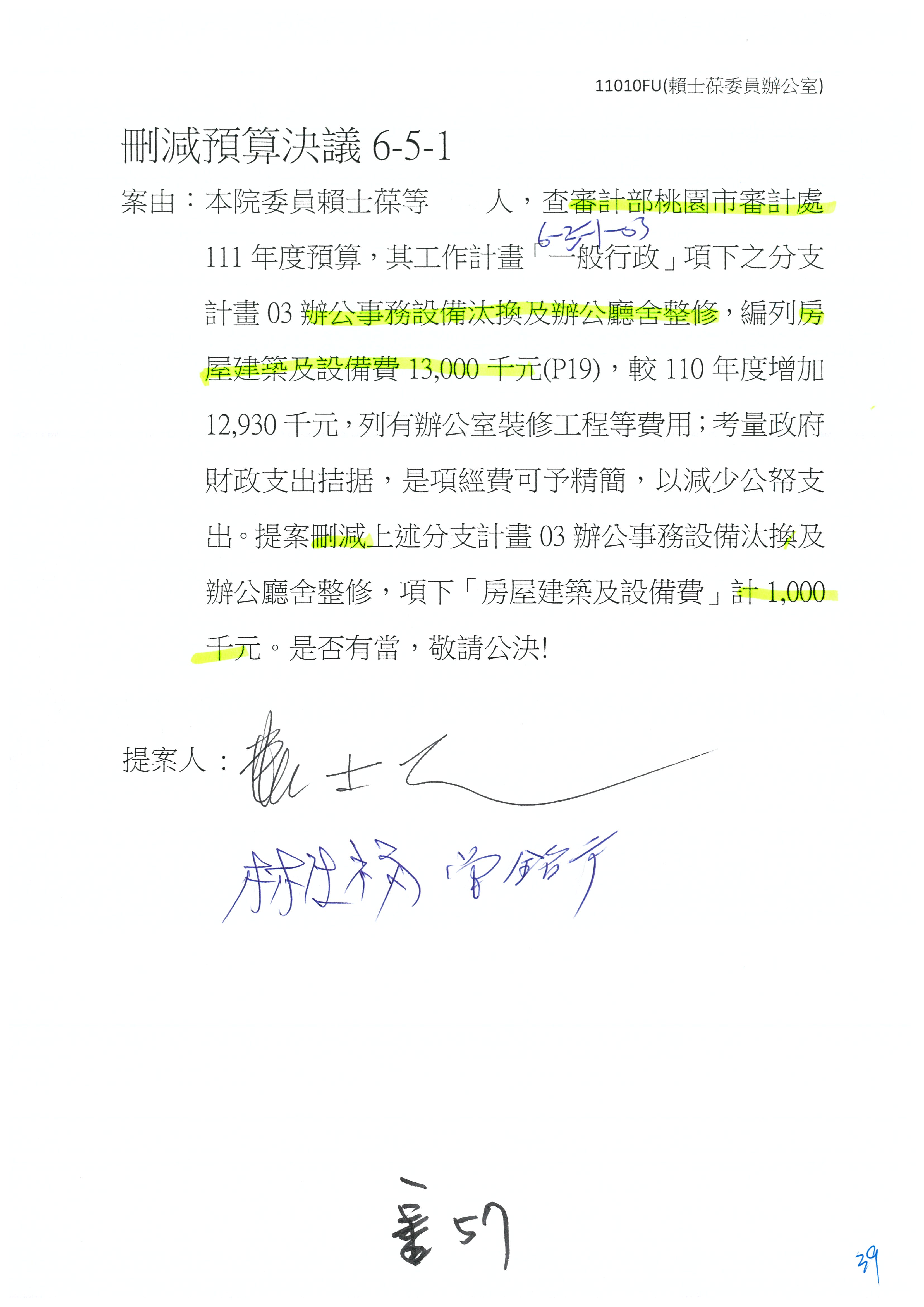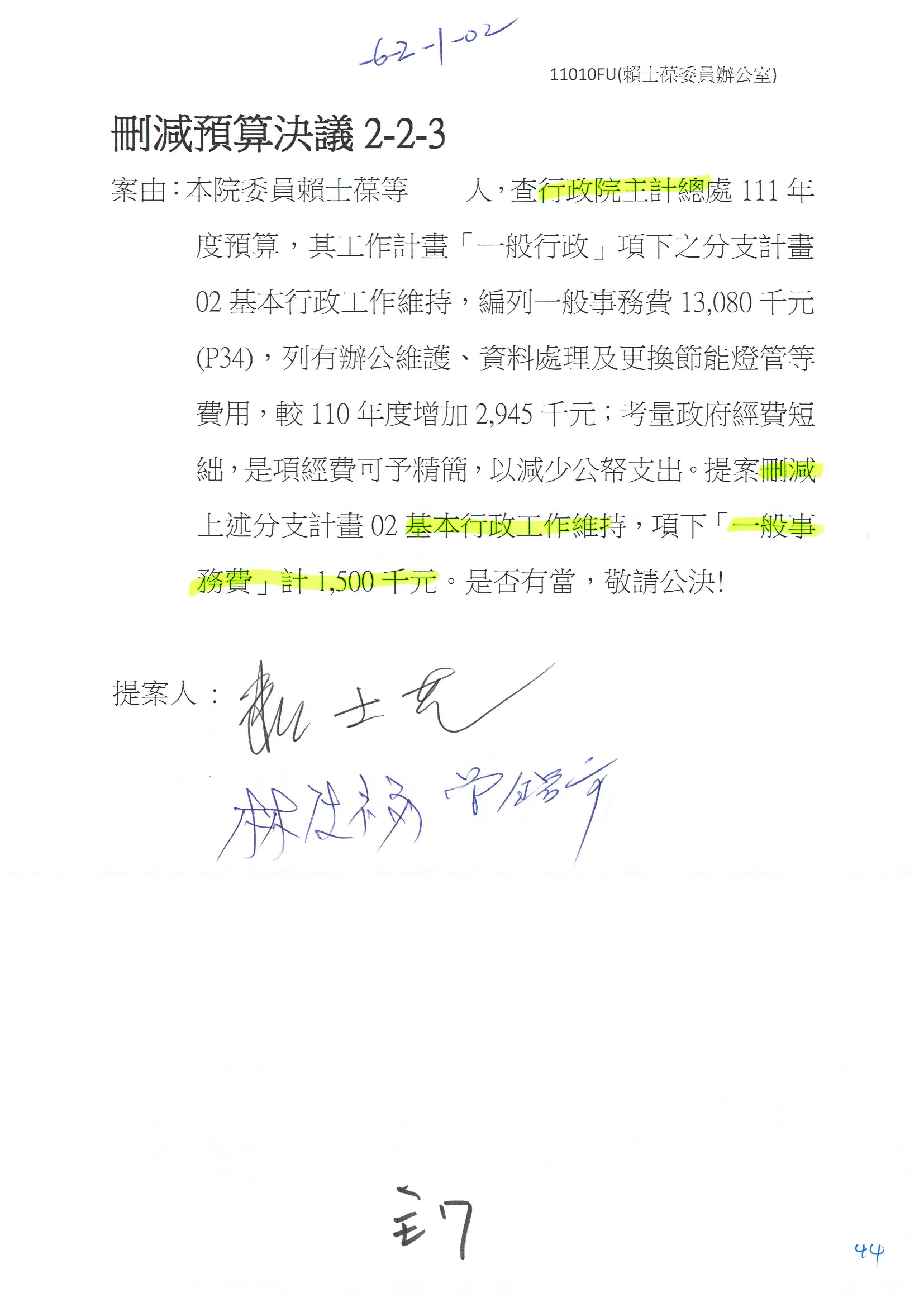 第57案是賴委員的提案,是在「一般行政」項下的辦公事務設備……