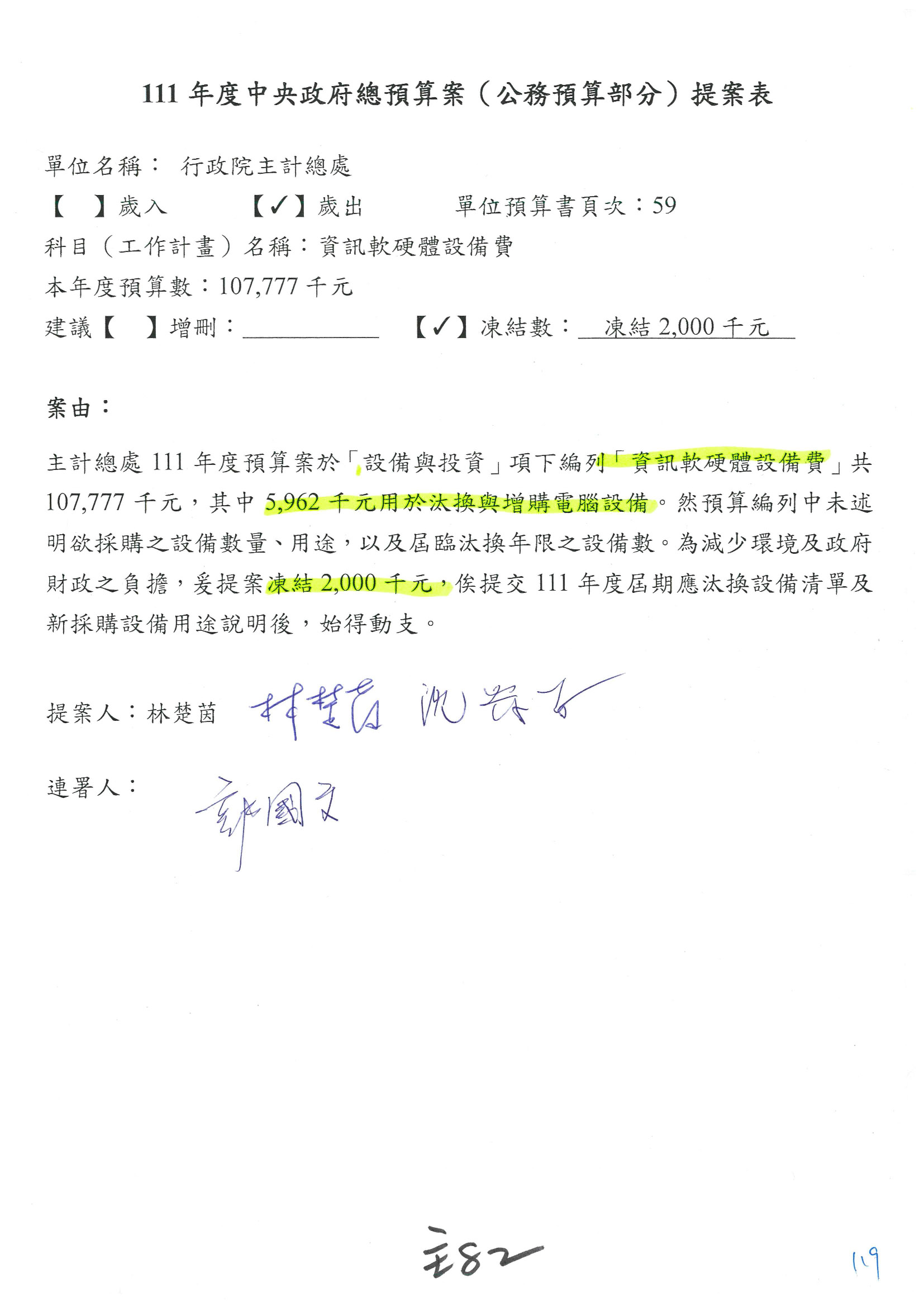 郭委員國文:審計長不要講得那麼可憐,我是按照去年的決算抓出來的數字,林楚茵委員不在,但是你就納通案,好不好?