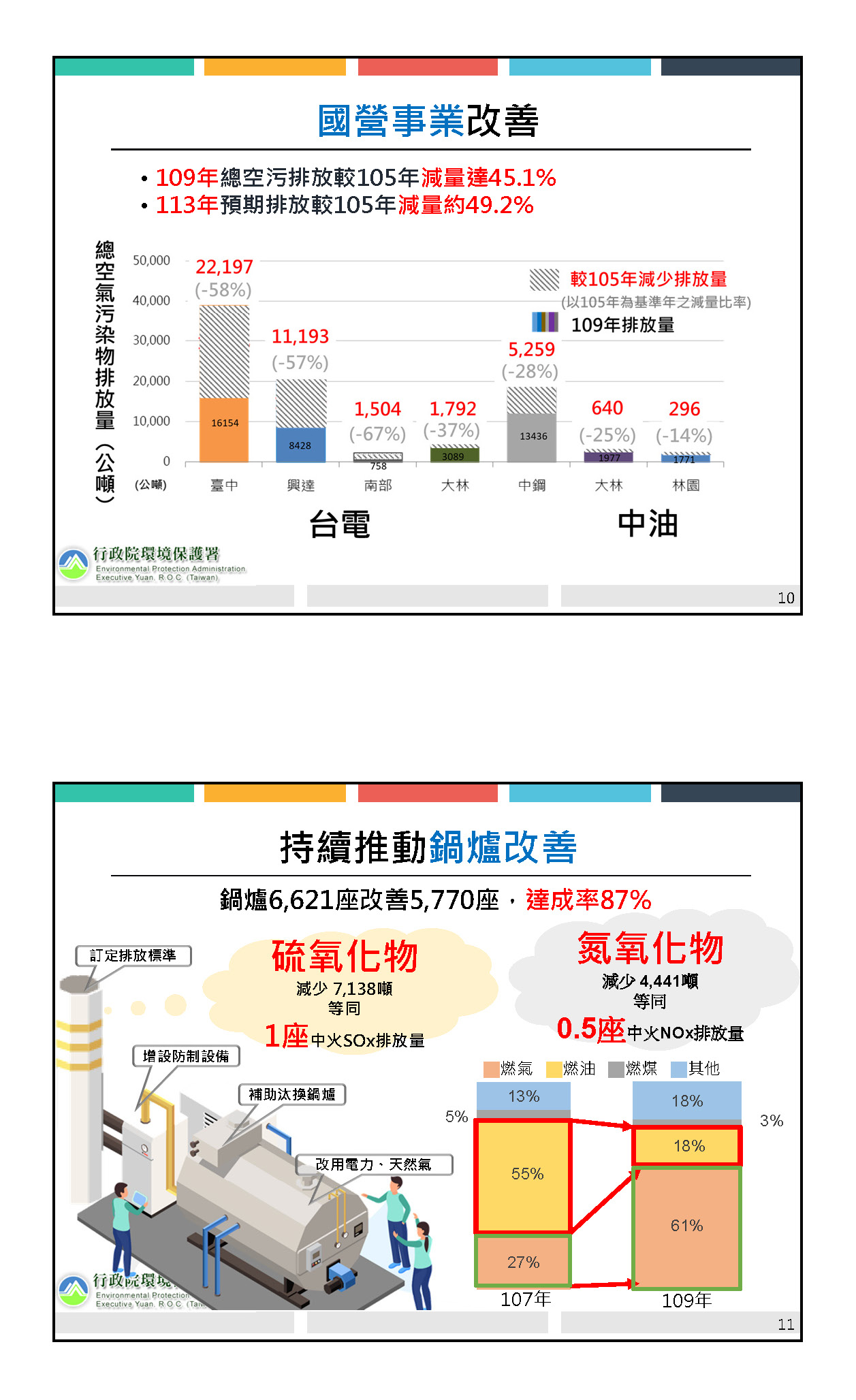 張署長子敬:謝謝委員。我想我們整個環境保護的目標就是保障國民健康,這是最基本的,所以我們一定要做到國民的健康有受到保護,沒有做到之前都要努力。至於做的過程,那就必須要找到是可行的方法,也不是說窮盡一切或是不顧一切去做,那把其他都毀了,只是空氣變好,其實不見得是有幫助的,尤其像環境的議題,它是會互相變化的,所以我們會找到最適當的方法,讓大家可以……