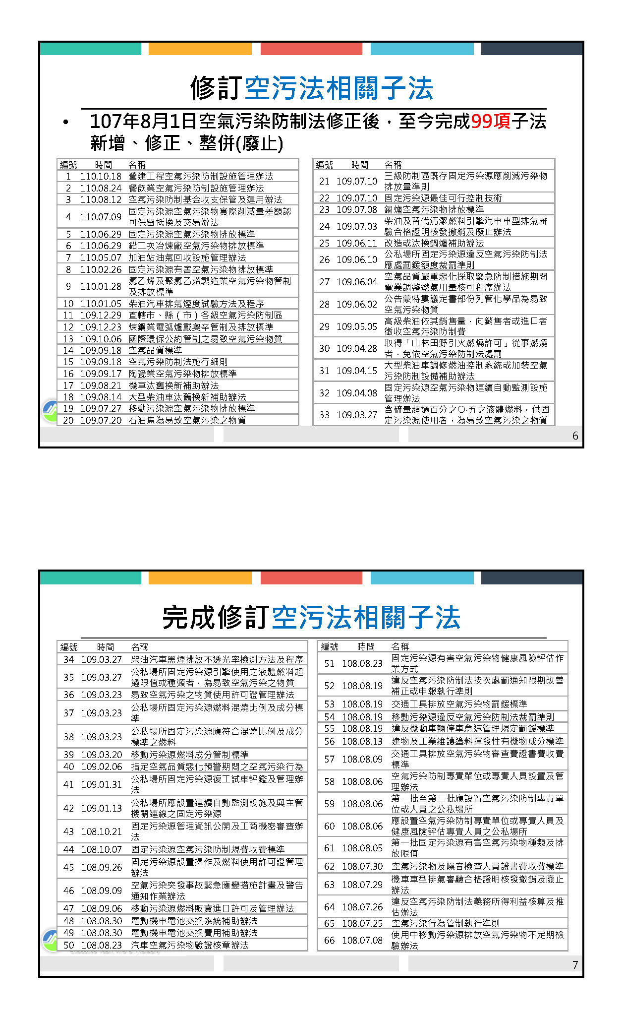 張署長子敬:謝謝委員,這就是我們說空污法修法修了99項,我們就是把以前有的譬如不適宜的,或者是另外有規定已經可以達到目的的,我們把那些不需要該廢止的也都納進來檢討,所以才會有這麼多。