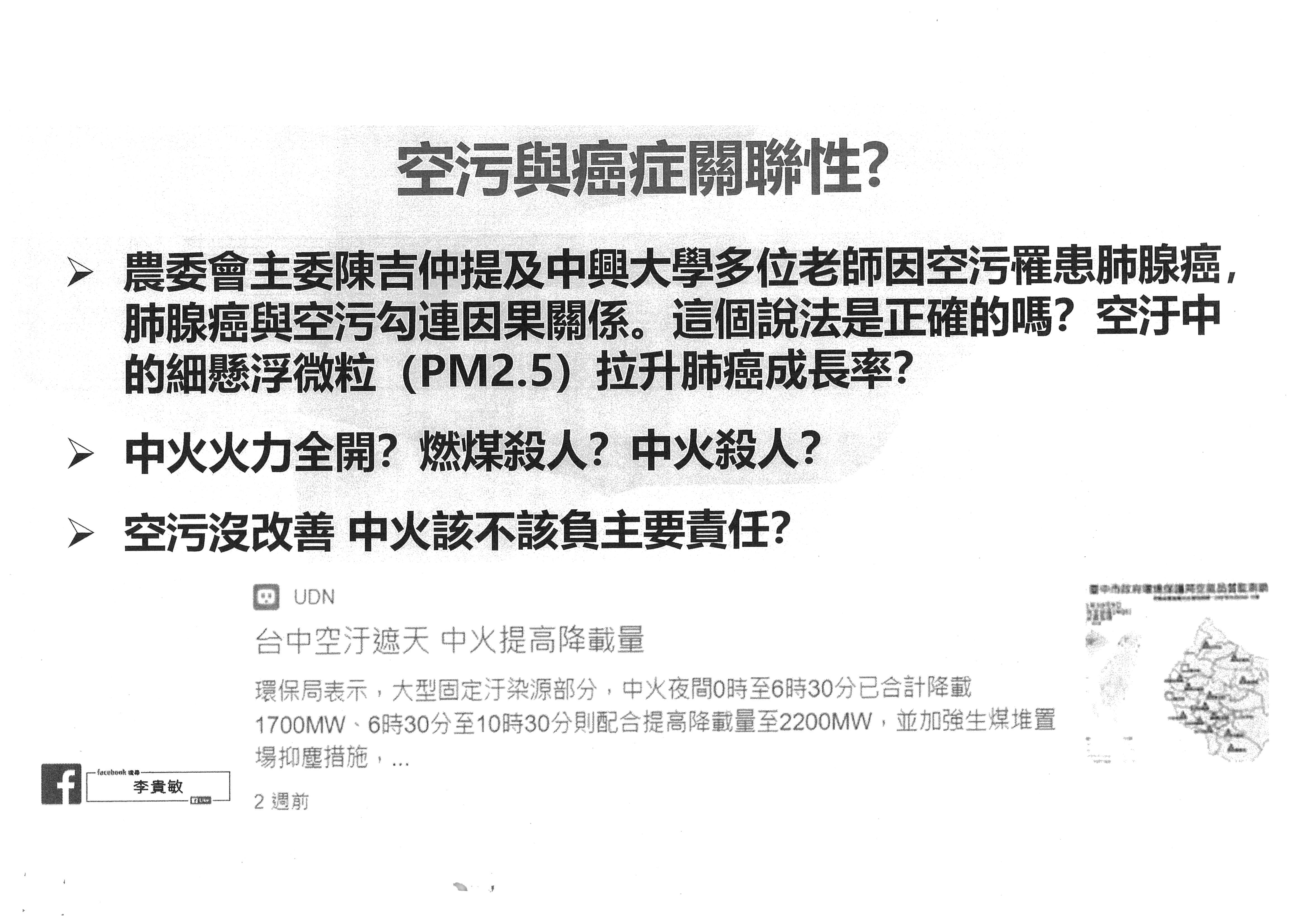 張委員其祿:另外,我們到預警的時候是沒有任何作為的,而且預警到比較嚴重的情況只有10%的差距,這部分也提供我們一個分析,因為你們總要講清楚這個理由,不然這樣降下來好像感覺……,因為它跟國際標準還是有差的。剛剛蔡委員也提到這些問題,我們現在是訂15微克/立方米作為標準,但是各地還是有差,我坦白說,像我們南部真的還蠻嚴重,所以未來各區的規範是不是也能夠講一下,因為南部還是很憂心,北部不錯啦!但是南部更差,這有沒有分區的可能?