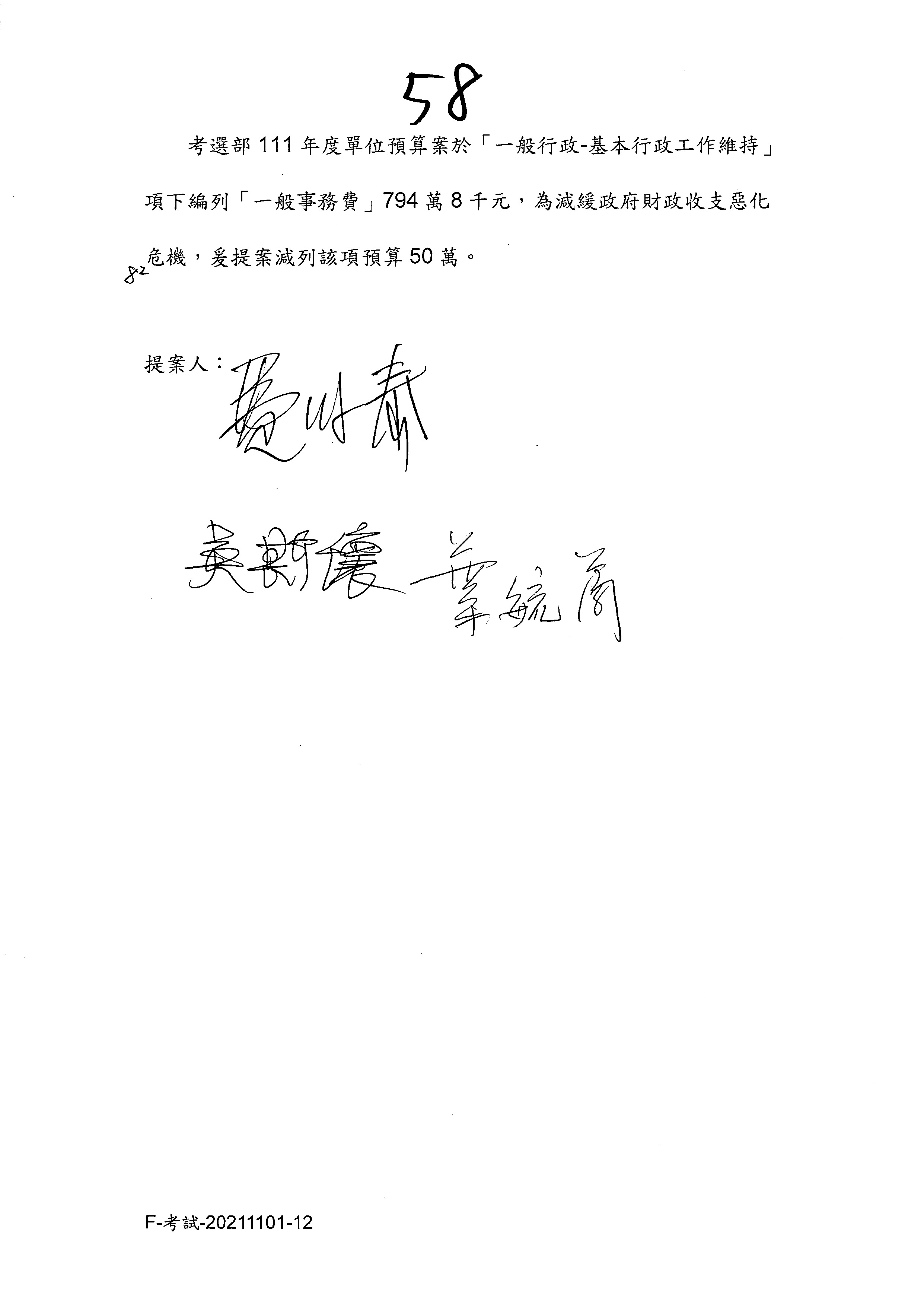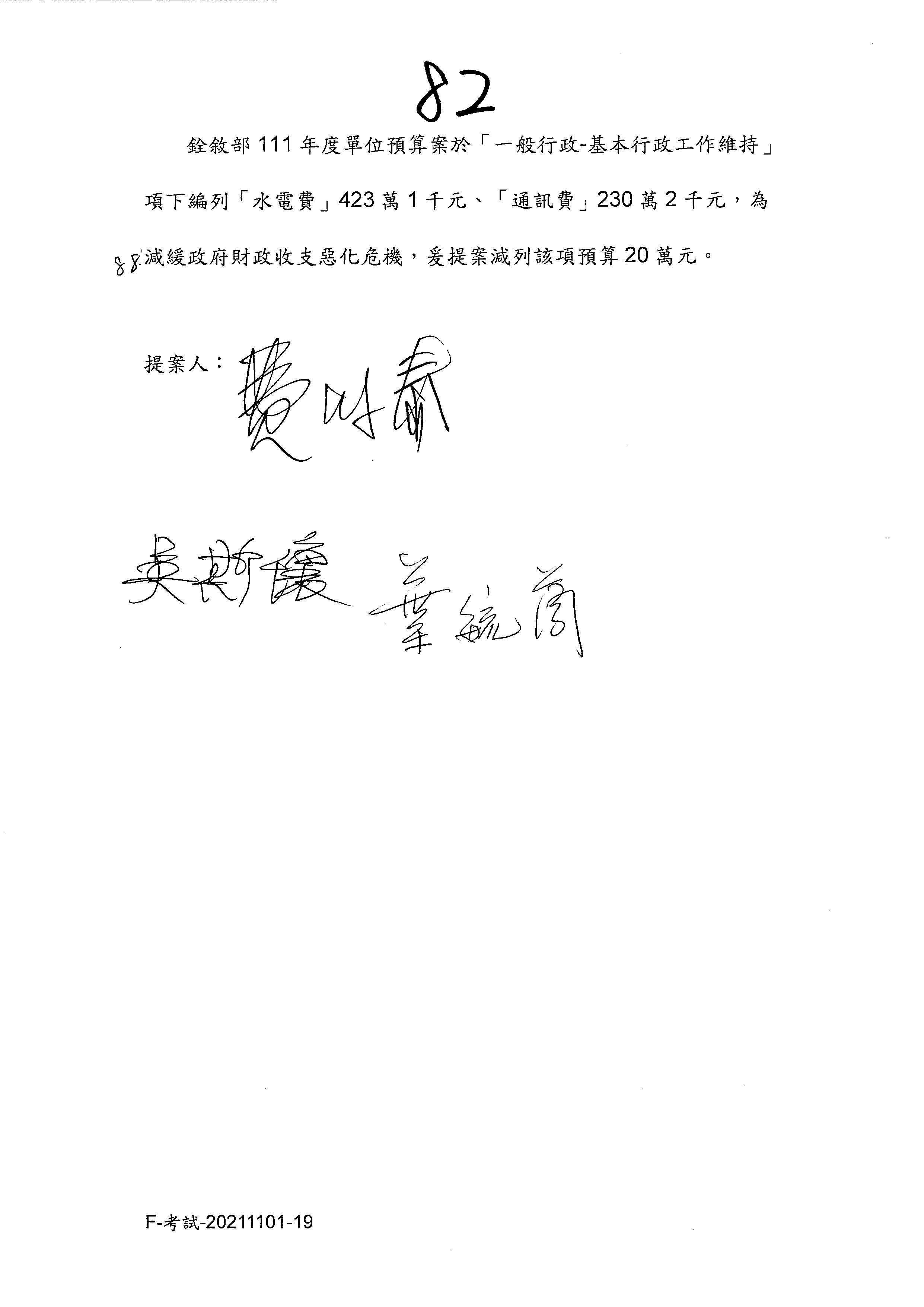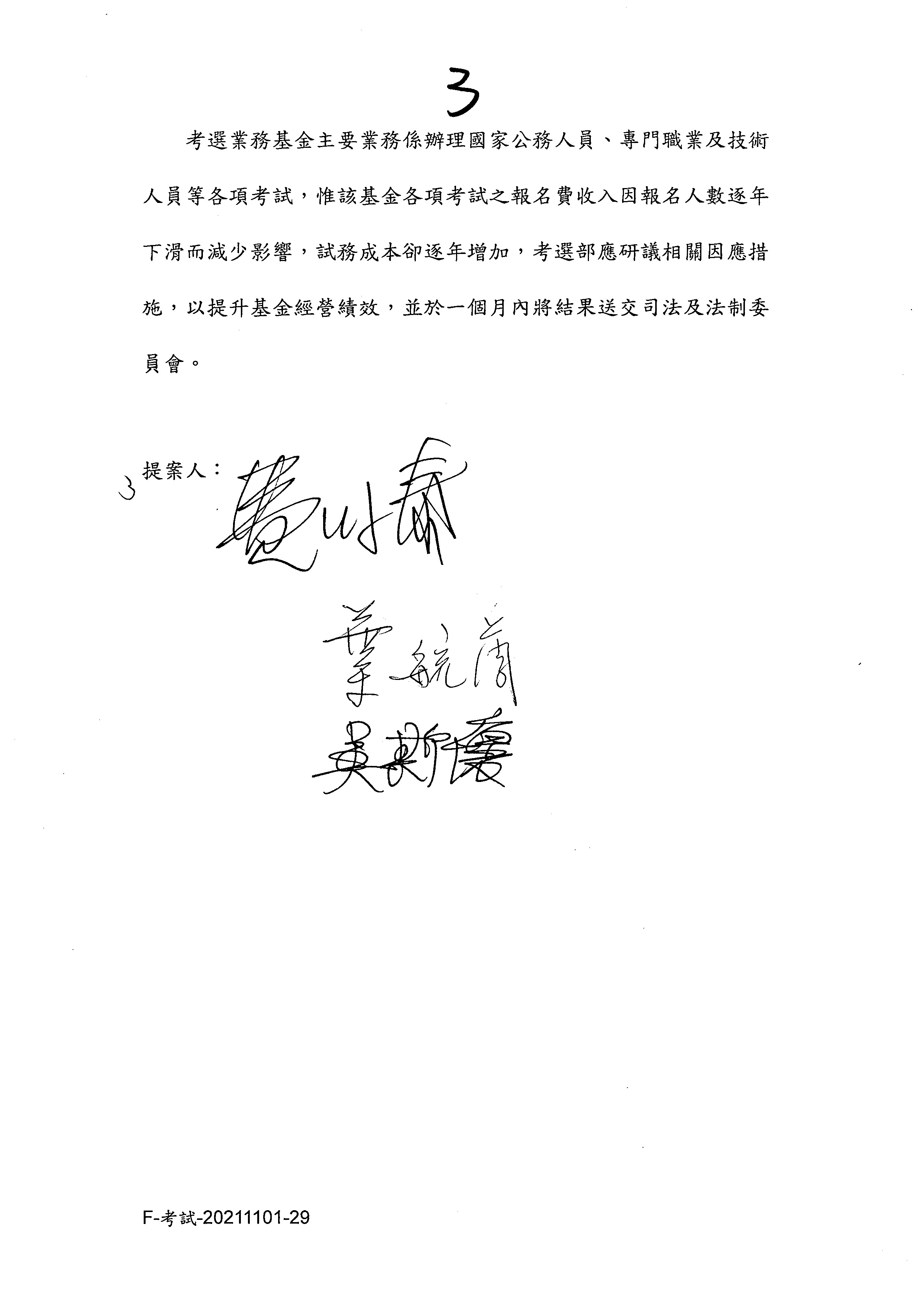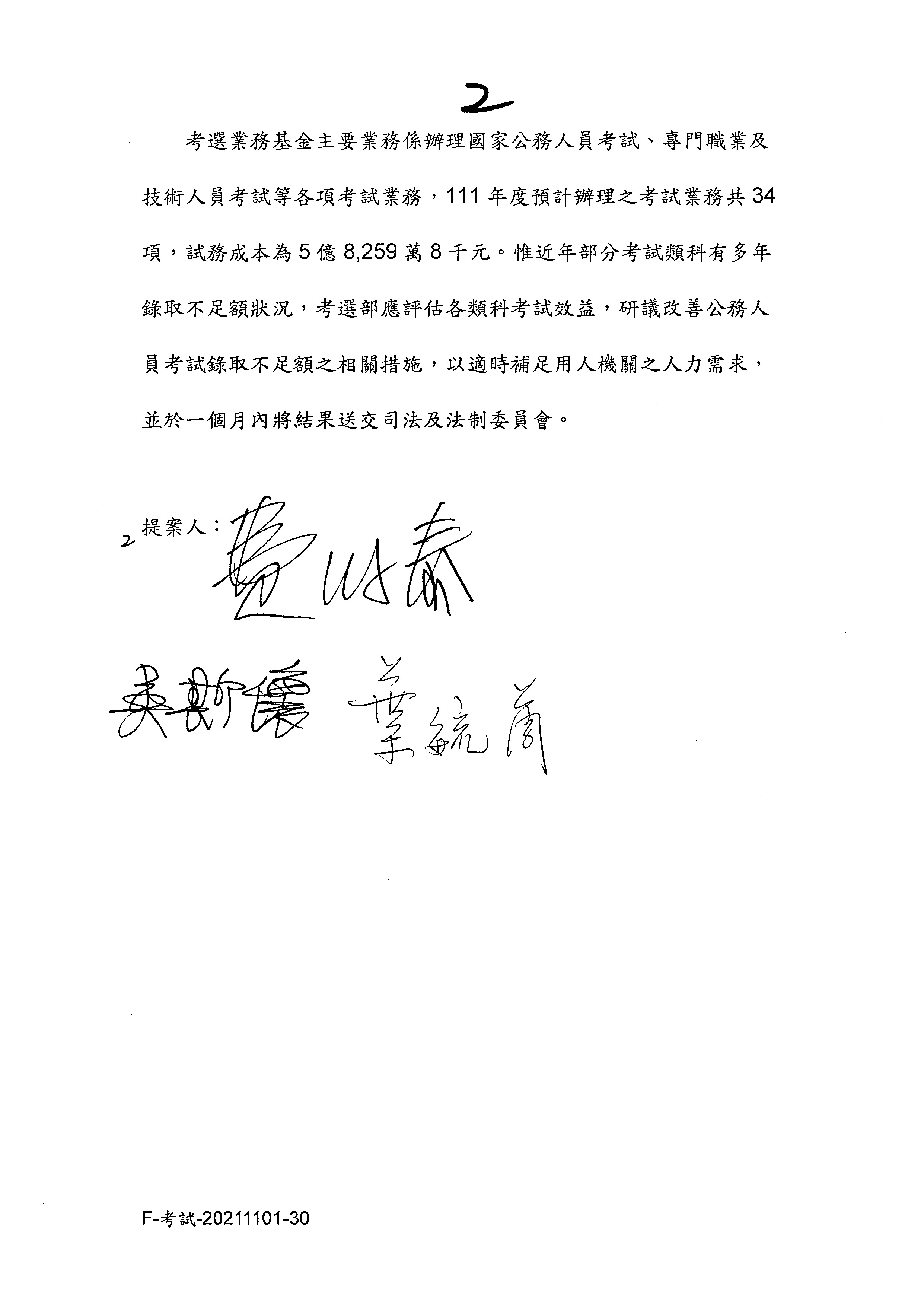 二、審查111年度中央政府總預算案附屬單位預算非營業部分關於考試院考選部主管「考選業務基金」收支部分。