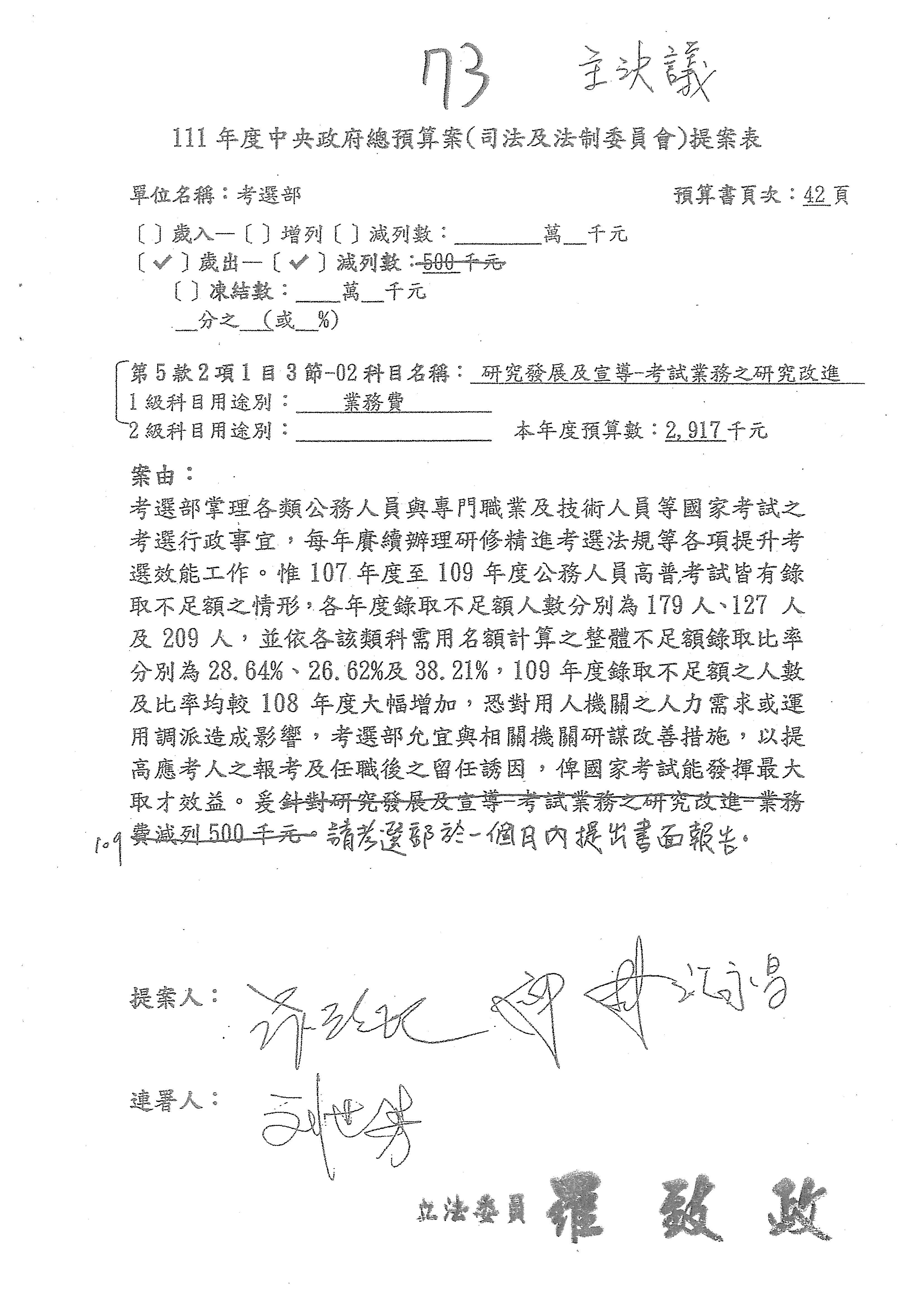 郝主任委員培芝:羅委員的那個案子,他剛才在離席之前也特別跟我說尊重我們這邊的處理,減列多少就配合。