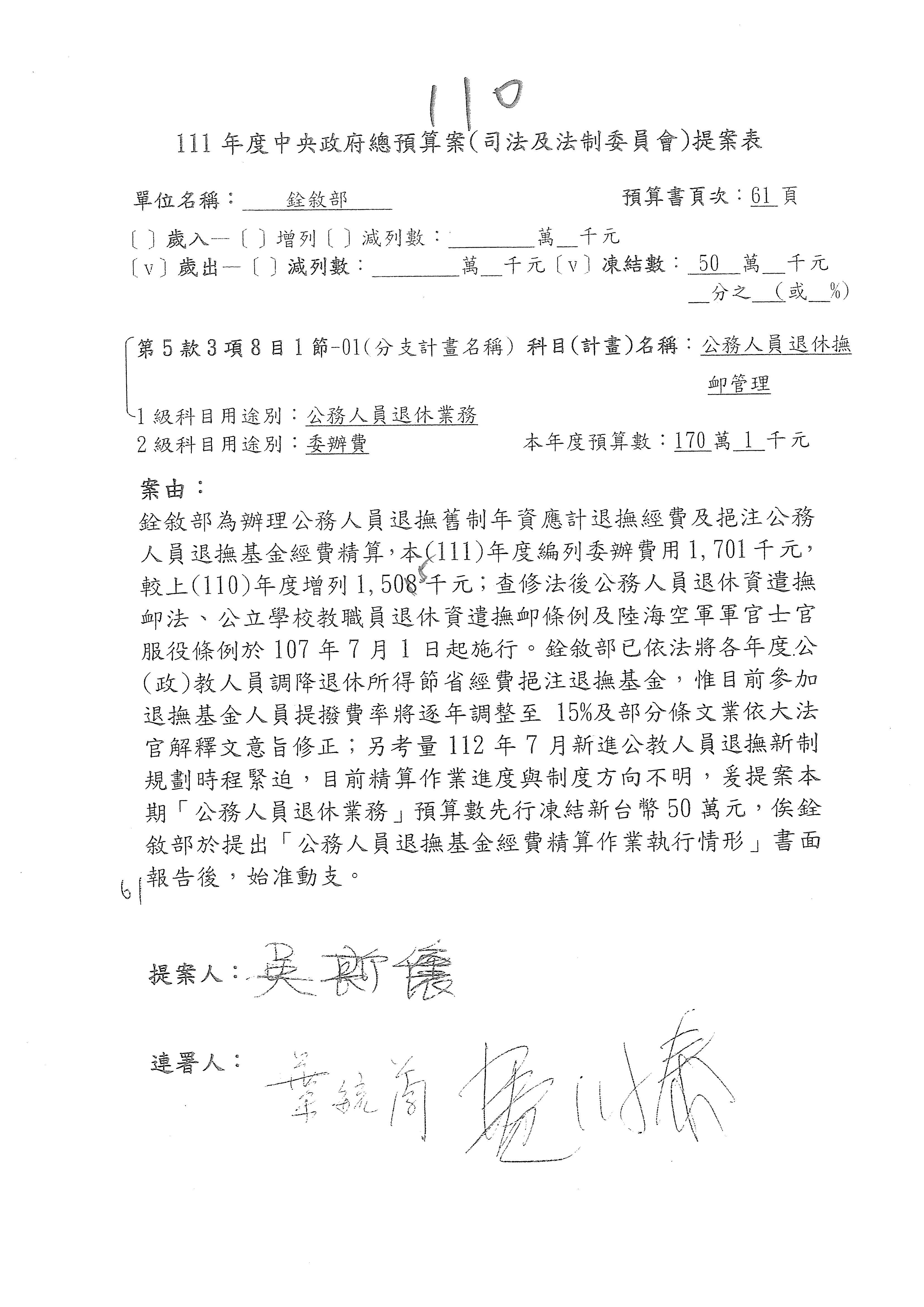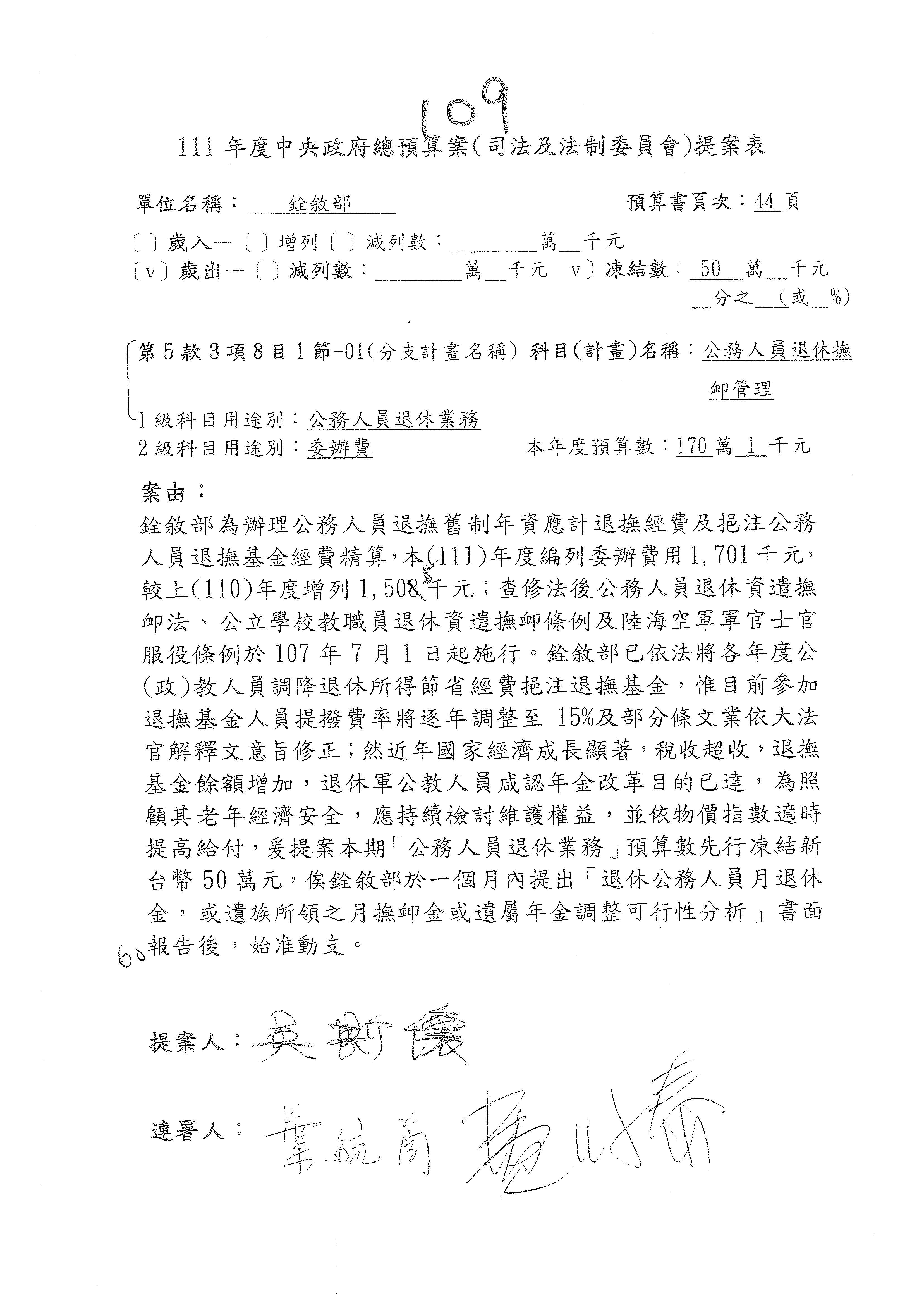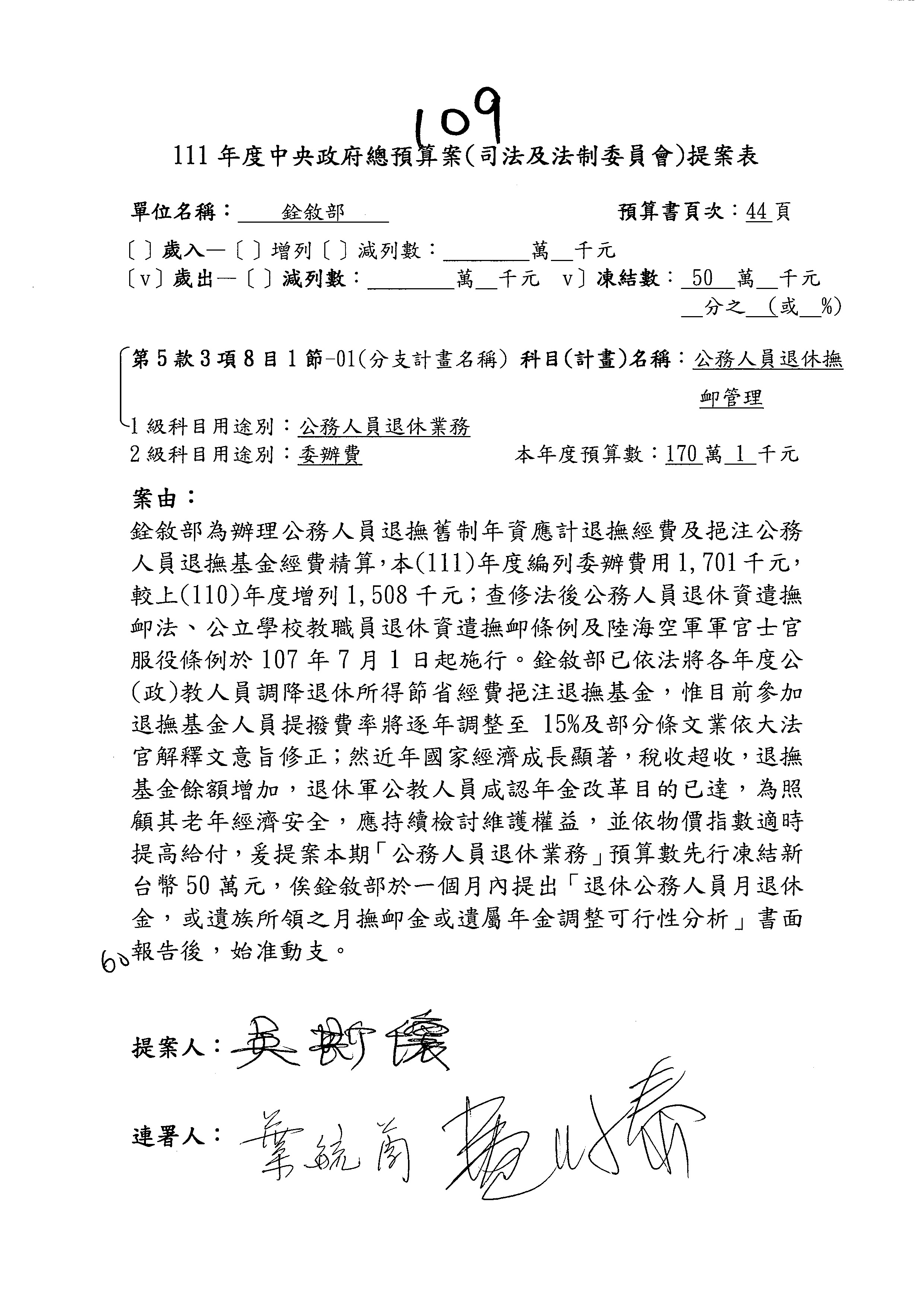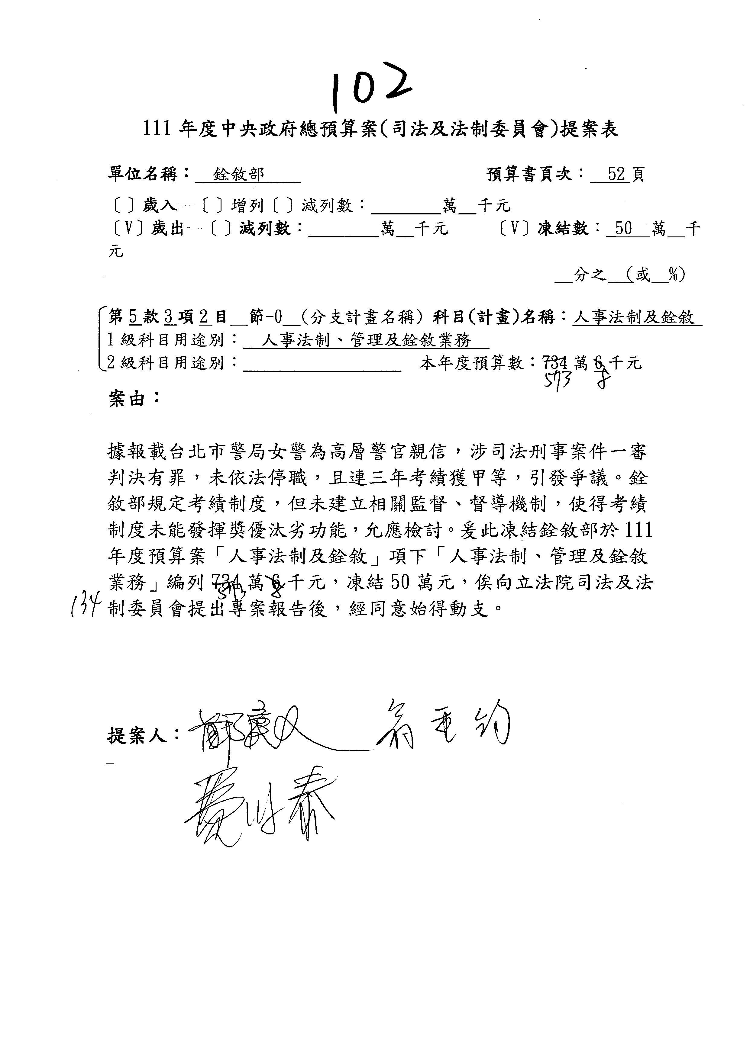 郝主任委員培芝:好,凍結50萬元,提書面報告。