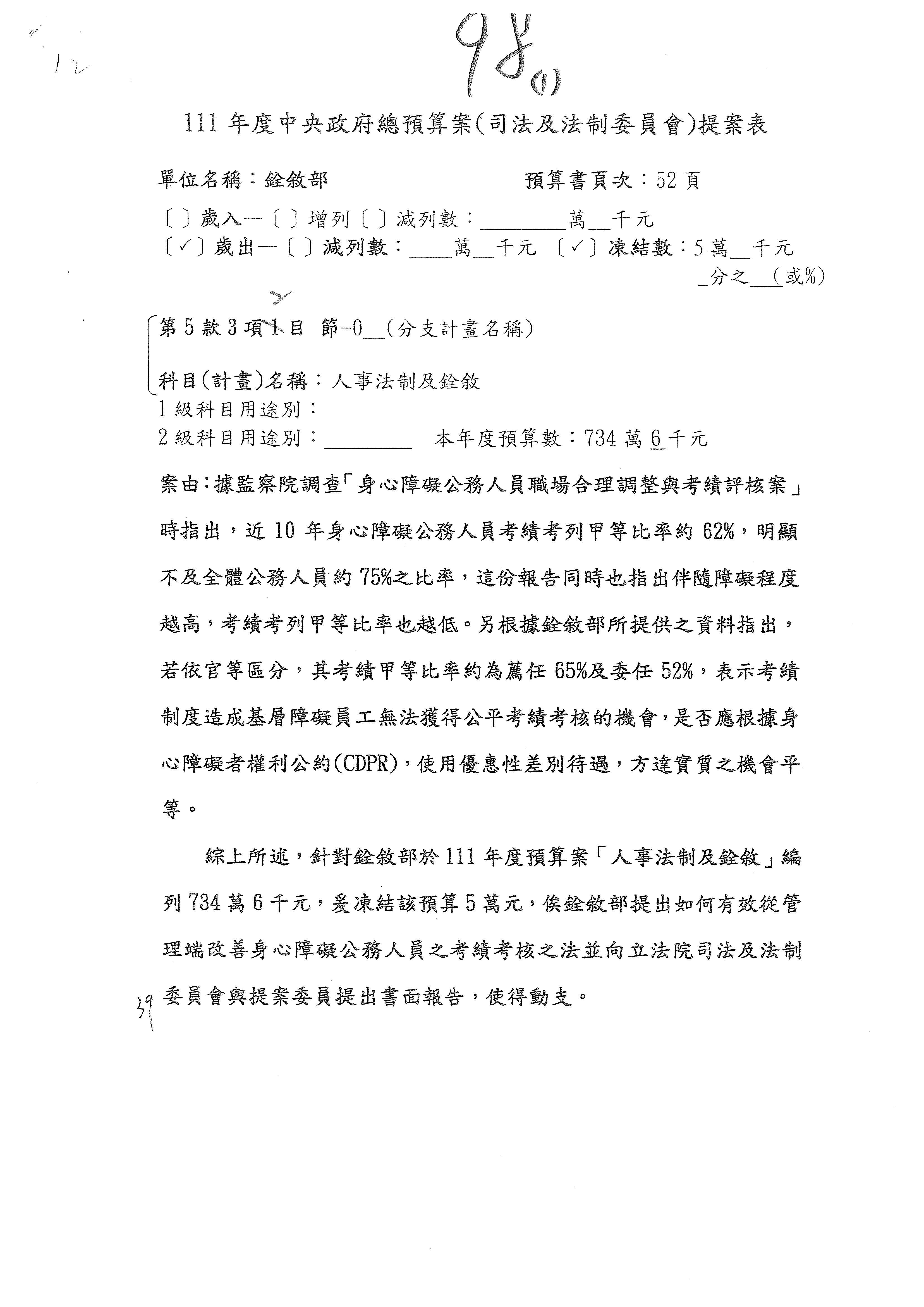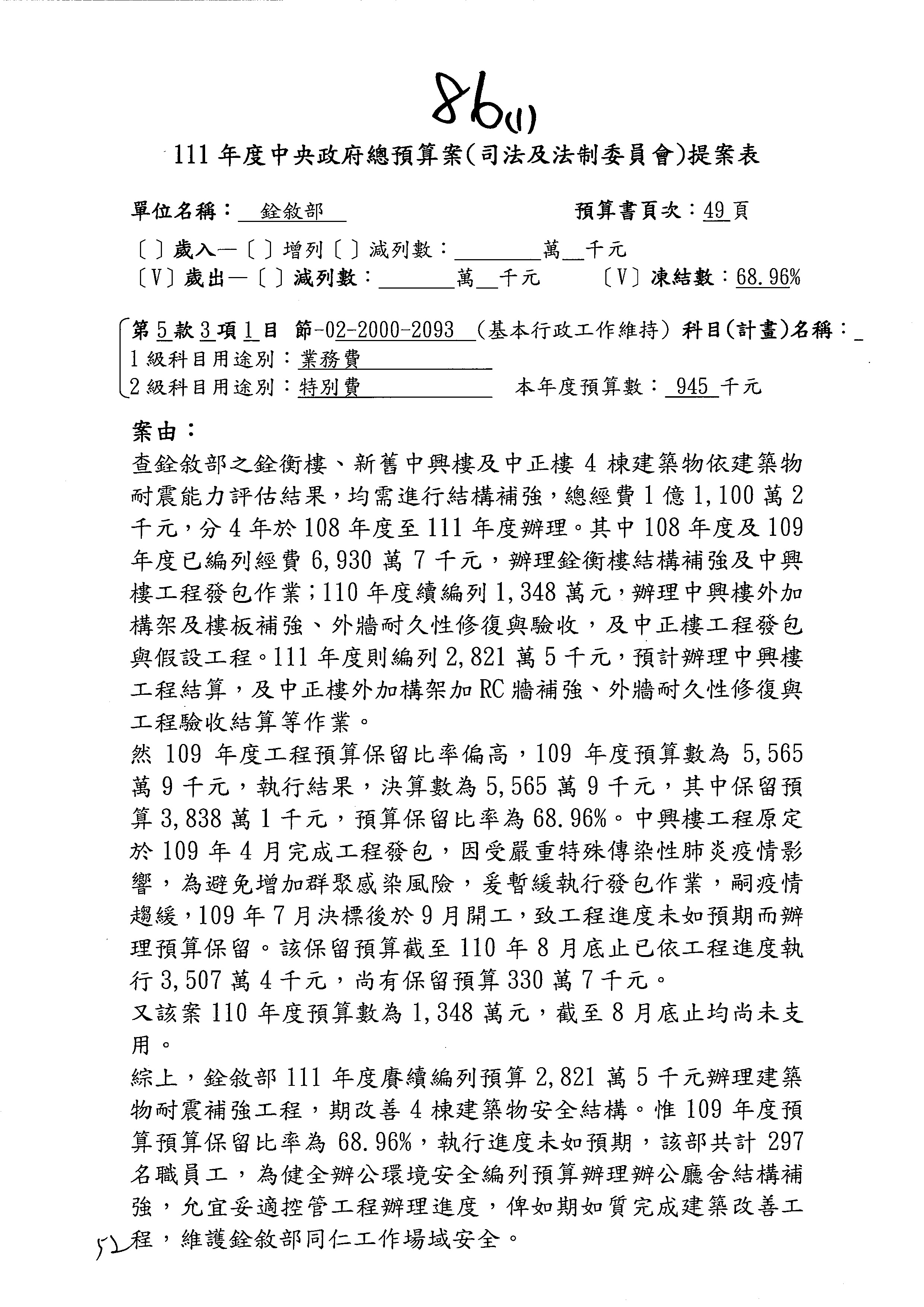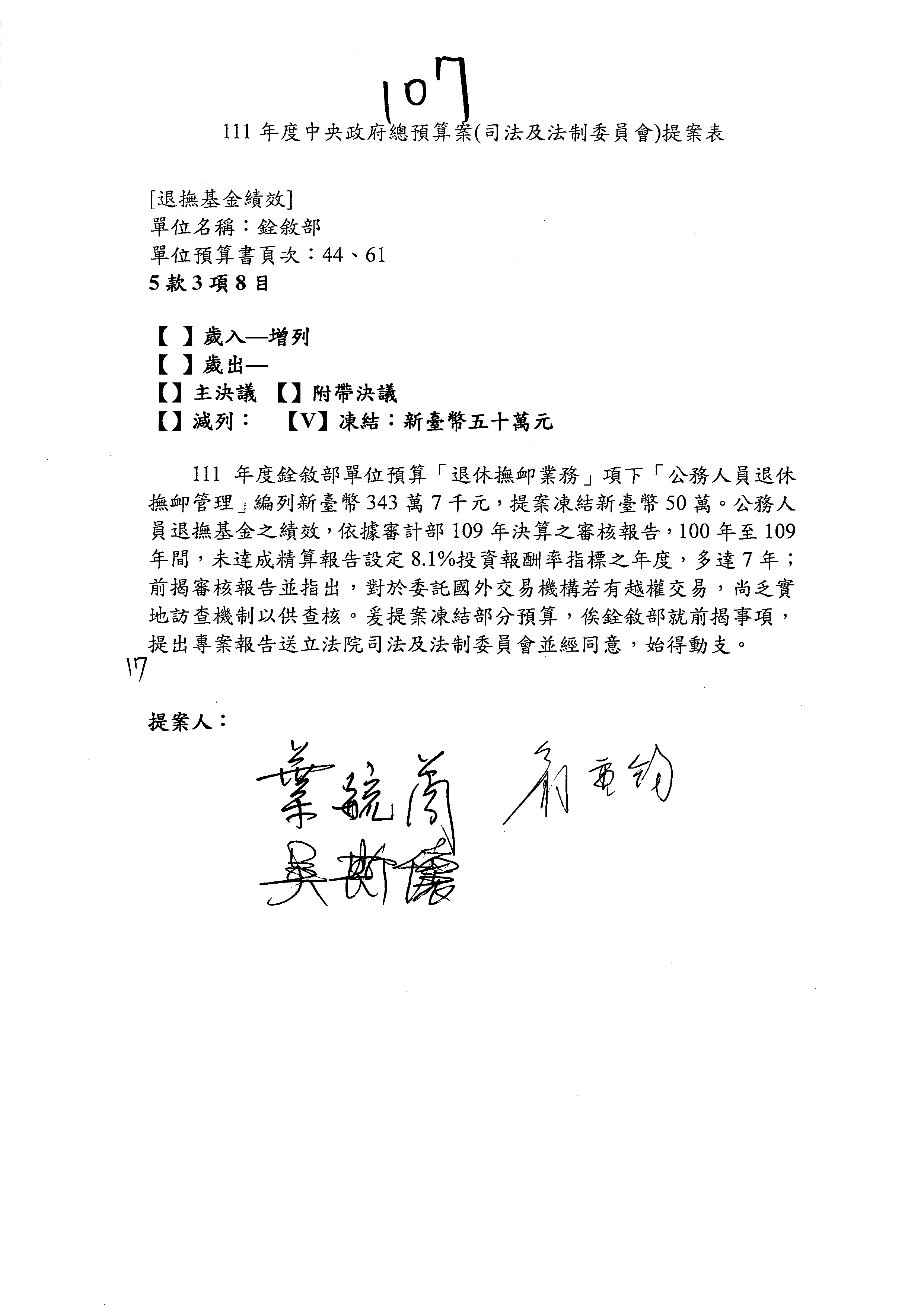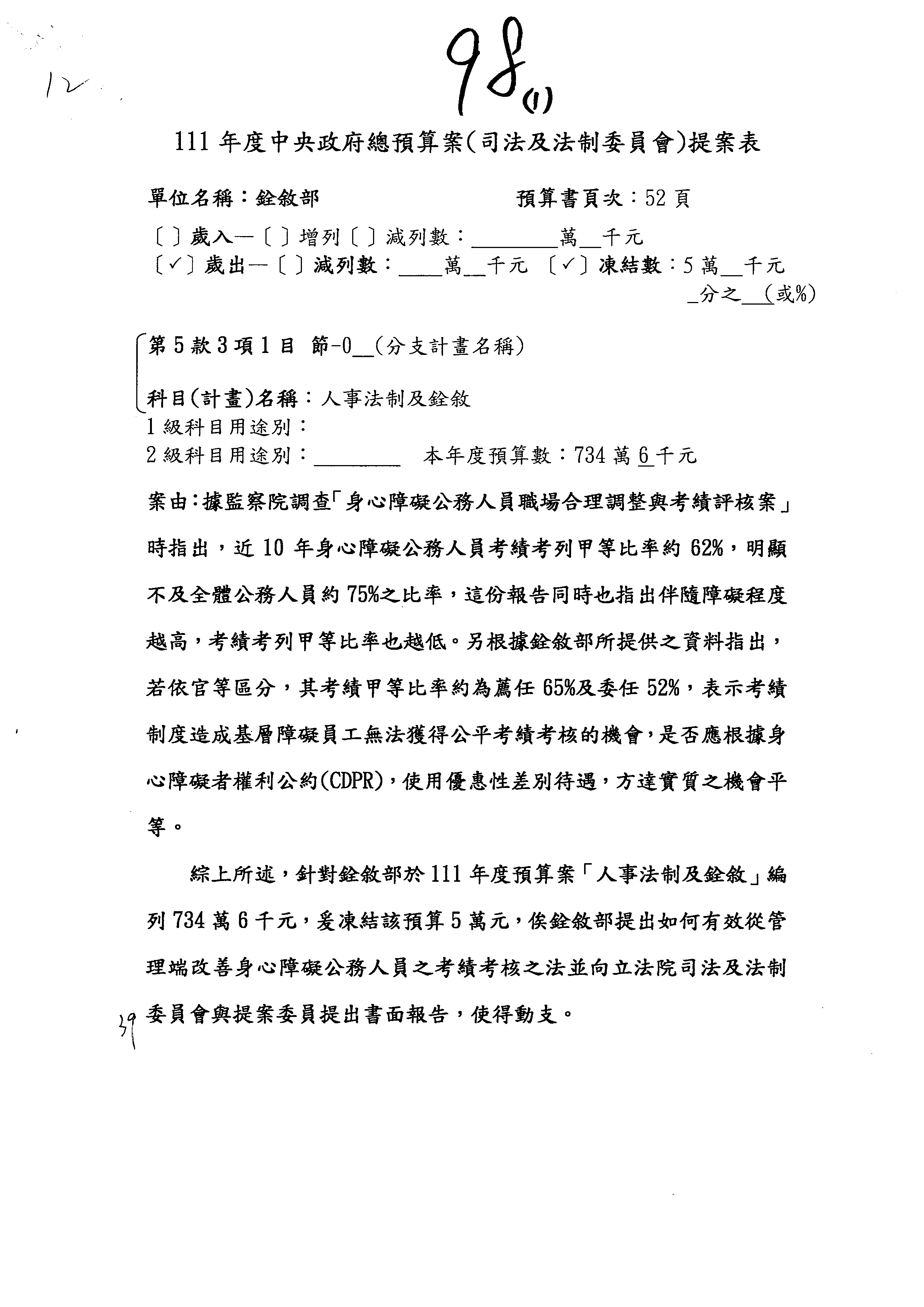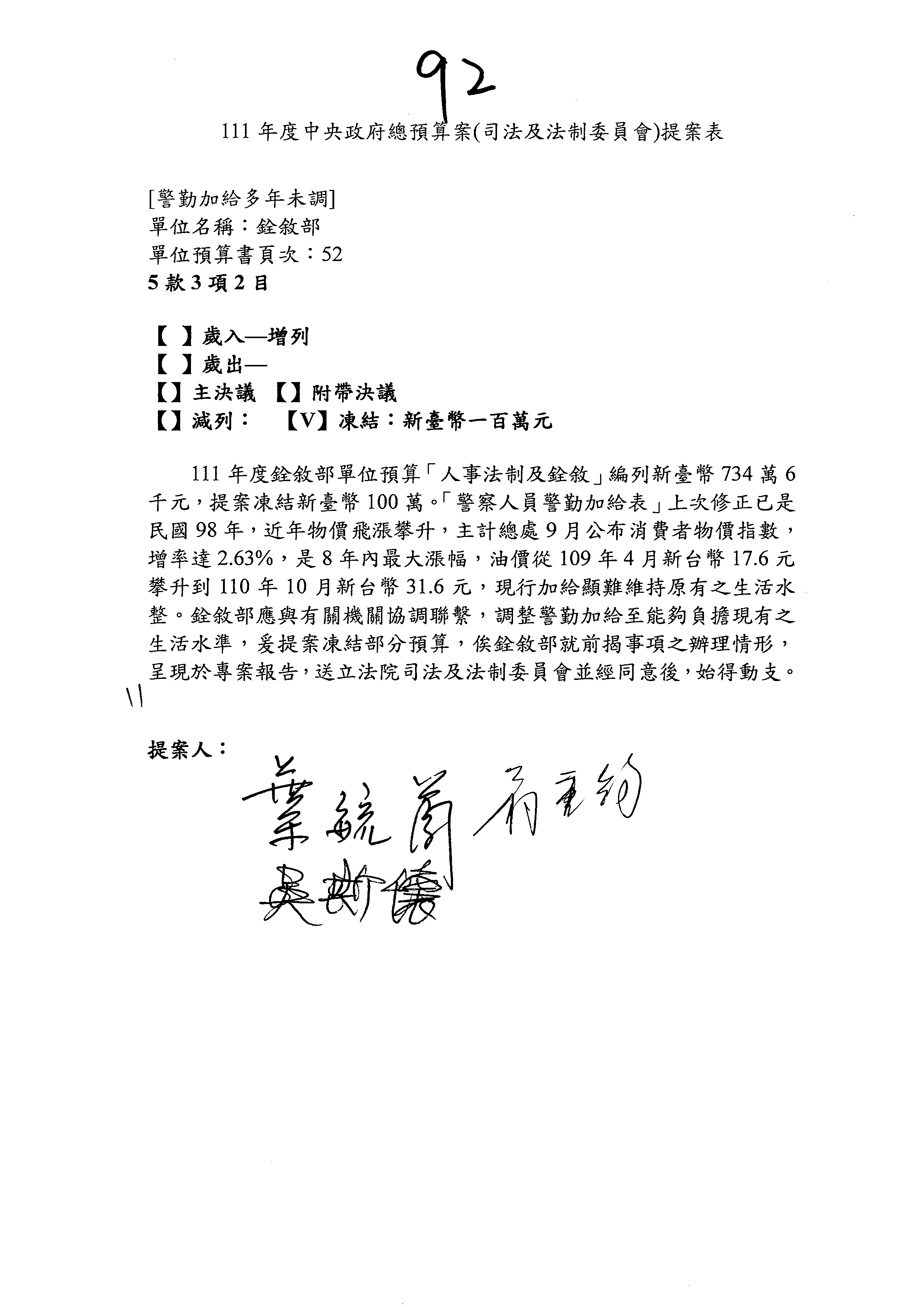 郝主任委員培芝:好,凍結50萬元,提書面報告。