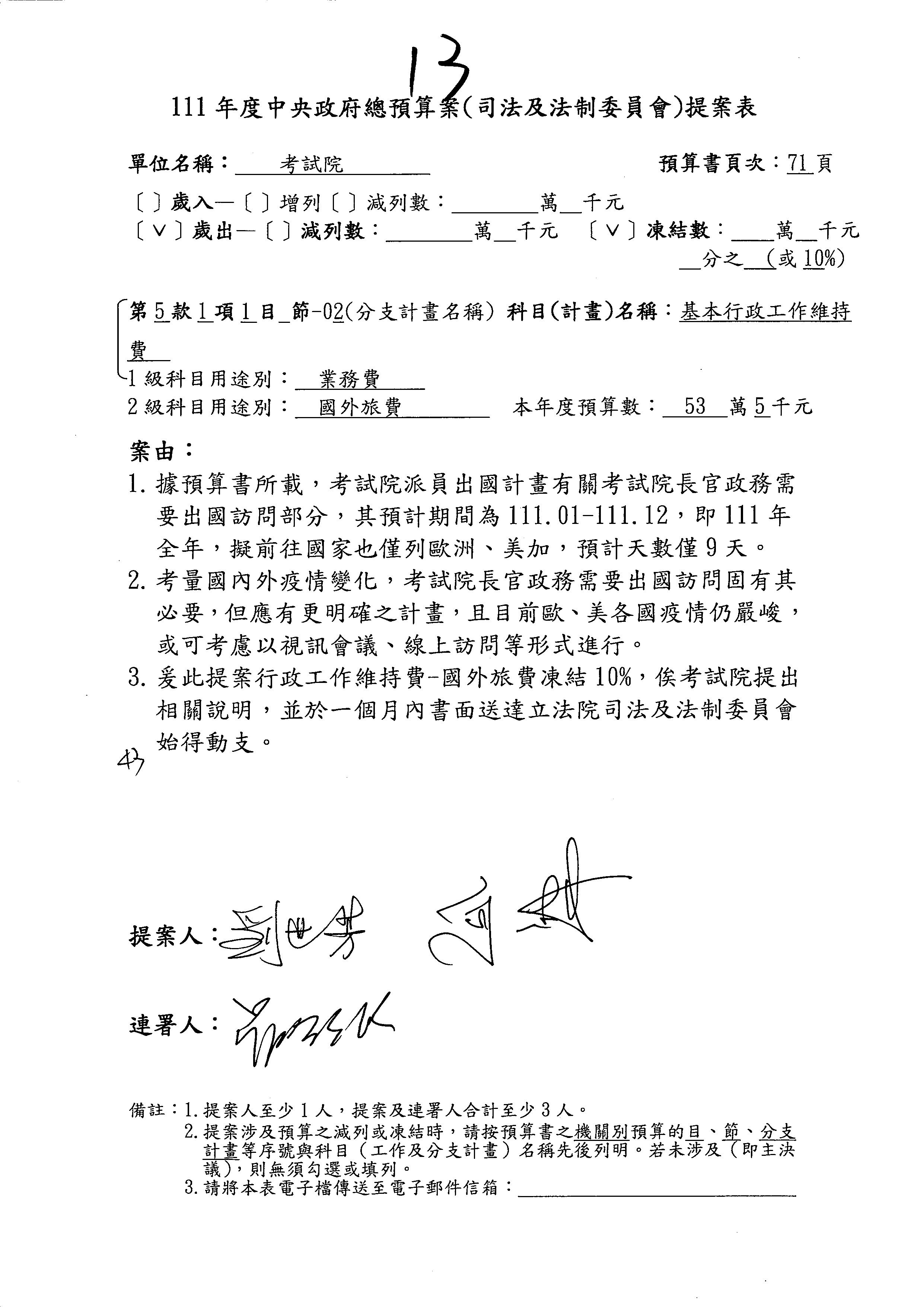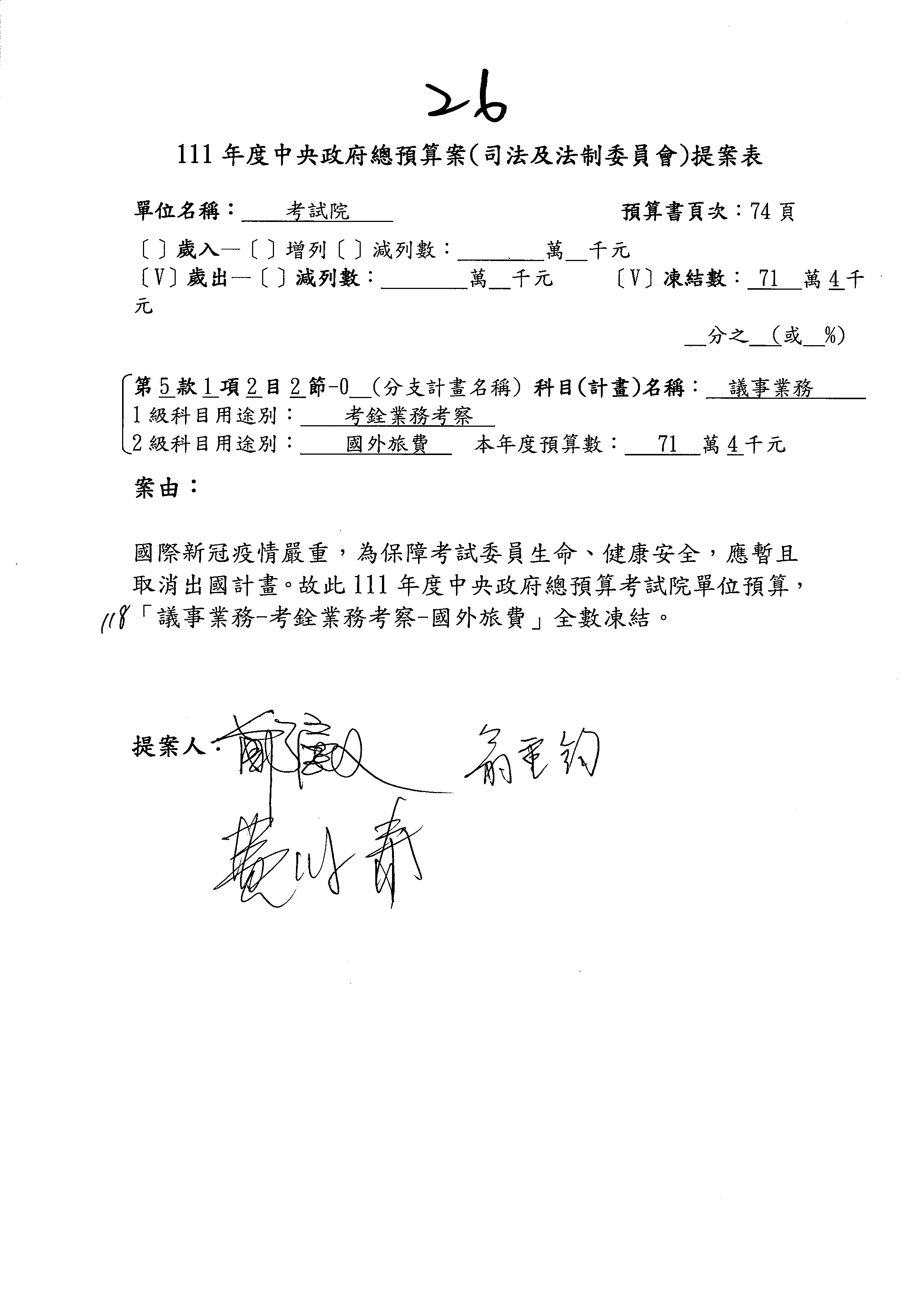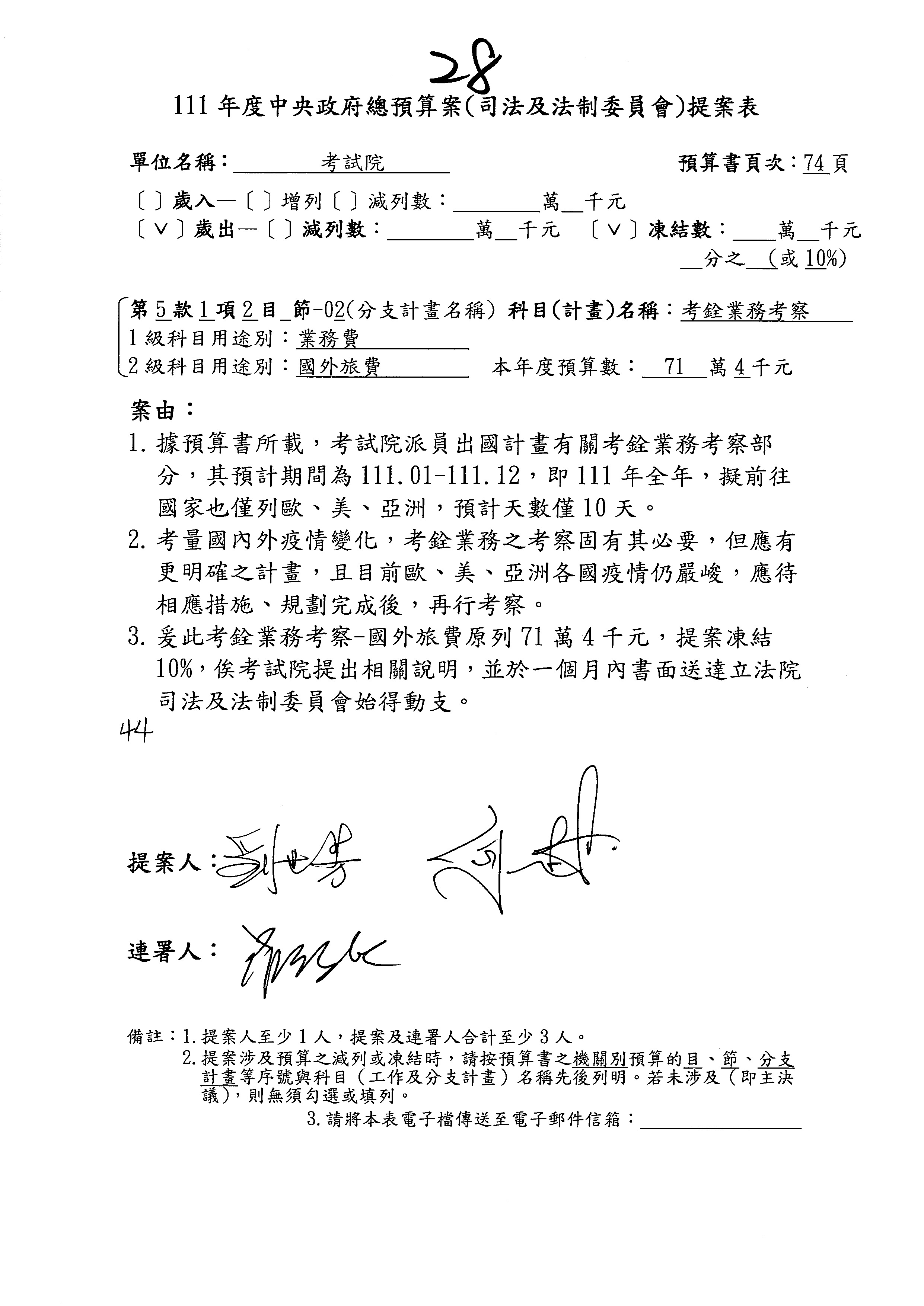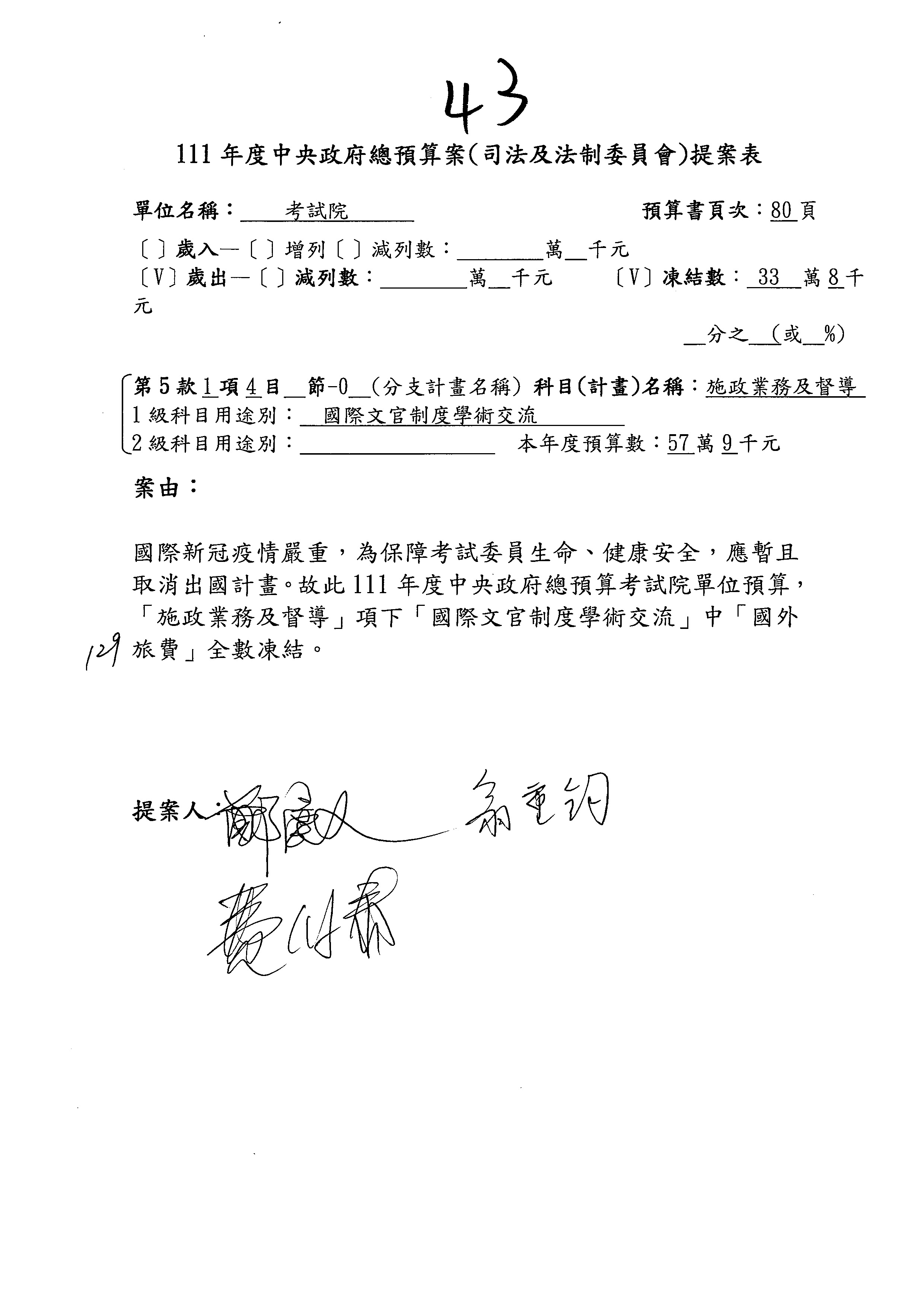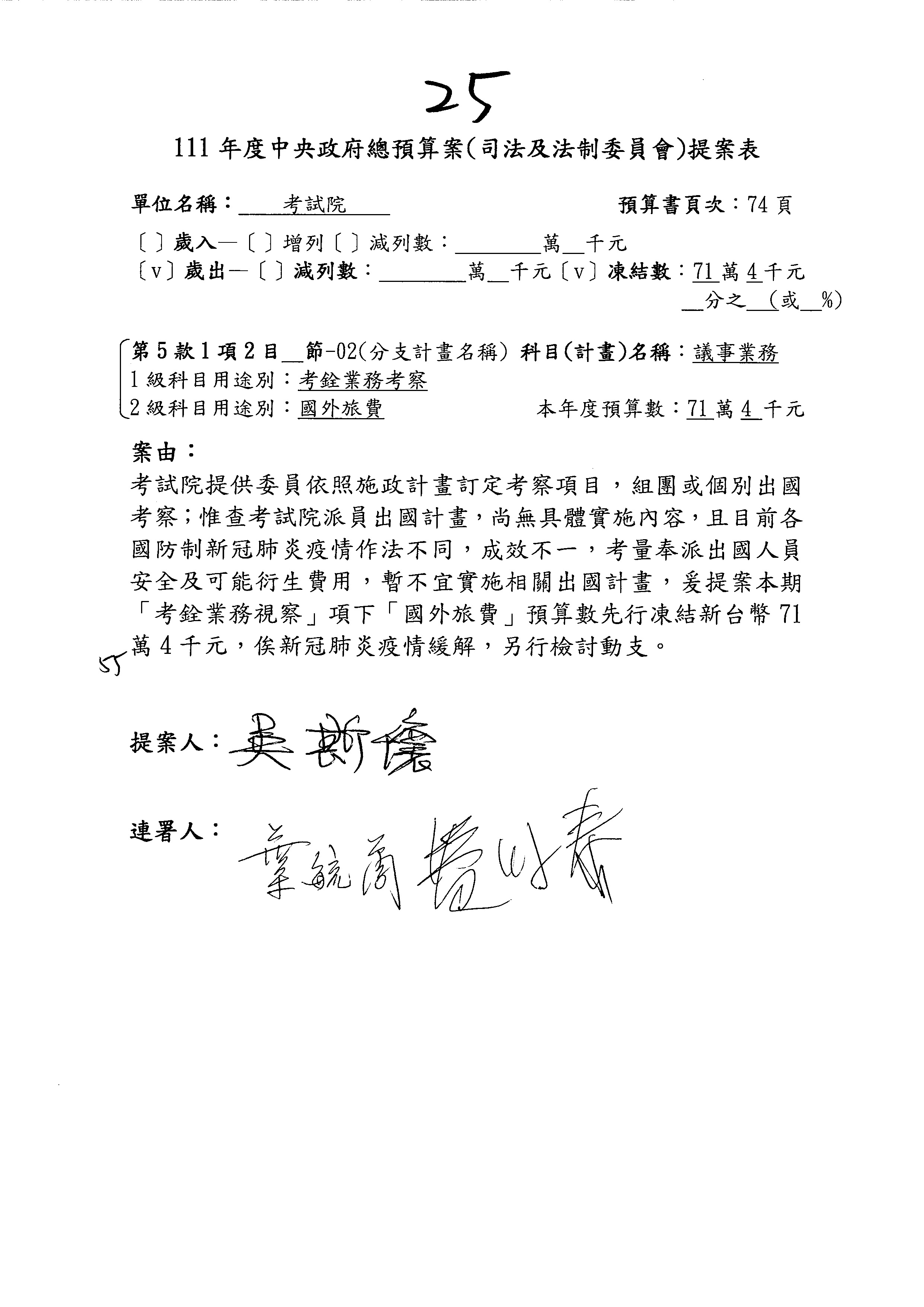 郝主任委員培芝:因為這個案子已經送到立法院審議,我們也非常期待委員在法案上給我們直接的指導,委員是不是能接受我們凍結20萬元、提書面報告?
