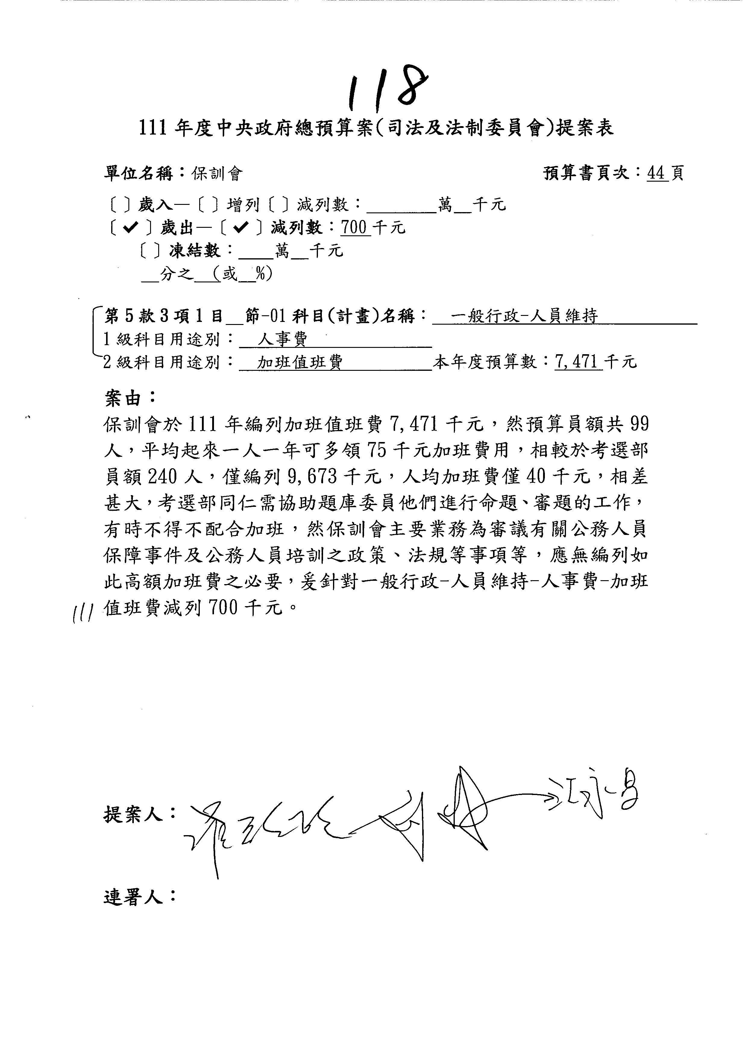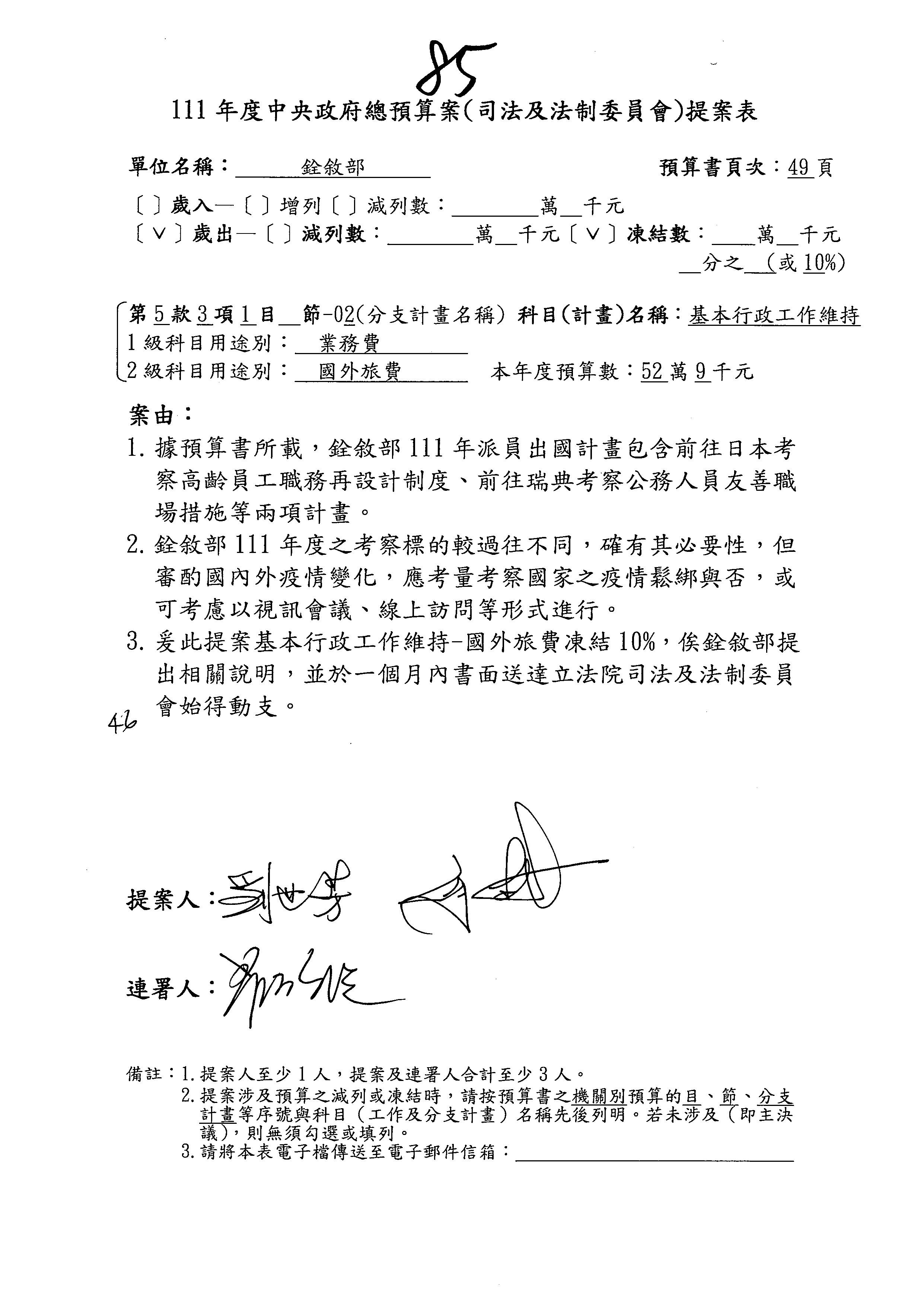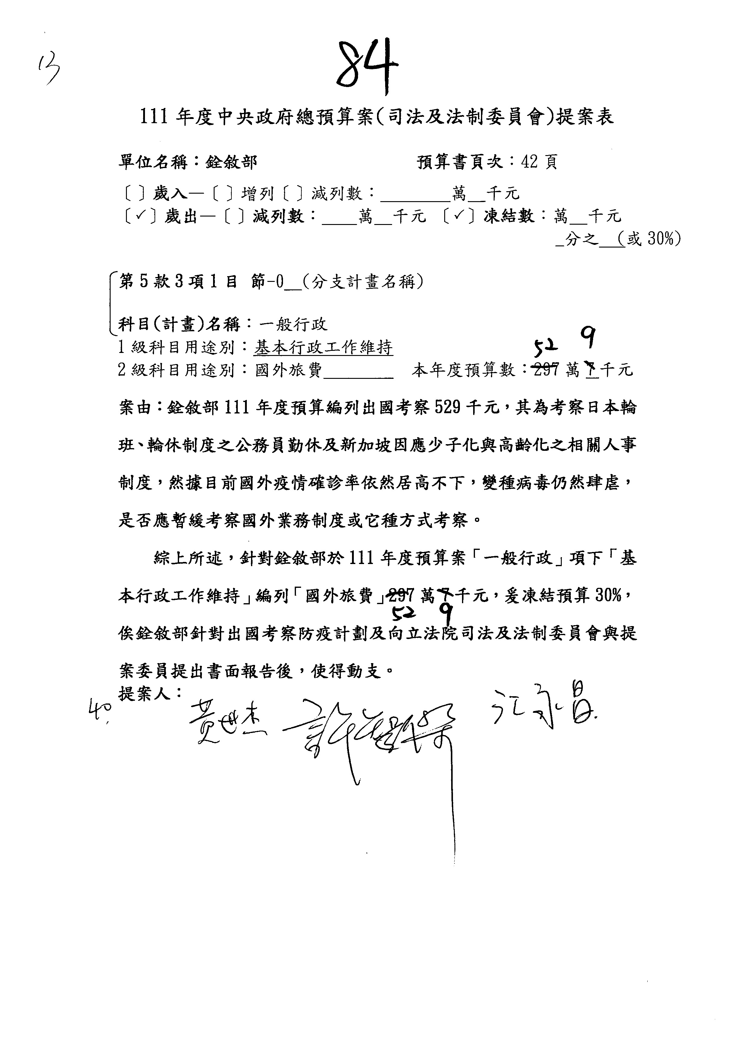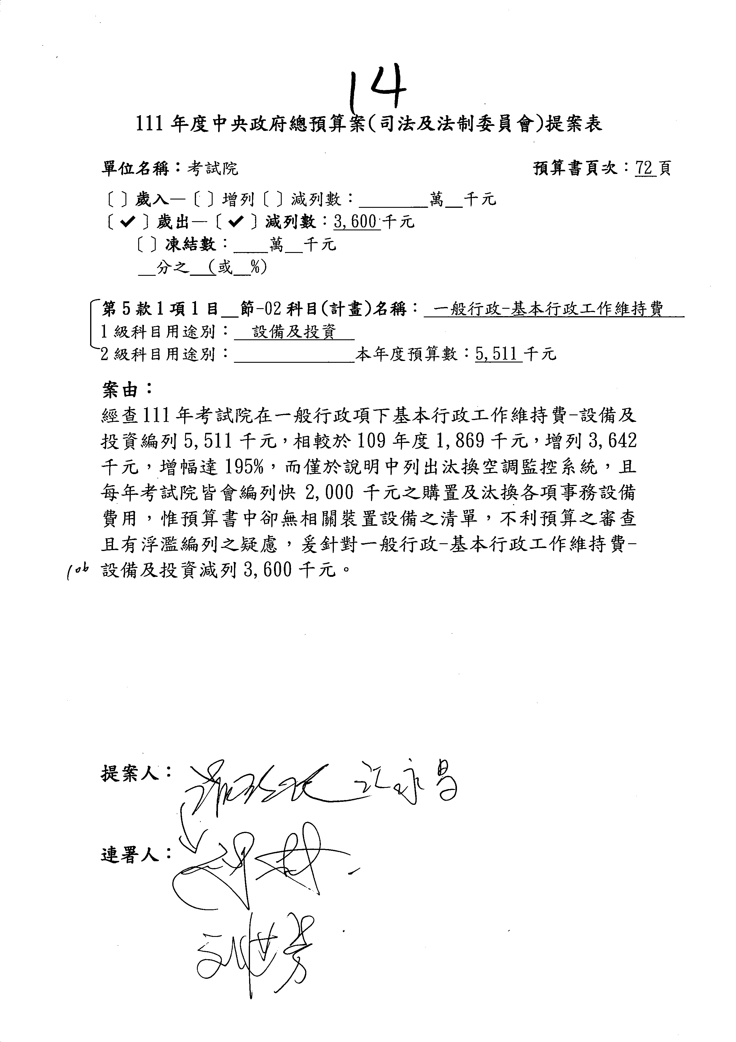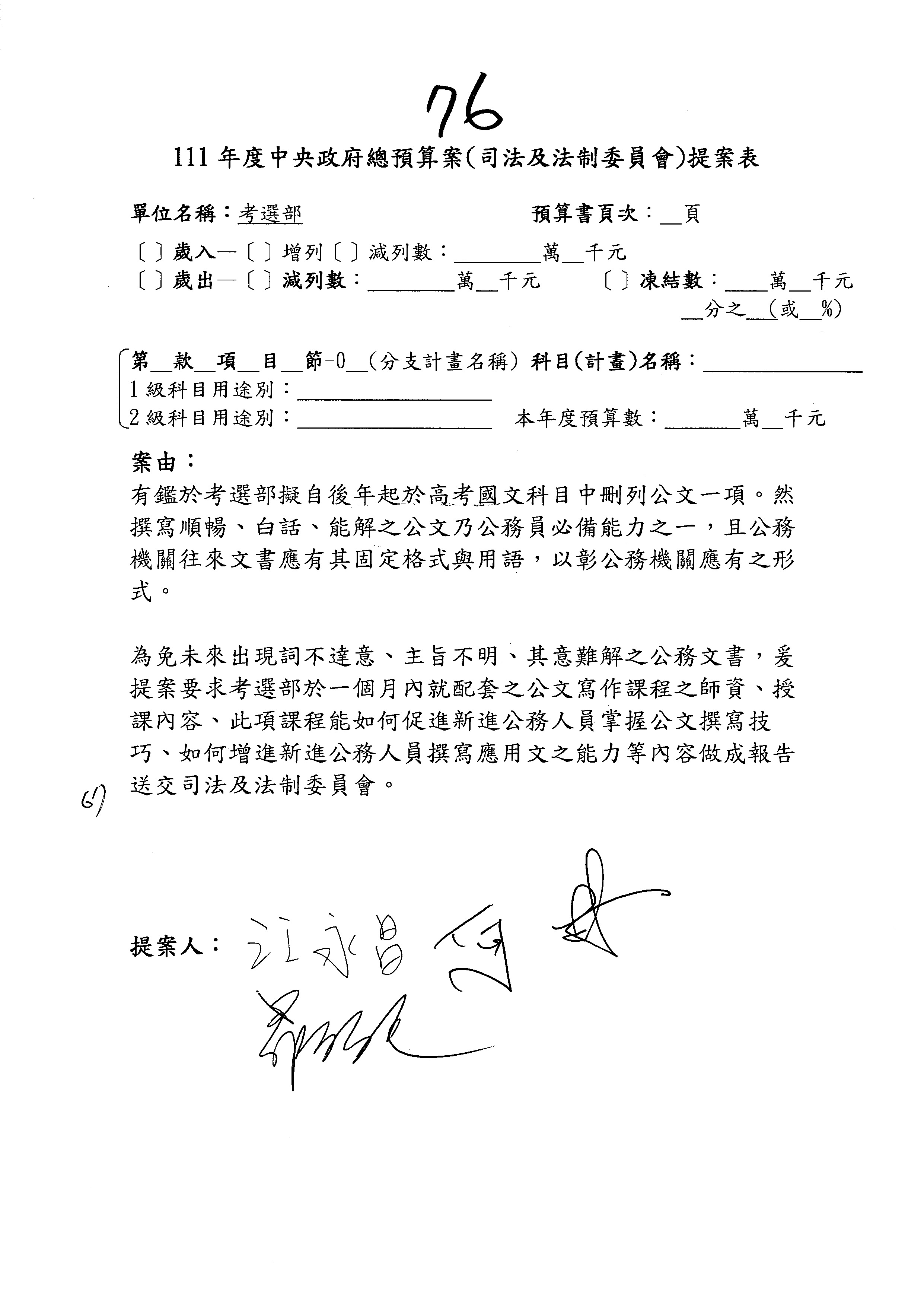 郝主任委員培芝:因為這個案子已經送到立法院審議,我們也非常期待委員在法案上給我們直接的指導,委員是不是能接受我們凍結20萬元、提書面報告?
