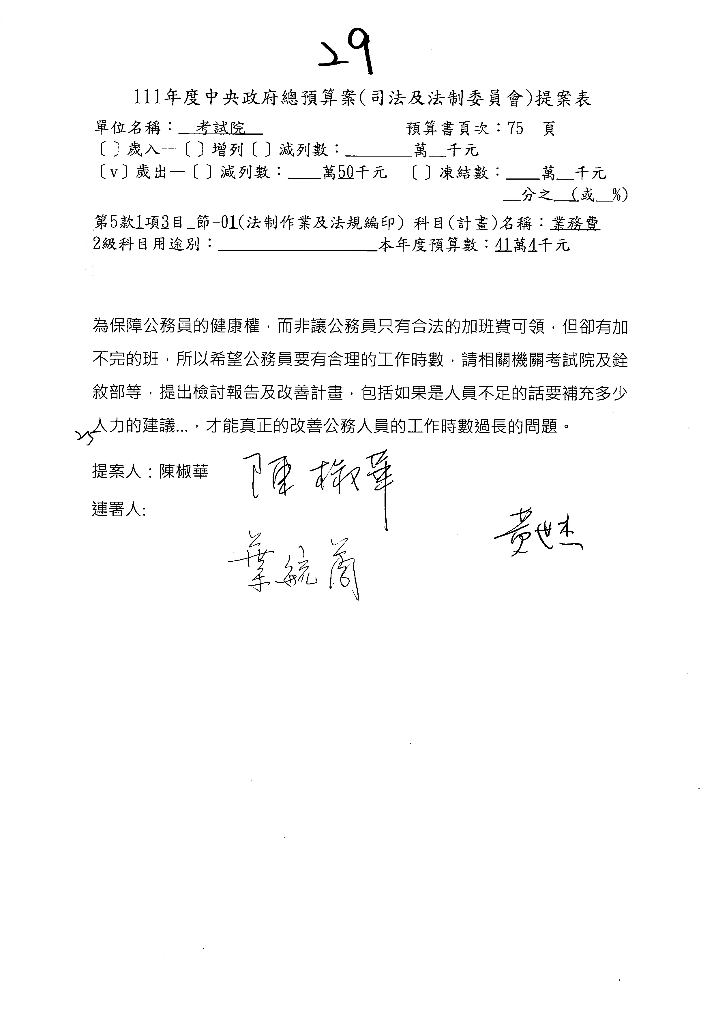提案人:陳椒華 葉毓蘭 吳斯懷 江永昌