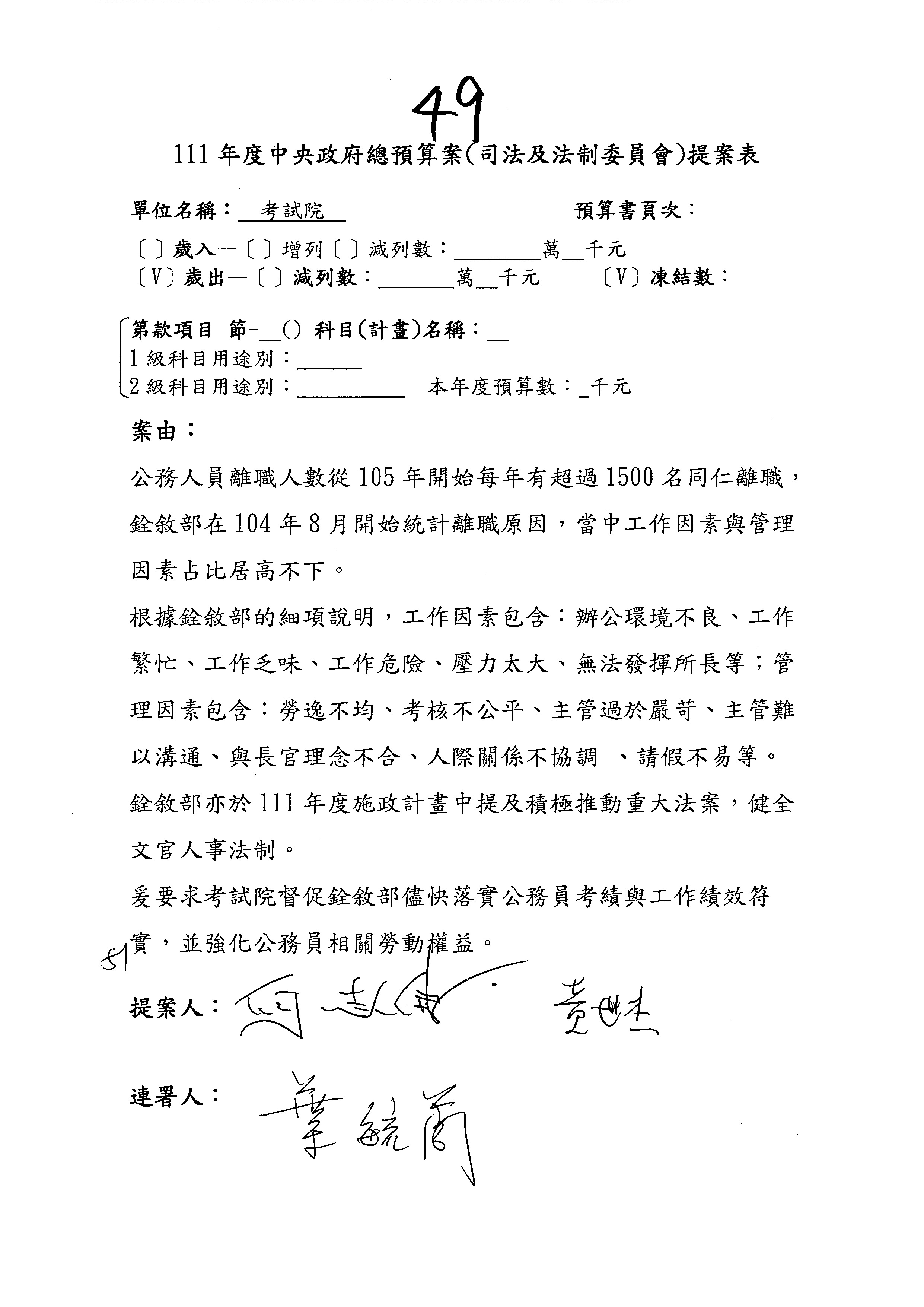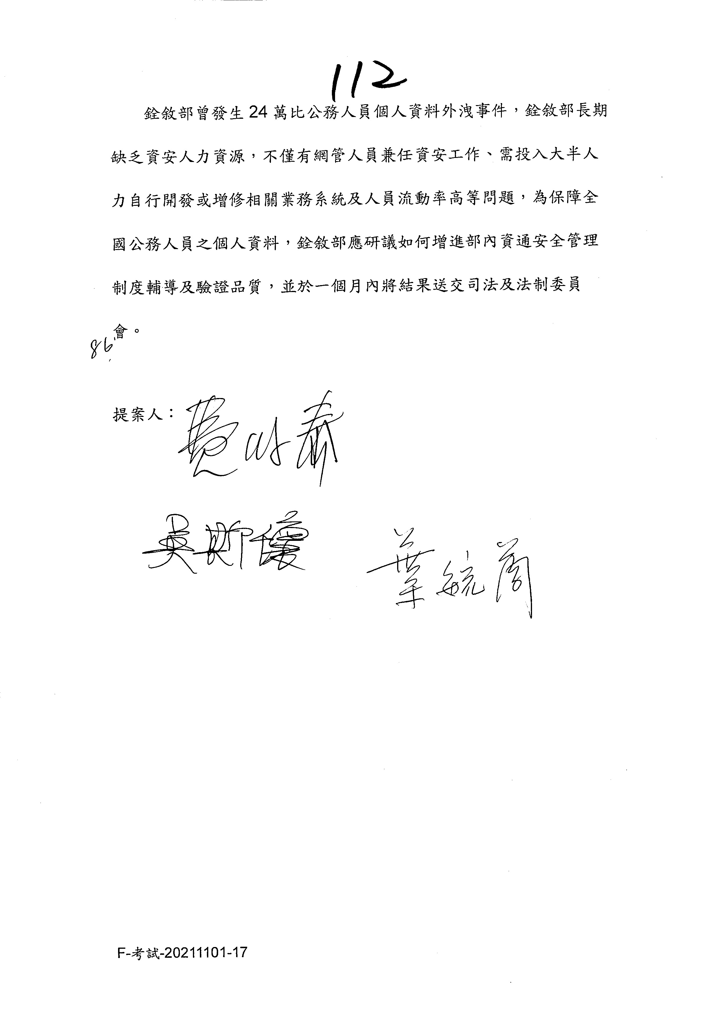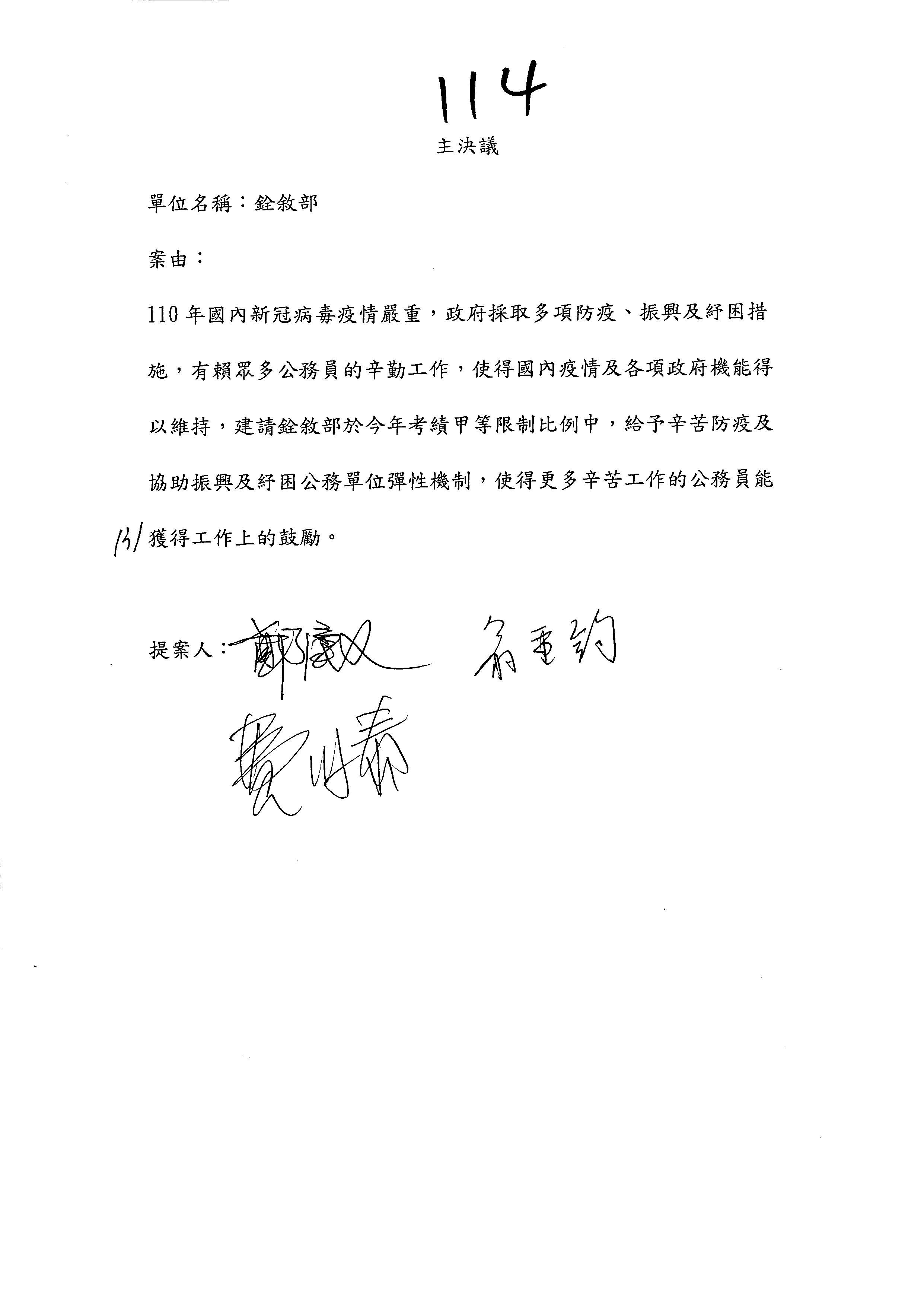 葉委員毓蘭:因為在銓敘部有另外一個案子,這邊就用主決議,希望能夠提升整個……