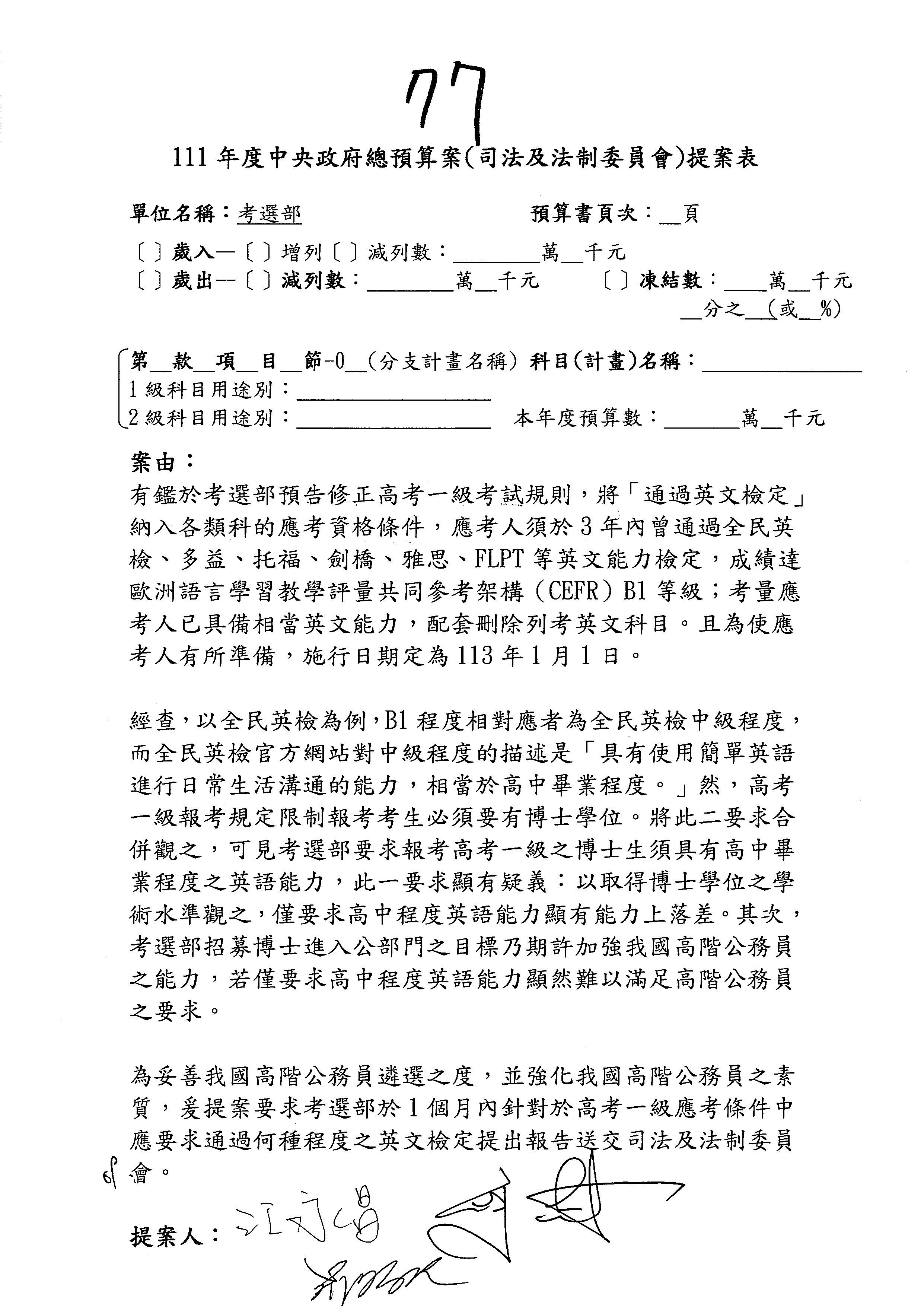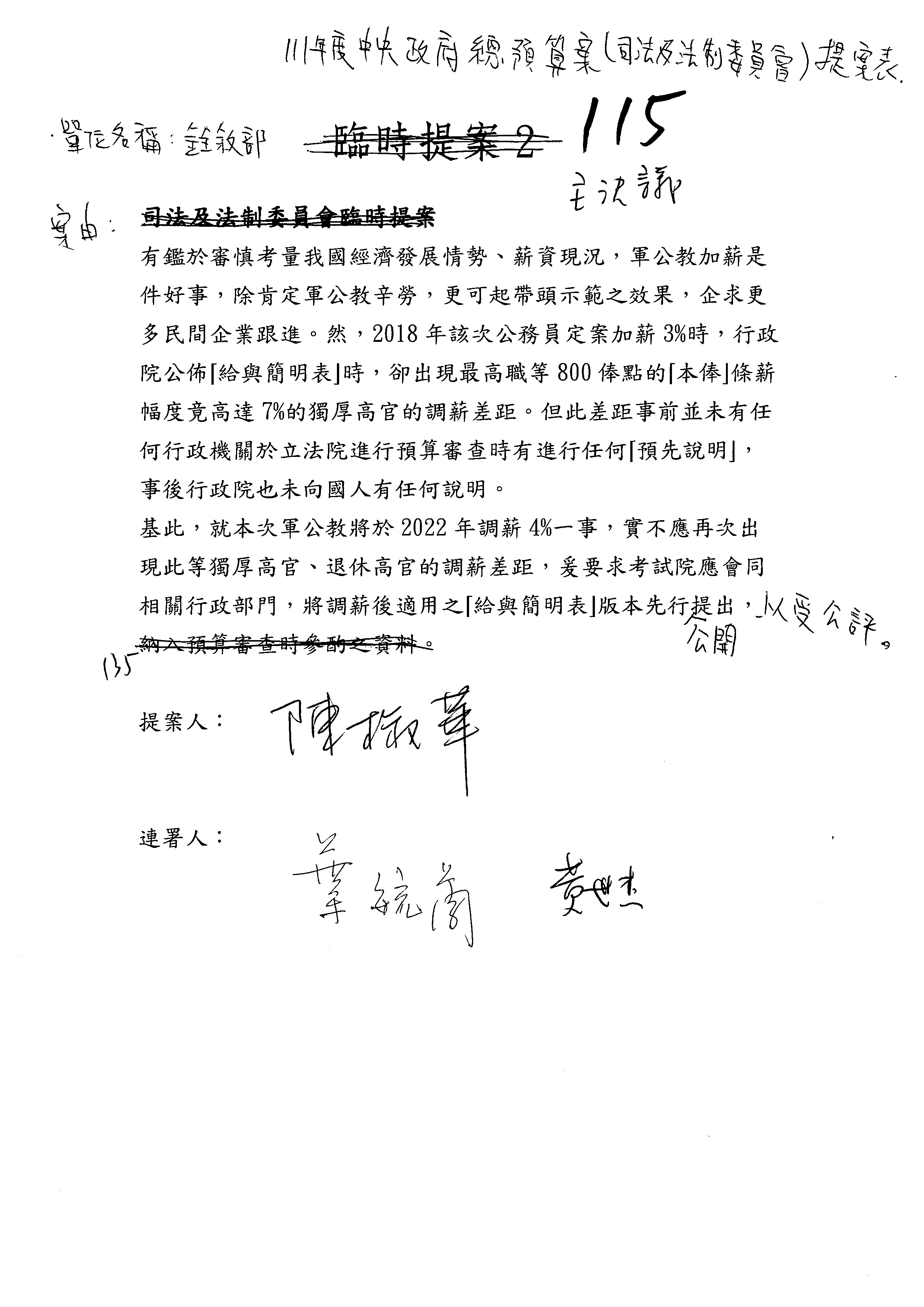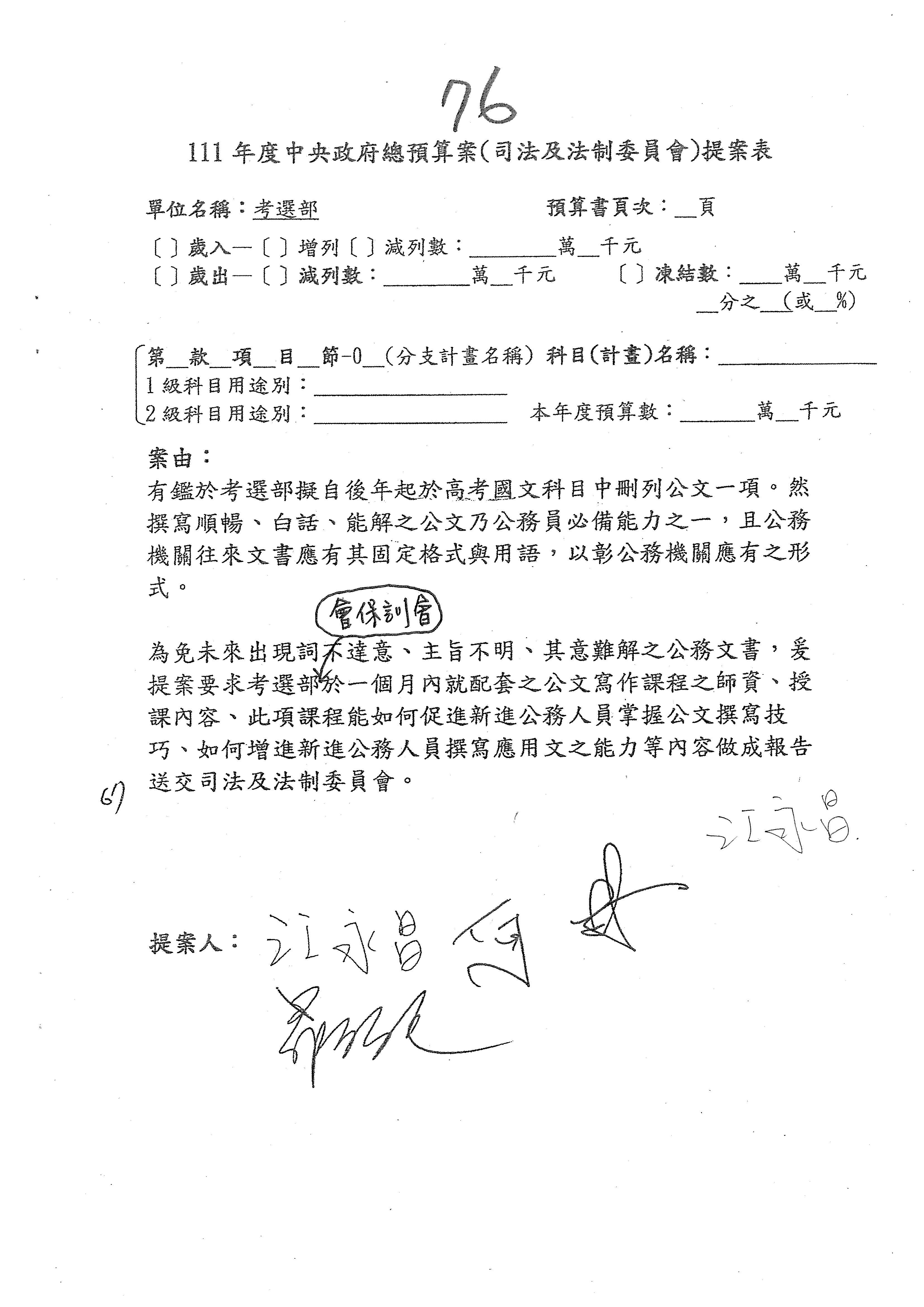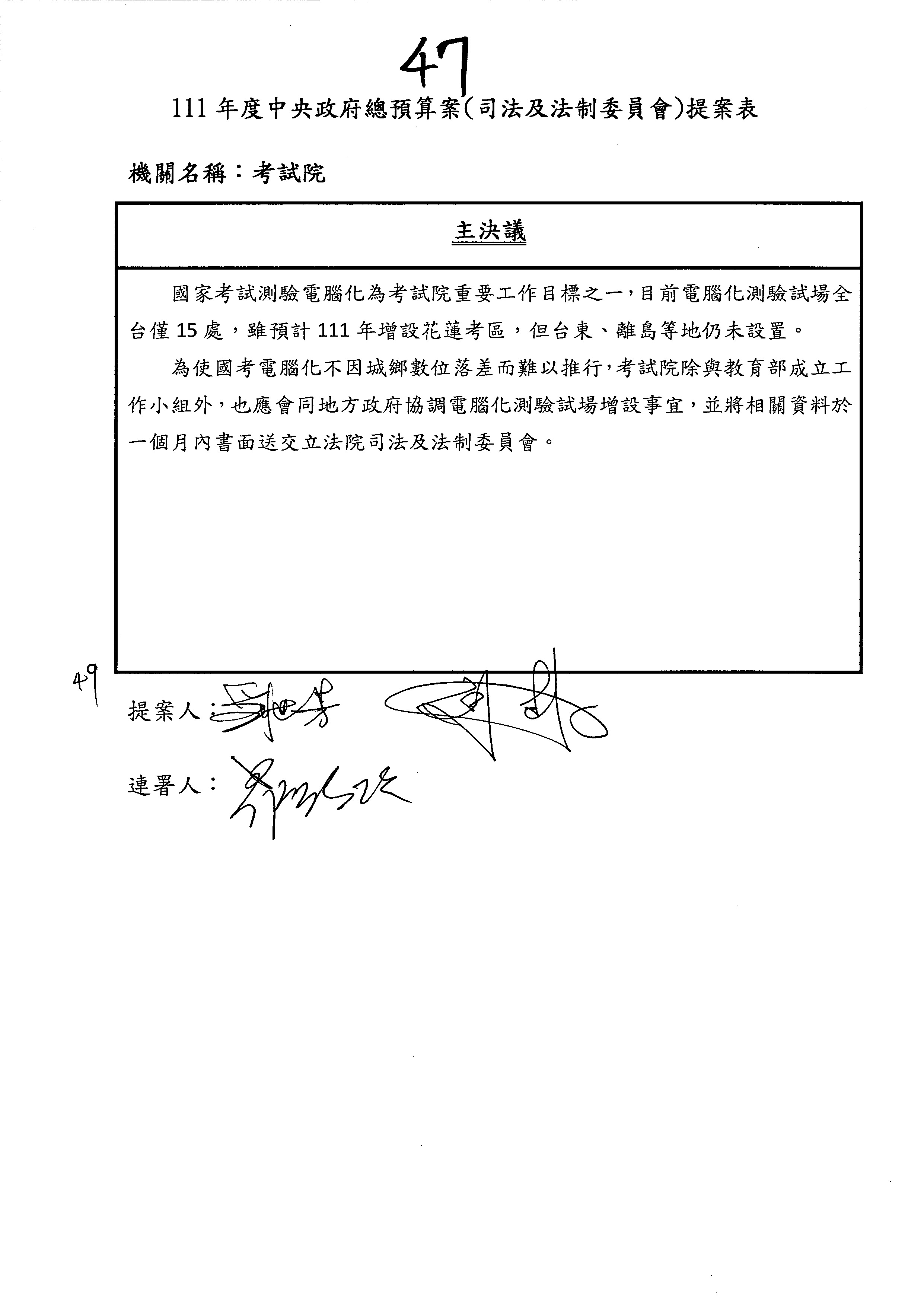 葉委員毓蘭:因為在銓敘部有另外一個案子,這邊就用主決議,希望能夠提升整個……