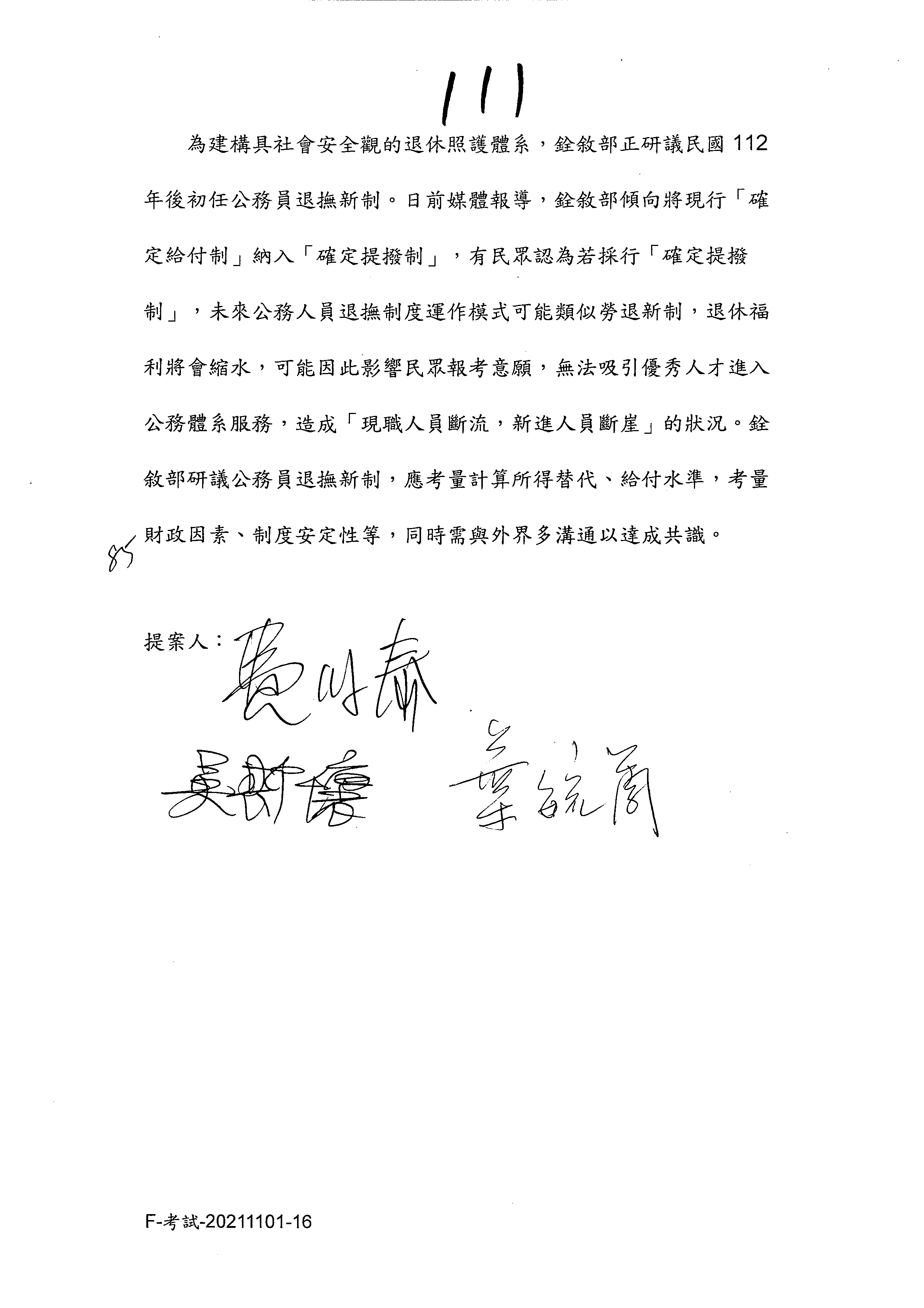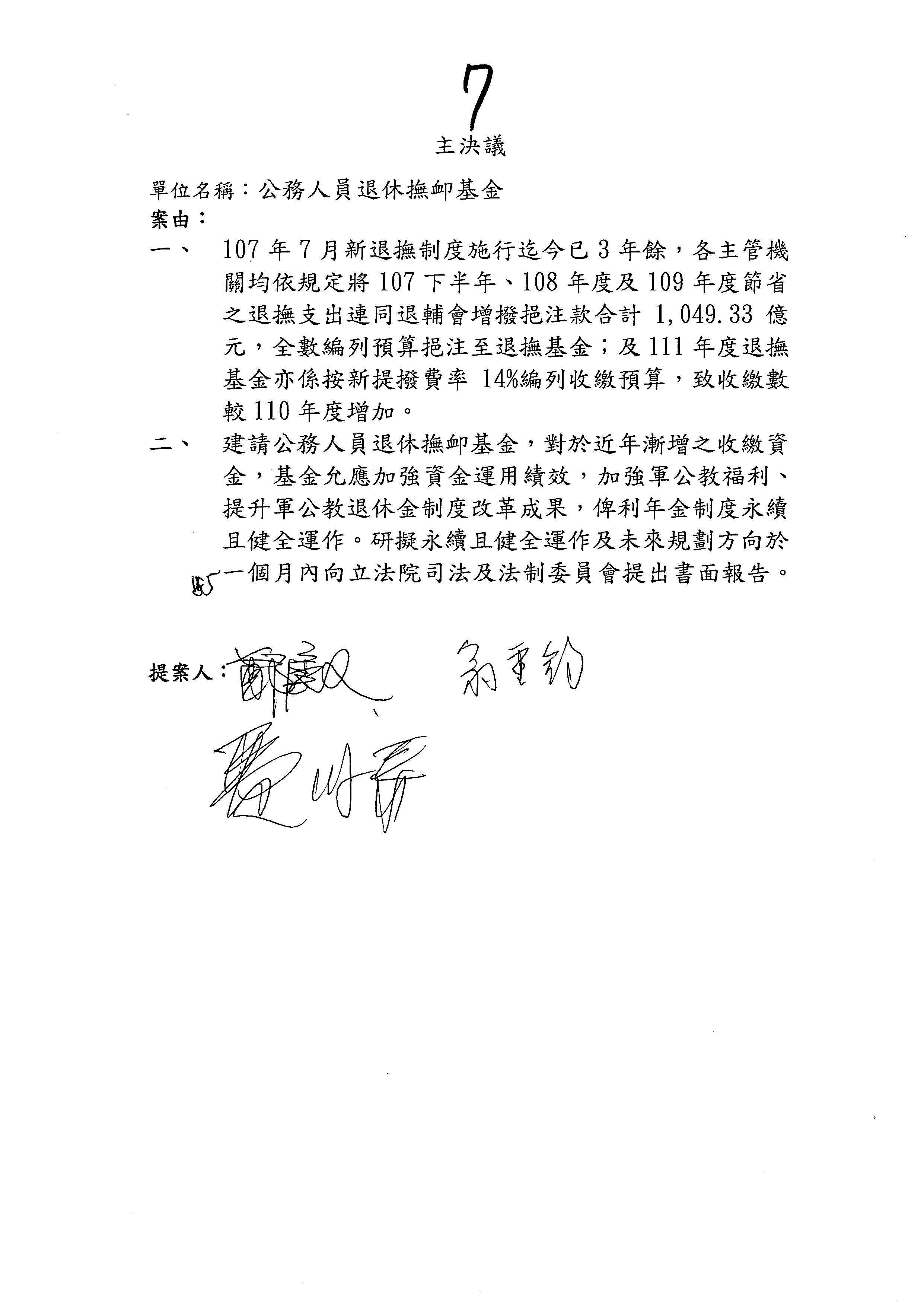 三、審查111年度中央政府總預算案附屬單位預算非營業部分關於考試院銓敘部主管「公務人員退休撫卹基金」收支部分。