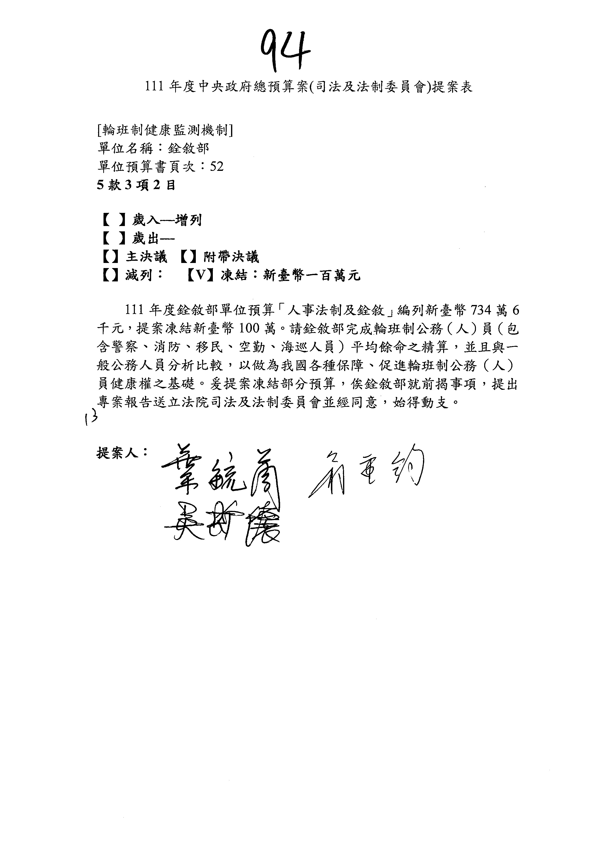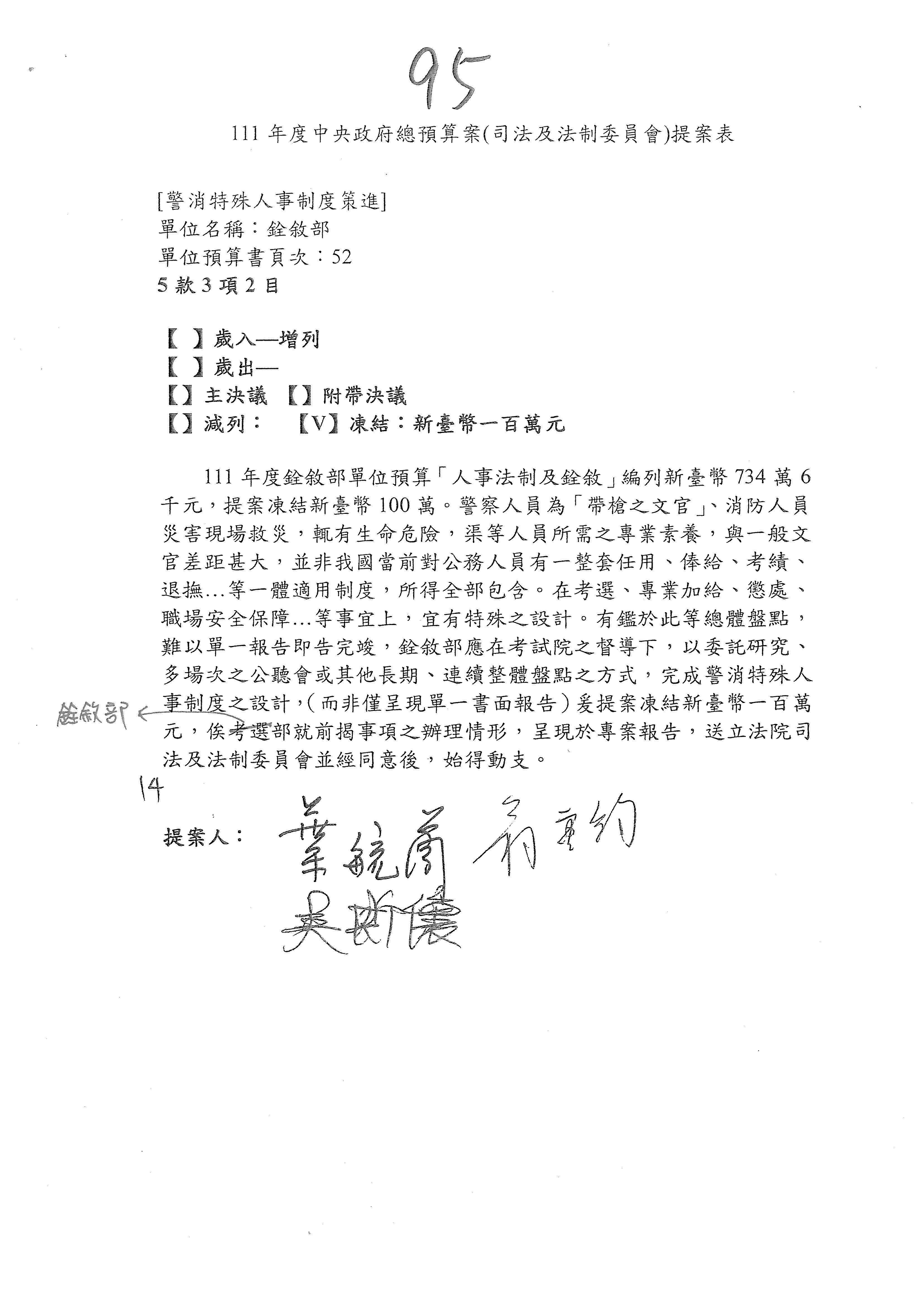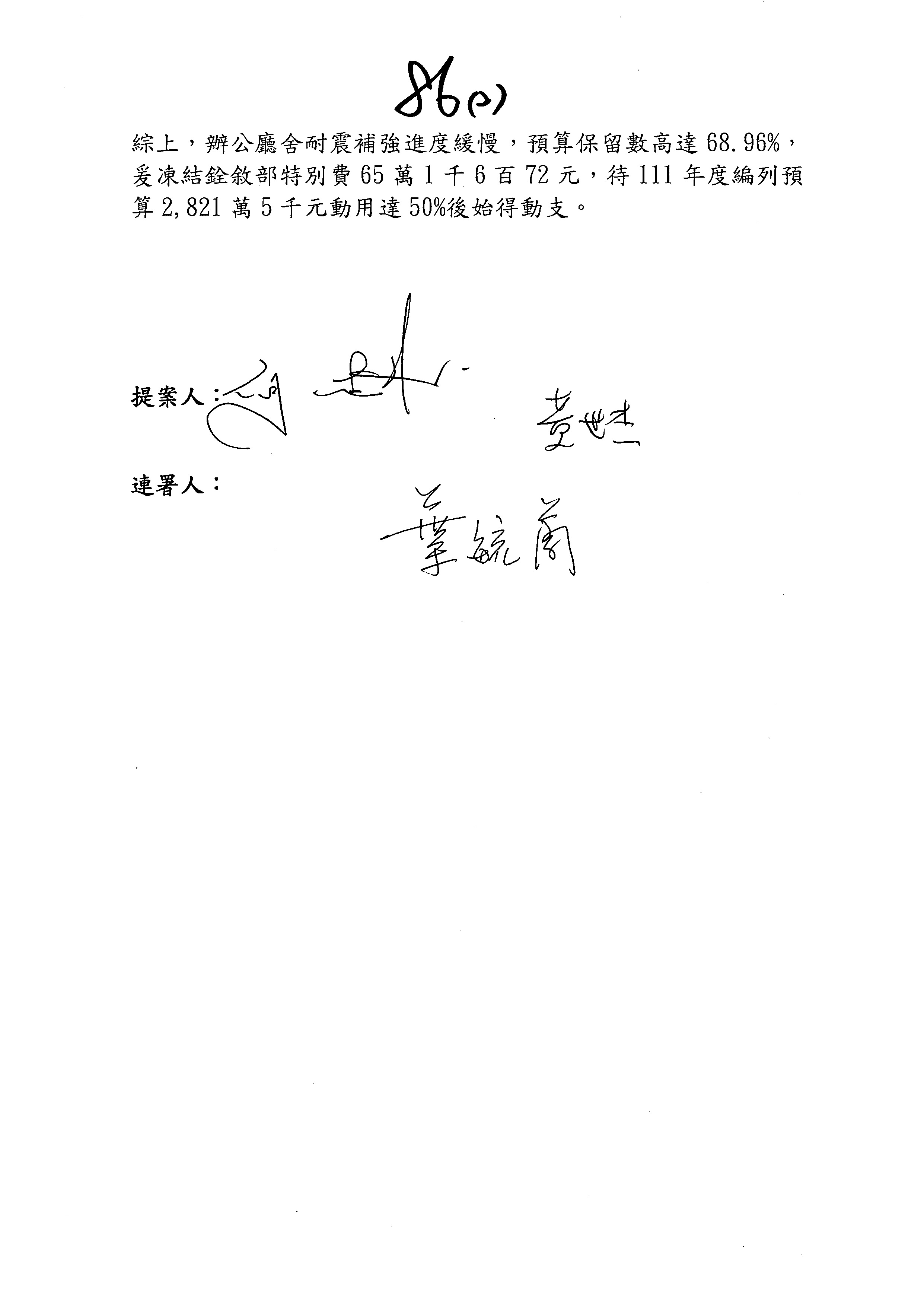 連署人:鄭麗文 葉毓蘭 翁重鈞 費鴻泰 李德維