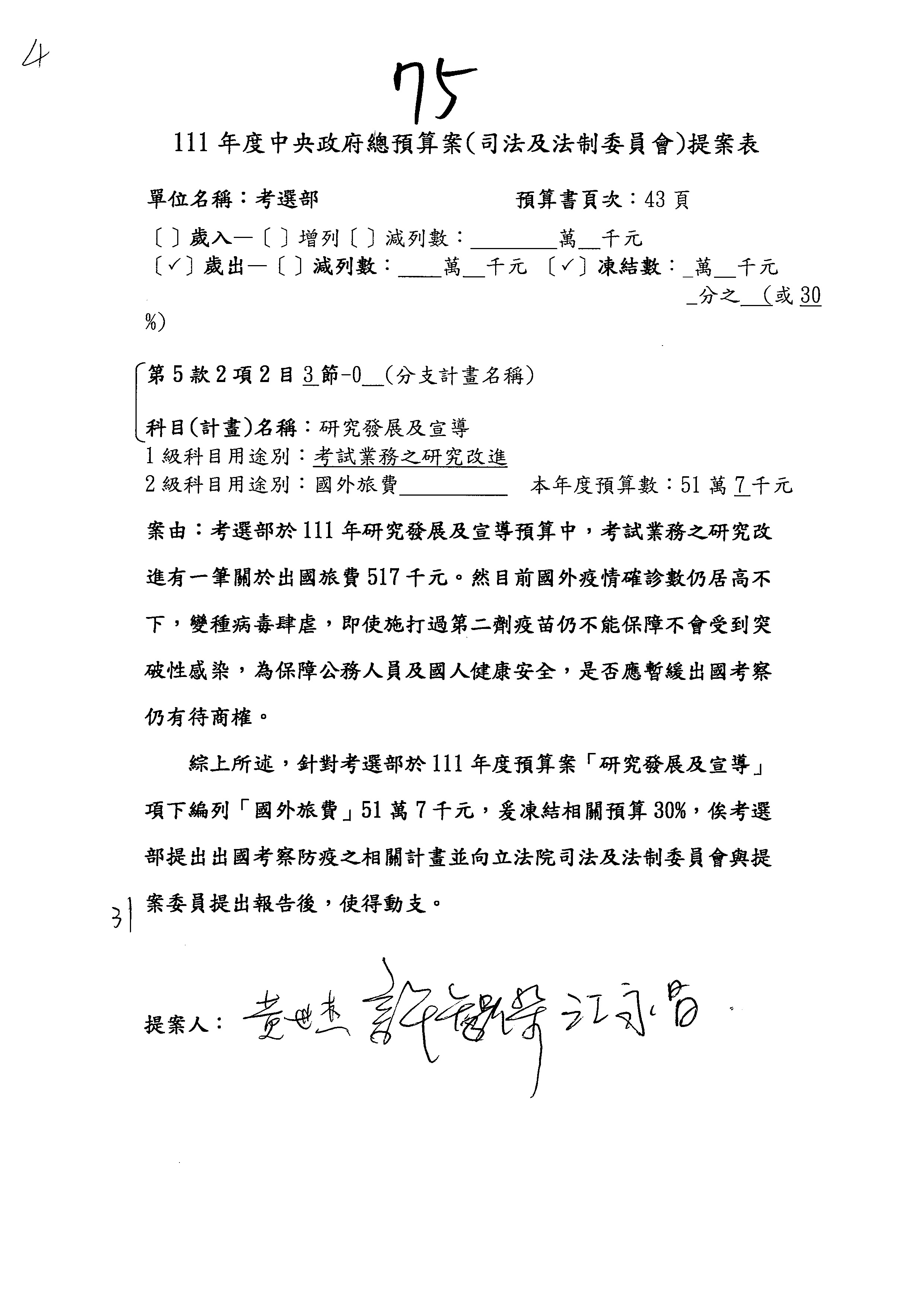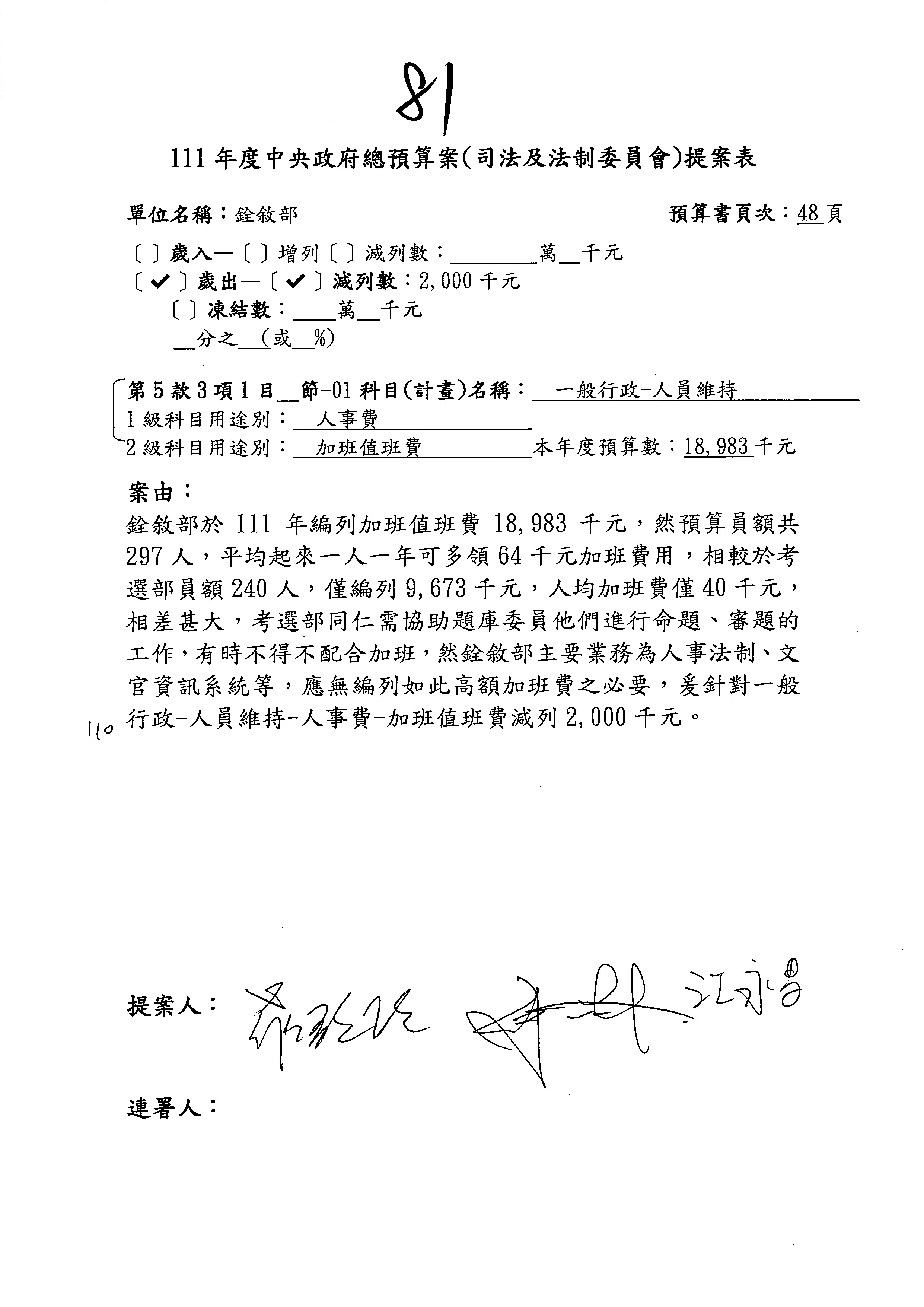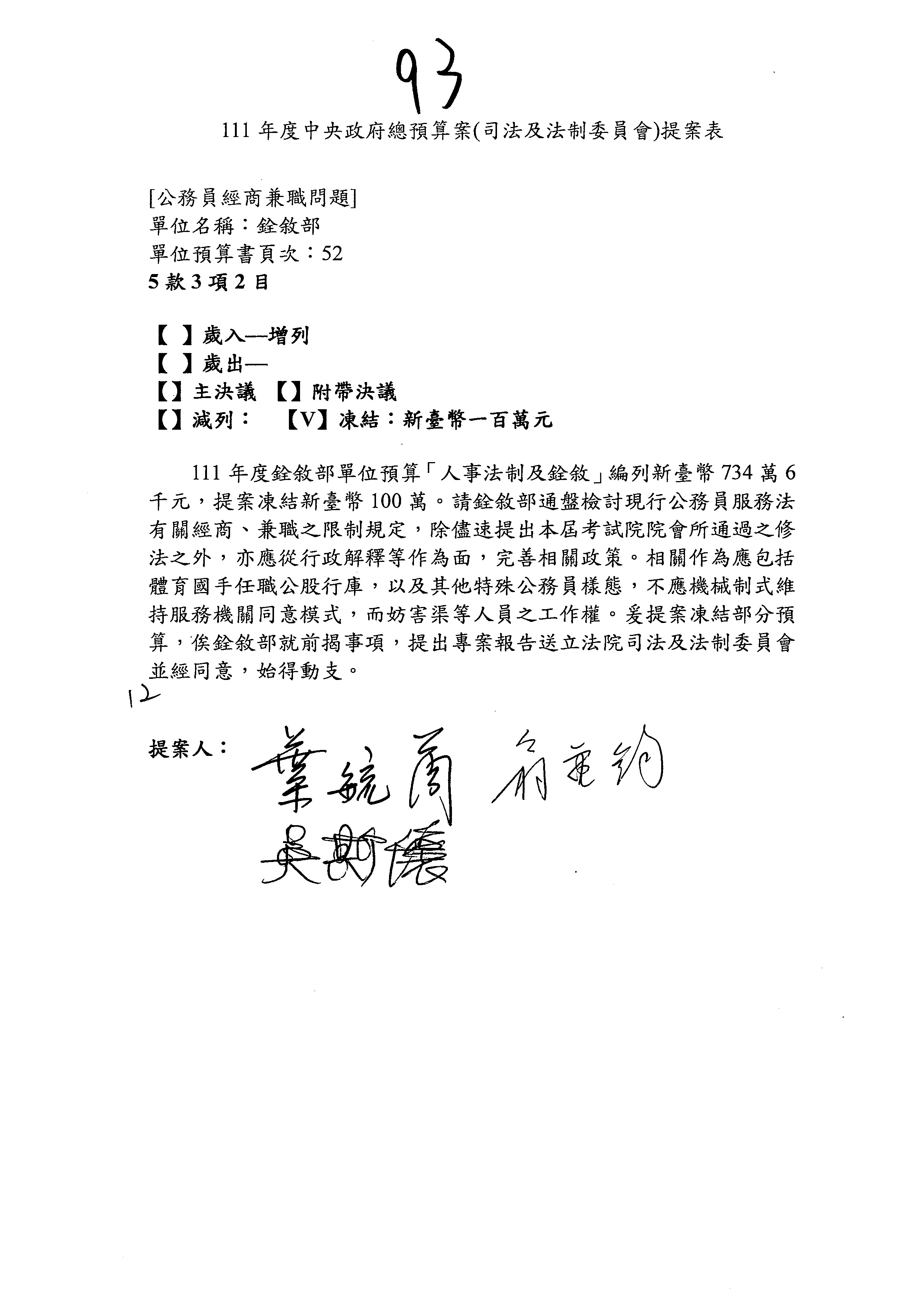 連署人:鄭麗文 葉毓蘭 翁重鈞 費鴻泰 李德維