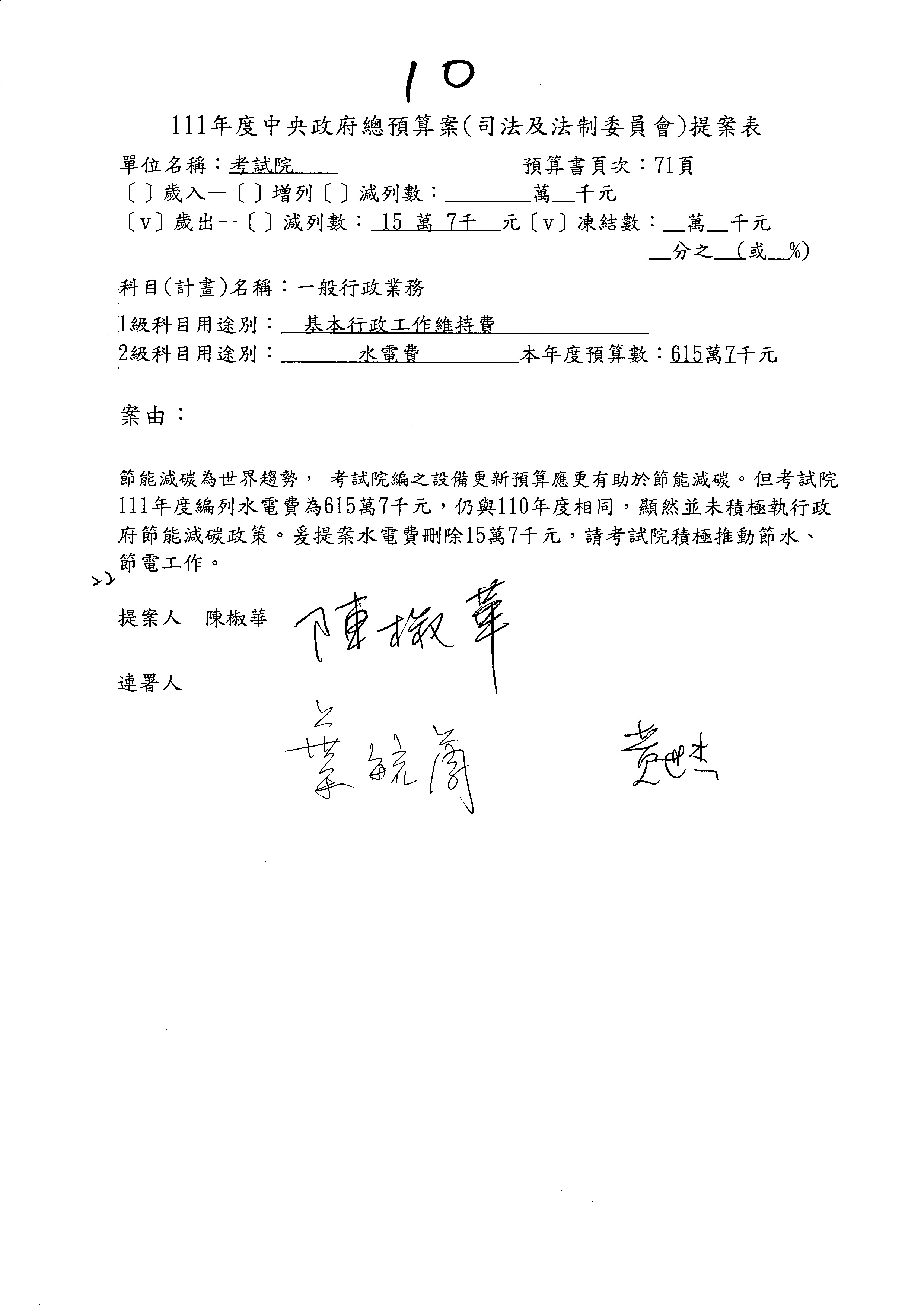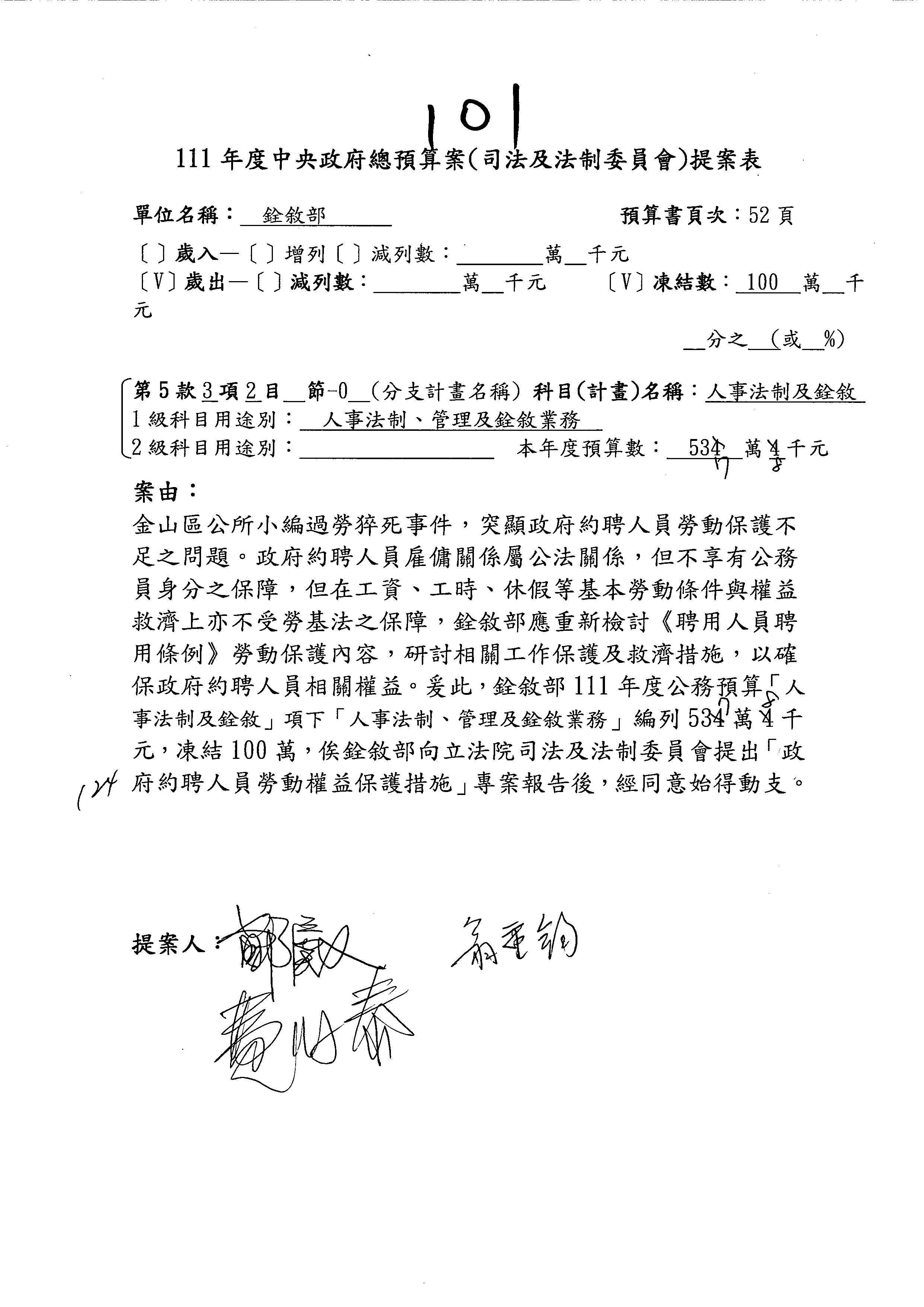主席:乾脆整目併案凍結10萬元,交書面報告,這樣比較簡單。